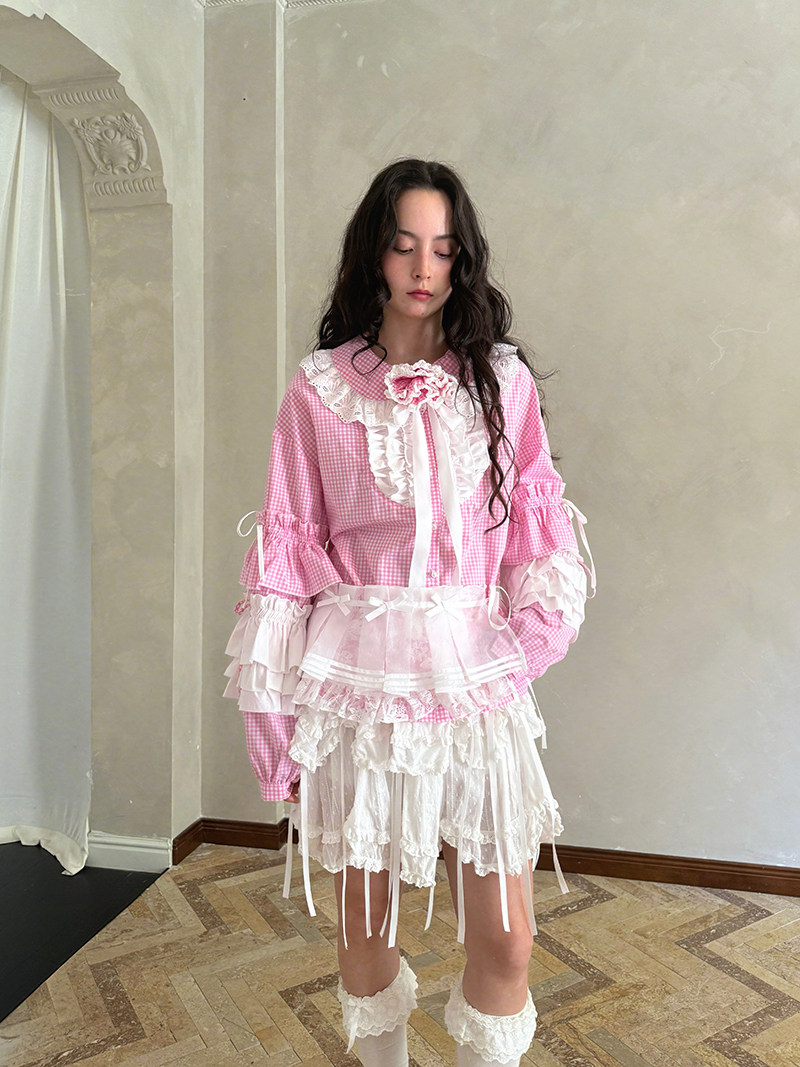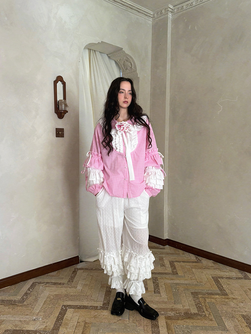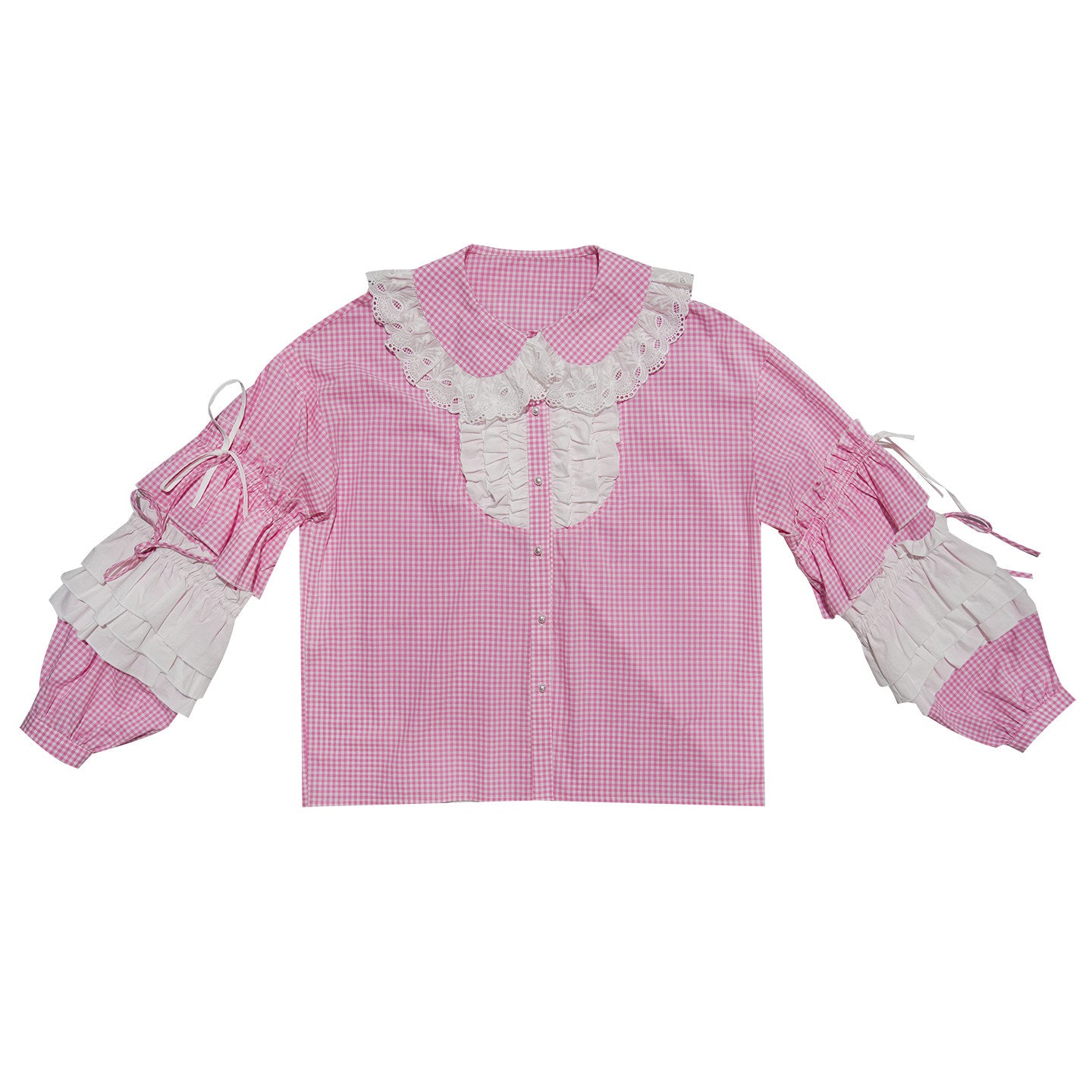 Patchwork Lace Ruffle Long Sleeve Blouse NA8287