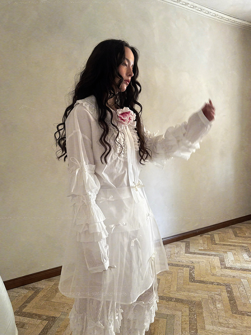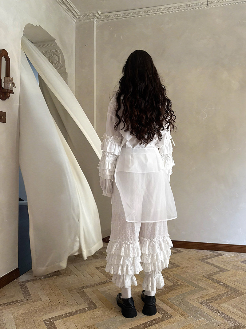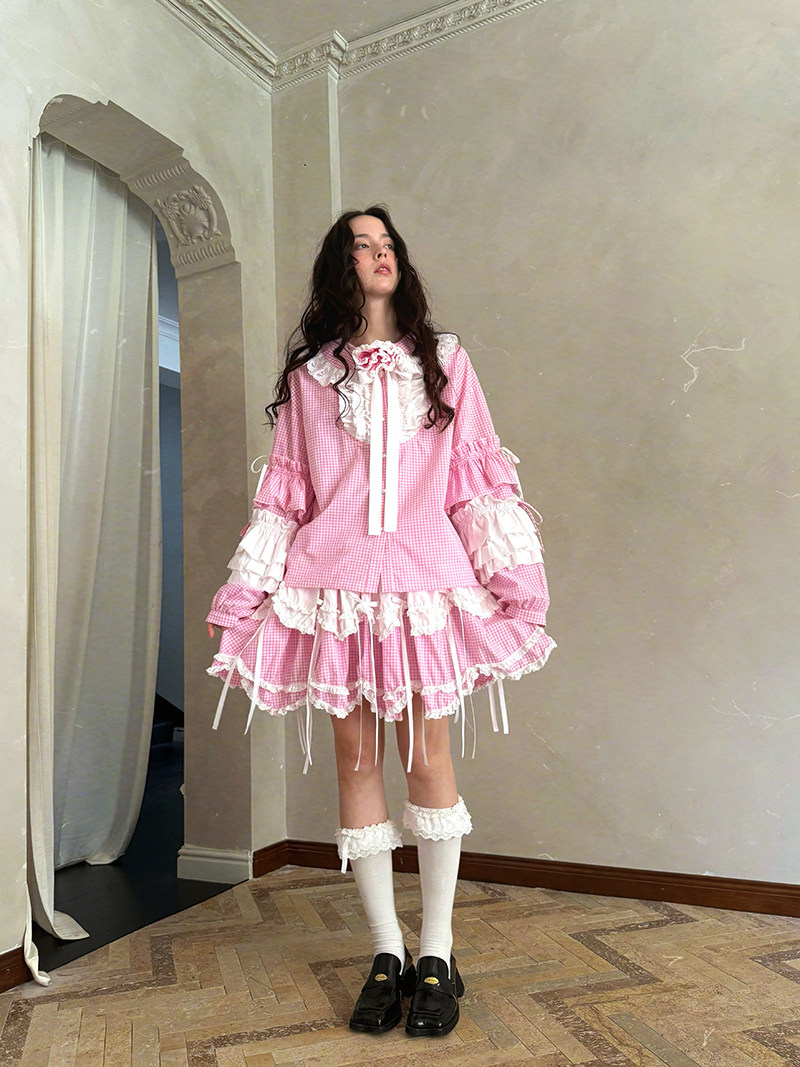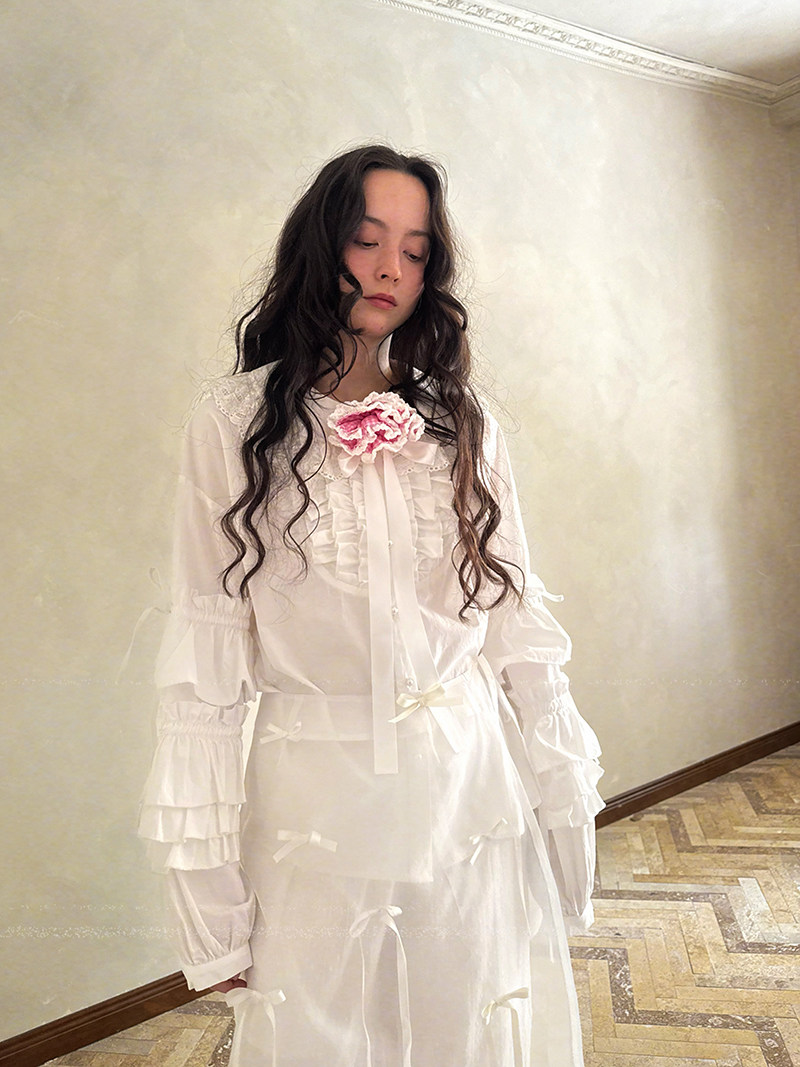 Patchwork Lace Ruffle Long Sleeve Blouse NA8287