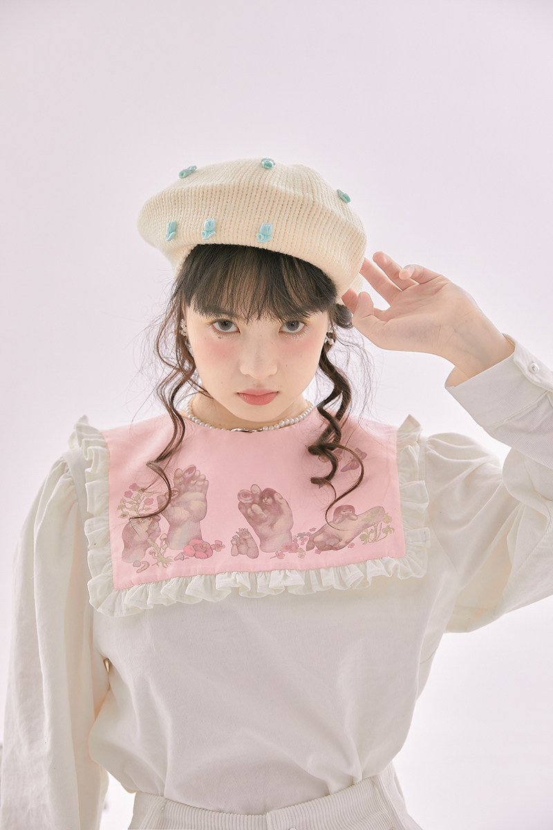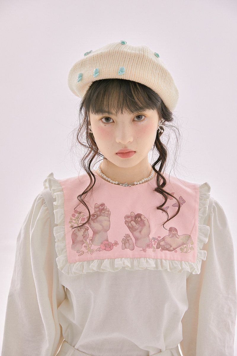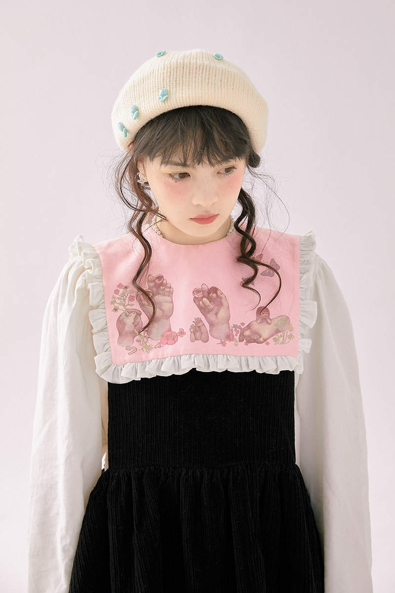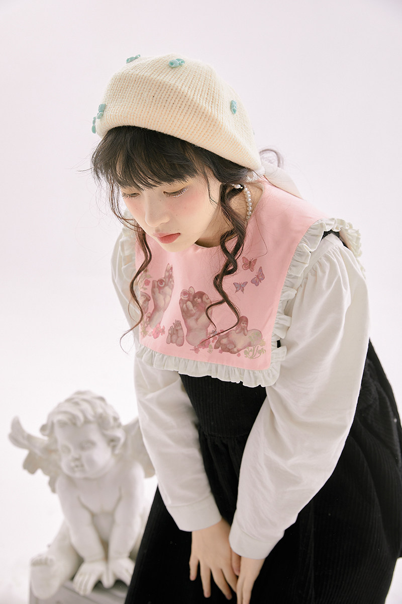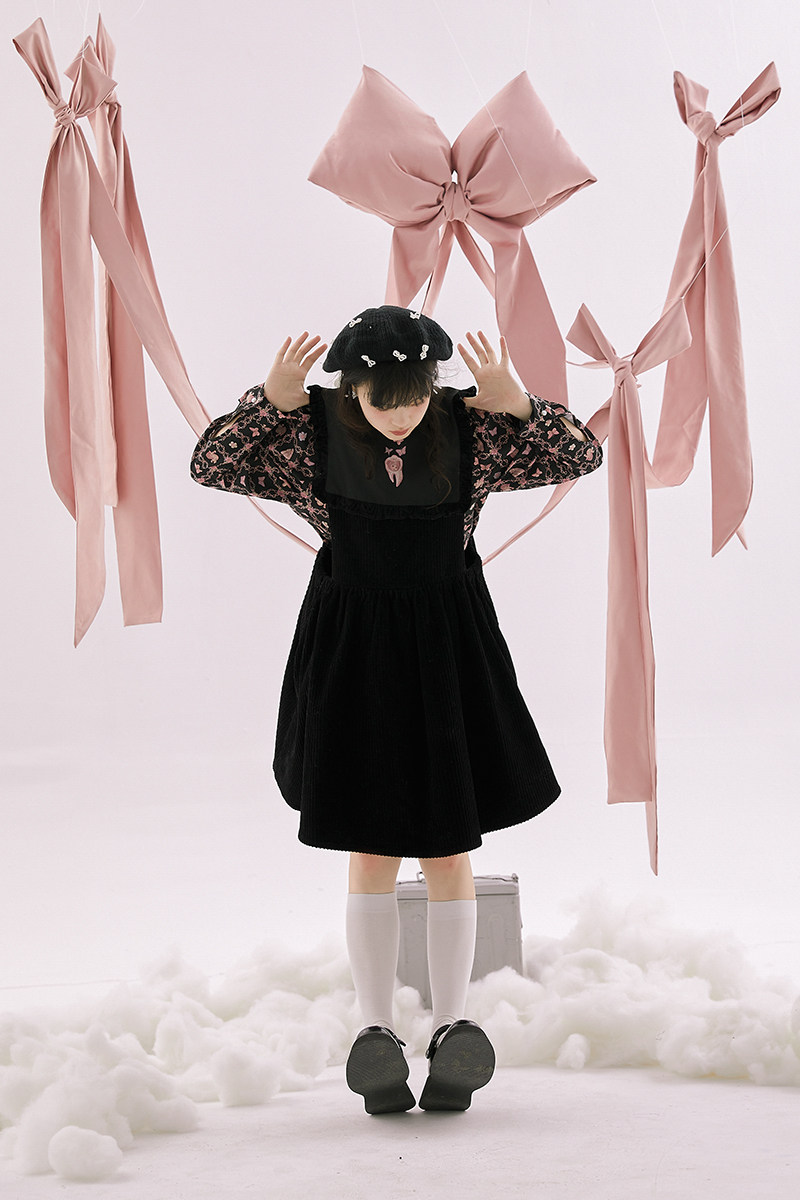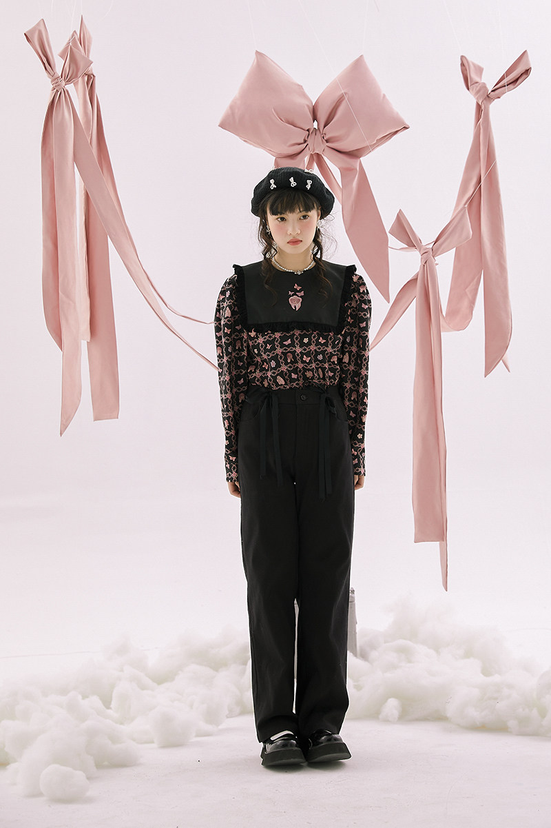 Quirky Print Bubble Sleeve Fake Layered Long Sleeve Blouse NA8294
