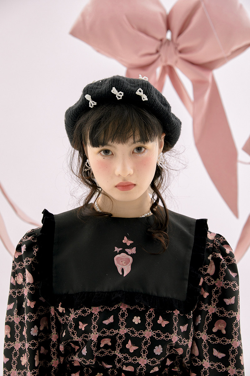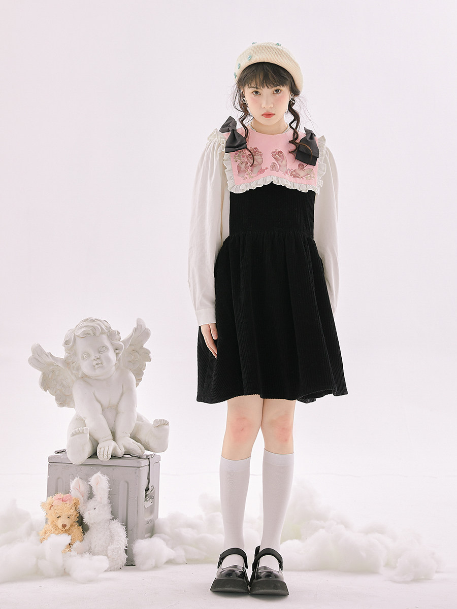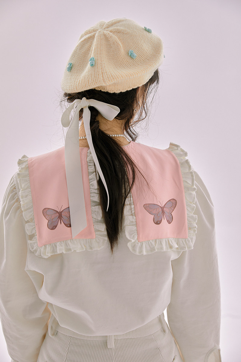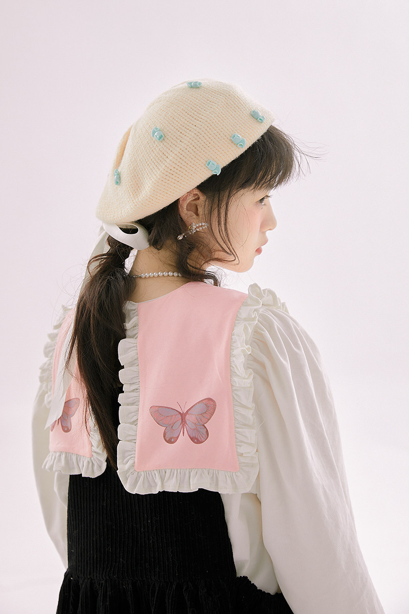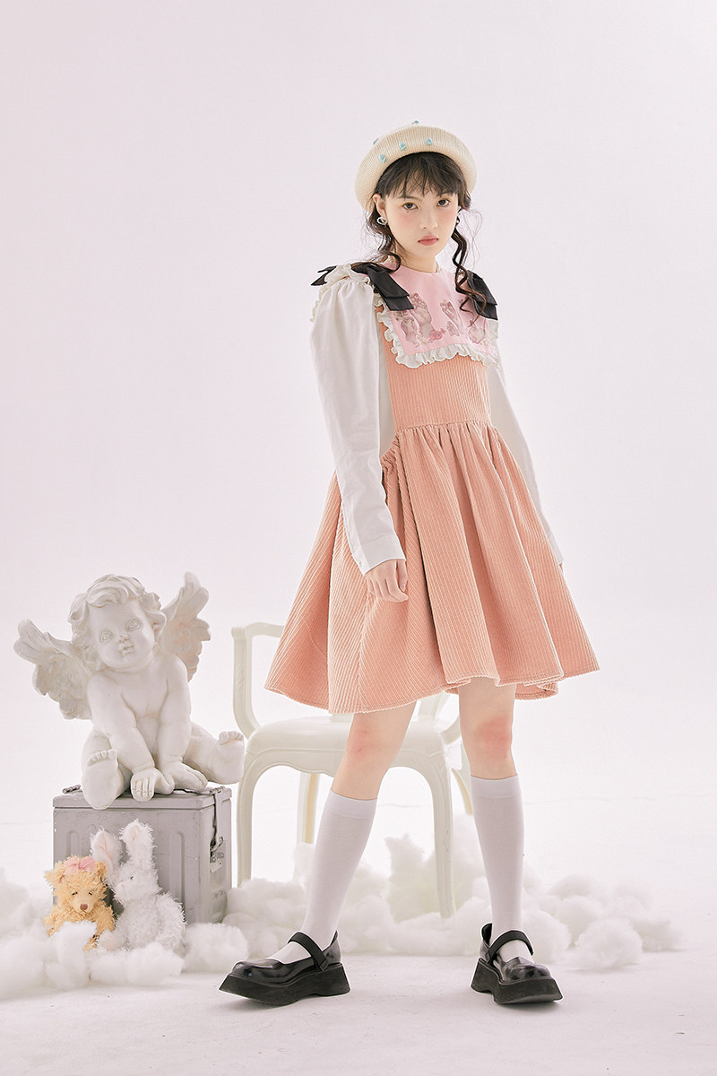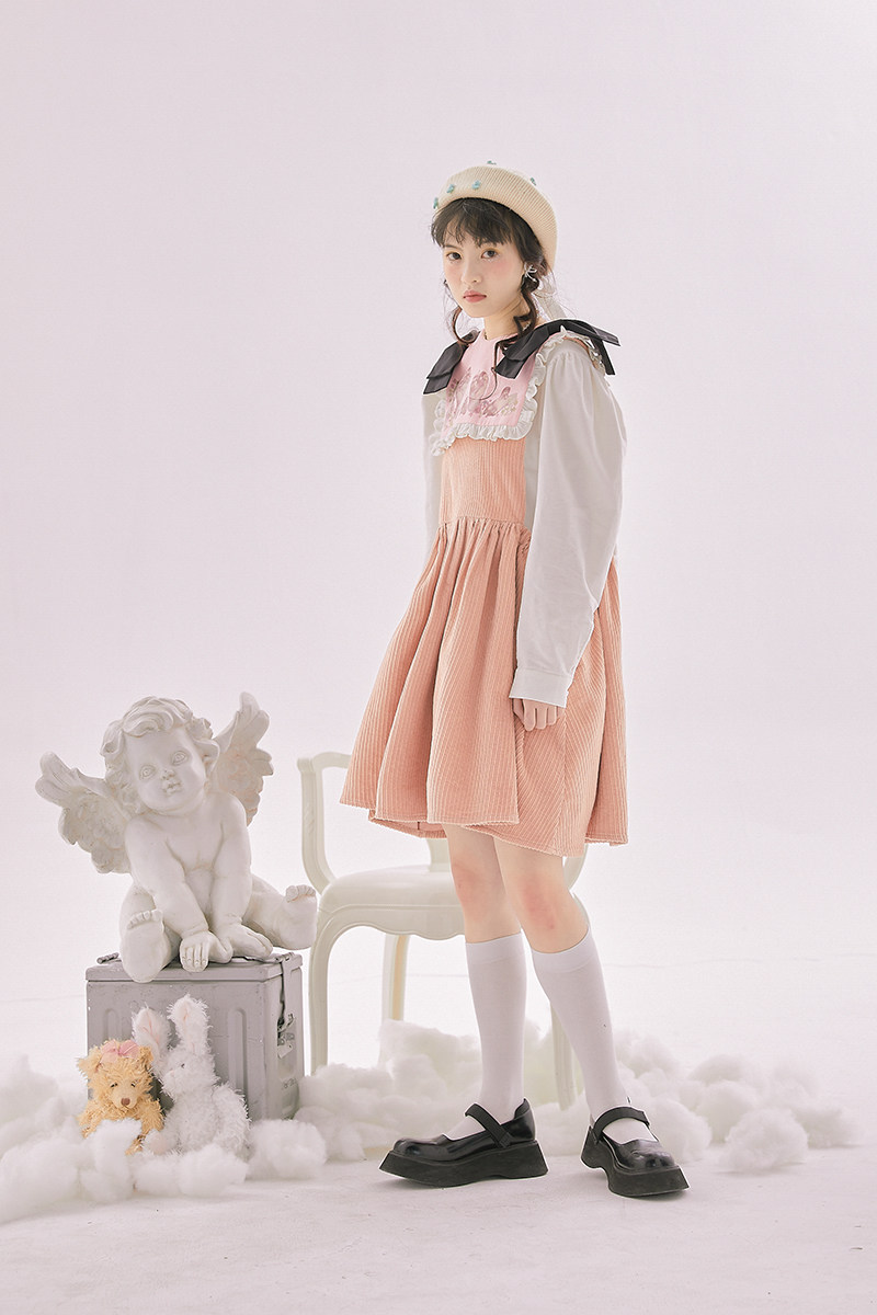 Quirky Print Bubble Sleeve Fake Layered Long Sleeve Blouse NA8294