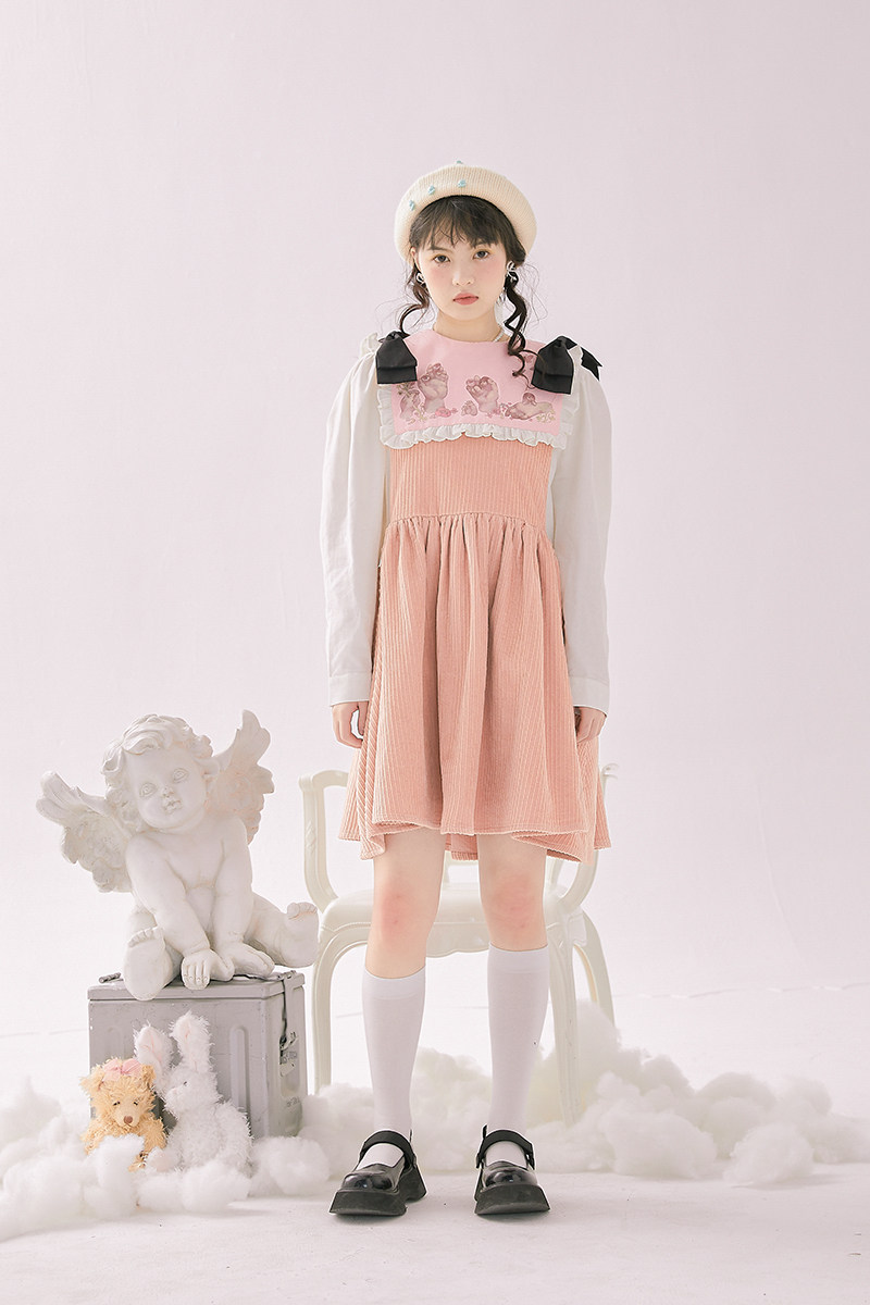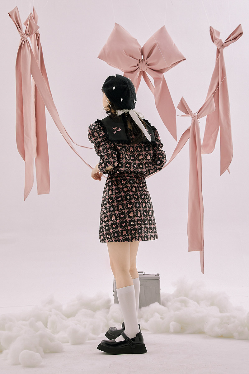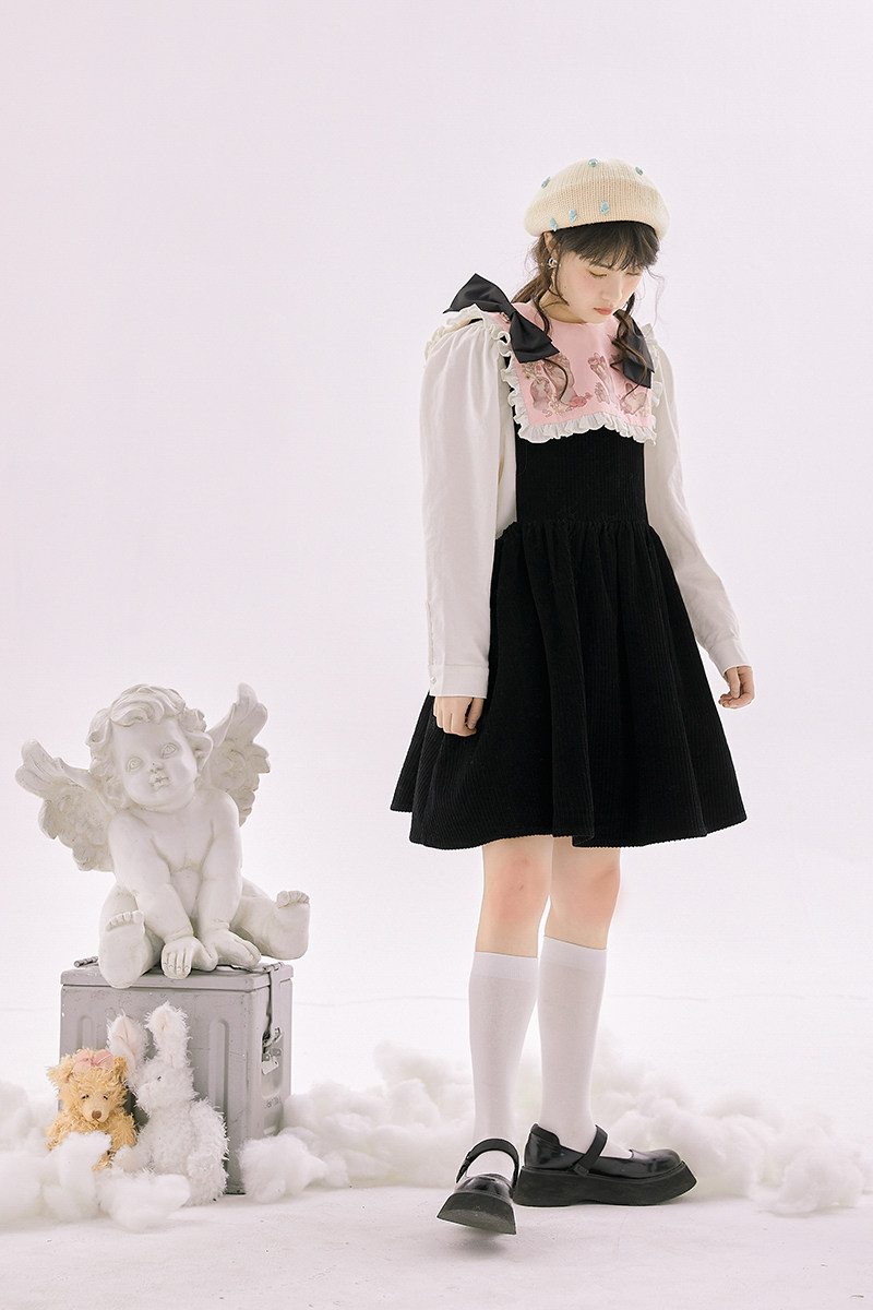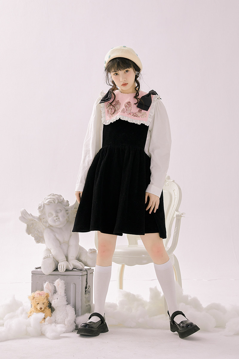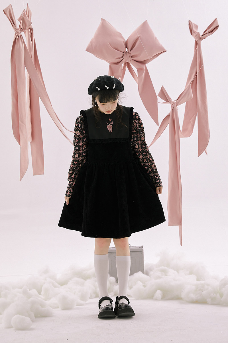 Quirky Print Bubble Sleeve Fake Layered Long Sleeve Blouse NA8294
