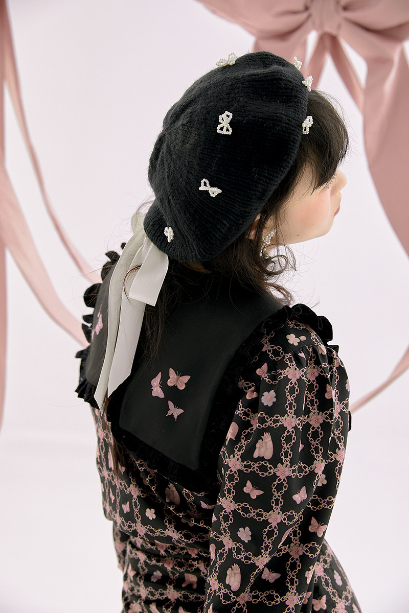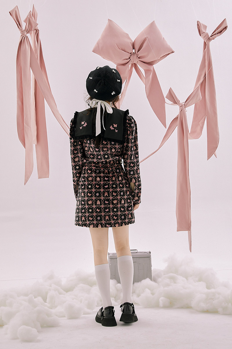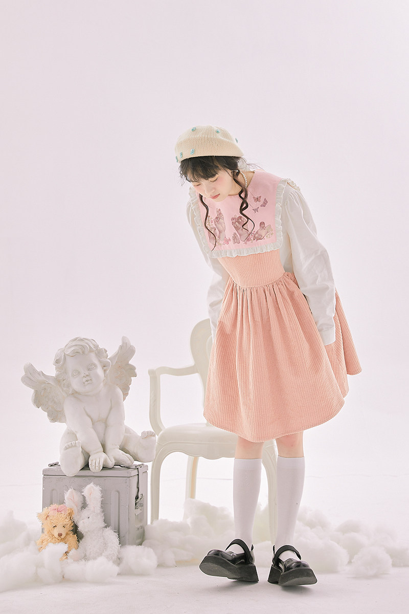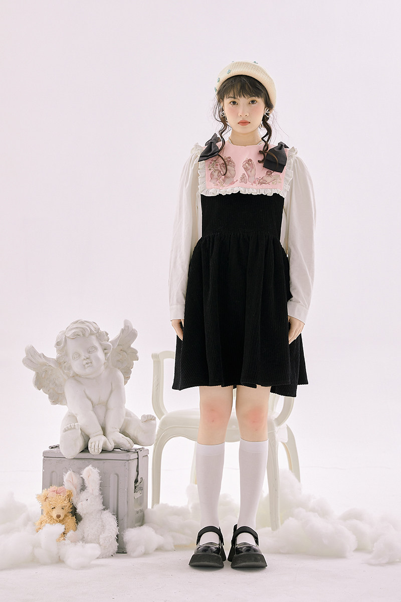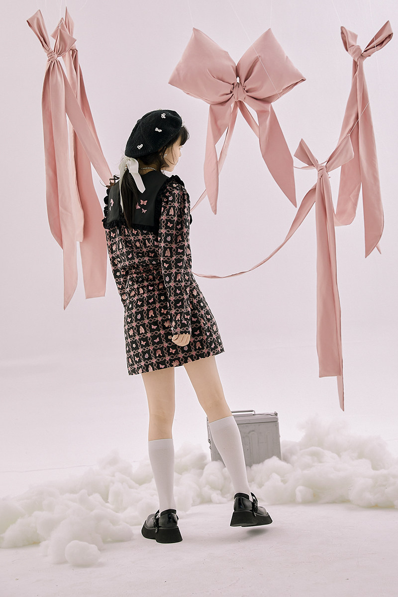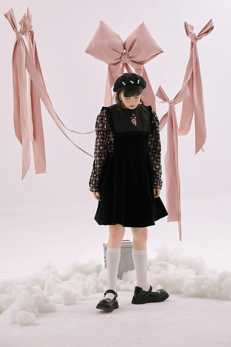 Quirky Print Bubble Sleeve Fake Layered Long Sleeve Blouse NA8294