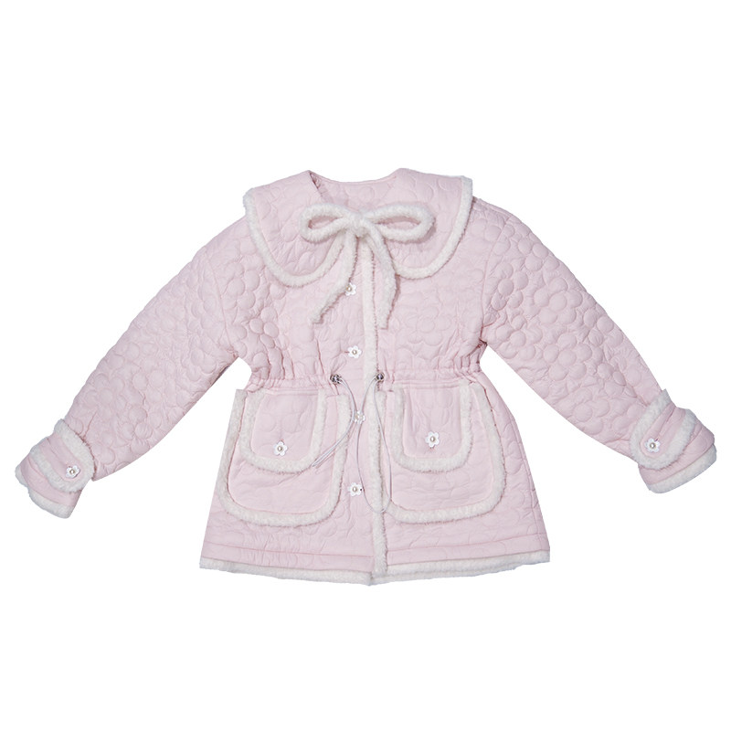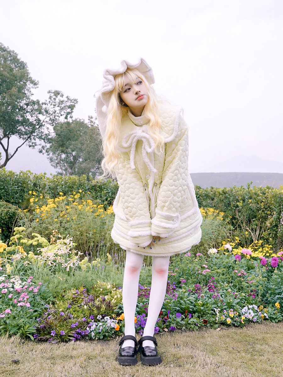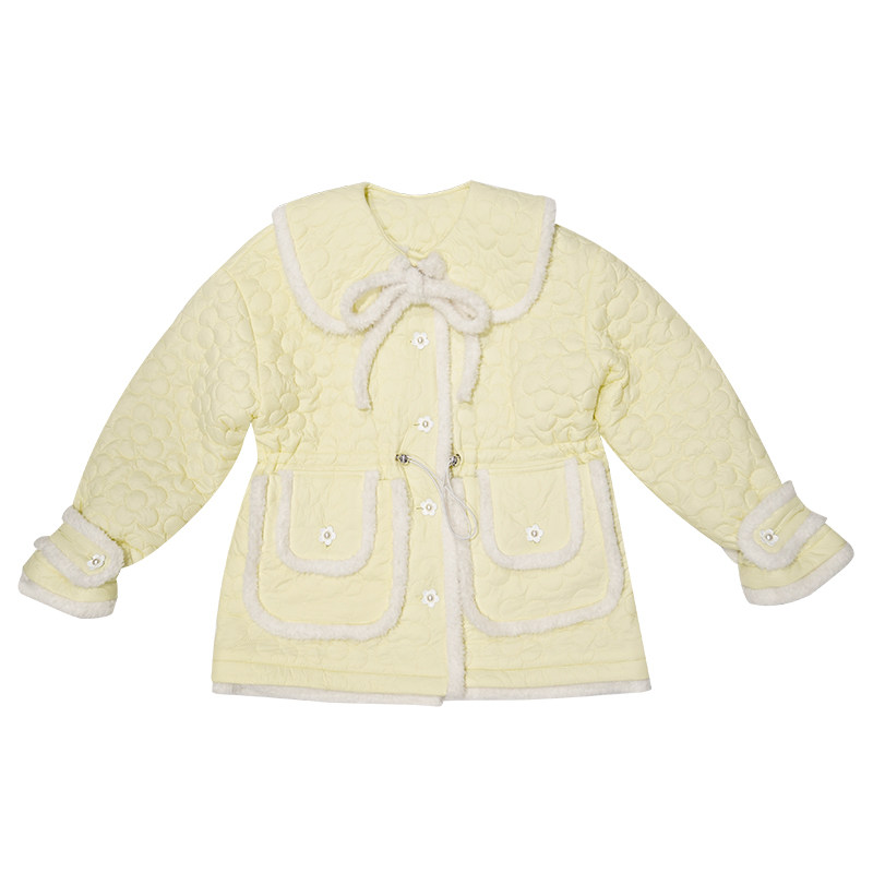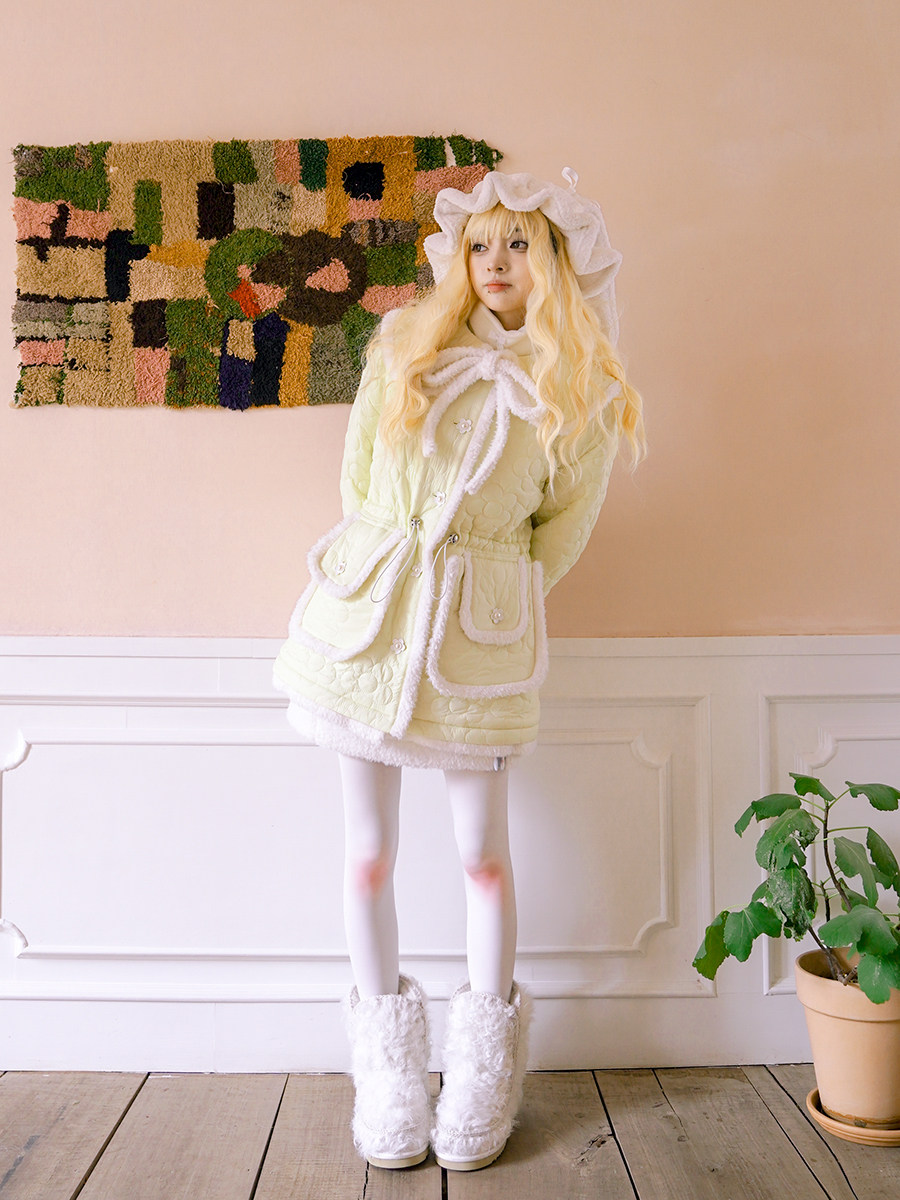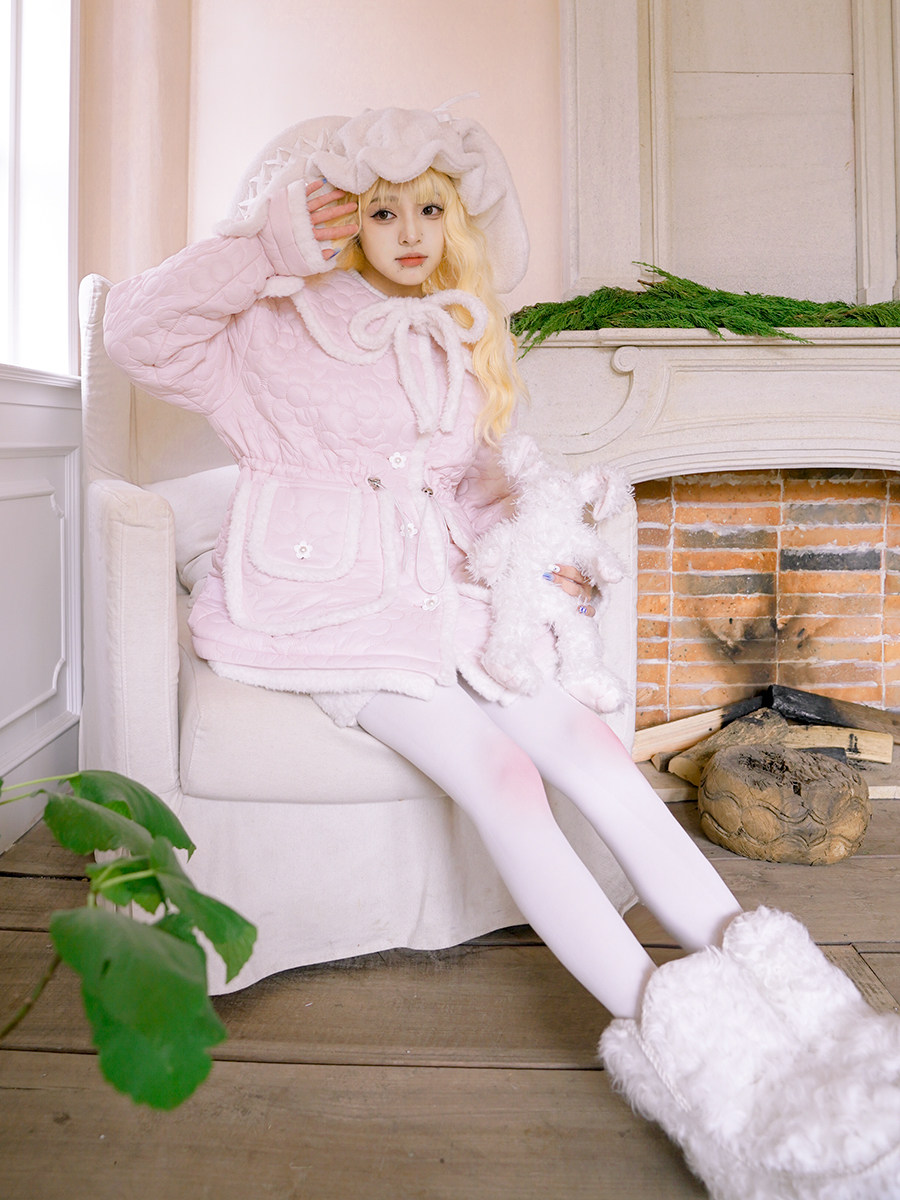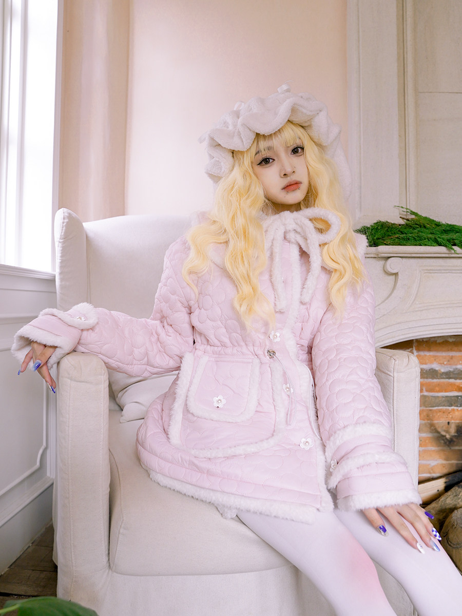 Flower Plush Bow Tie Puffer Jacket NA8302