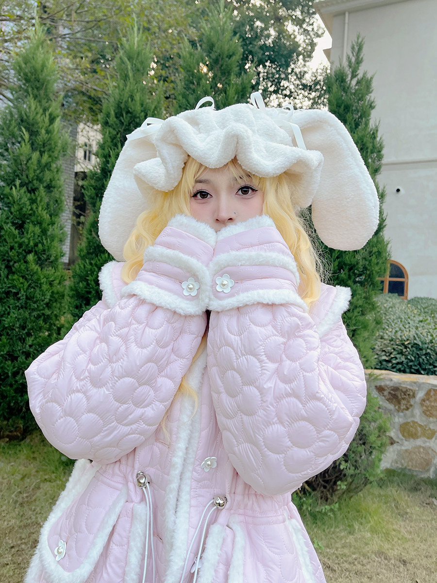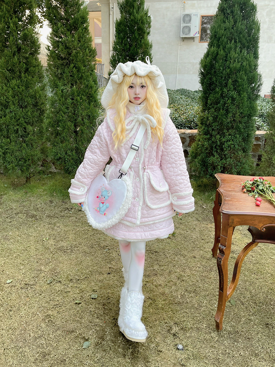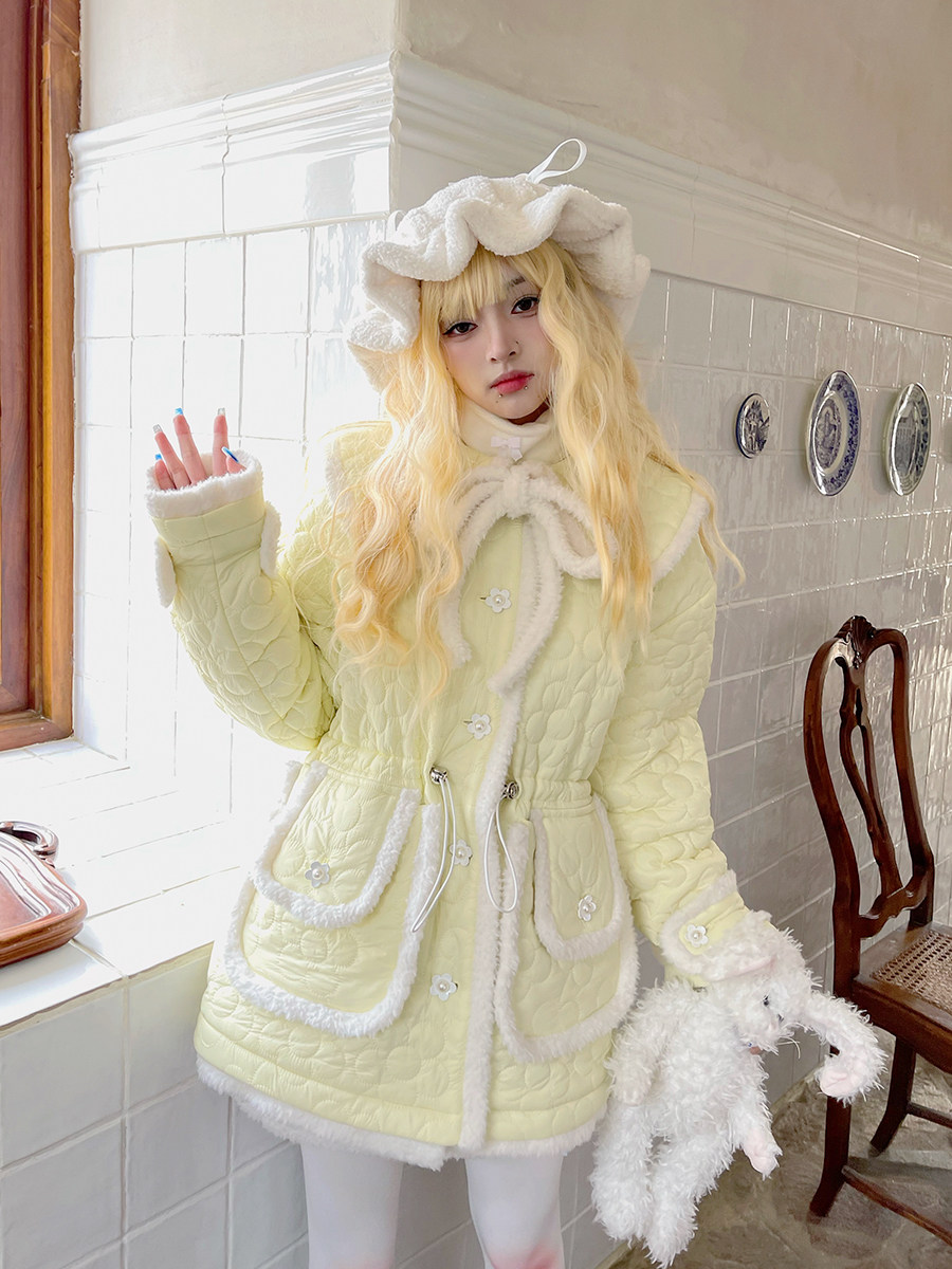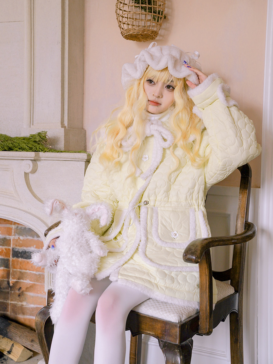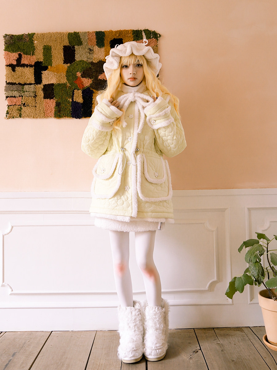 Flower Plush Bow Tie Puffer Jacket NA8302