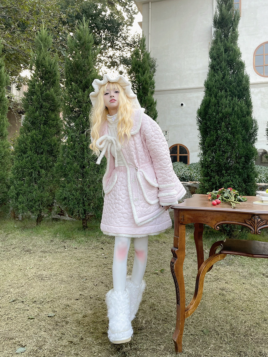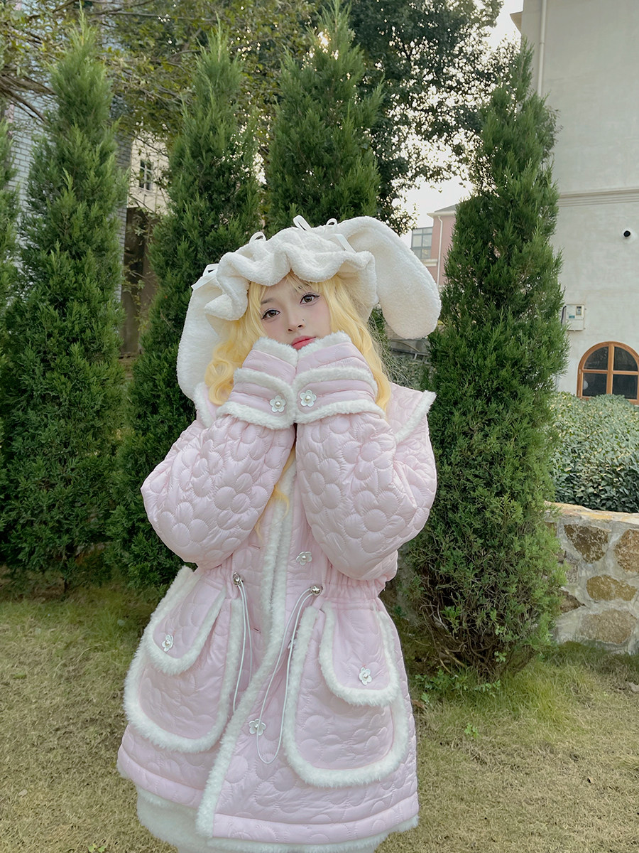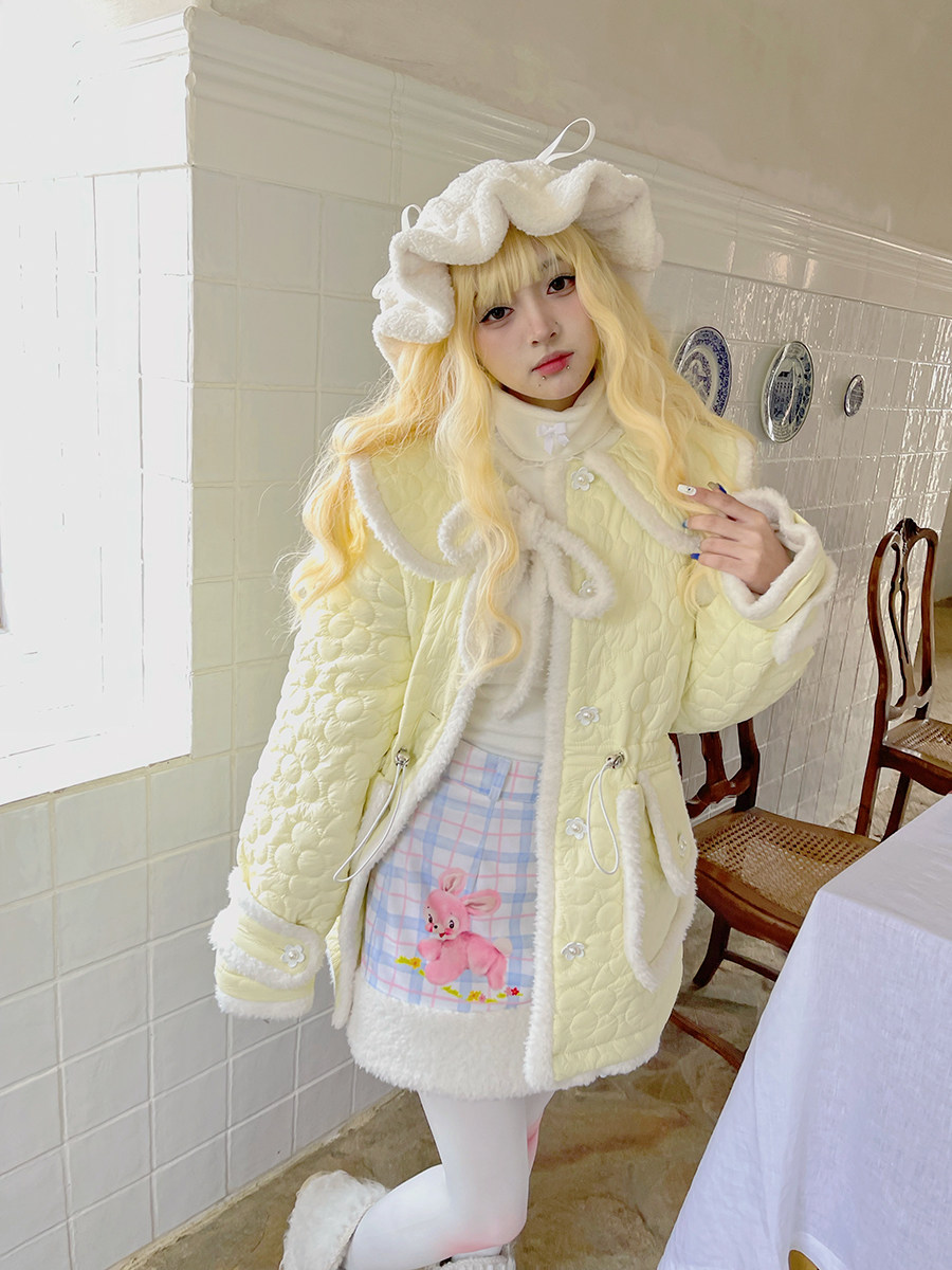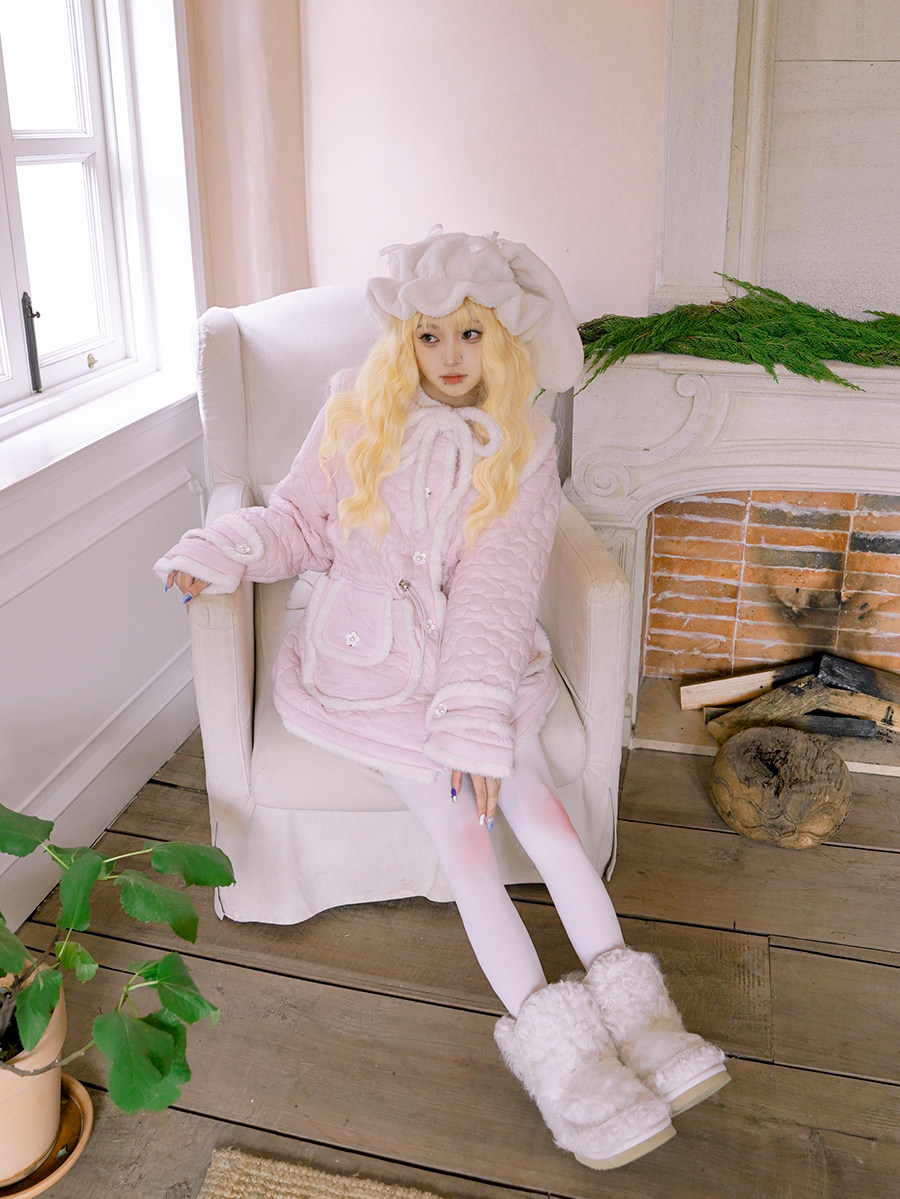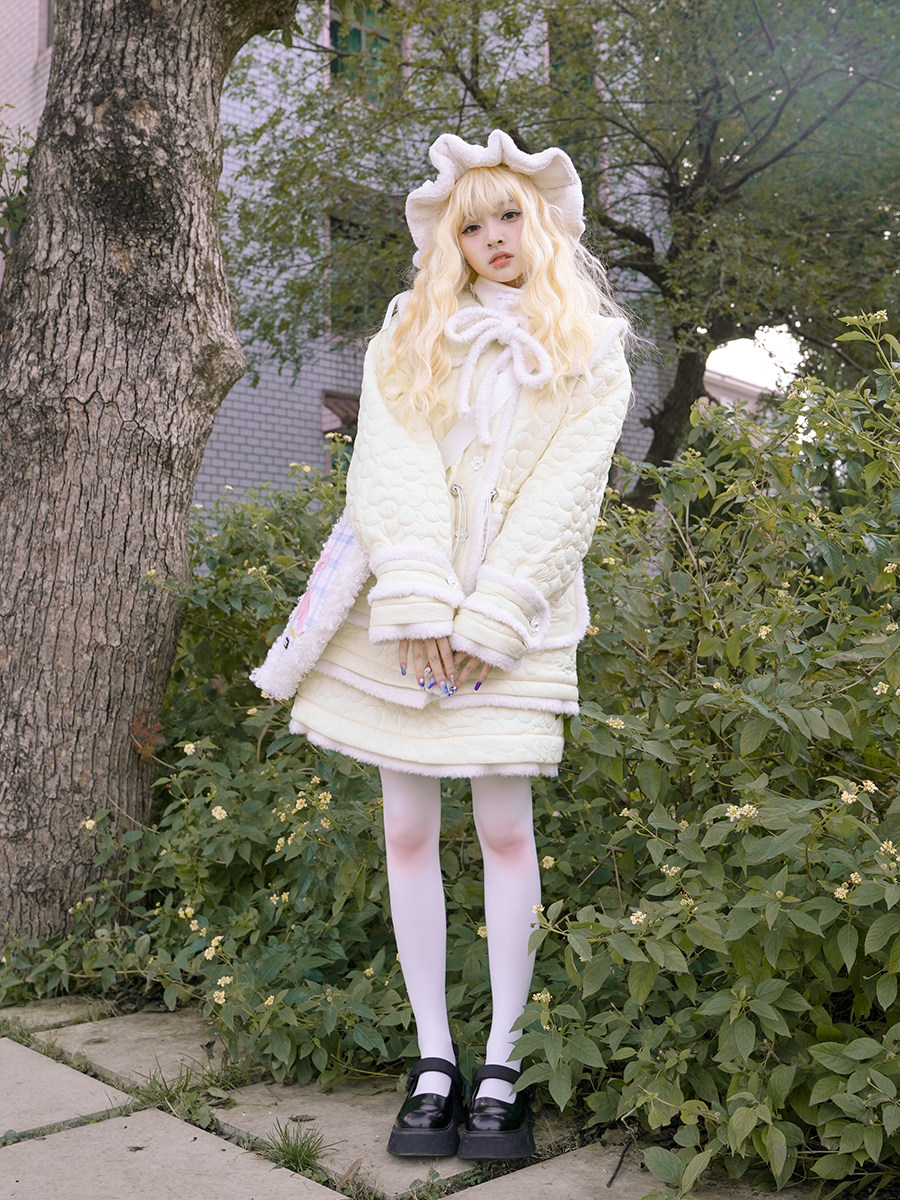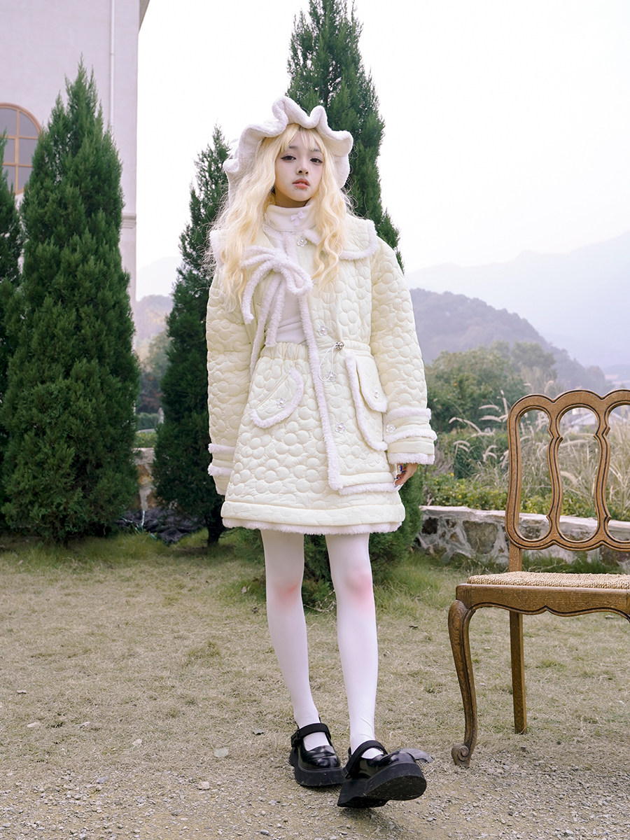 Flower Plush Bow Tie Puffer Jacket NA8302