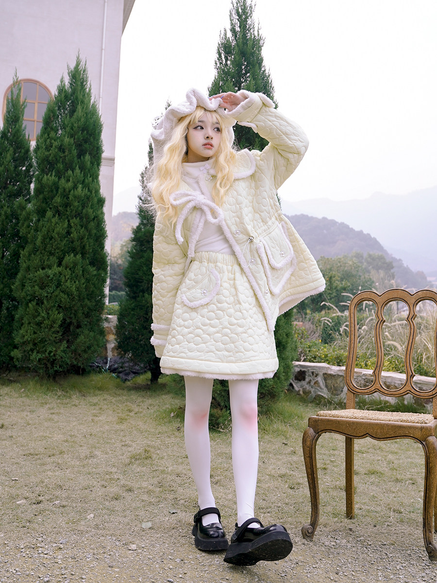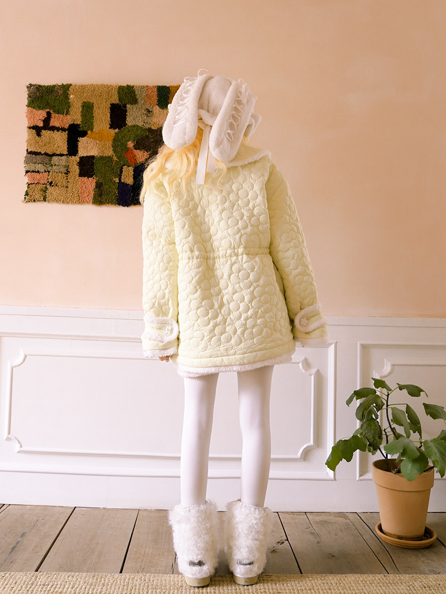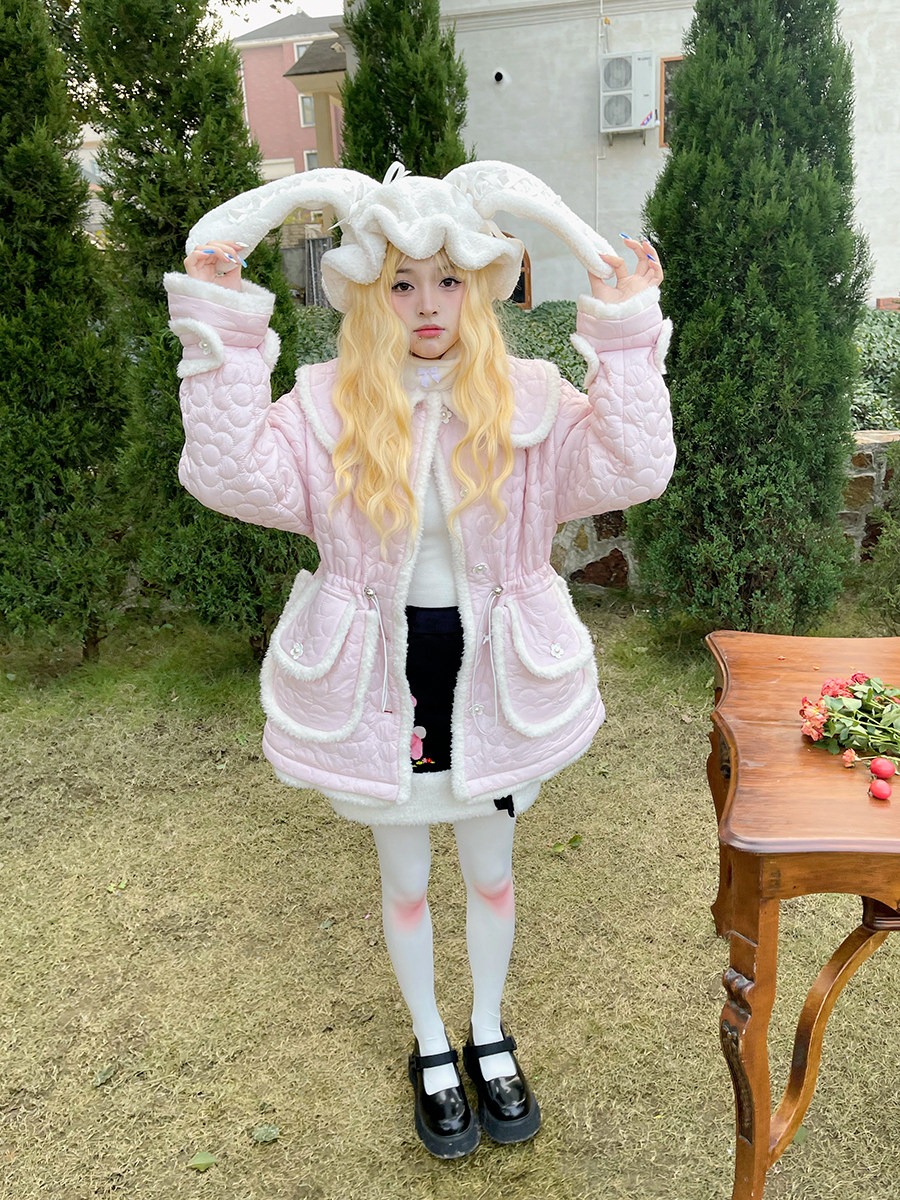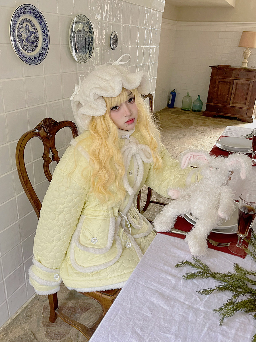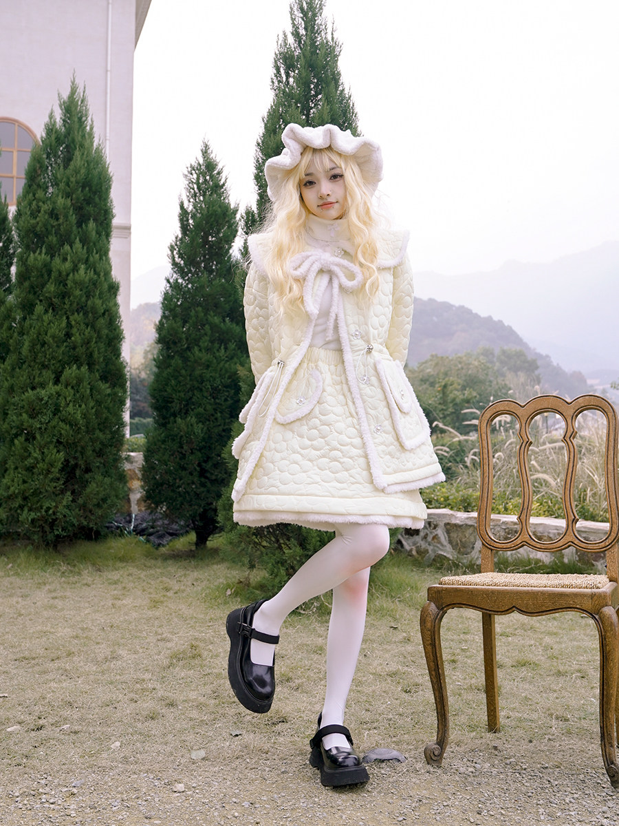 Flower Plush Bow Tie Puffer Jacket NA8302