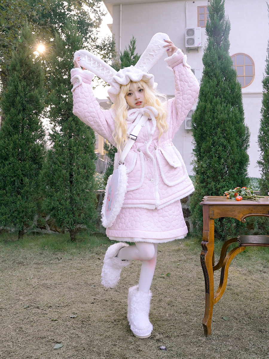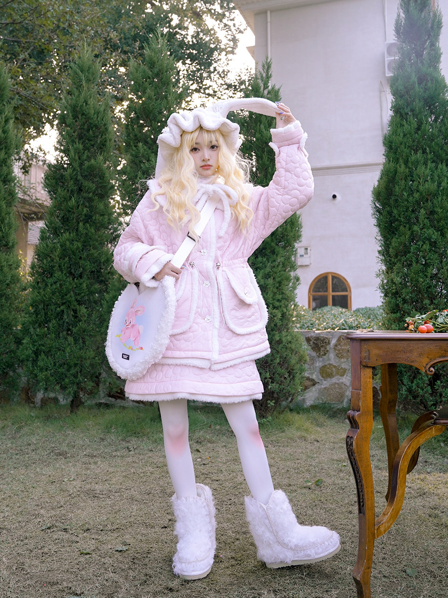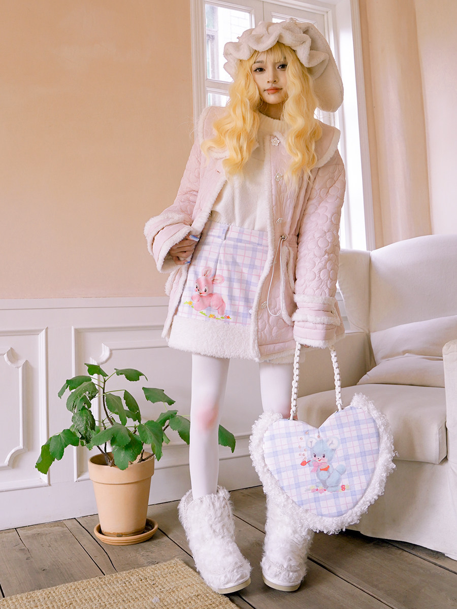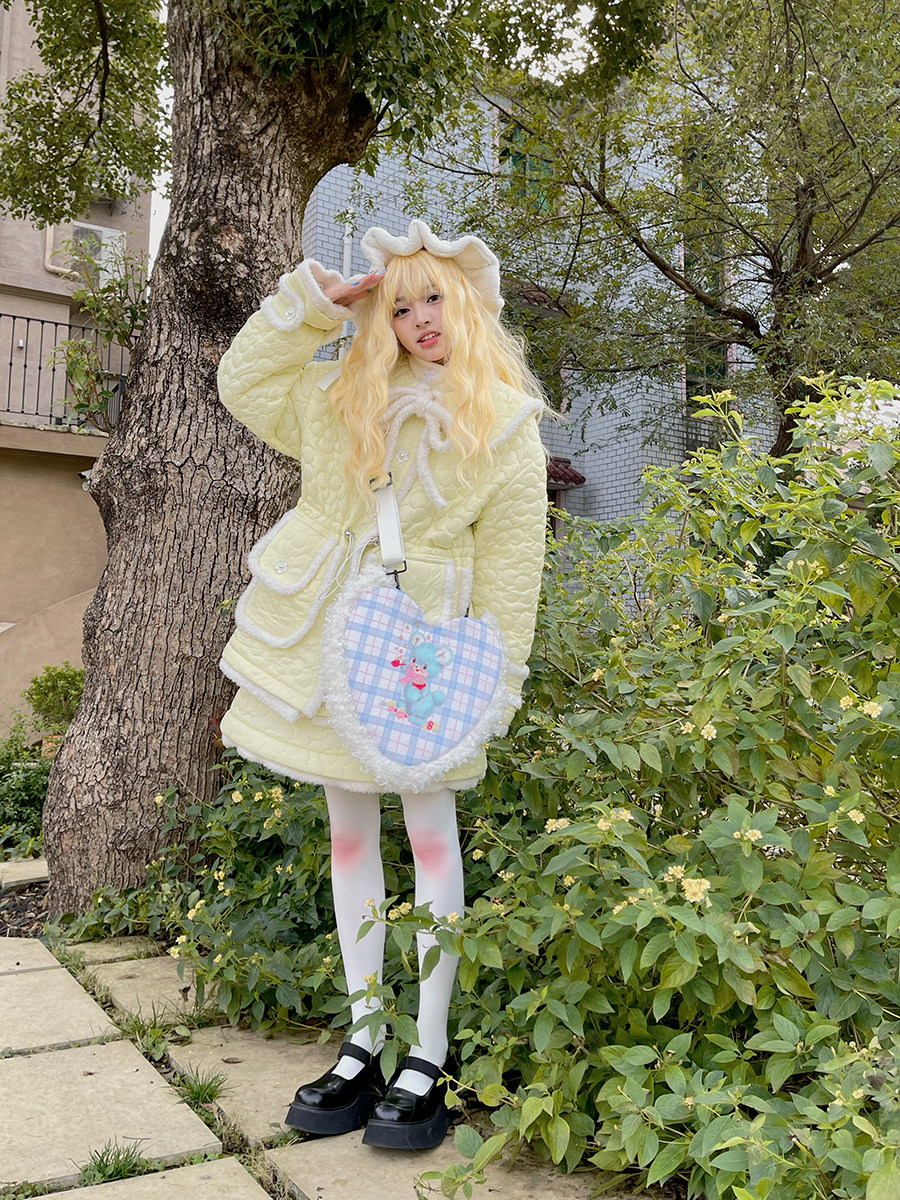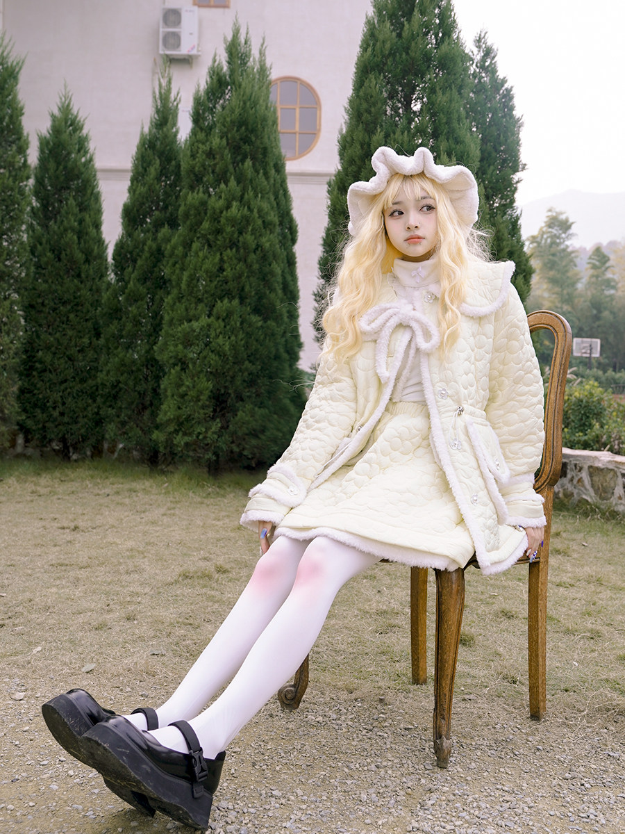 Flower Plush Bow Tie Puffer Jacket NA8302