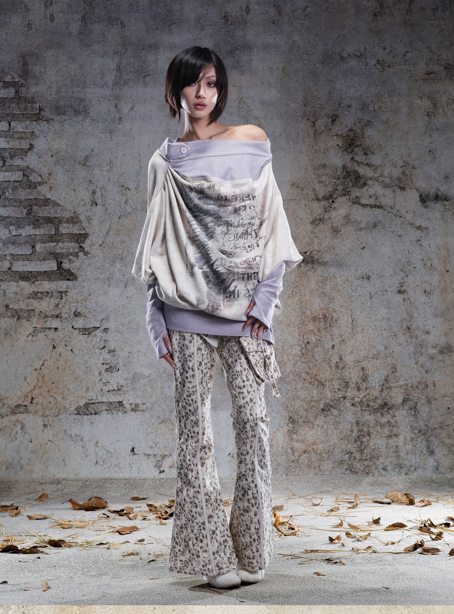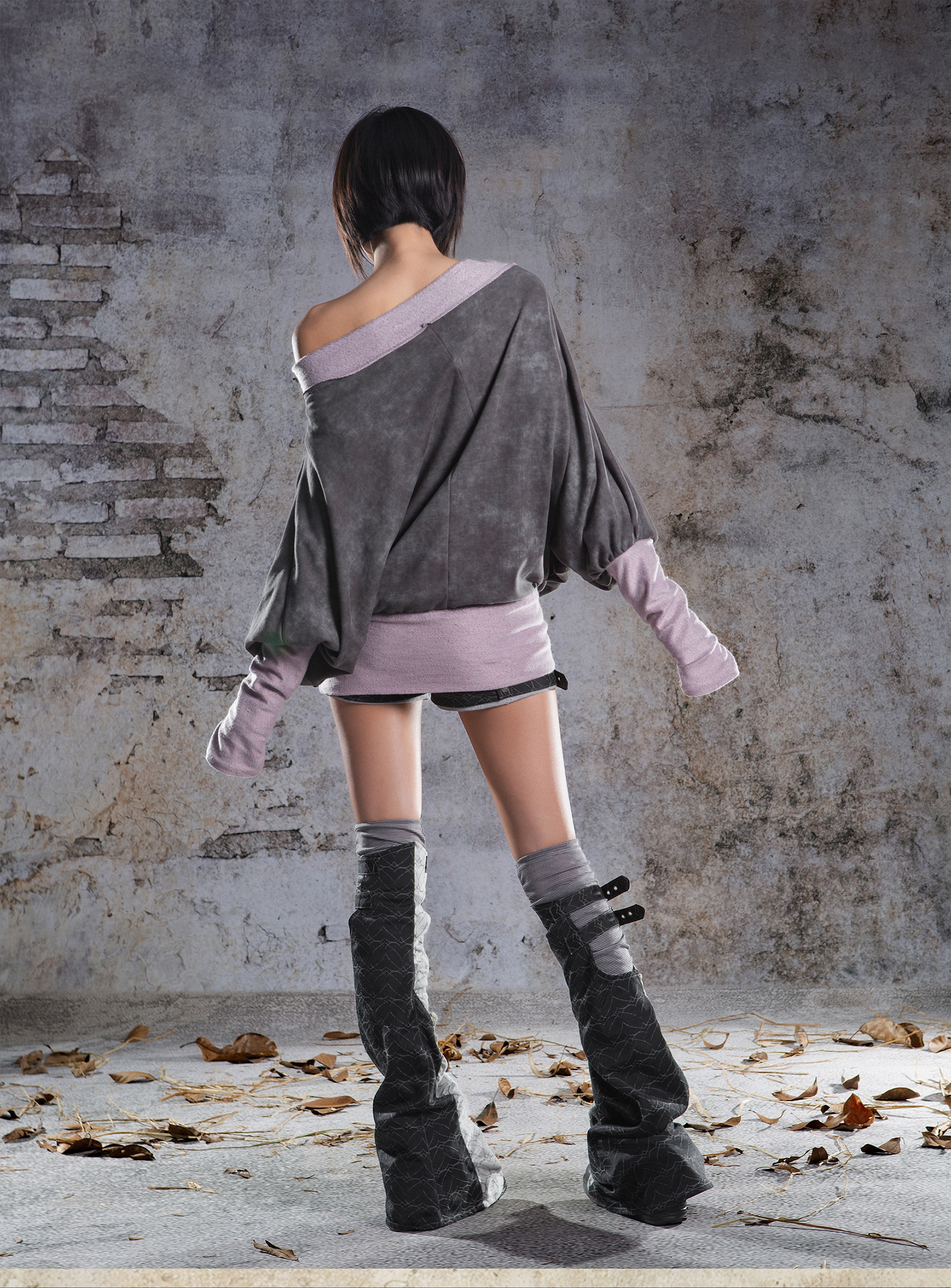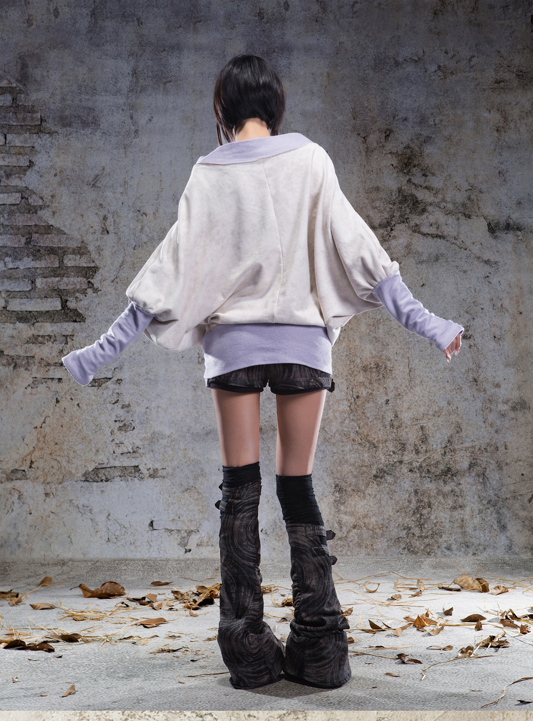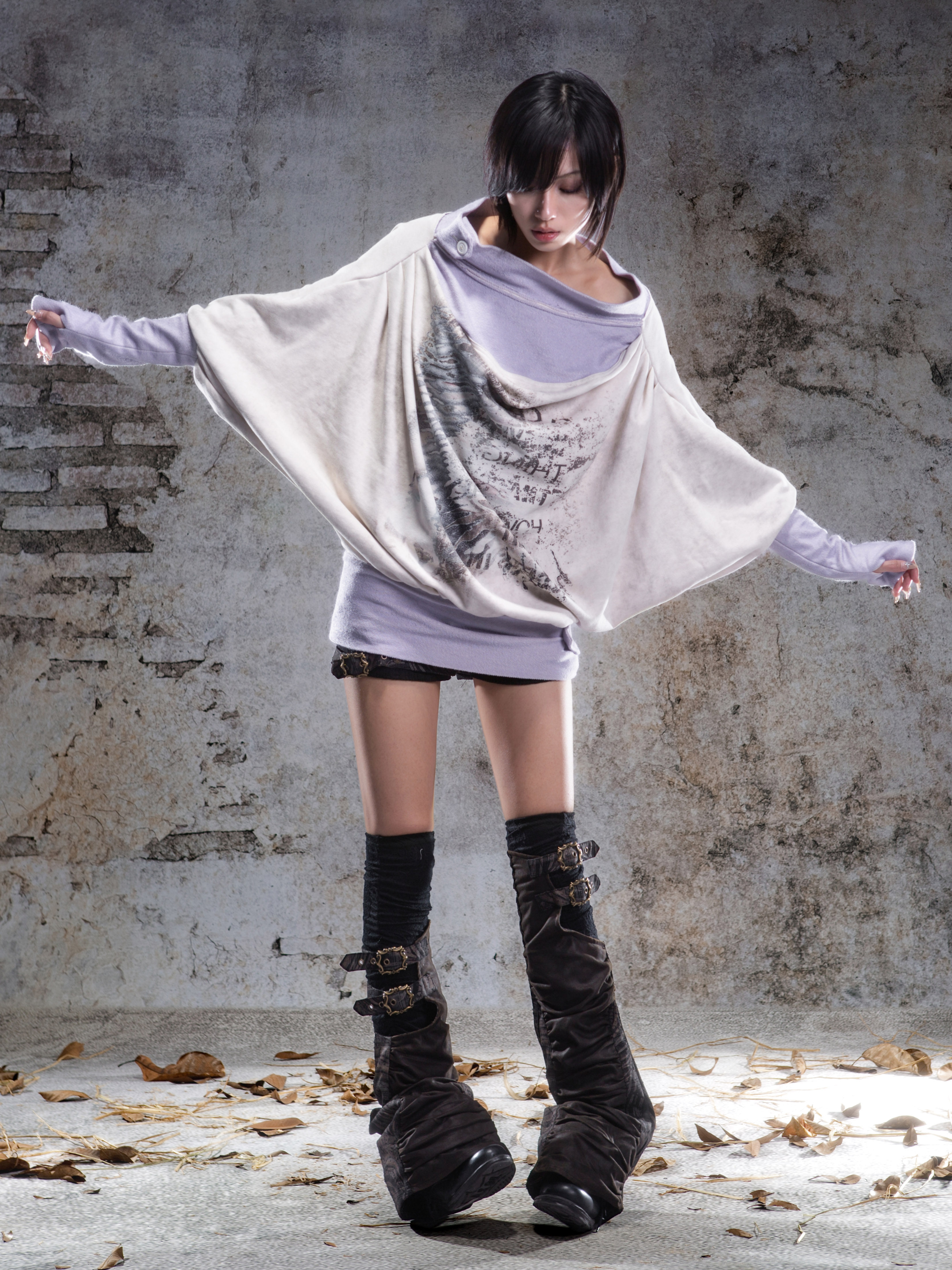 Original Fake Two-Piece Oversize Batwing Sleeve Floral Off-Shoulder Long Sleeve T-Shirts NA8353