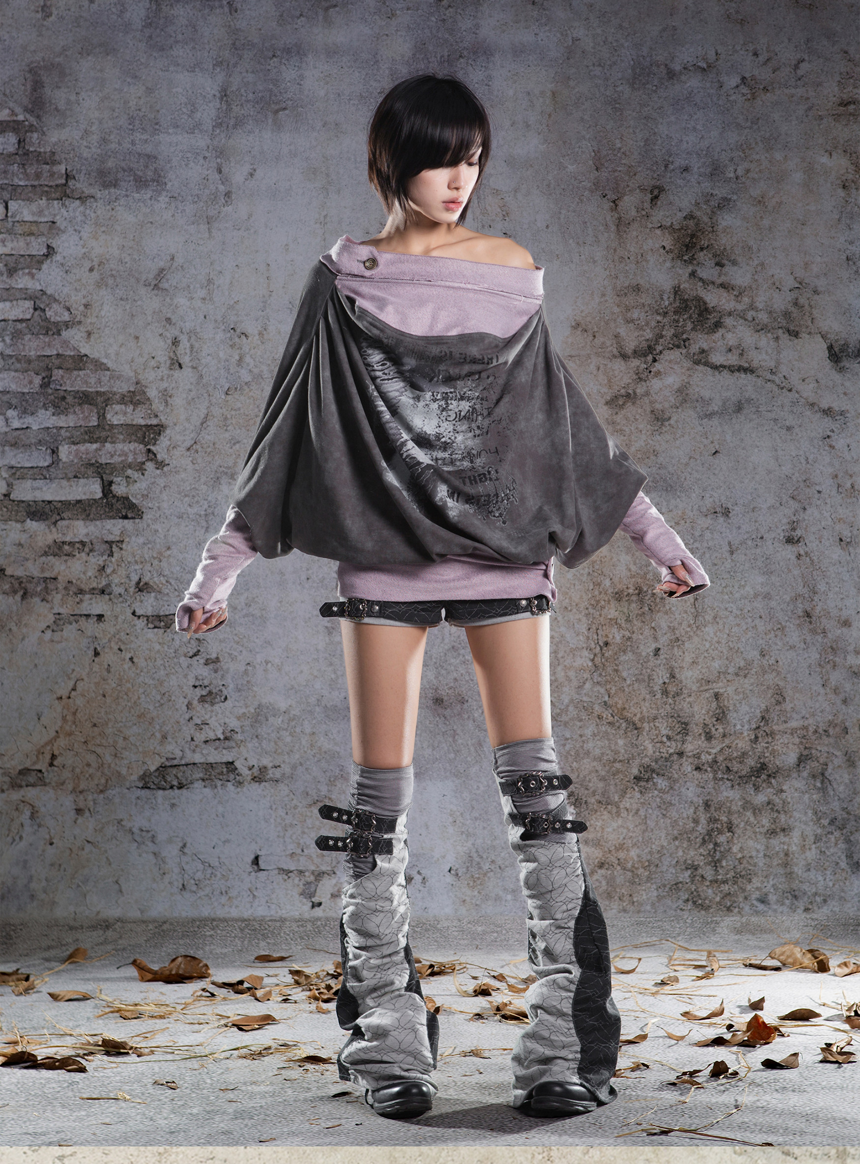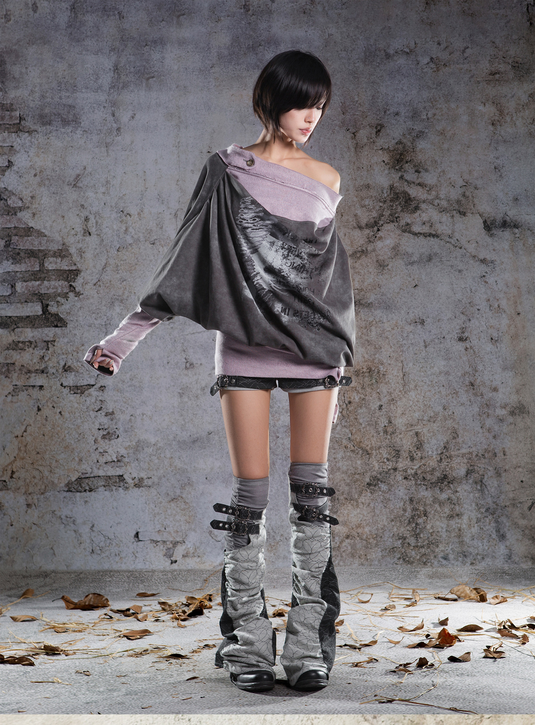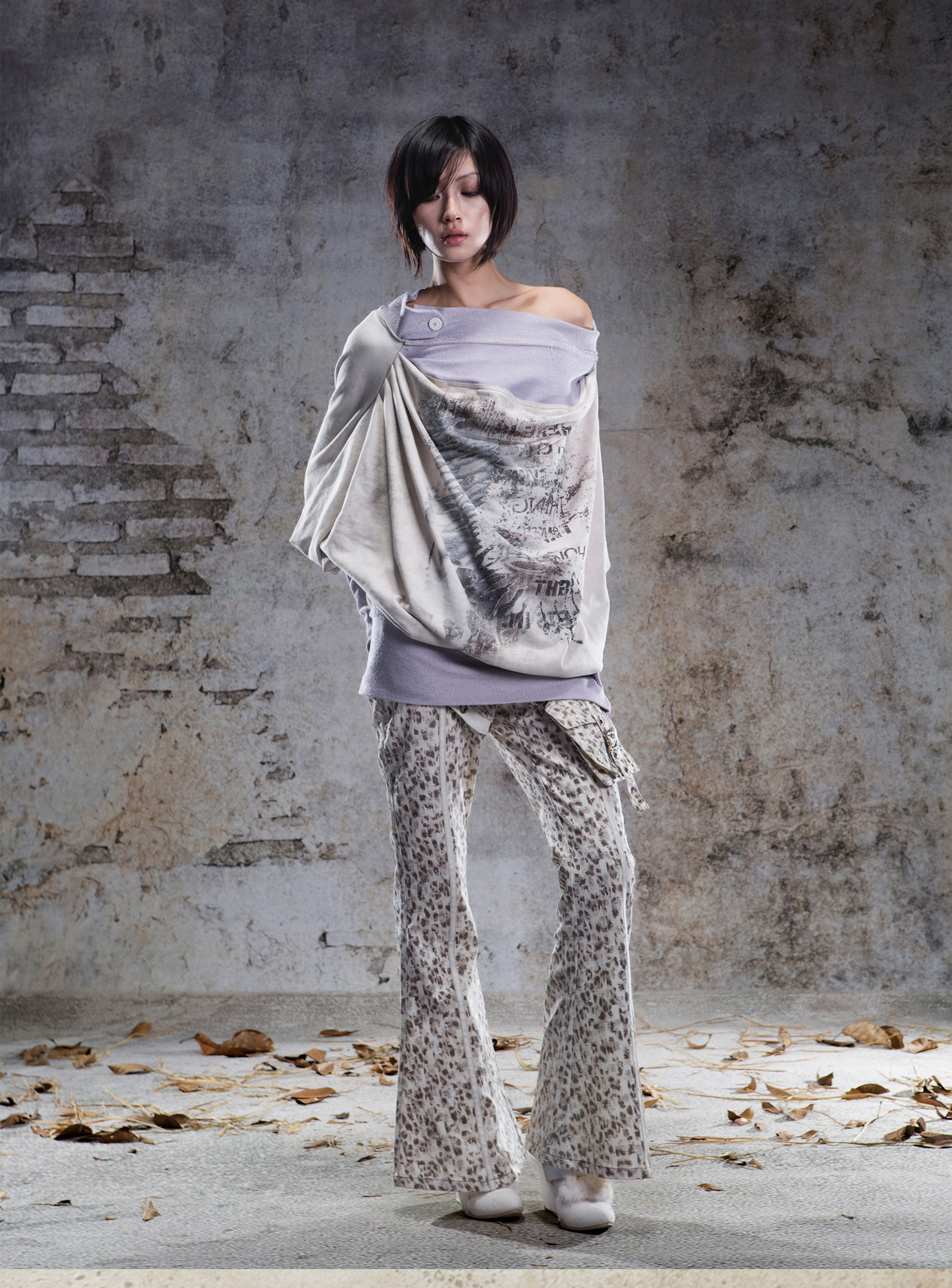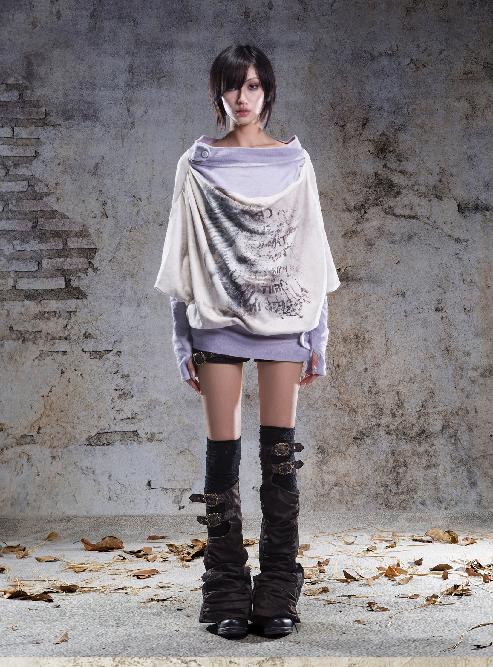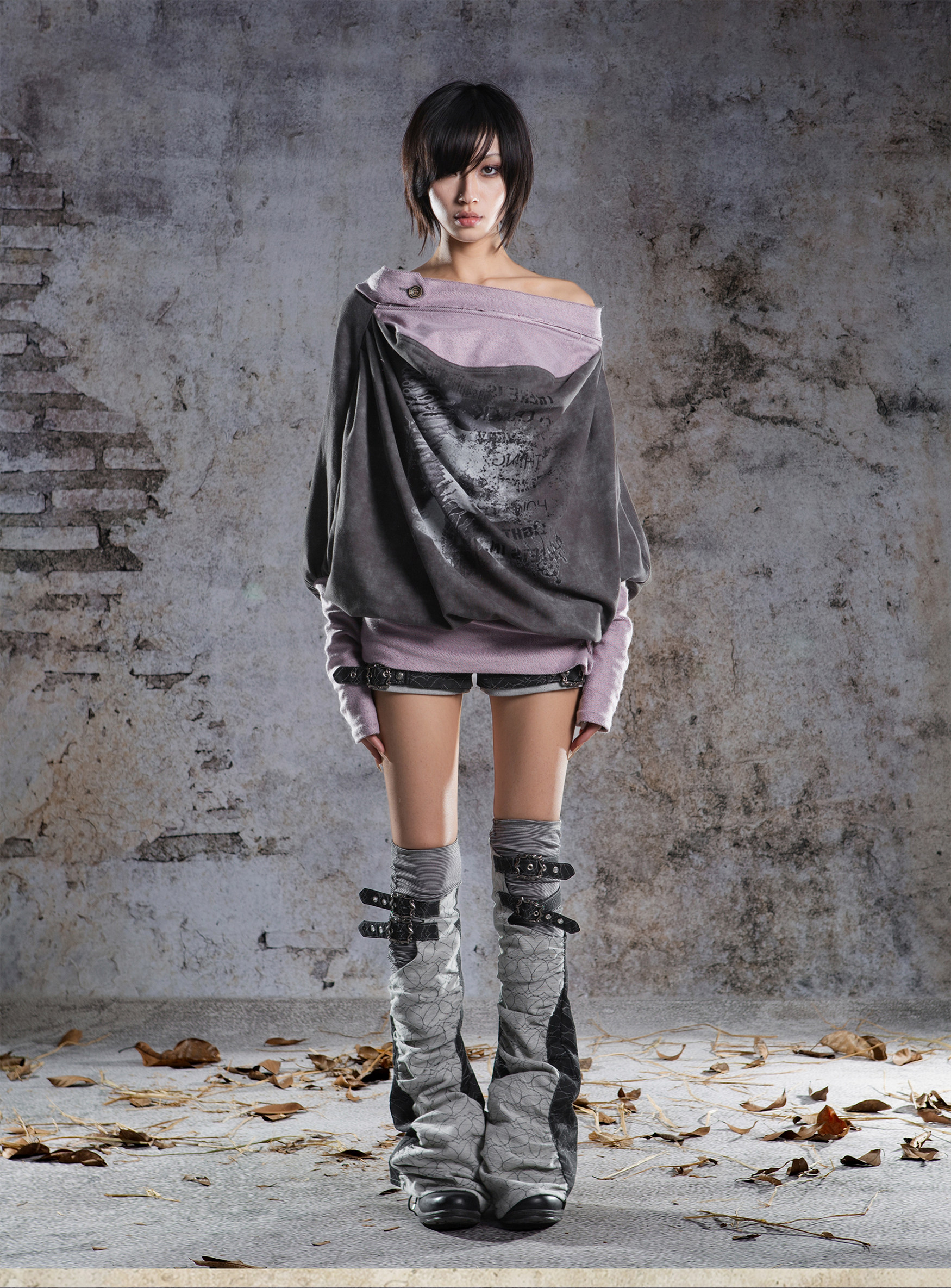 Original Fake Two-Piece Oversize Batwing Sleeve Floral Off-Shoulder Long Sleeve T-Shirts NA8353