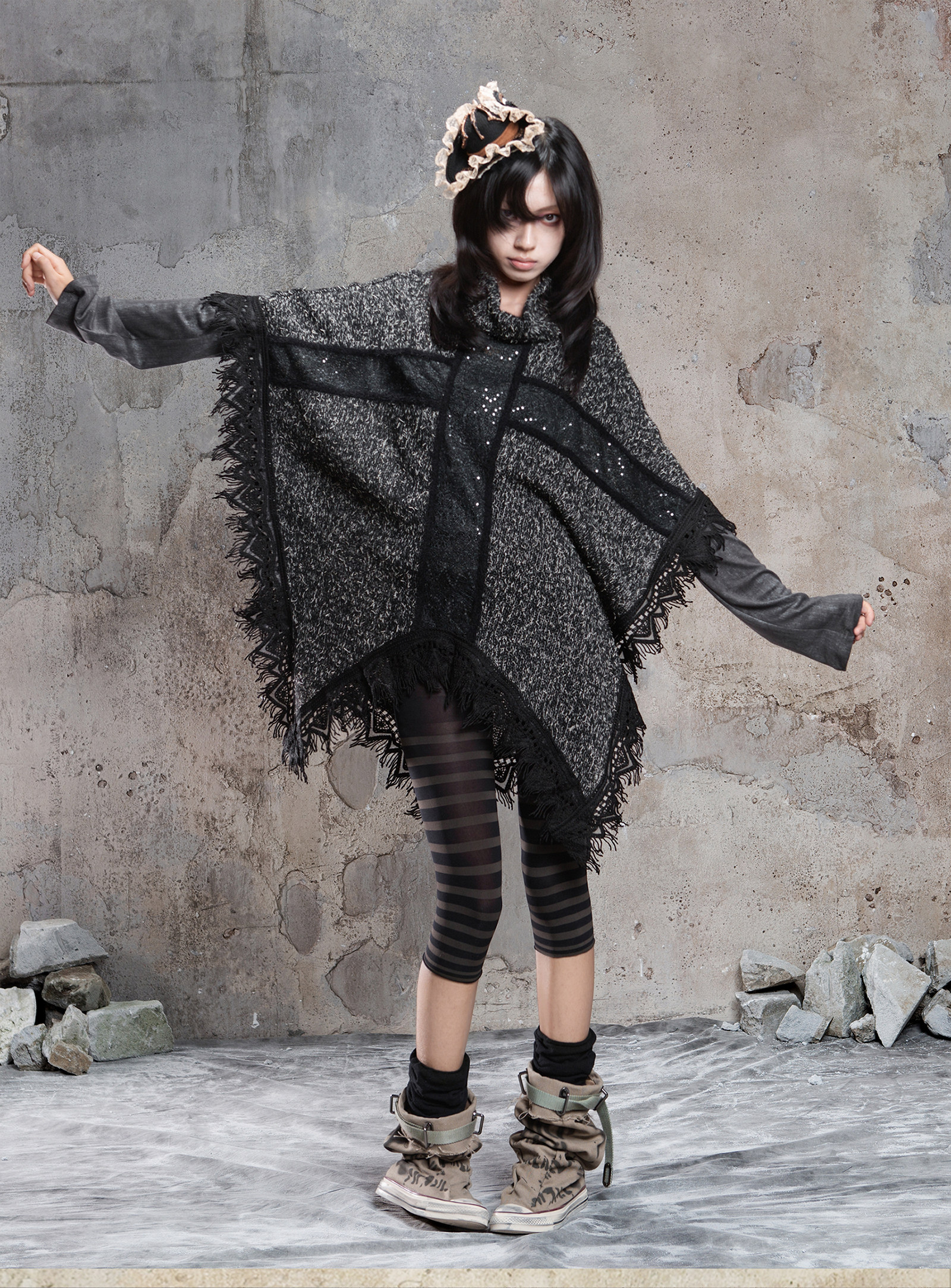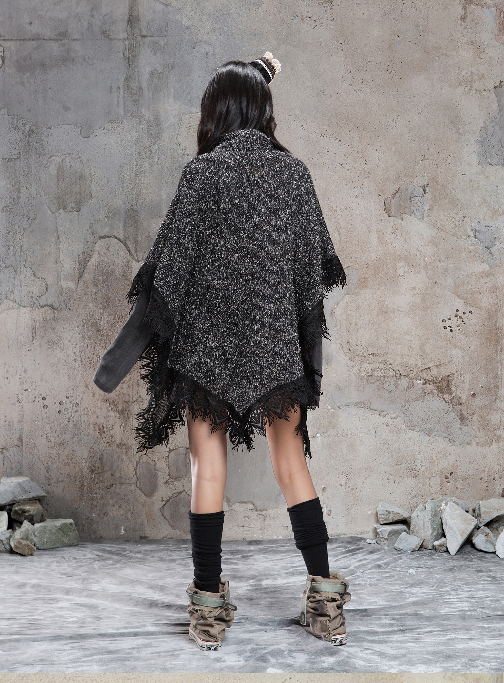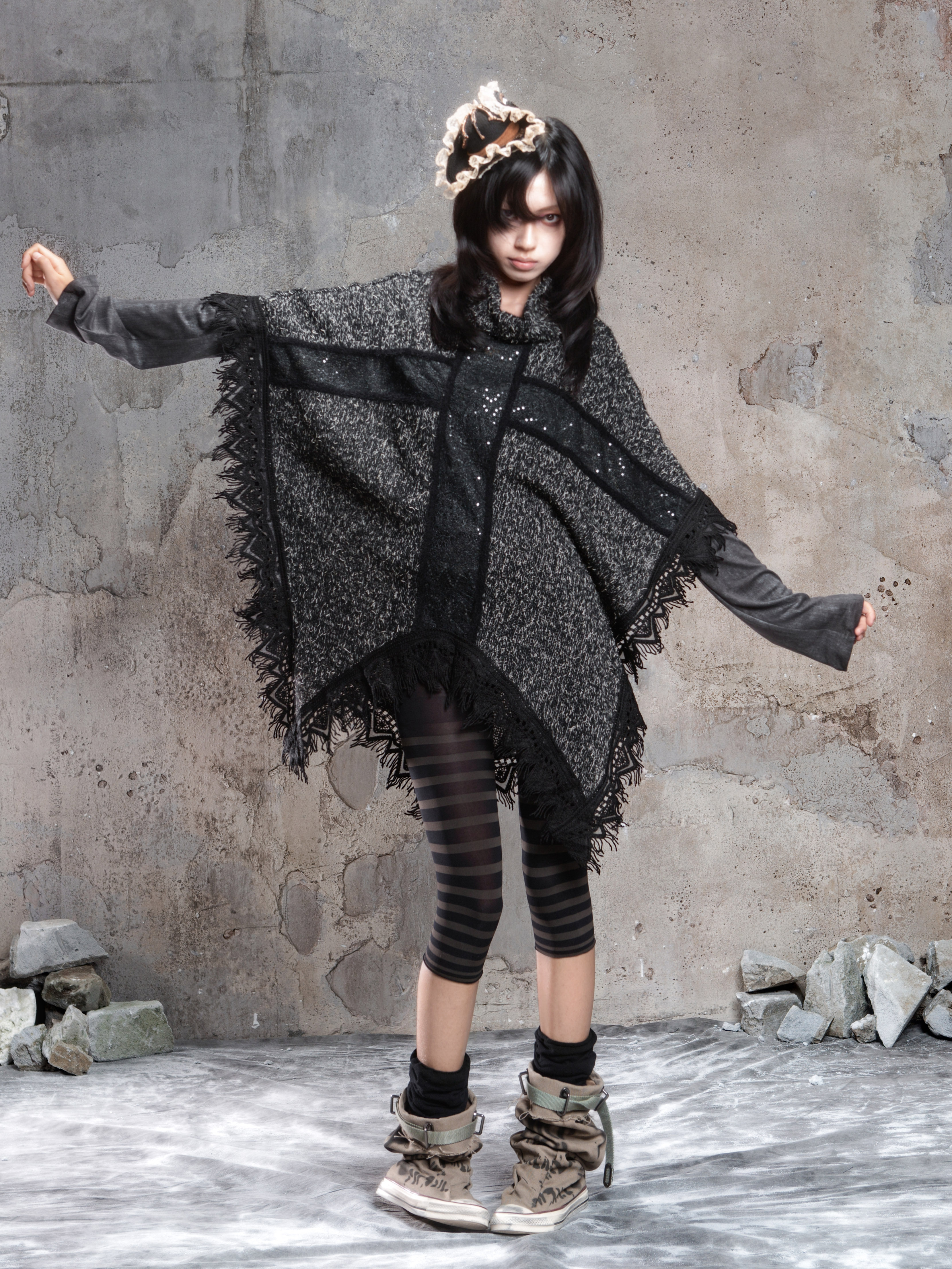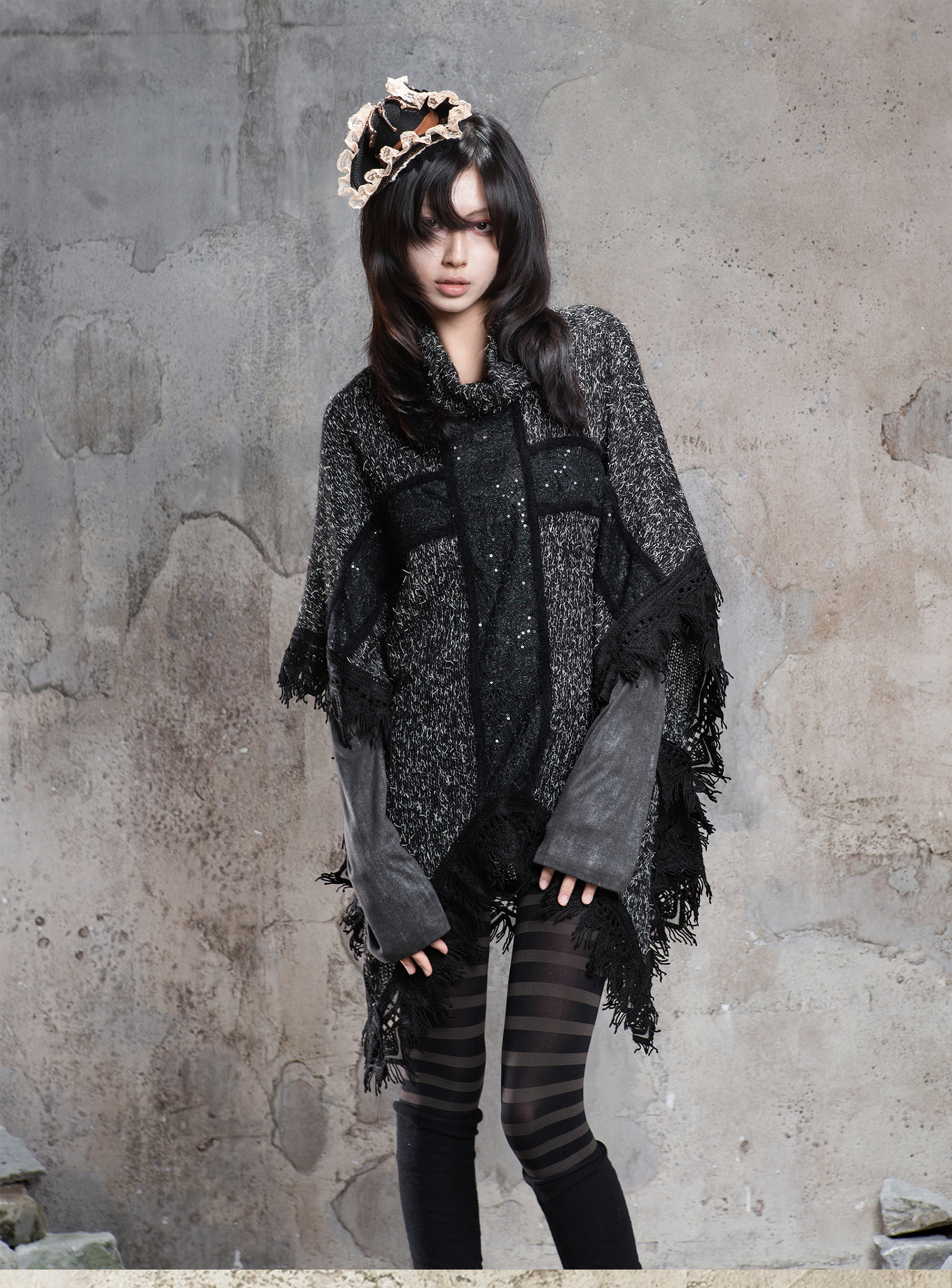 Punk Cross Cape Asymmetric Fringe Knit Sweater NA8355