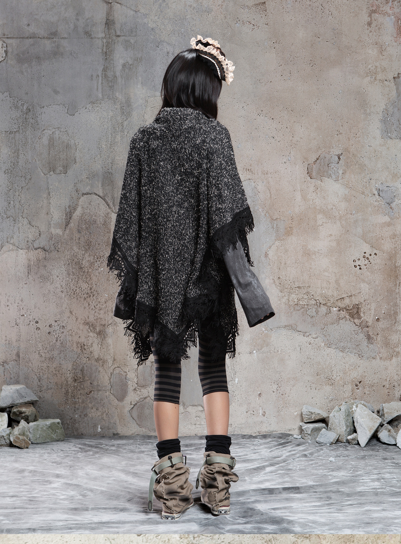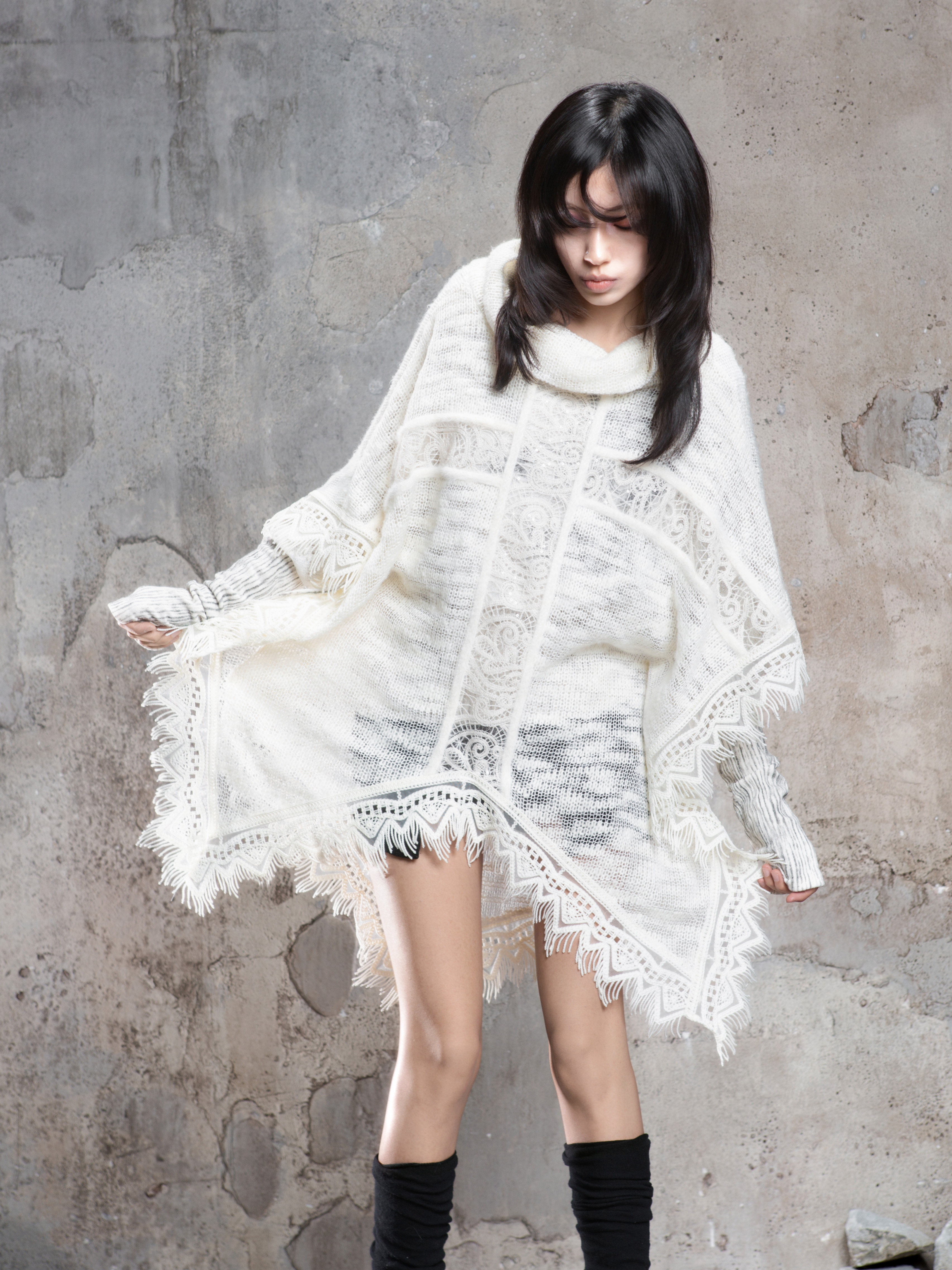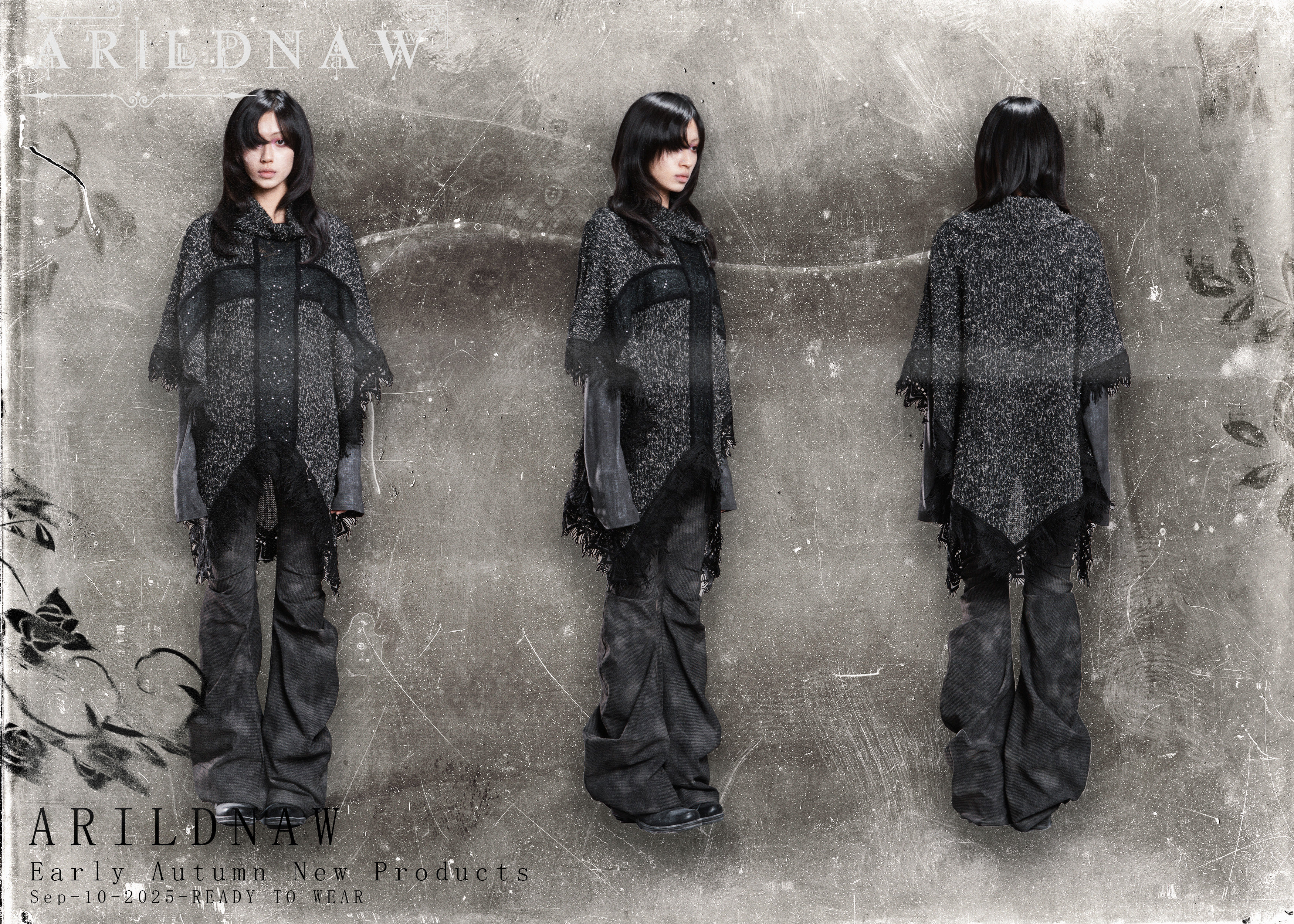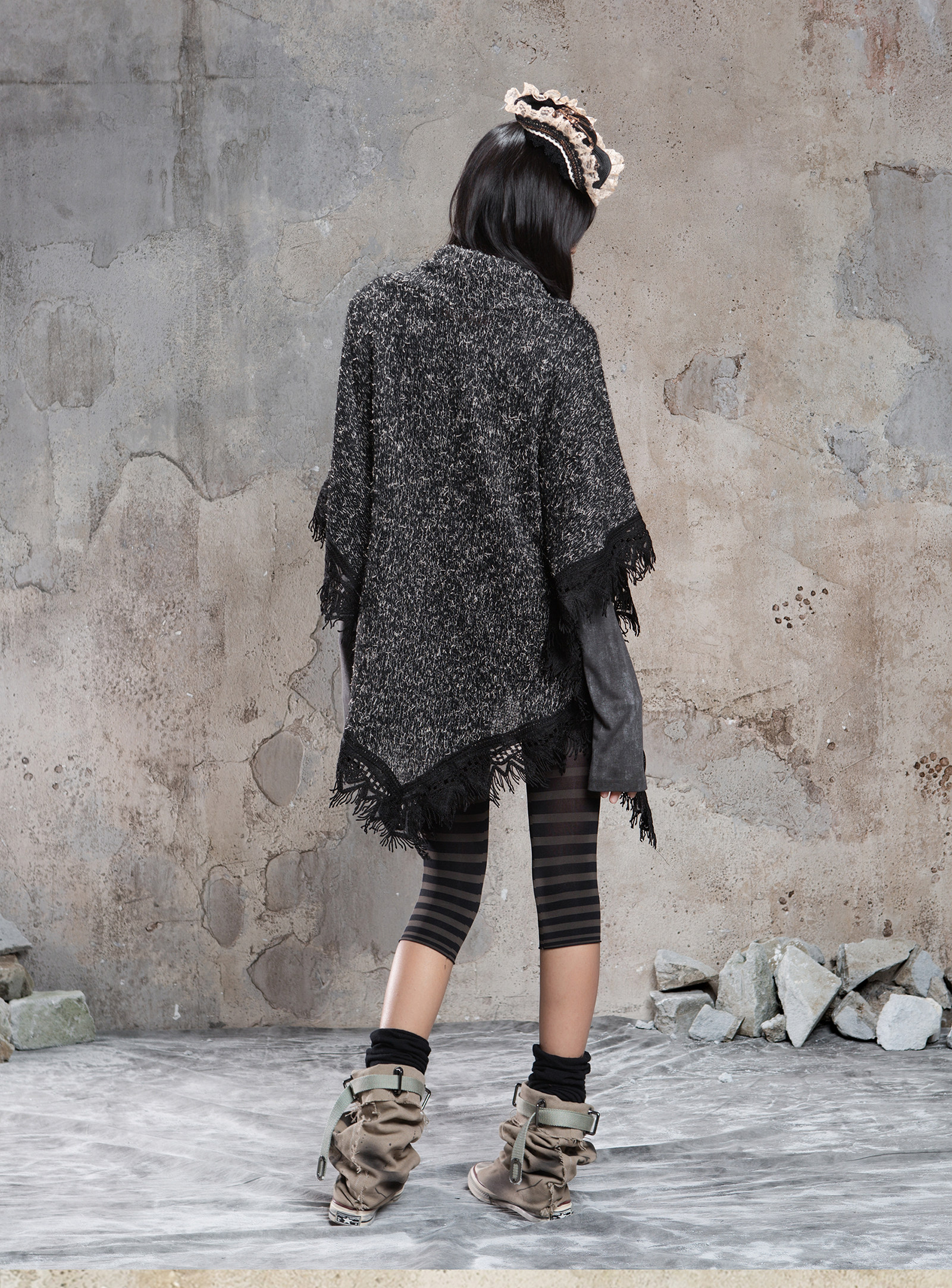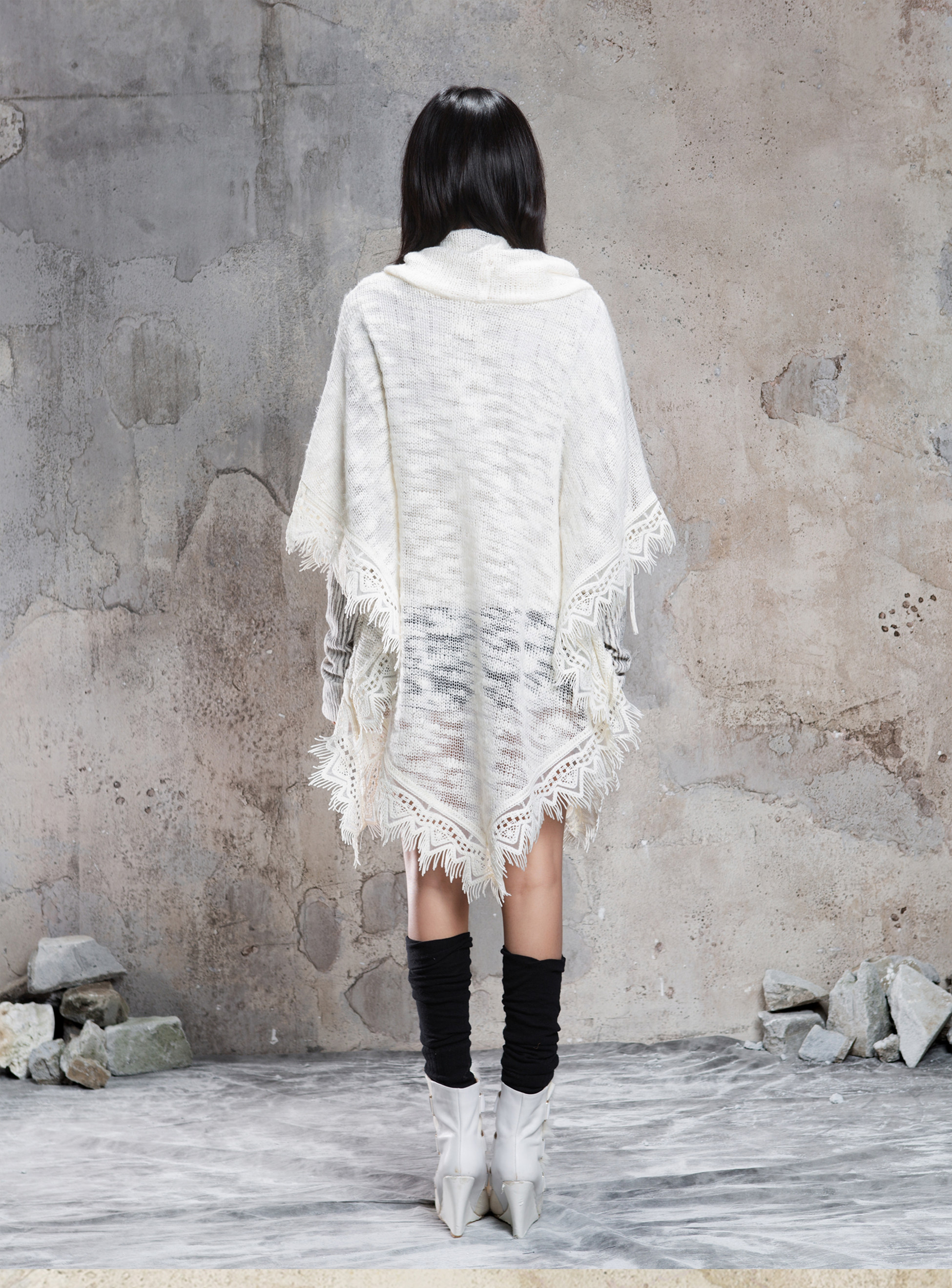 Punk Cross Cape Asymmetric Fringe Knit Sweater NA8355