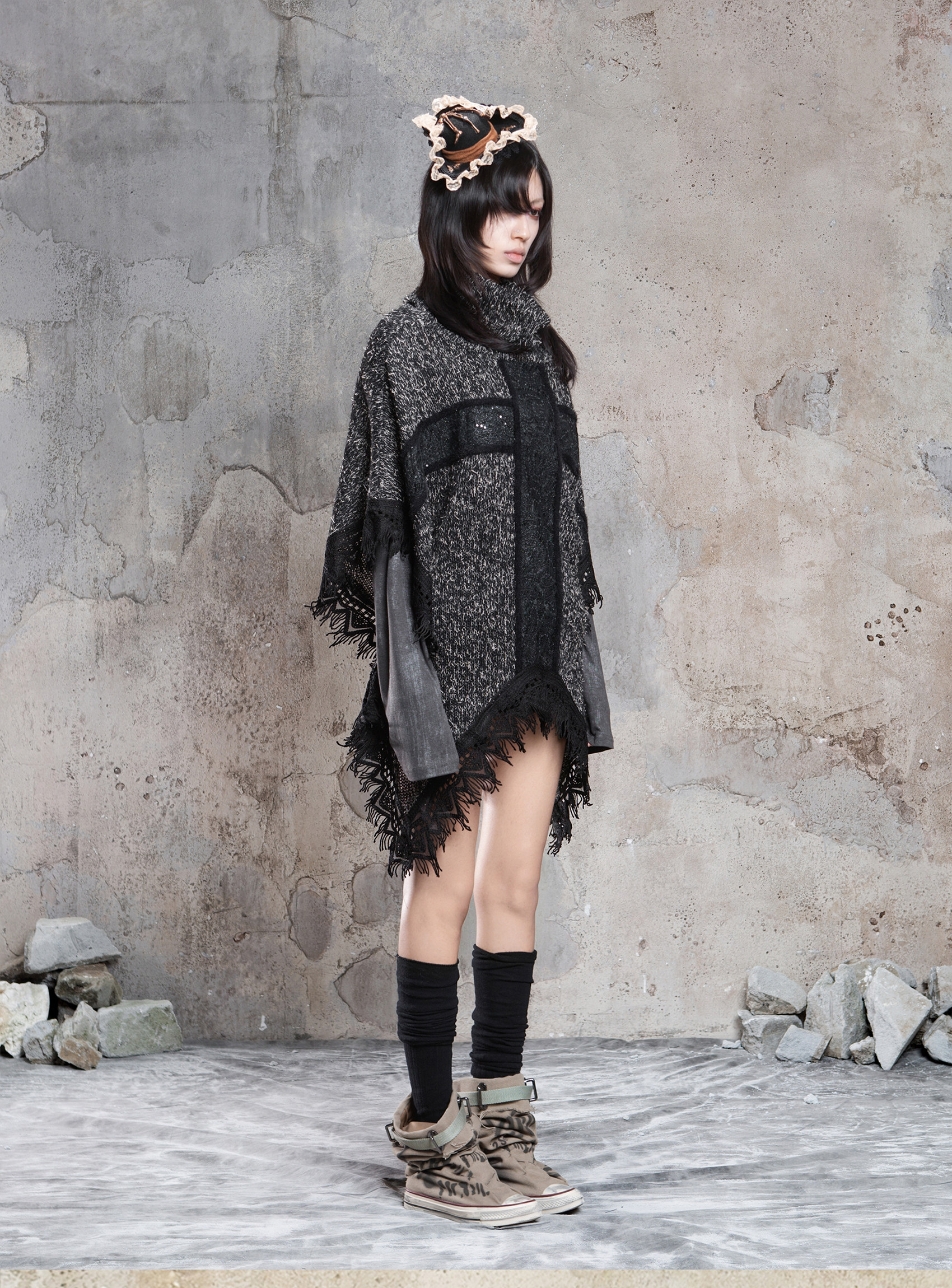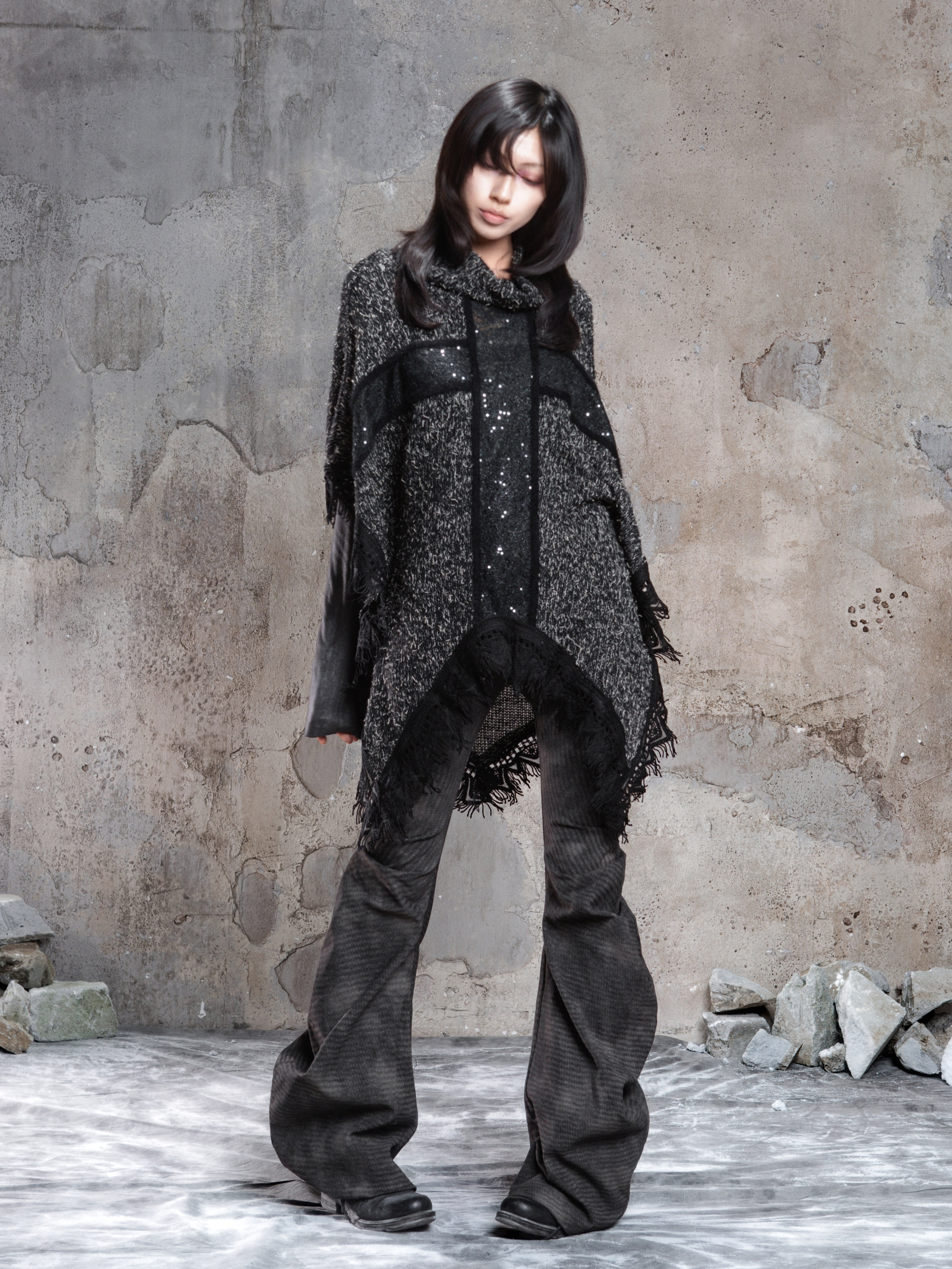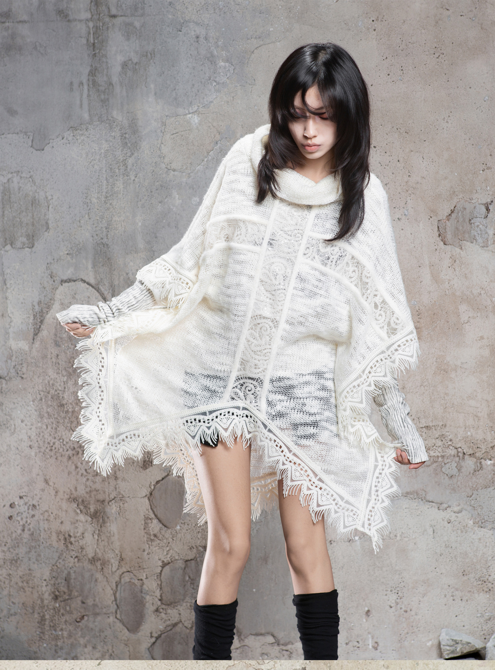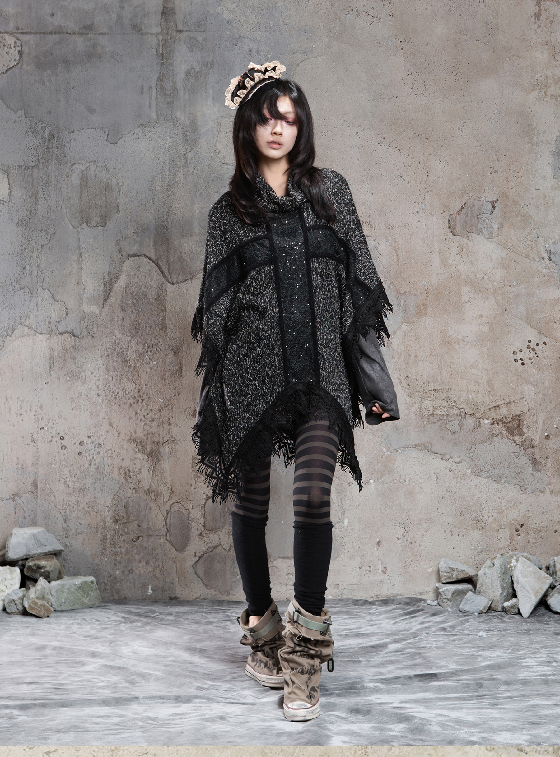 Punk Cross Cape Asymmetric Fringe Knit Sweater NA8355