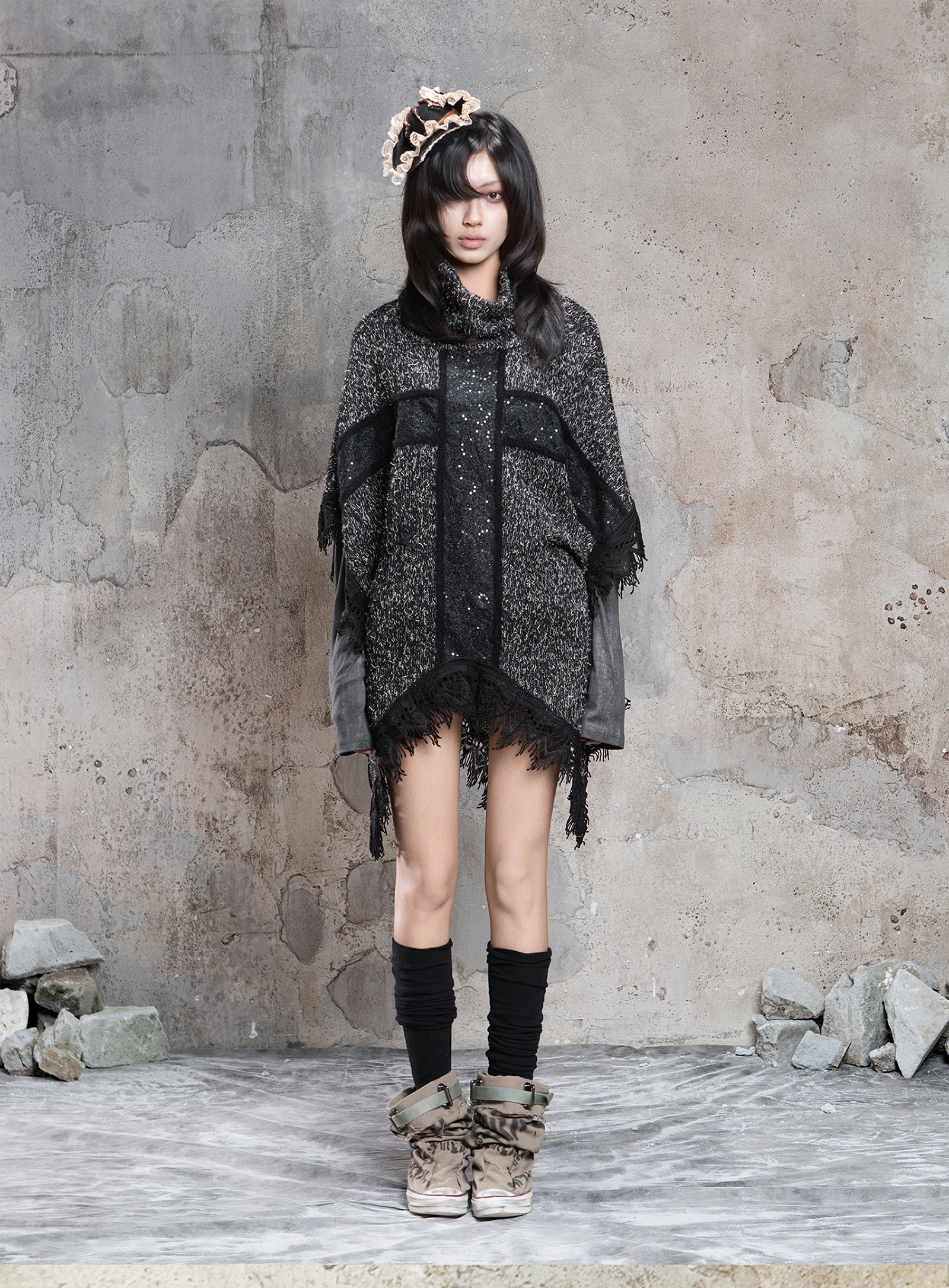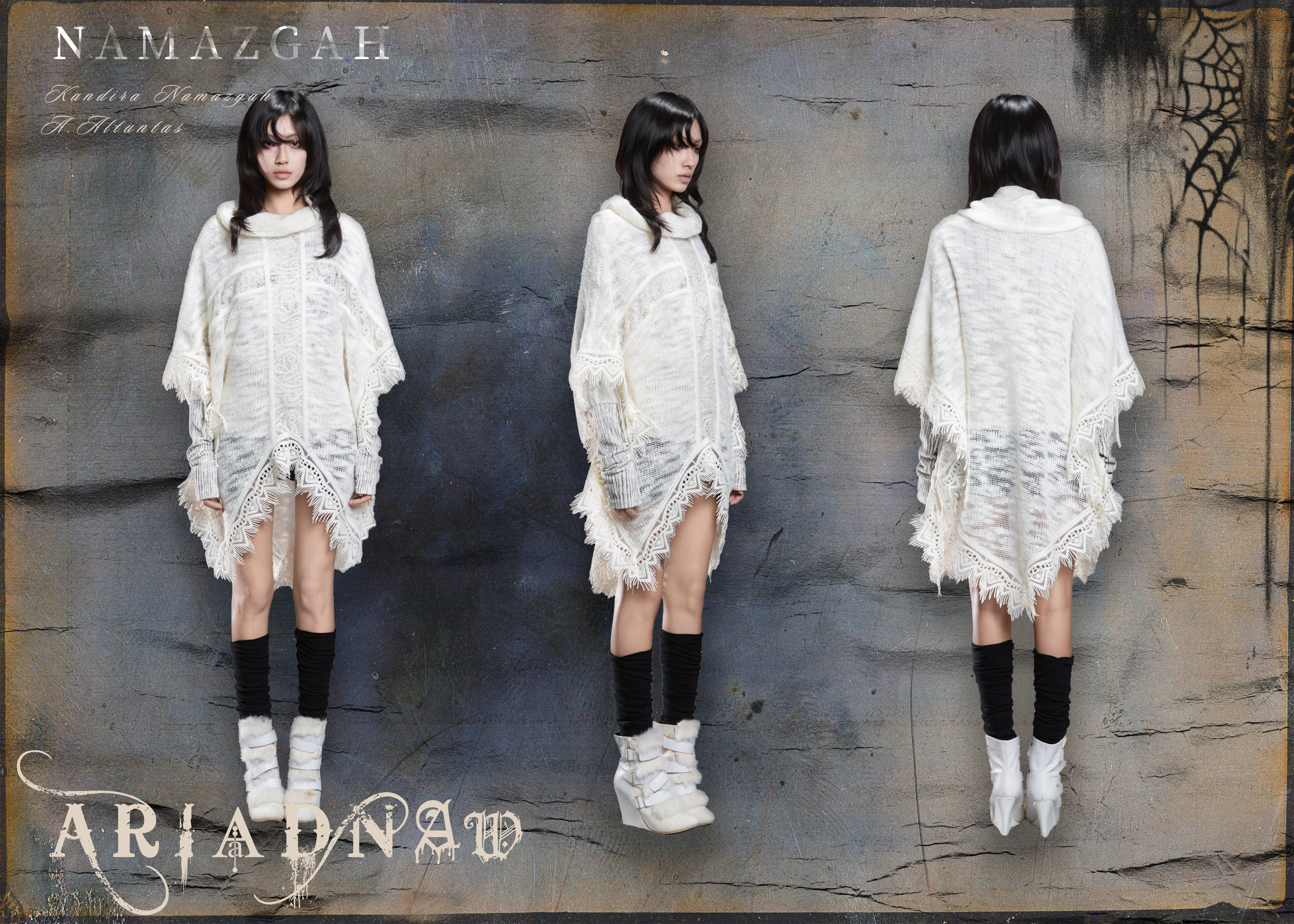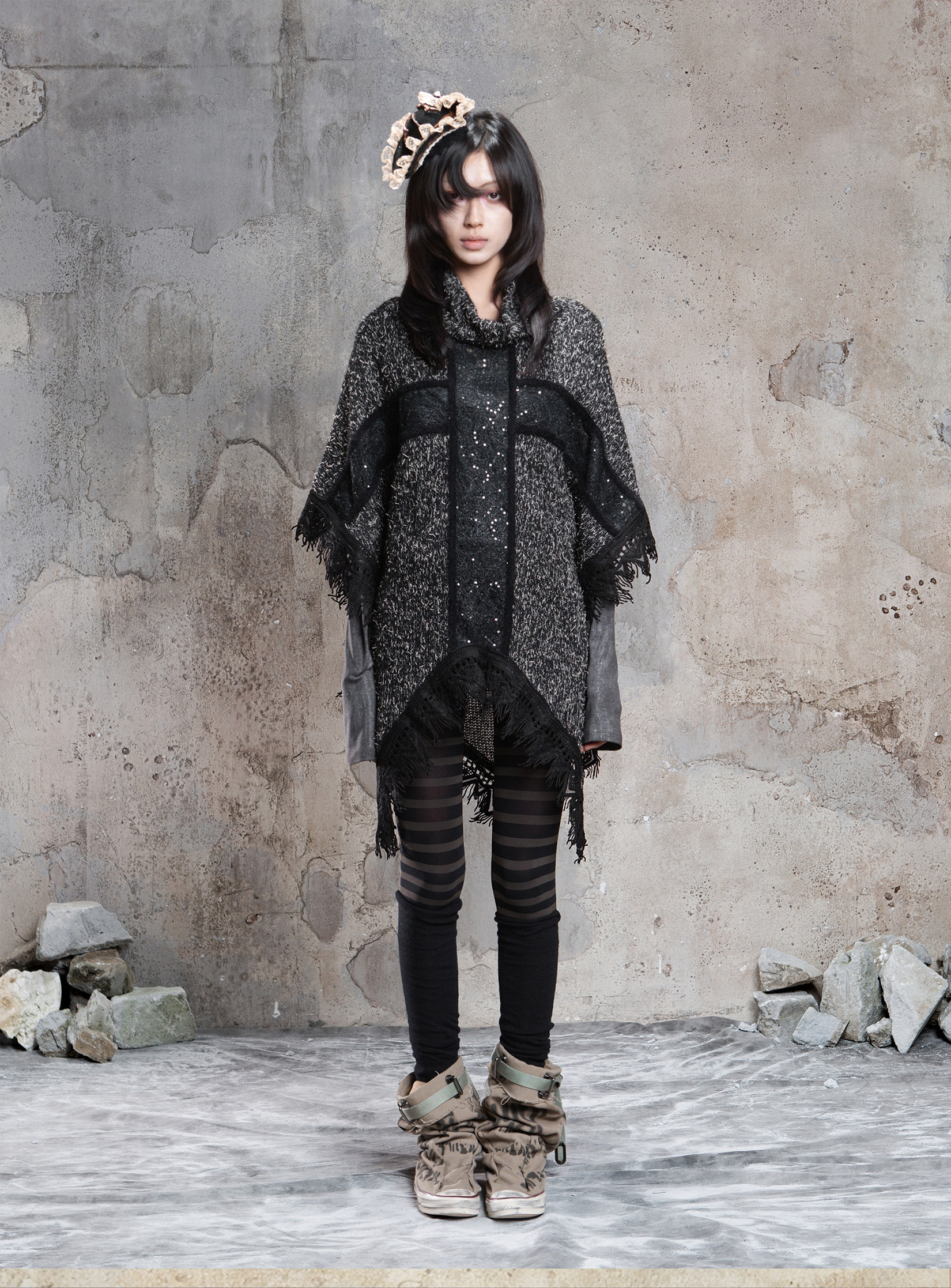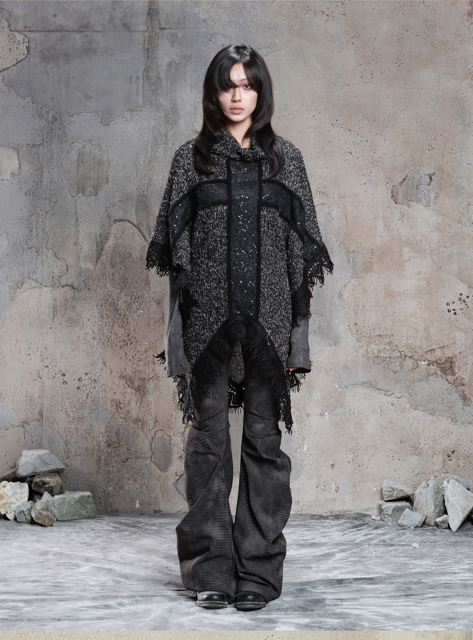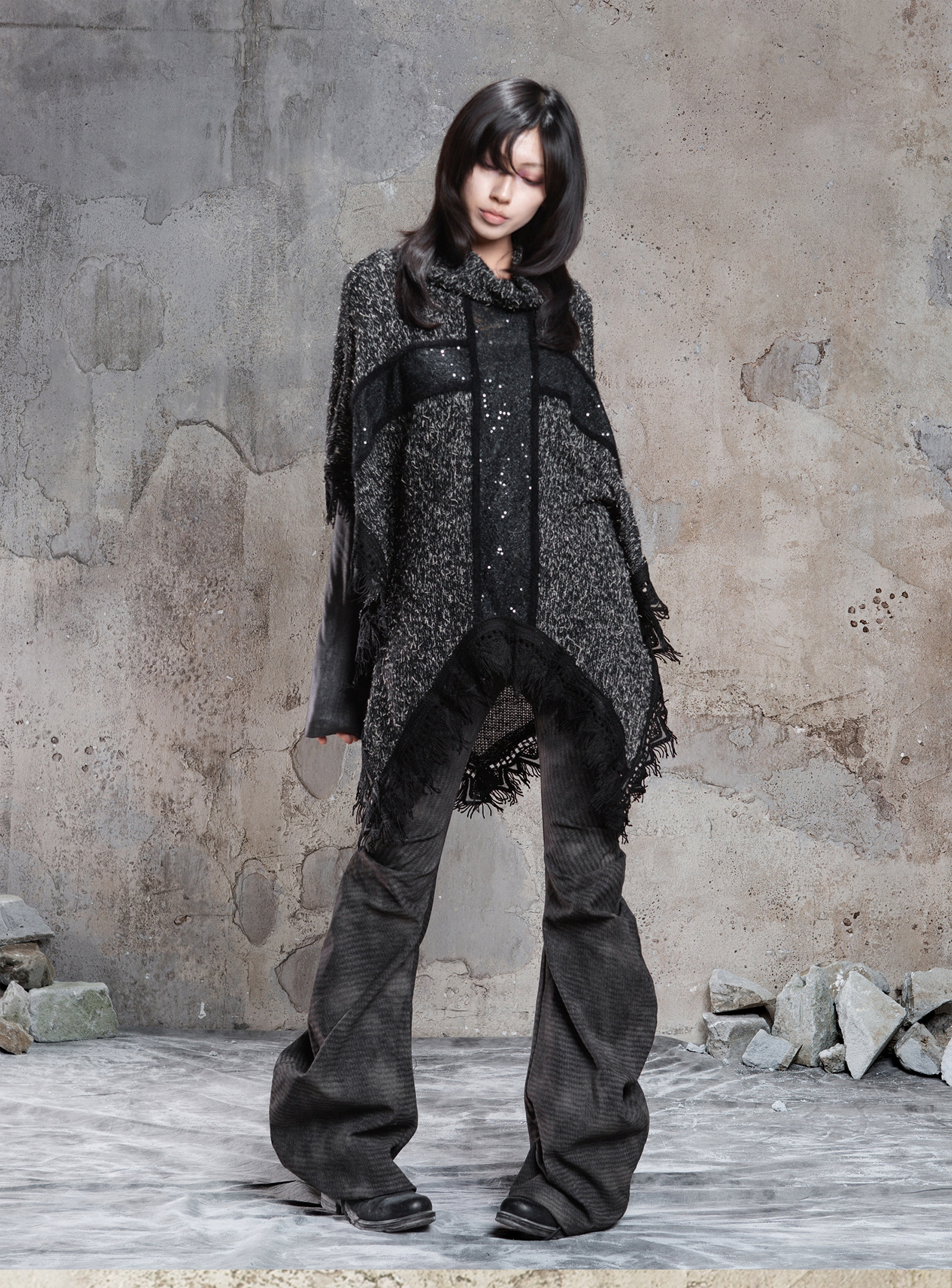 Punk Cross Cape Asymmetric Fringe Knit Sweater NA8355