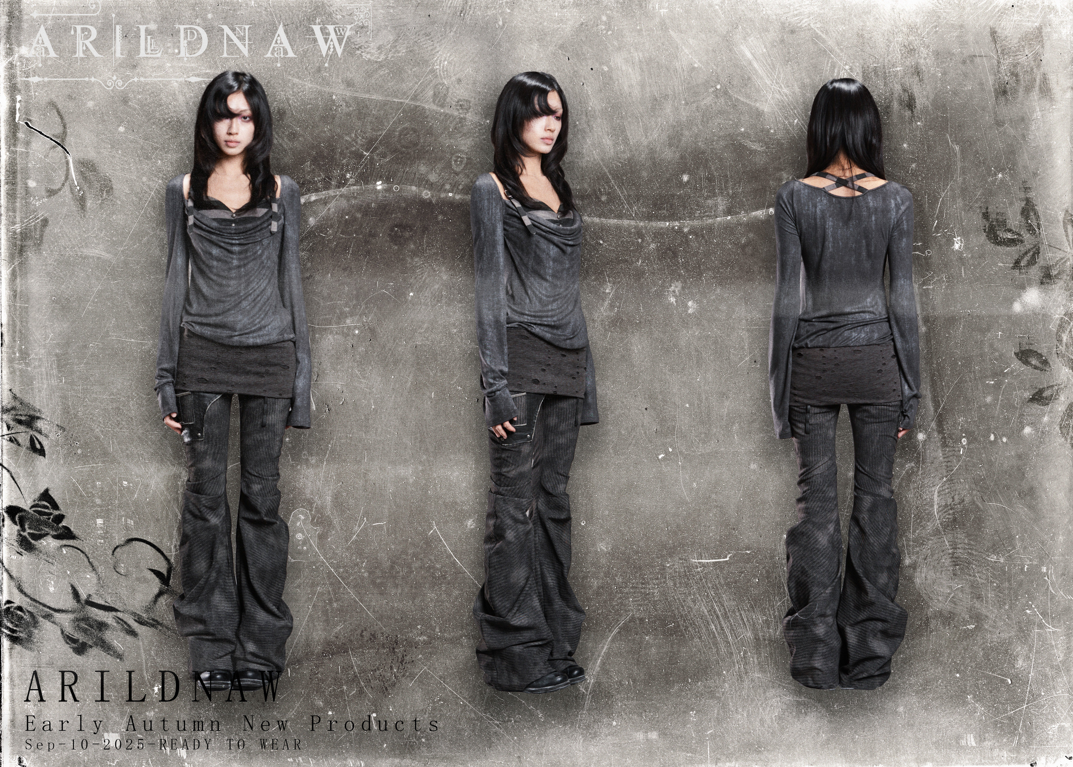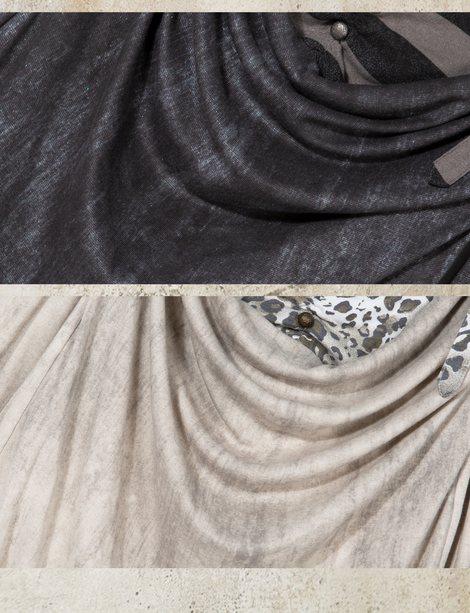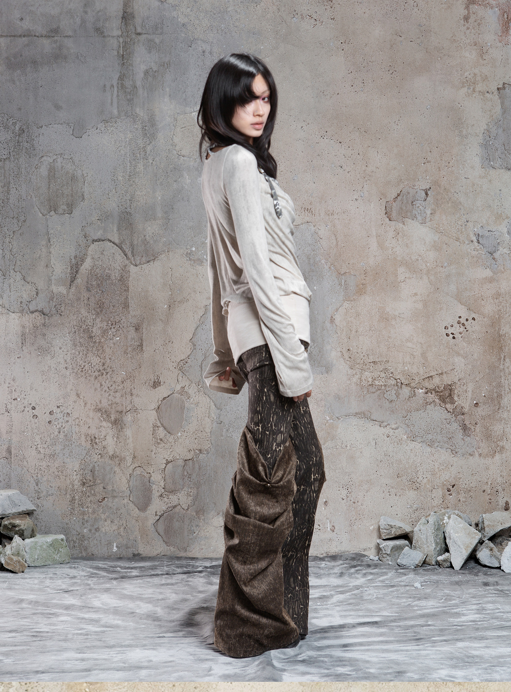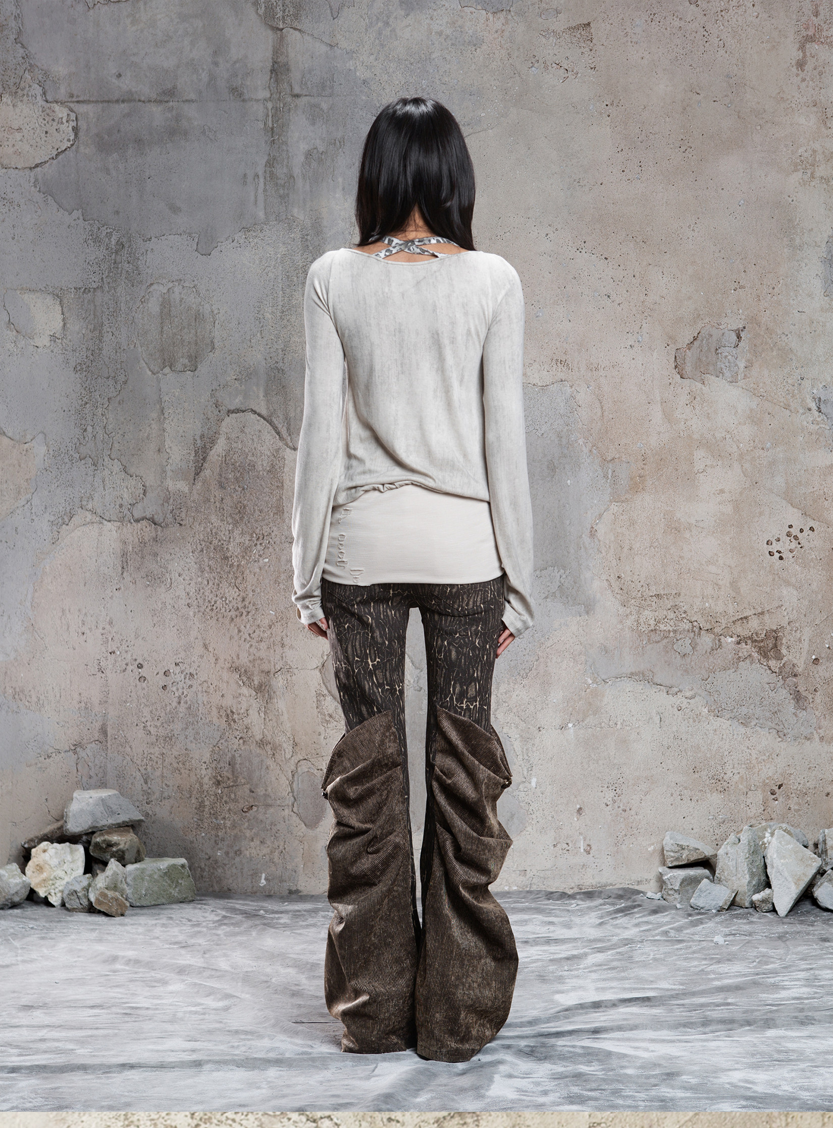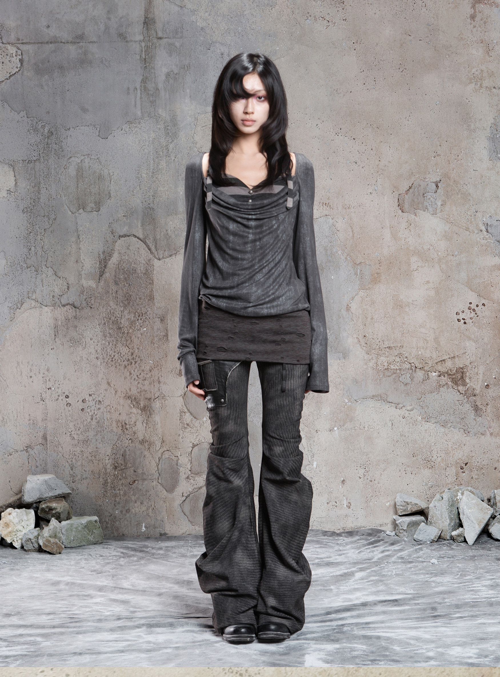 Fake Two-Piece Draped Pleated Mid- Length Slimming Long Sleeve T-Shirts NA8357
