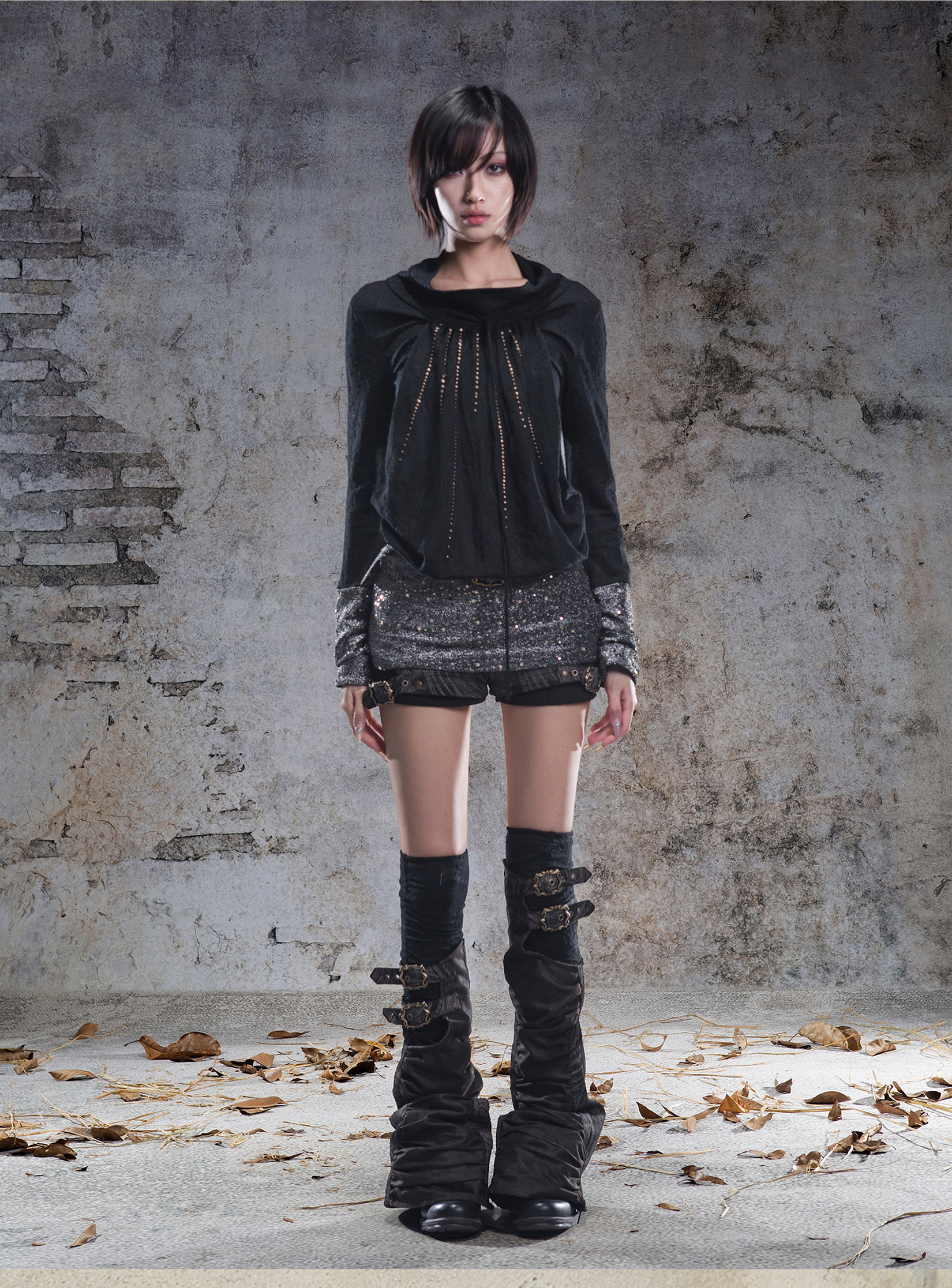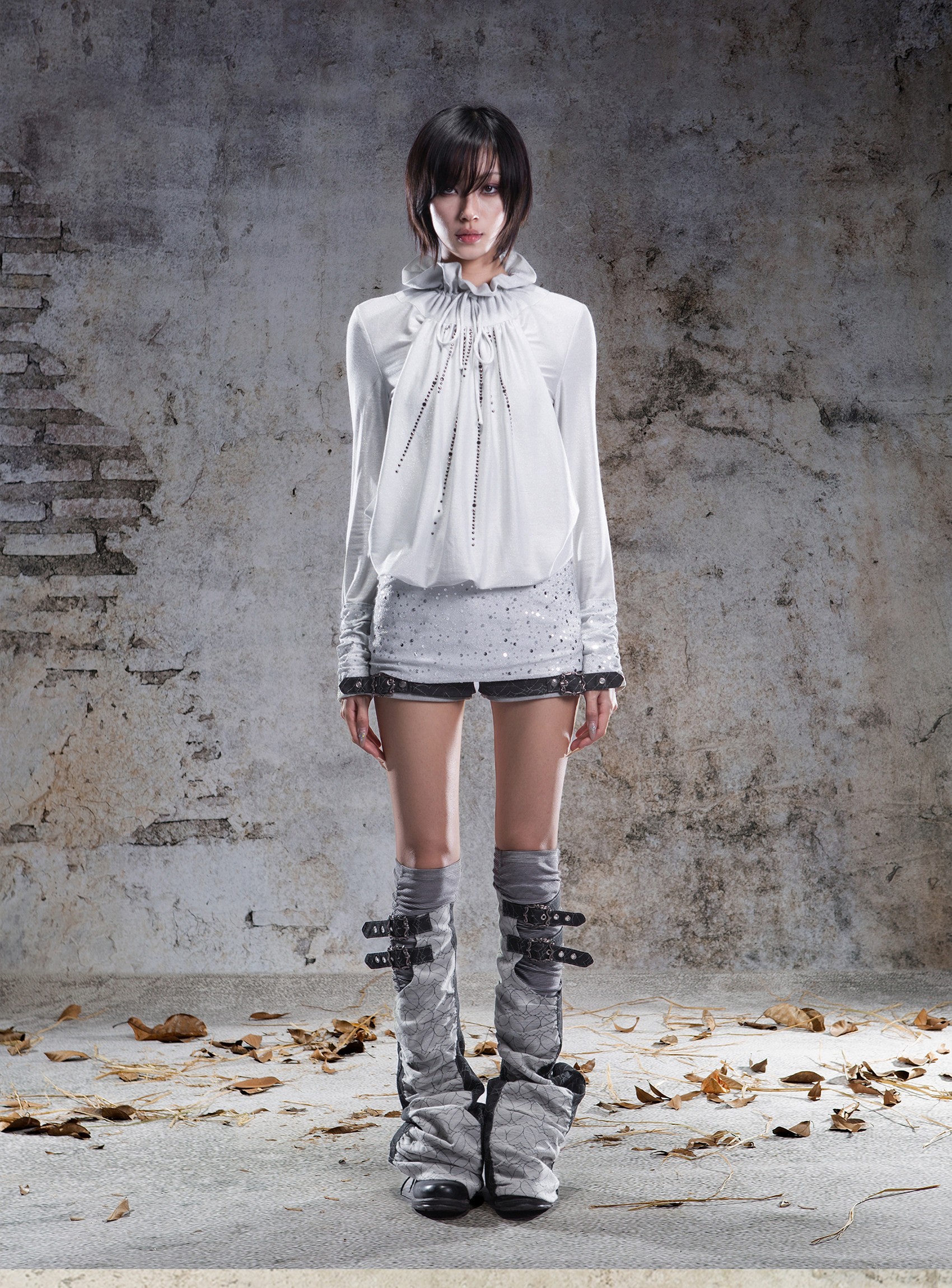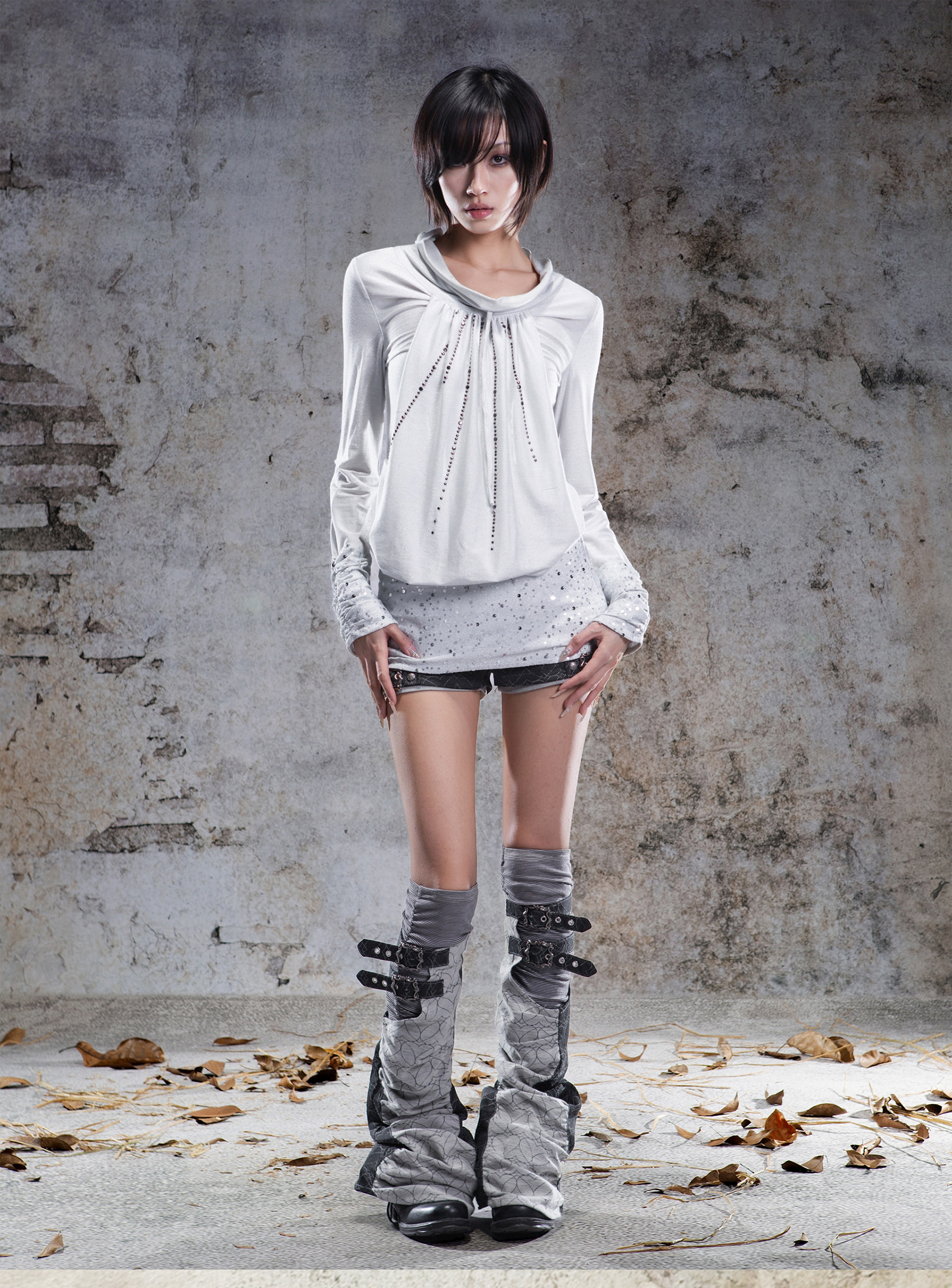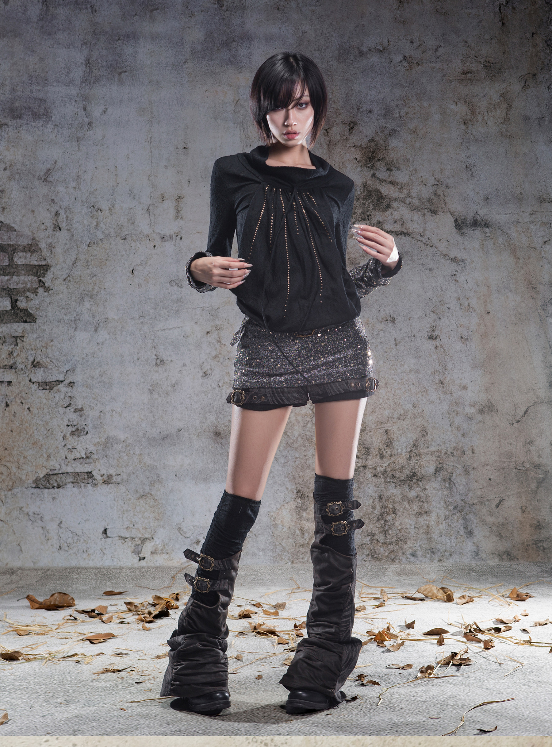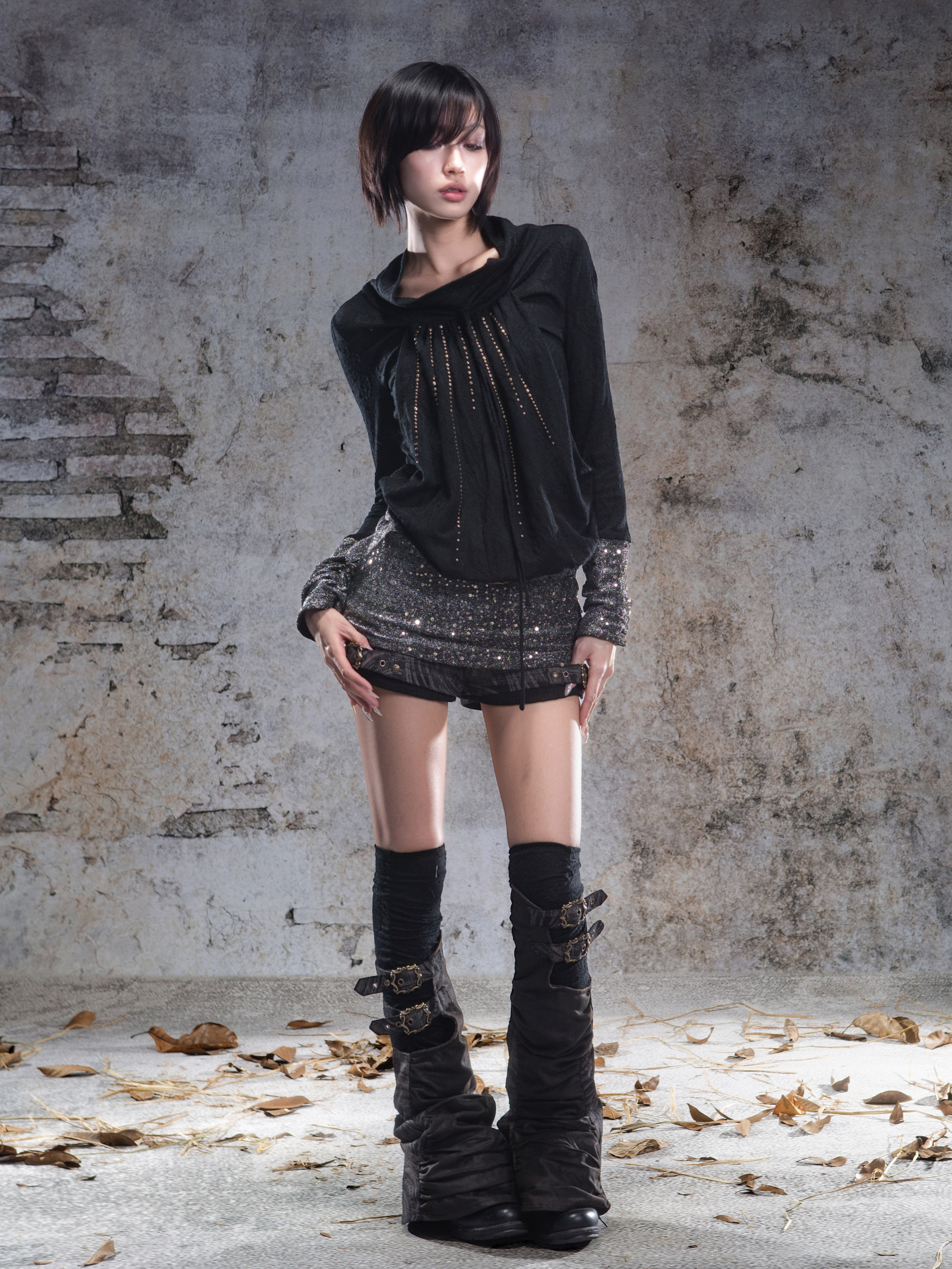 Original 2-Way Pullable Neck Gothic Style Blouse NA8359