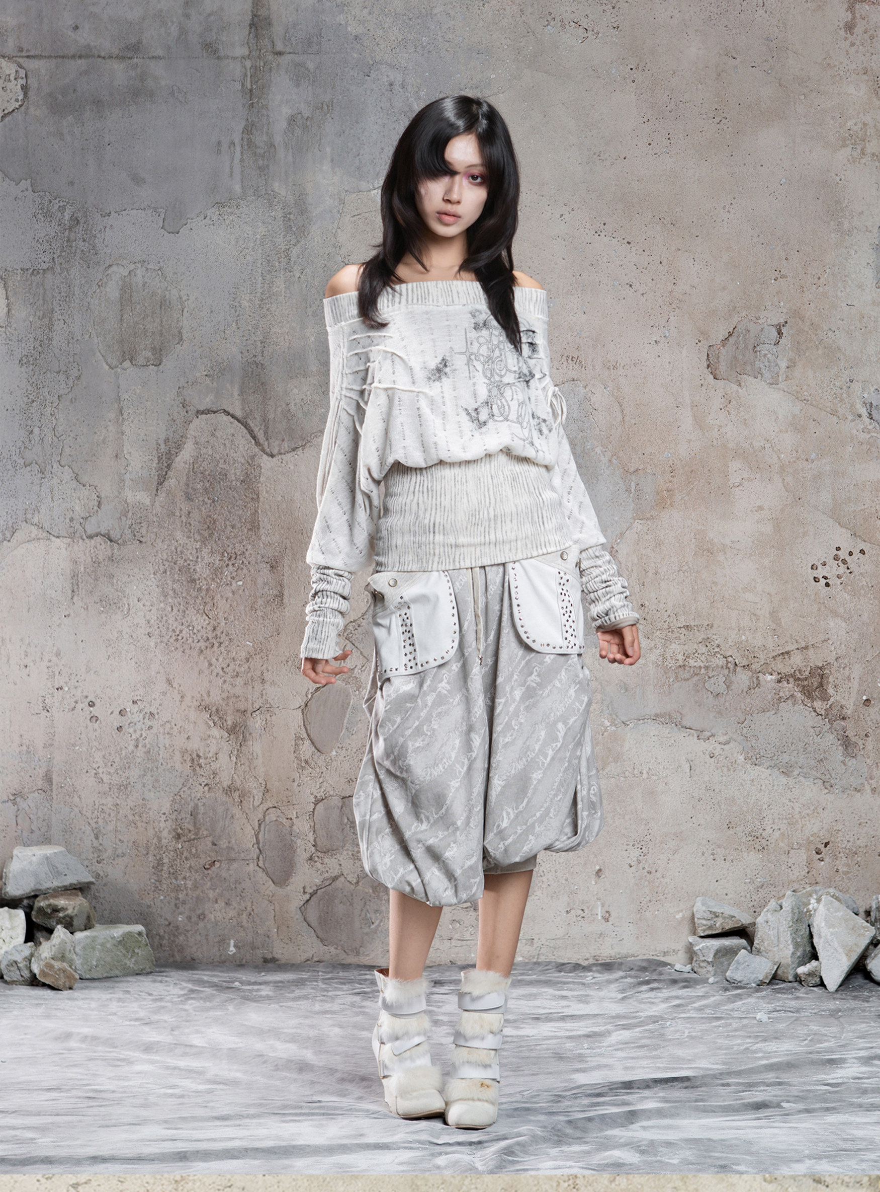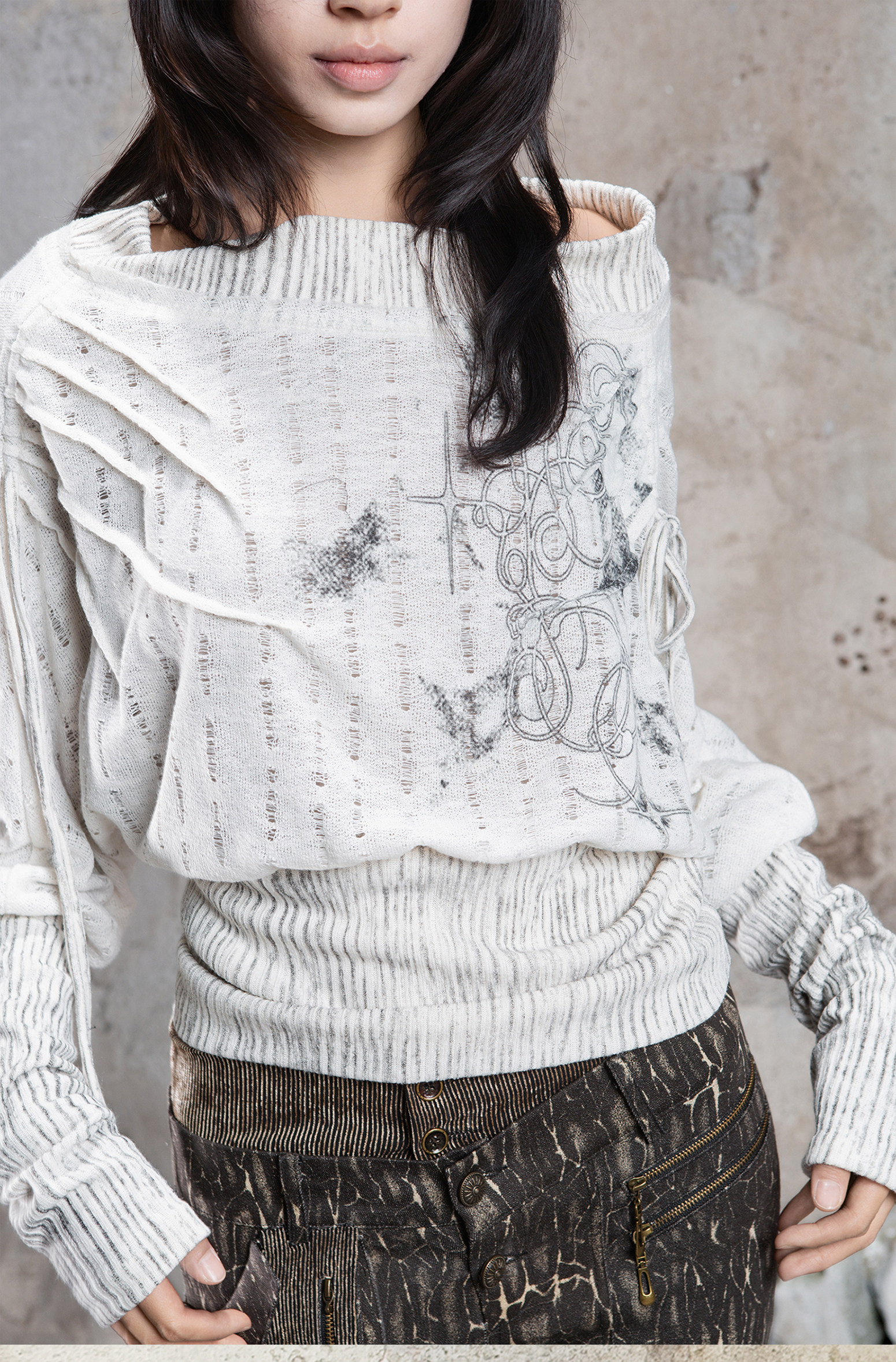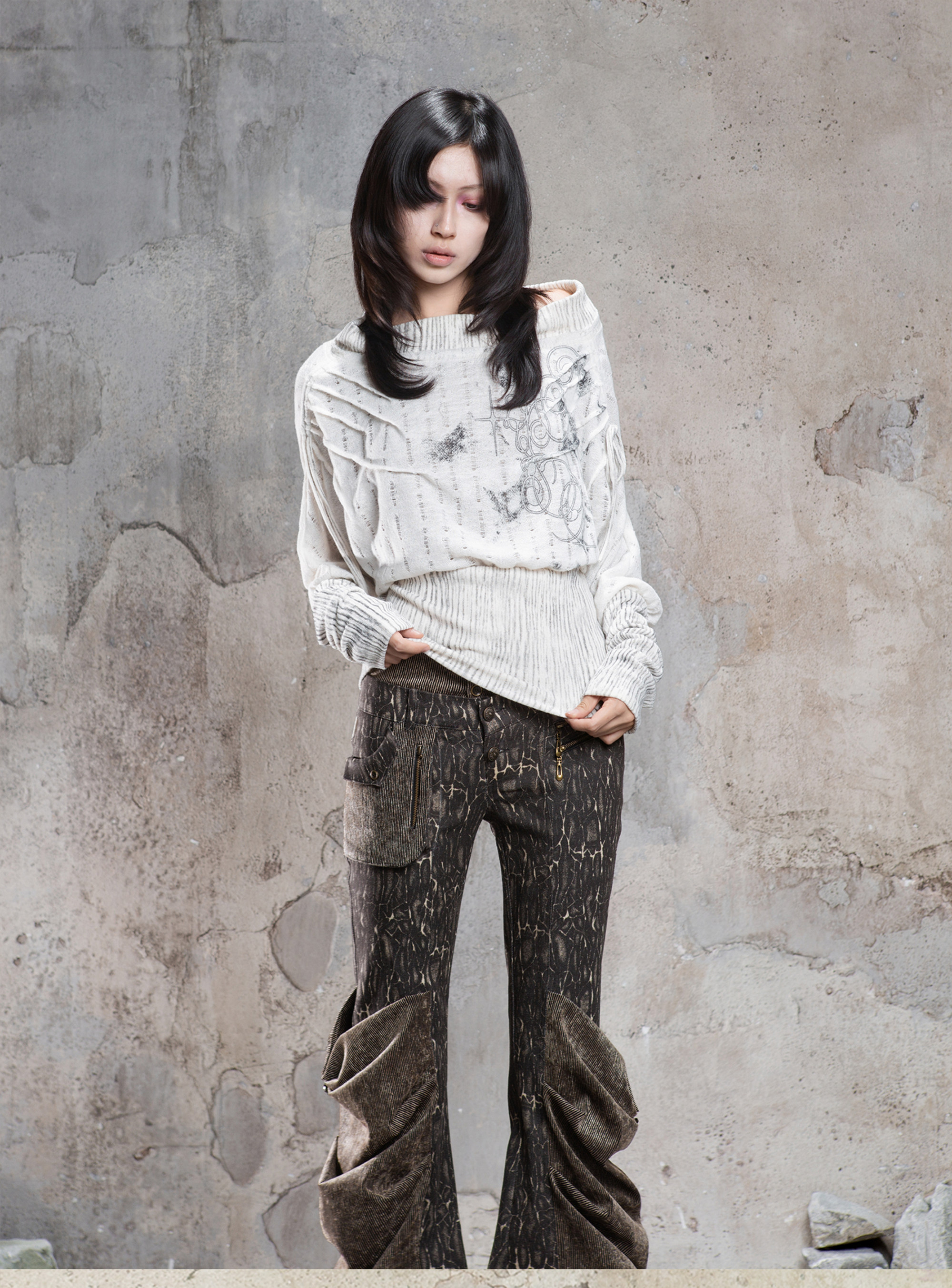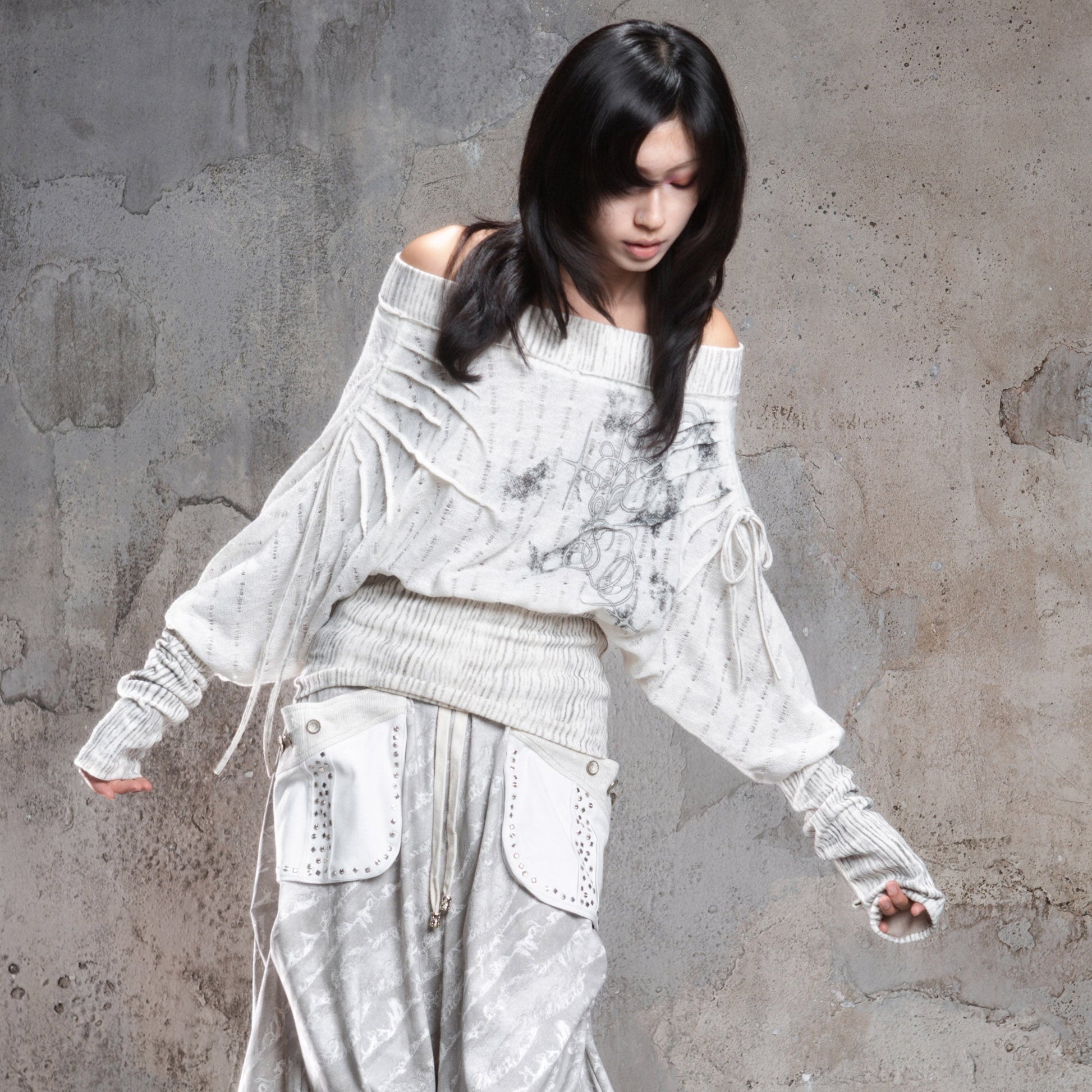 Floral Off-Shoulder Knit Sweater NA8360