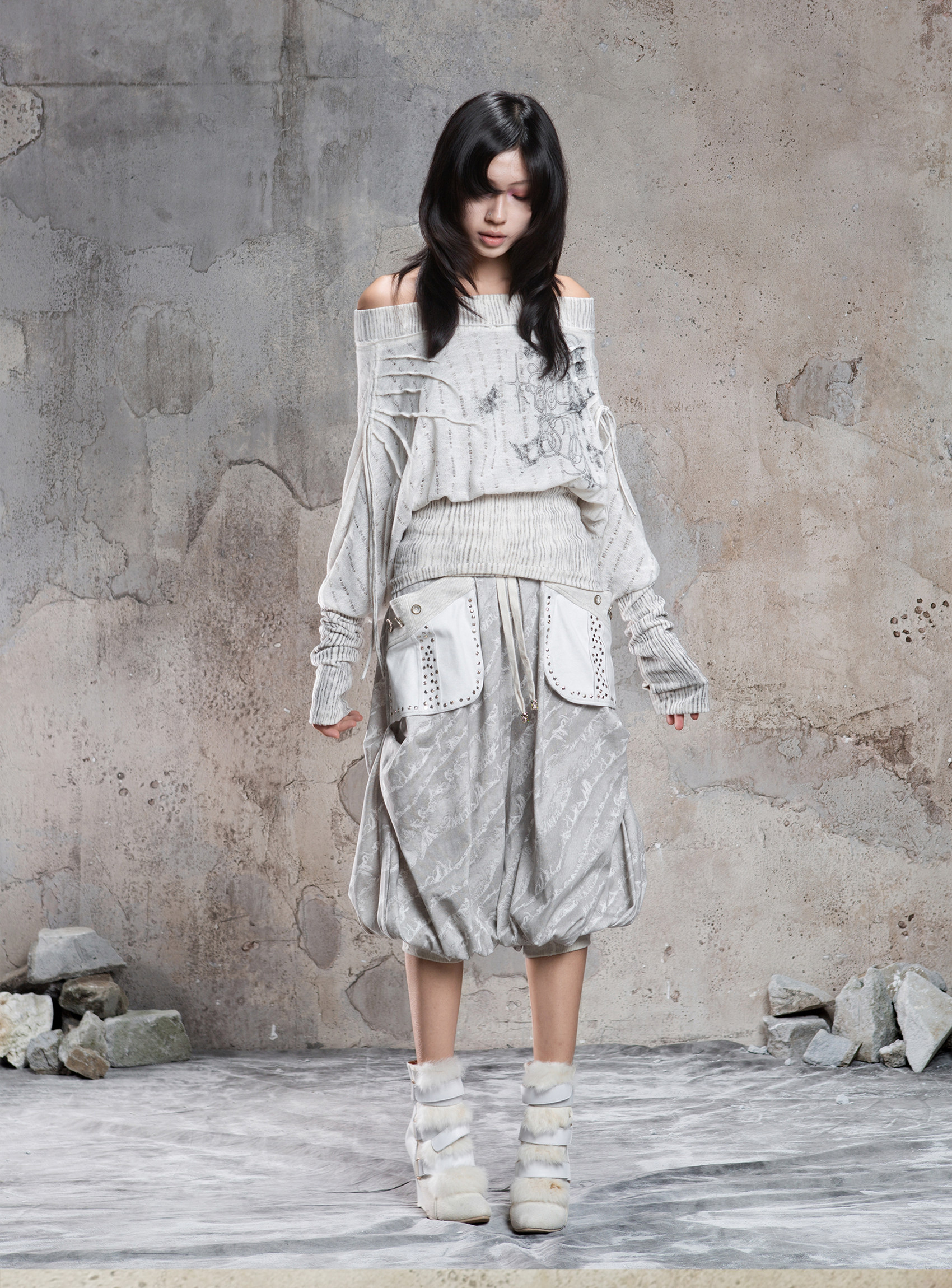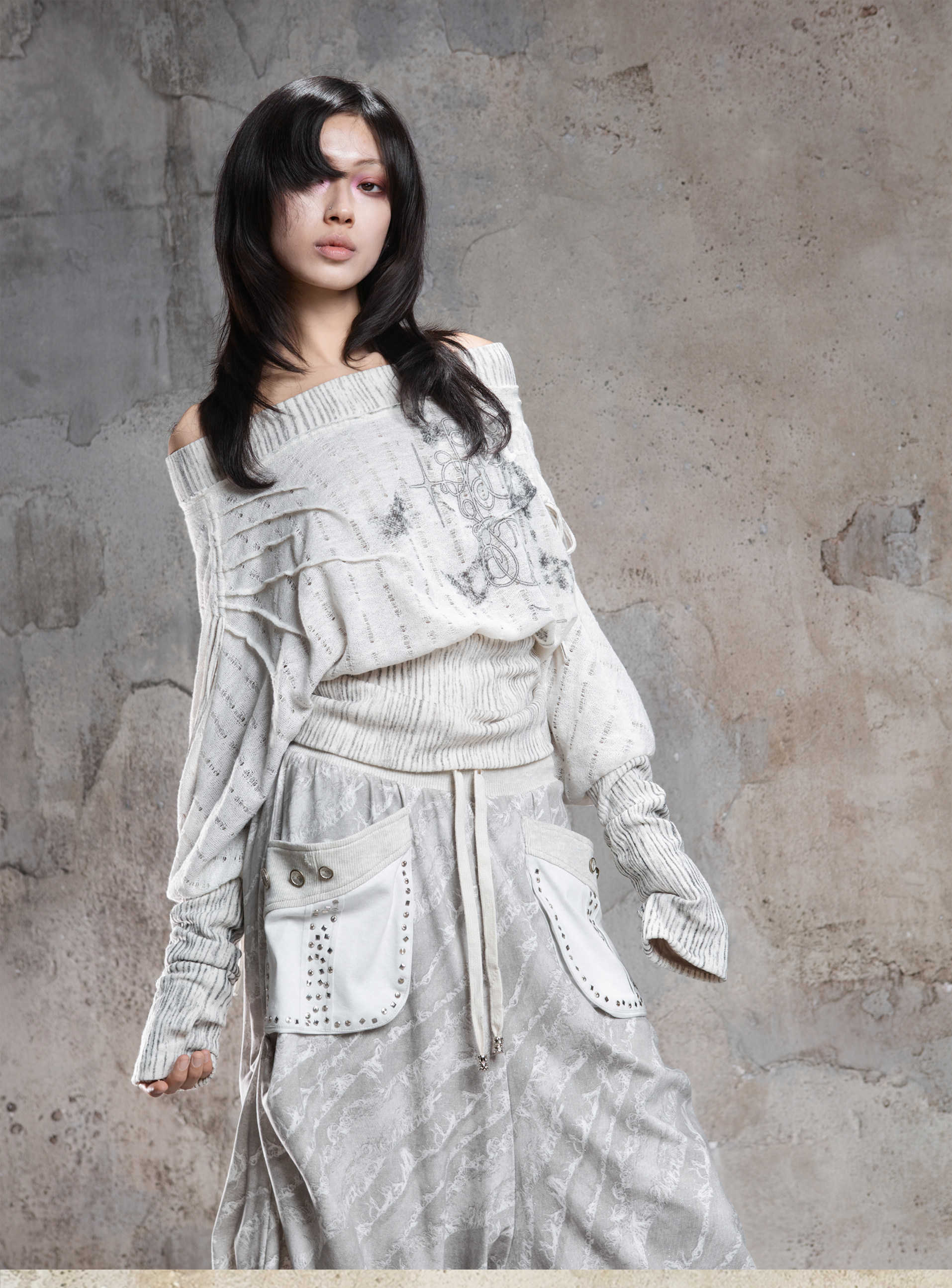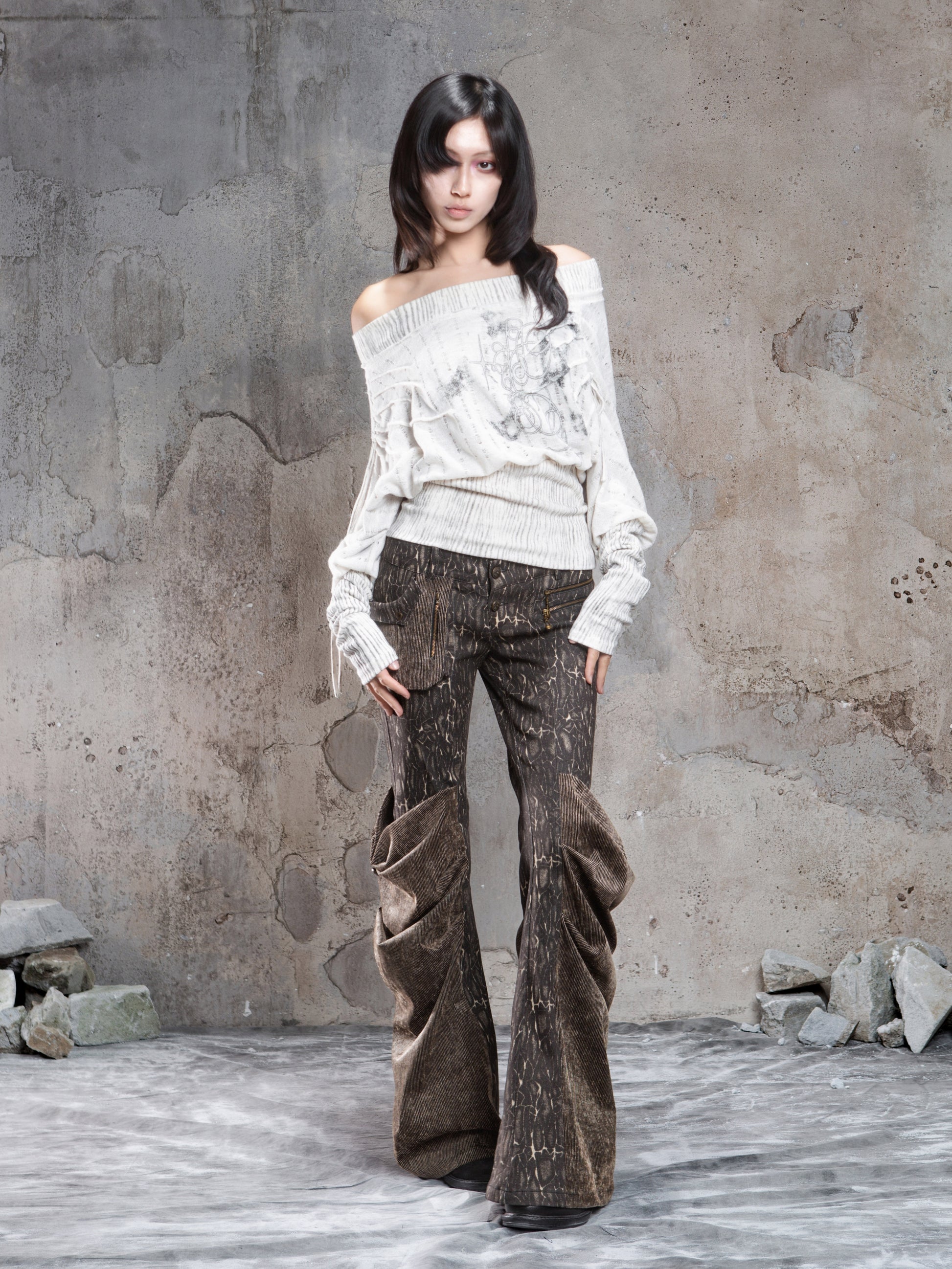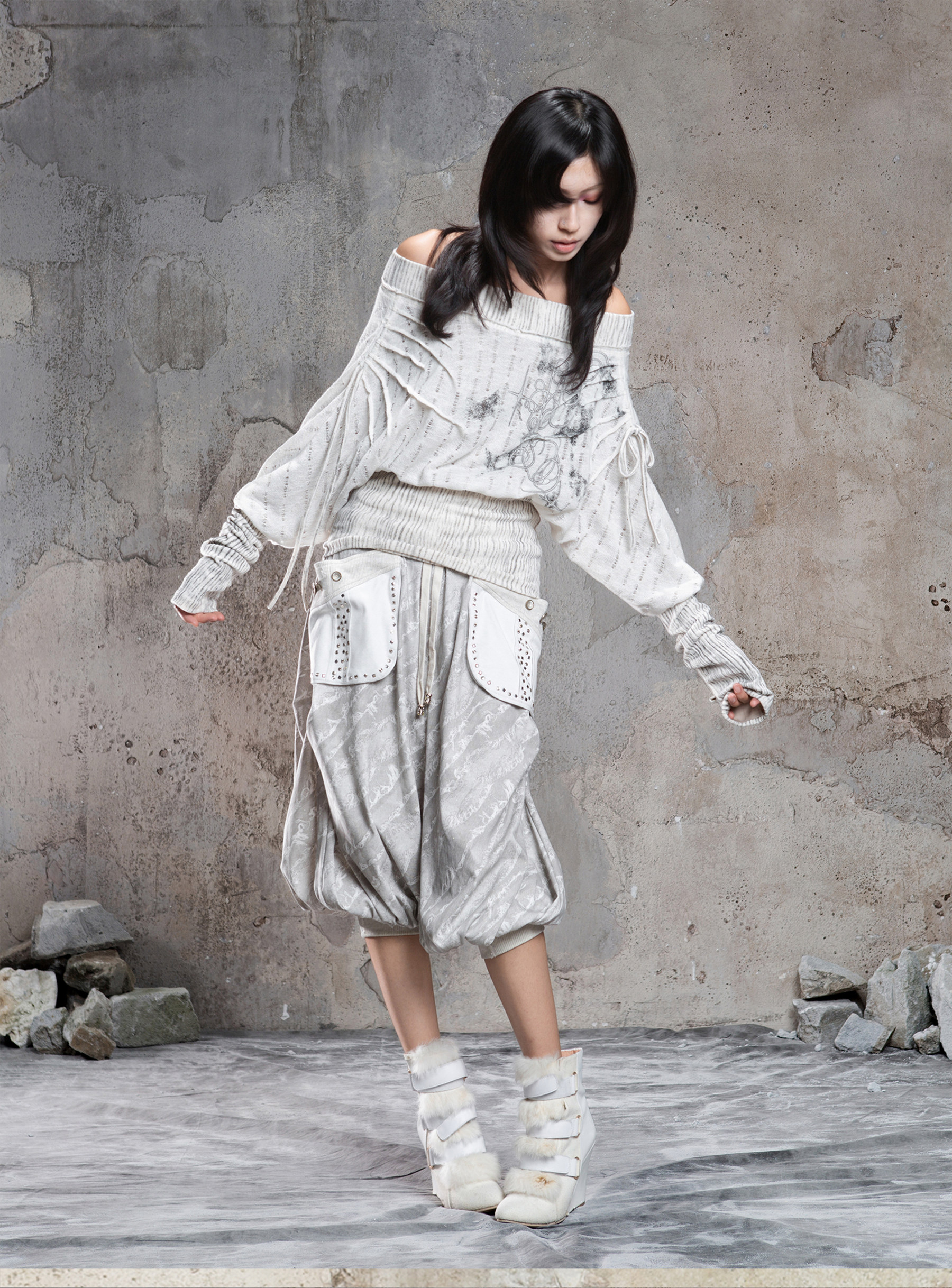 Floral Off-Shoulder Knit Sweater NA8360