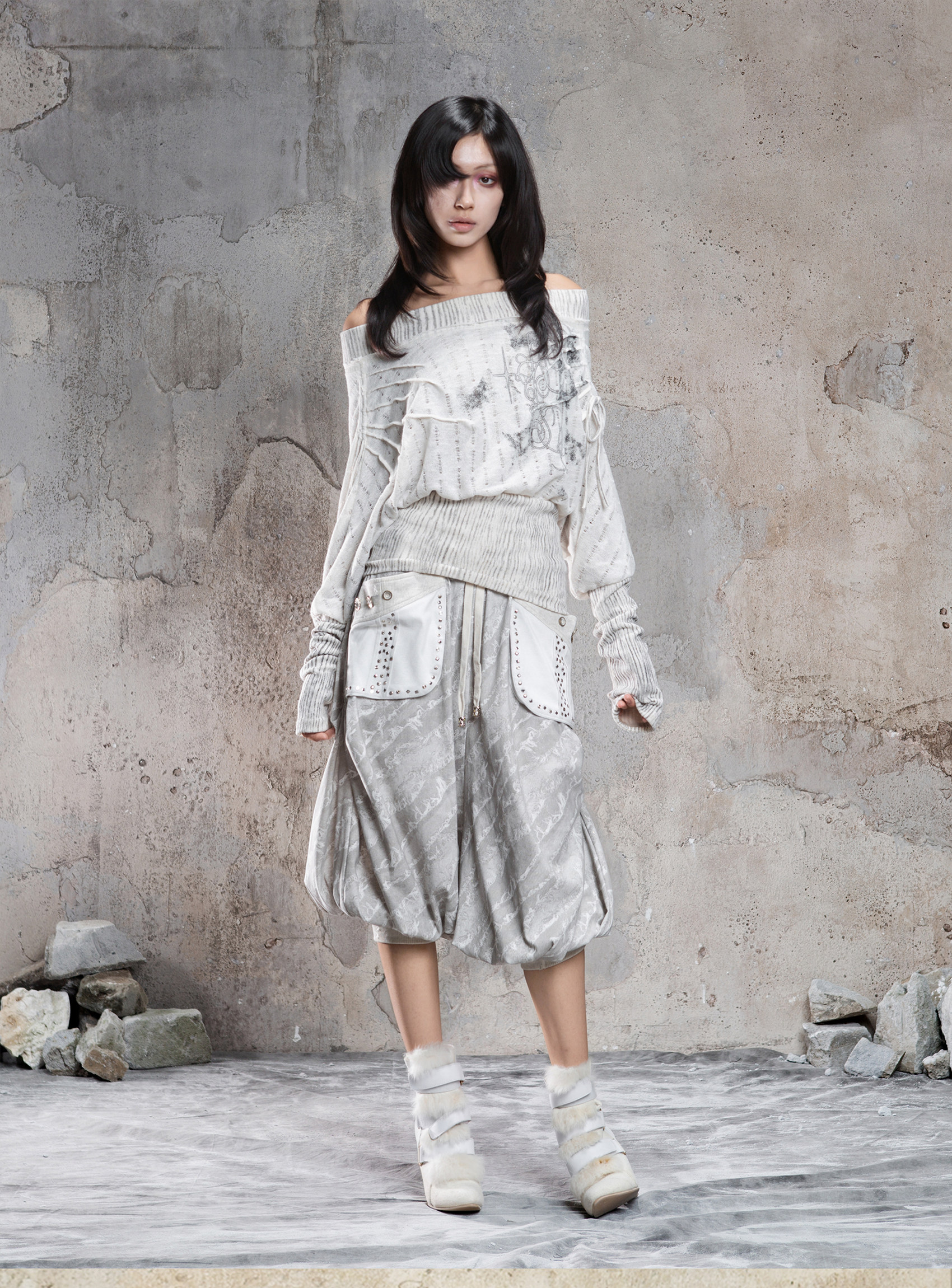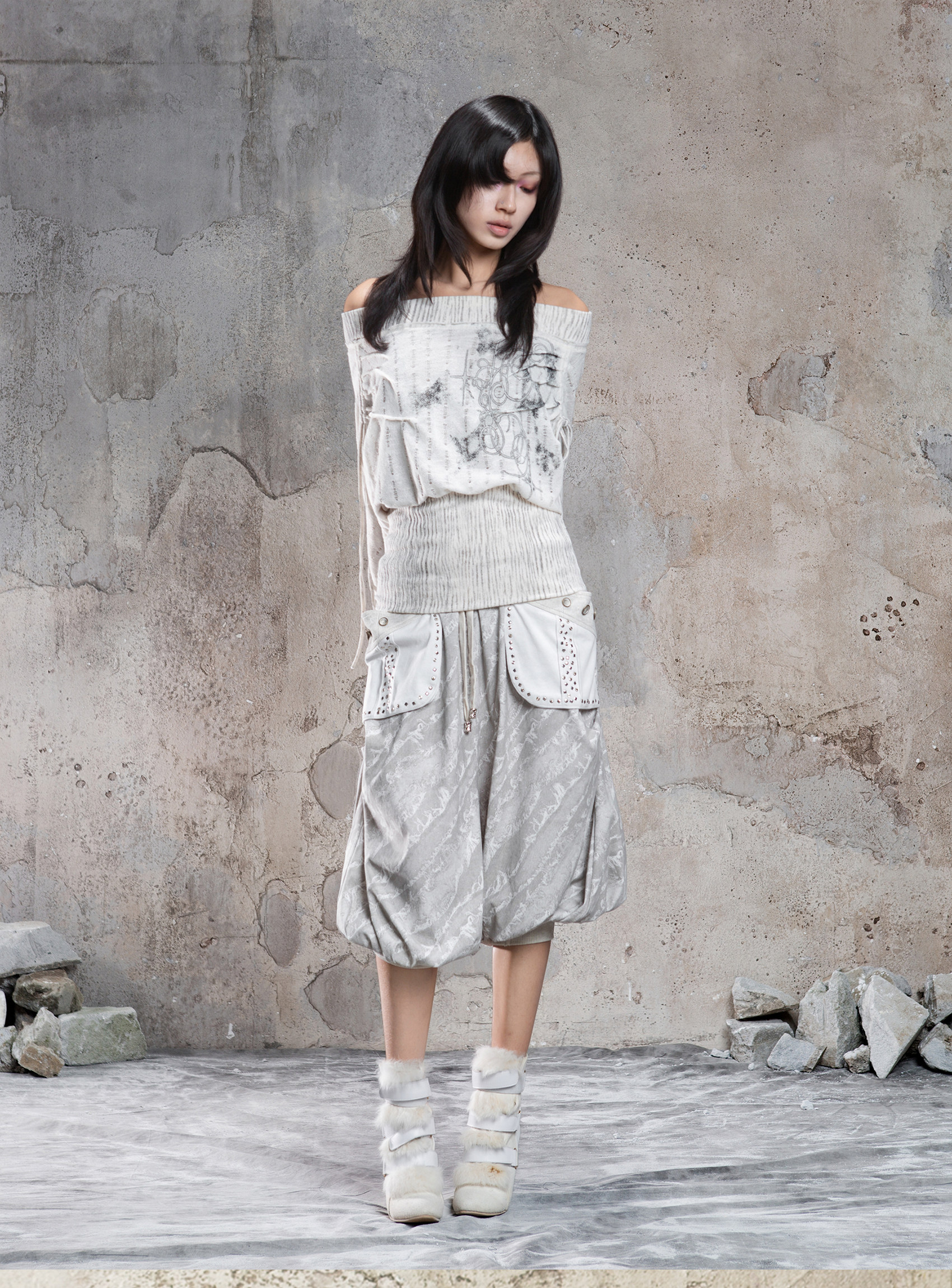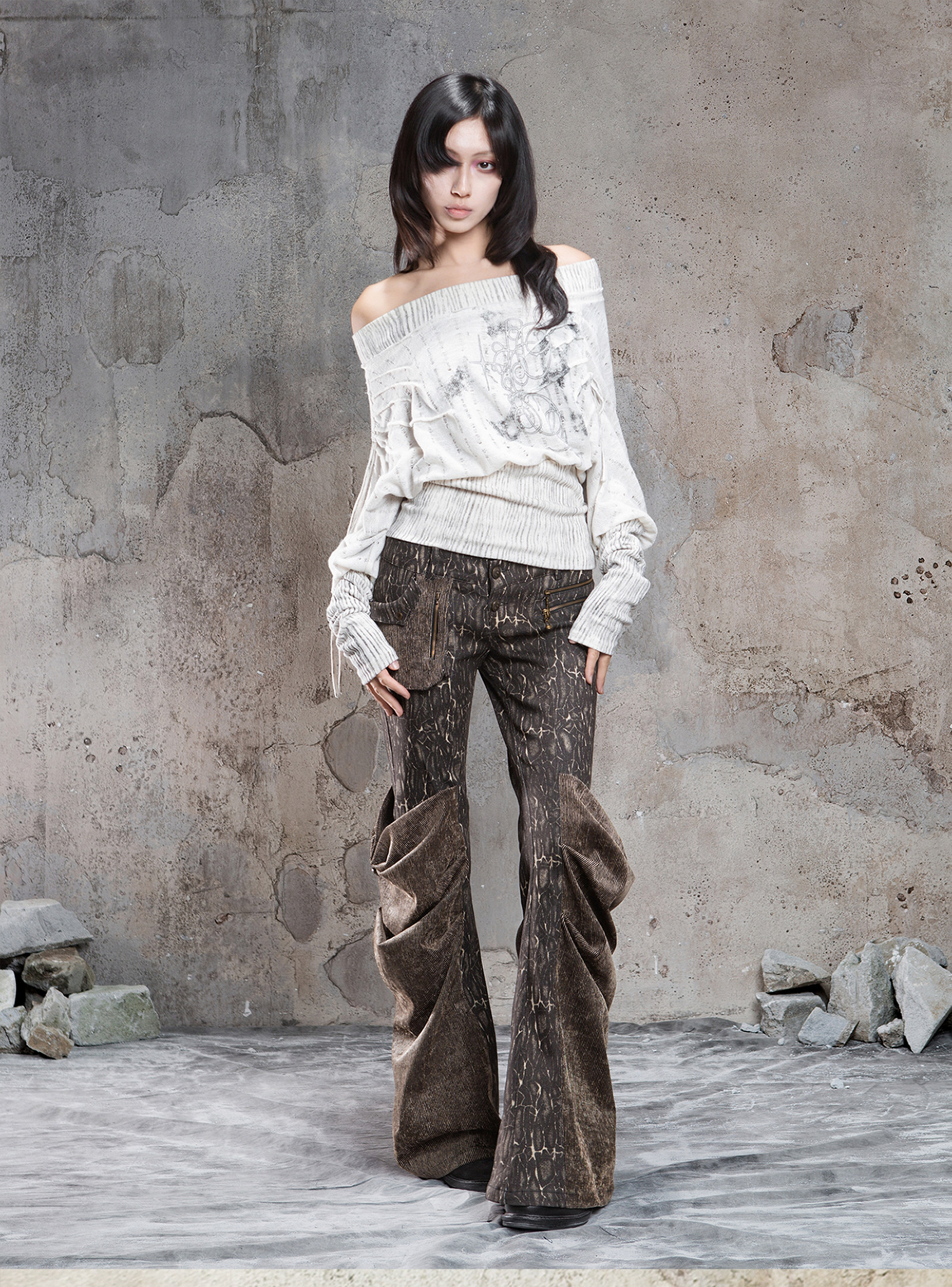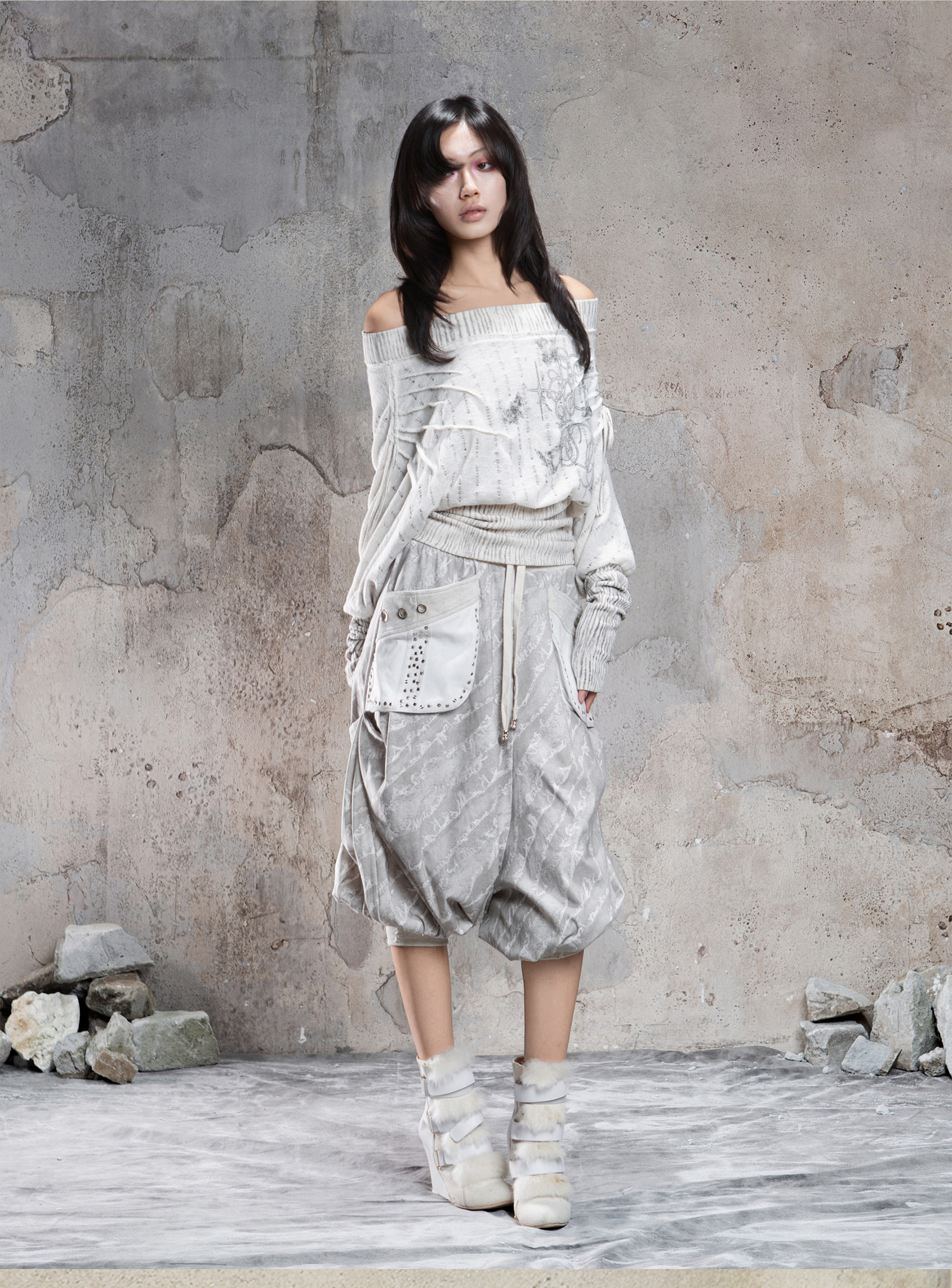 Floral Off-Shoulder Knit Sweater NA8360