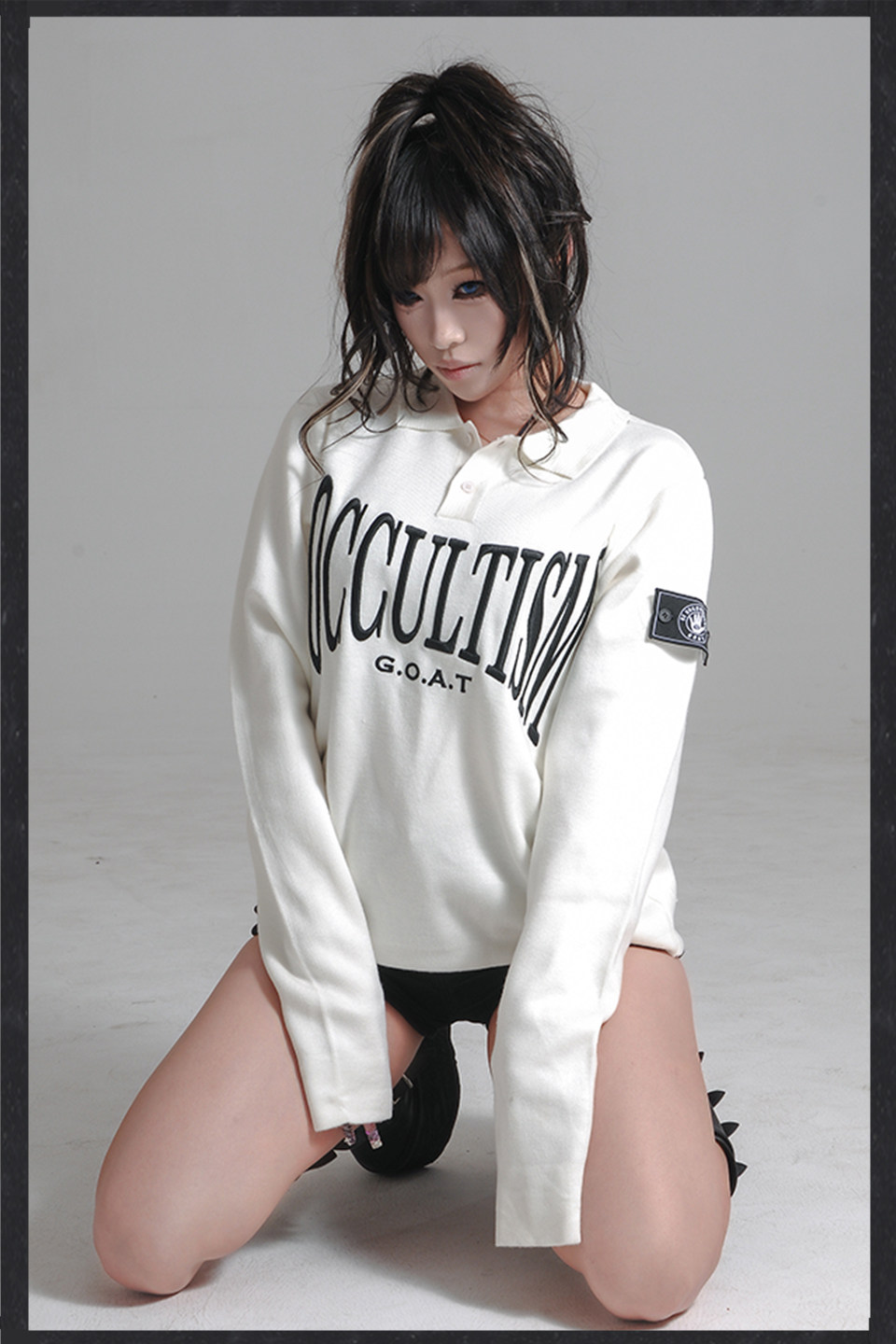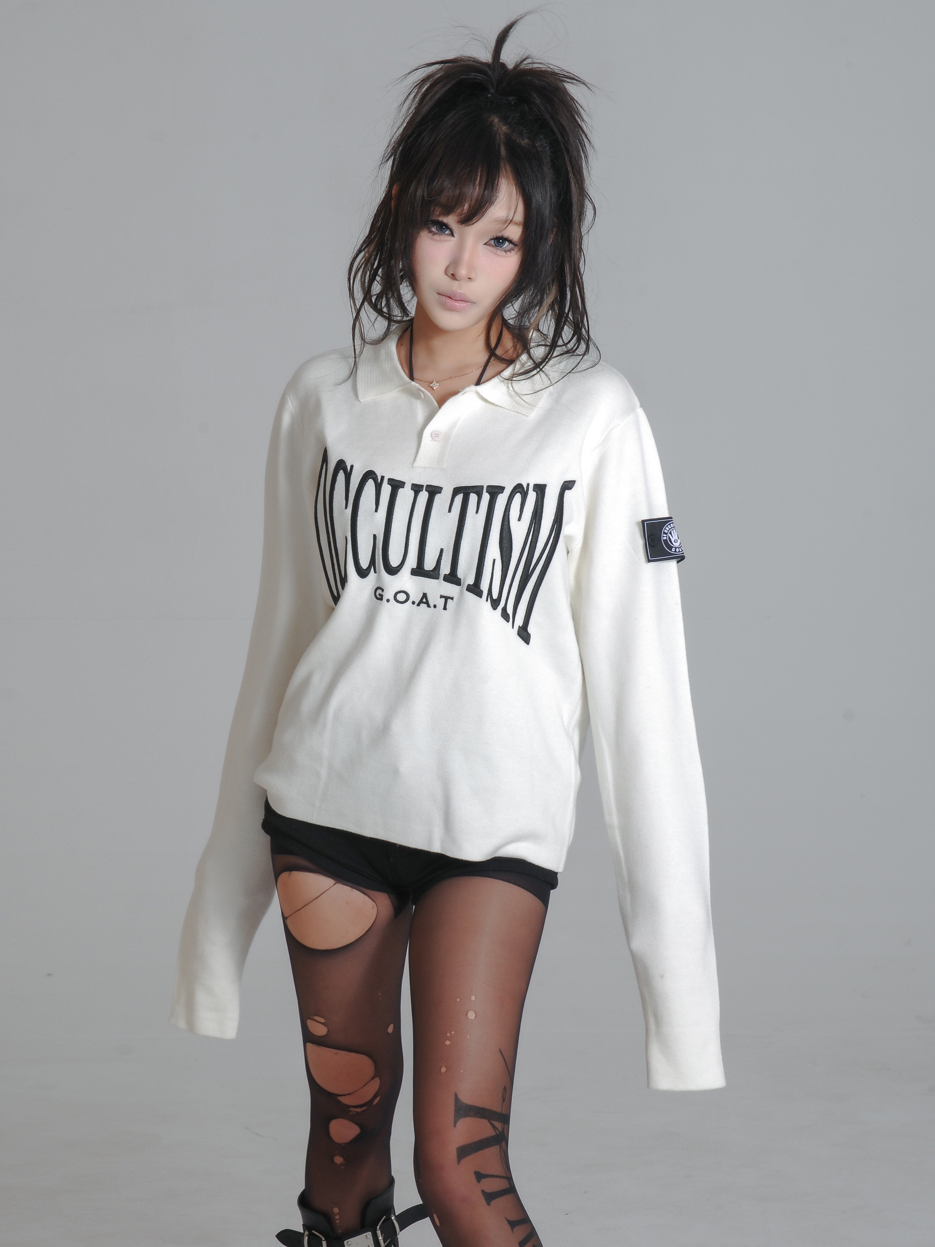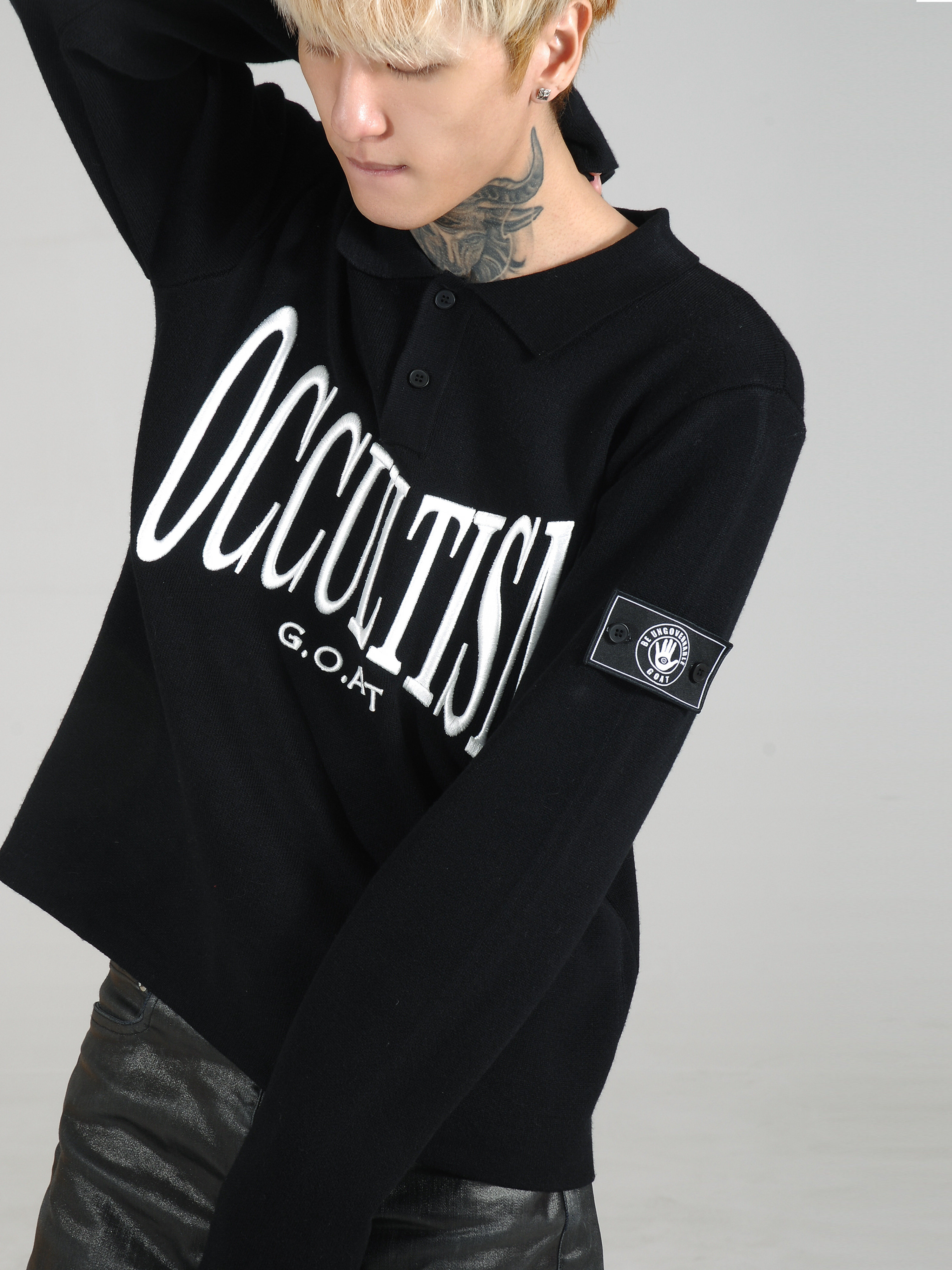 Embroidery Polo Neck Slim Knit Sweater NA8364
