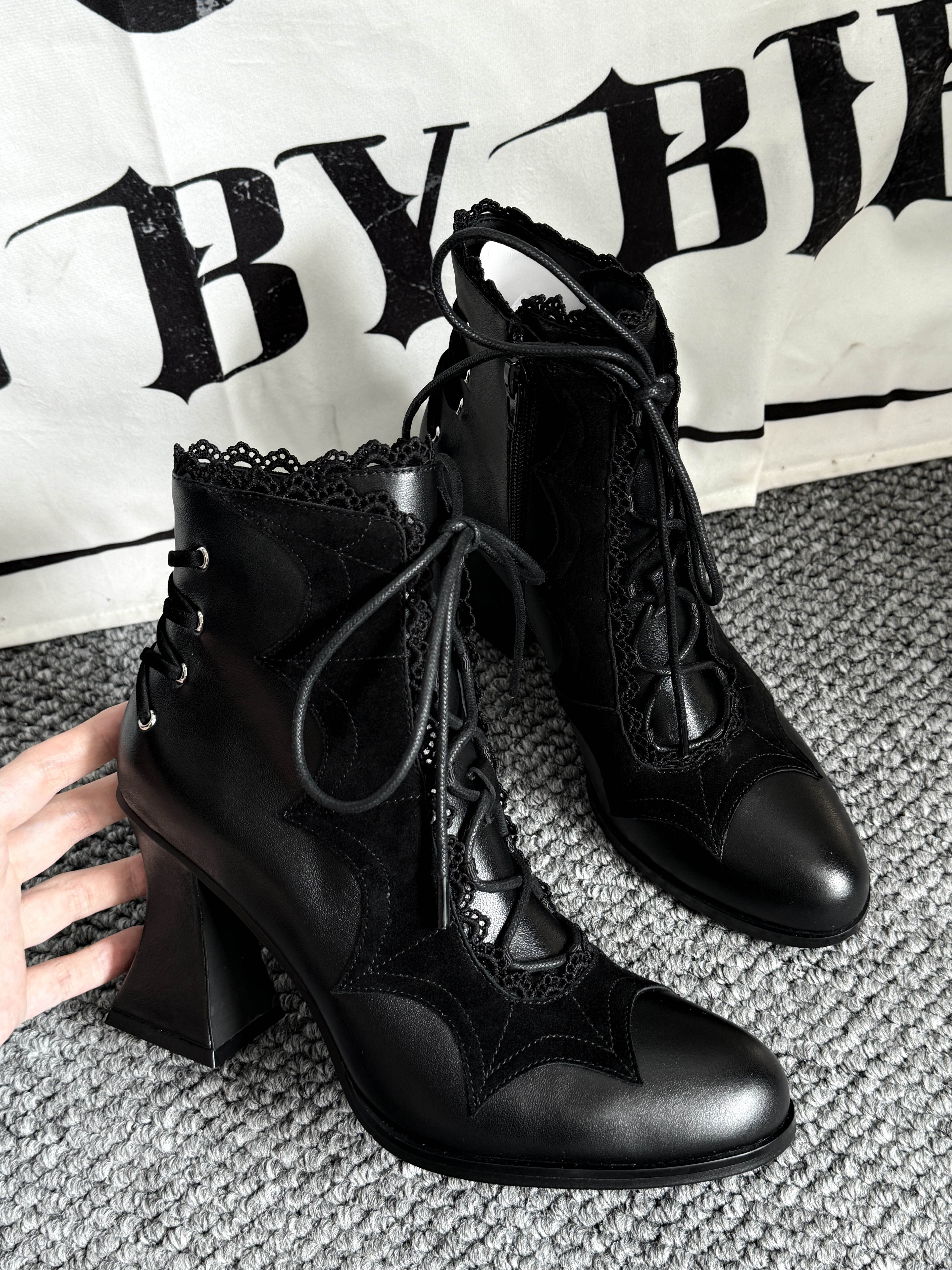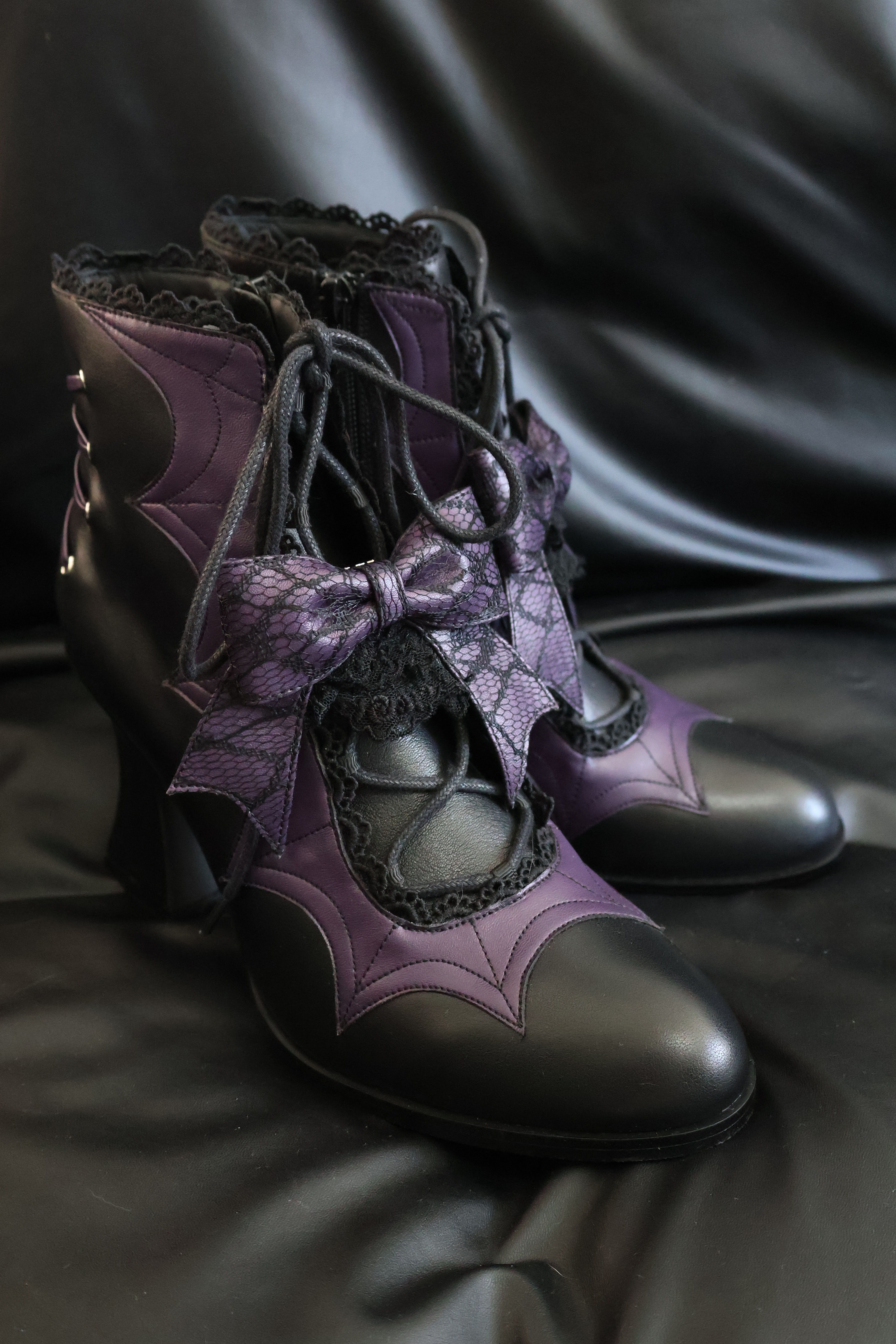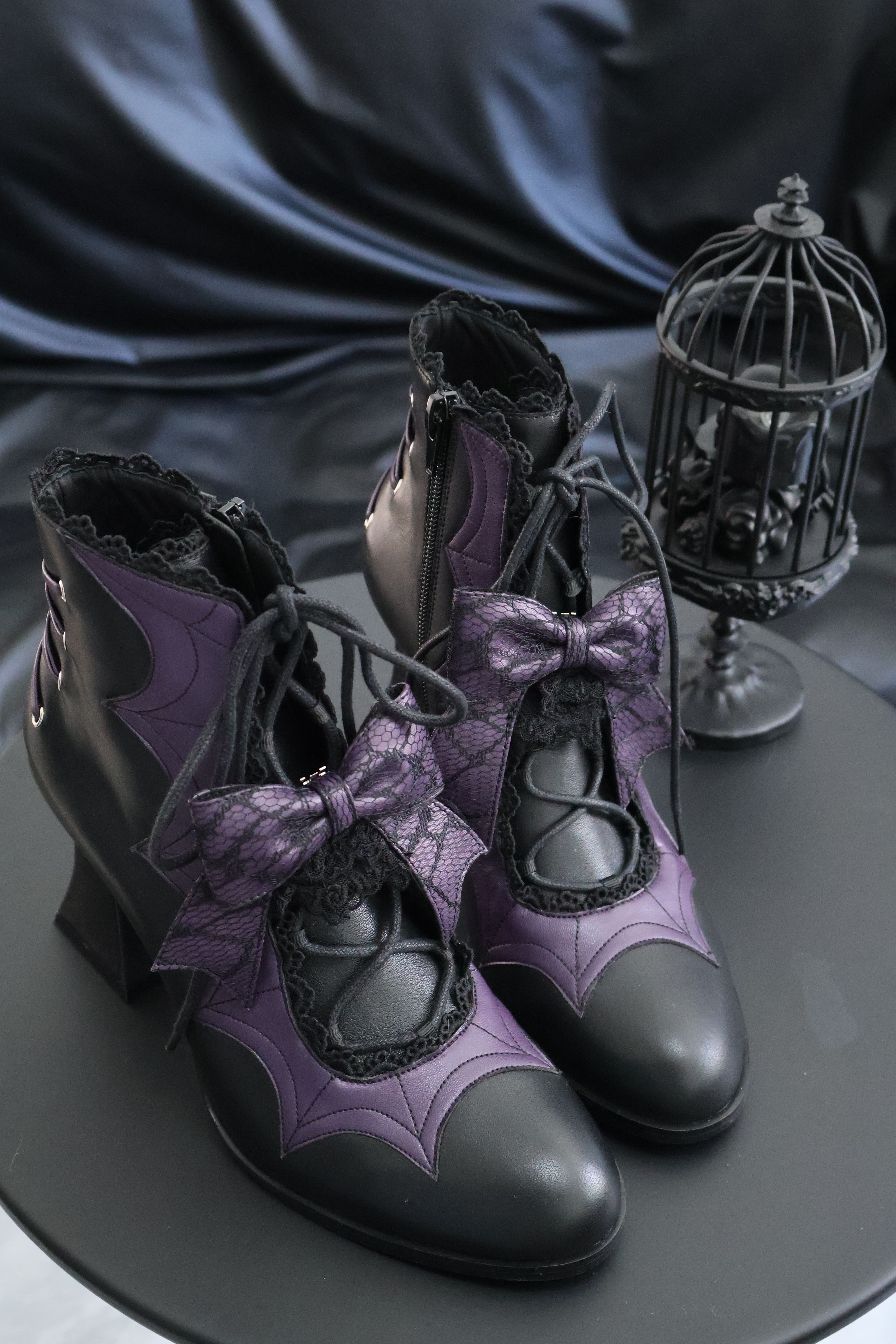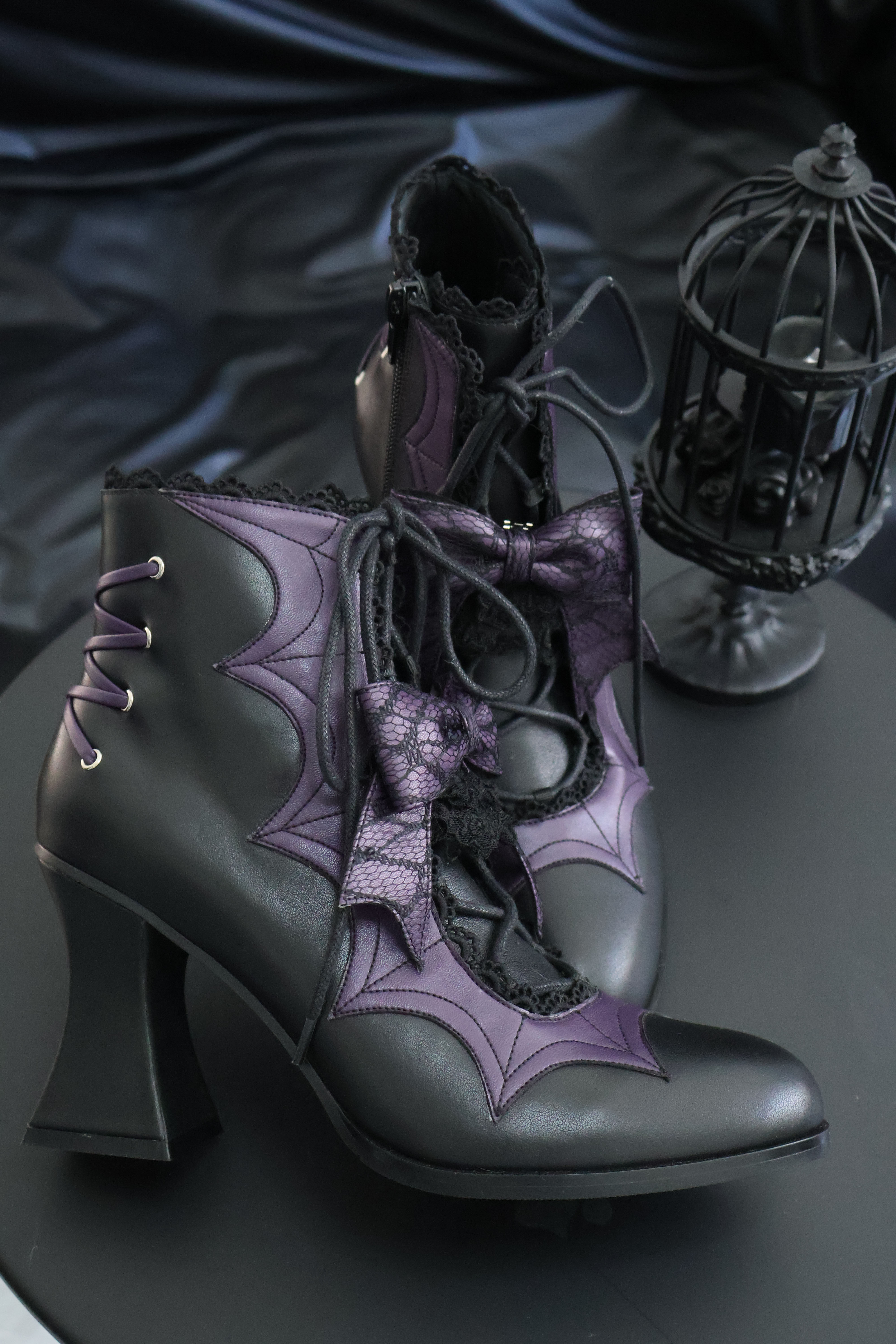 Lace Bow Purple Spider Web Ankle Boots NA8528