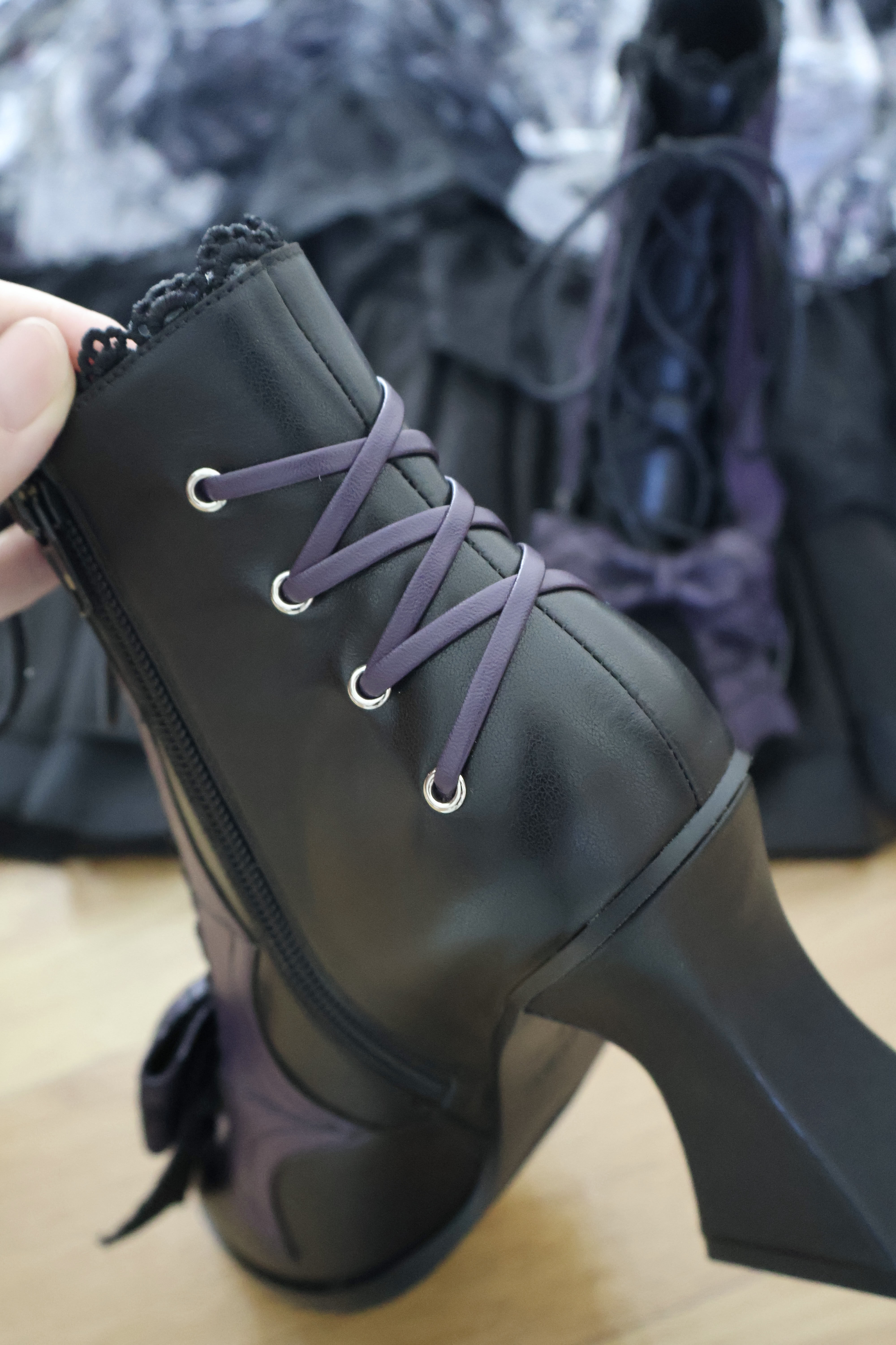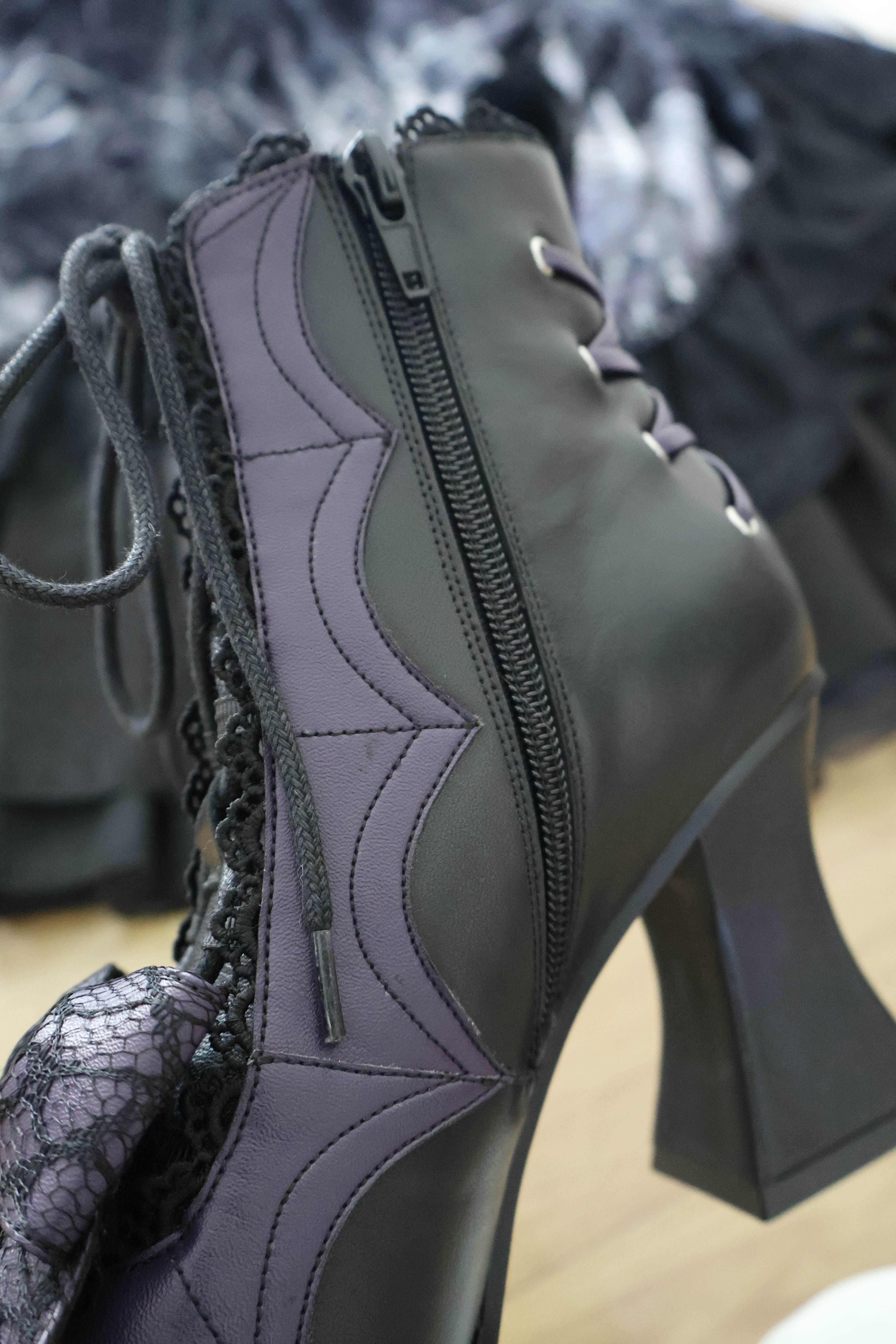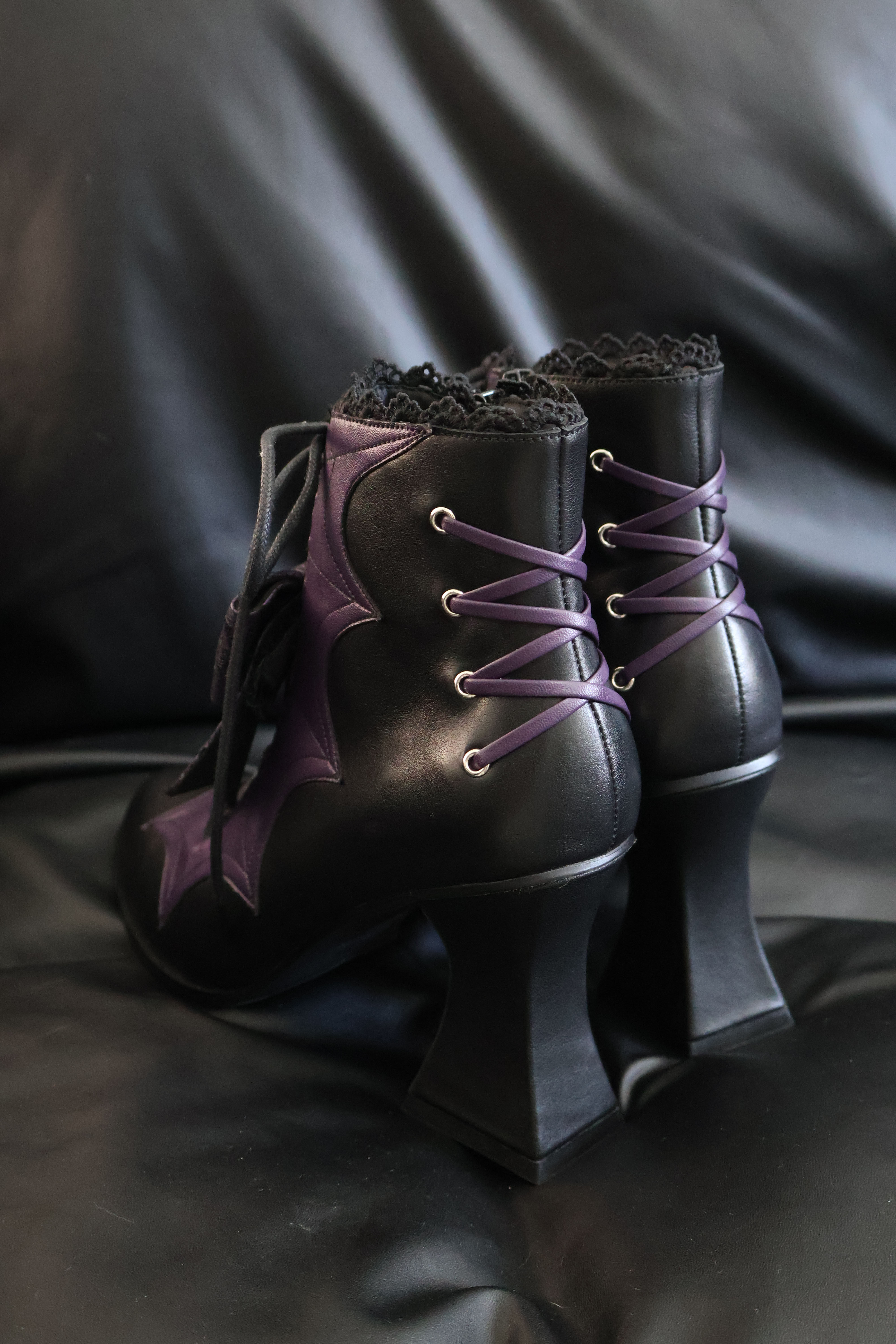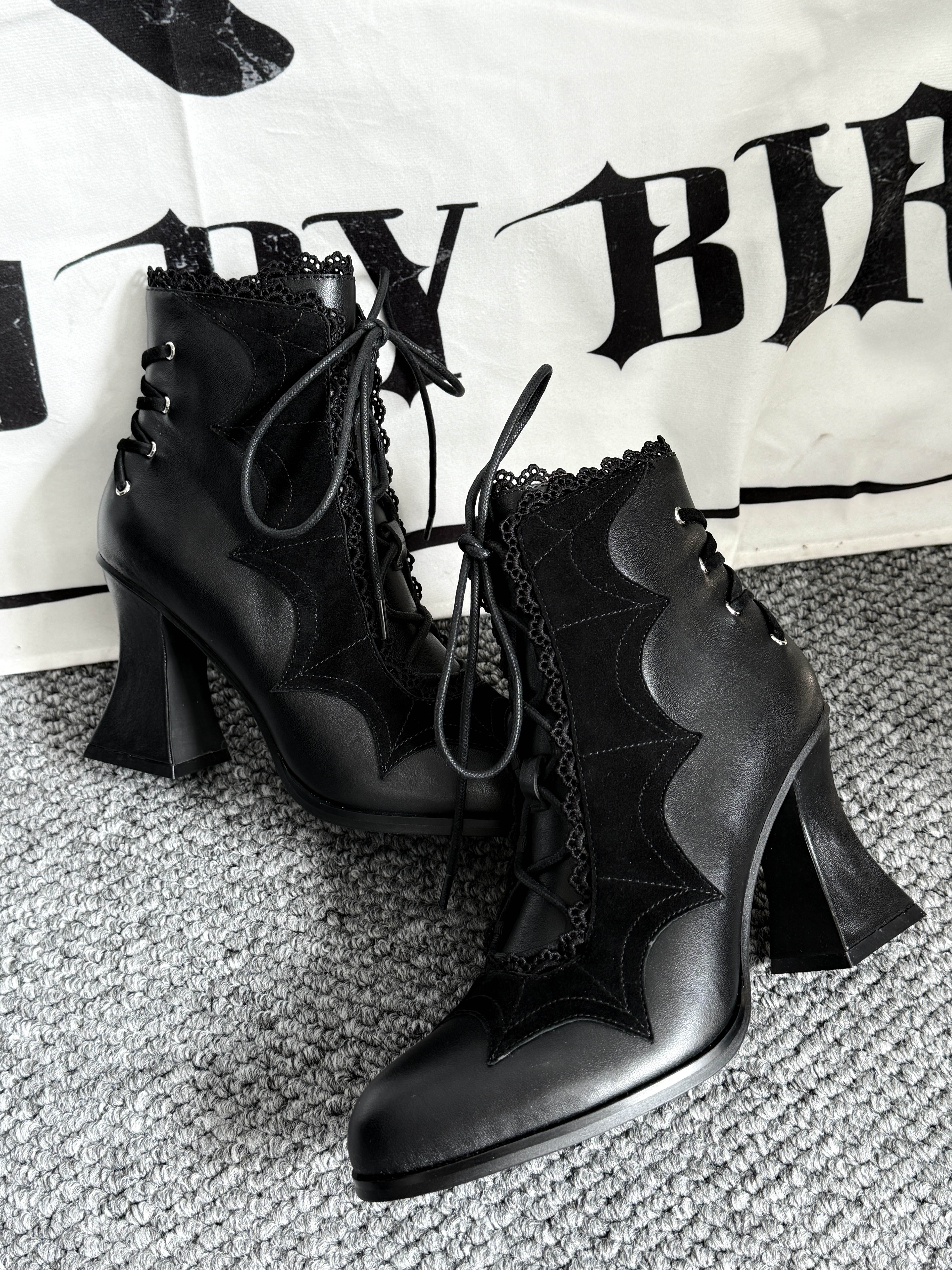 Lace Bow Purple Spider Web Ankle Boots NA8528