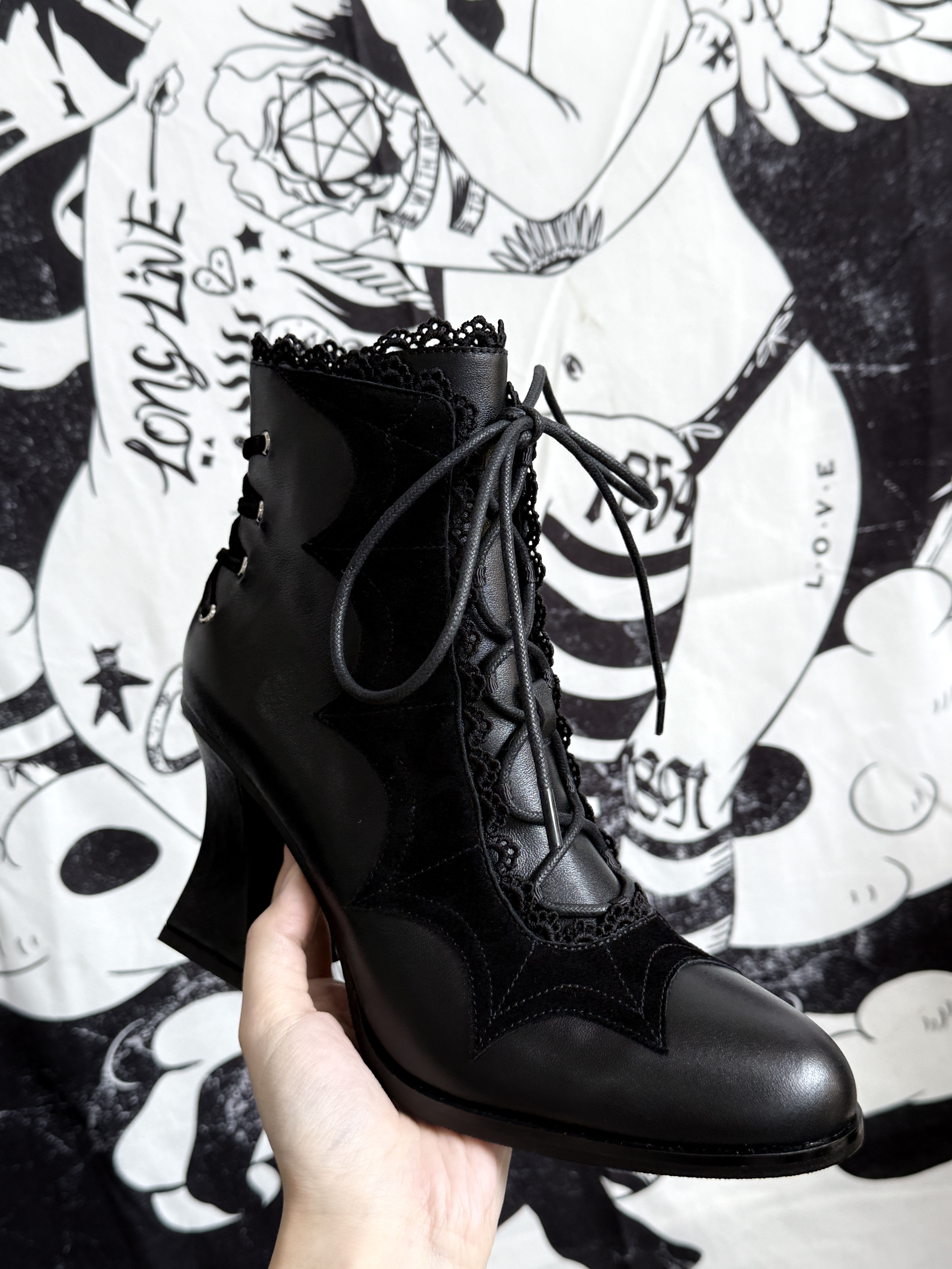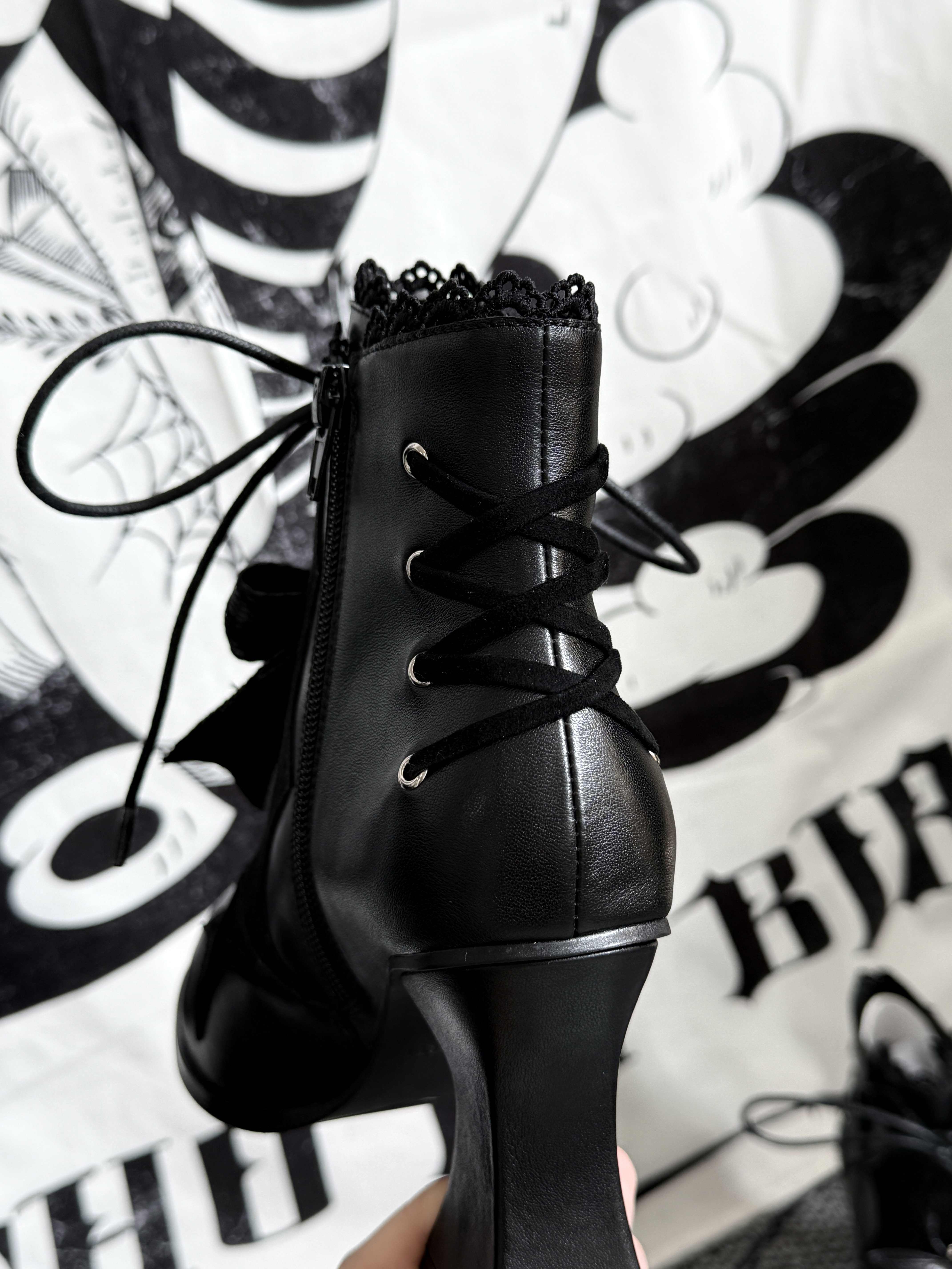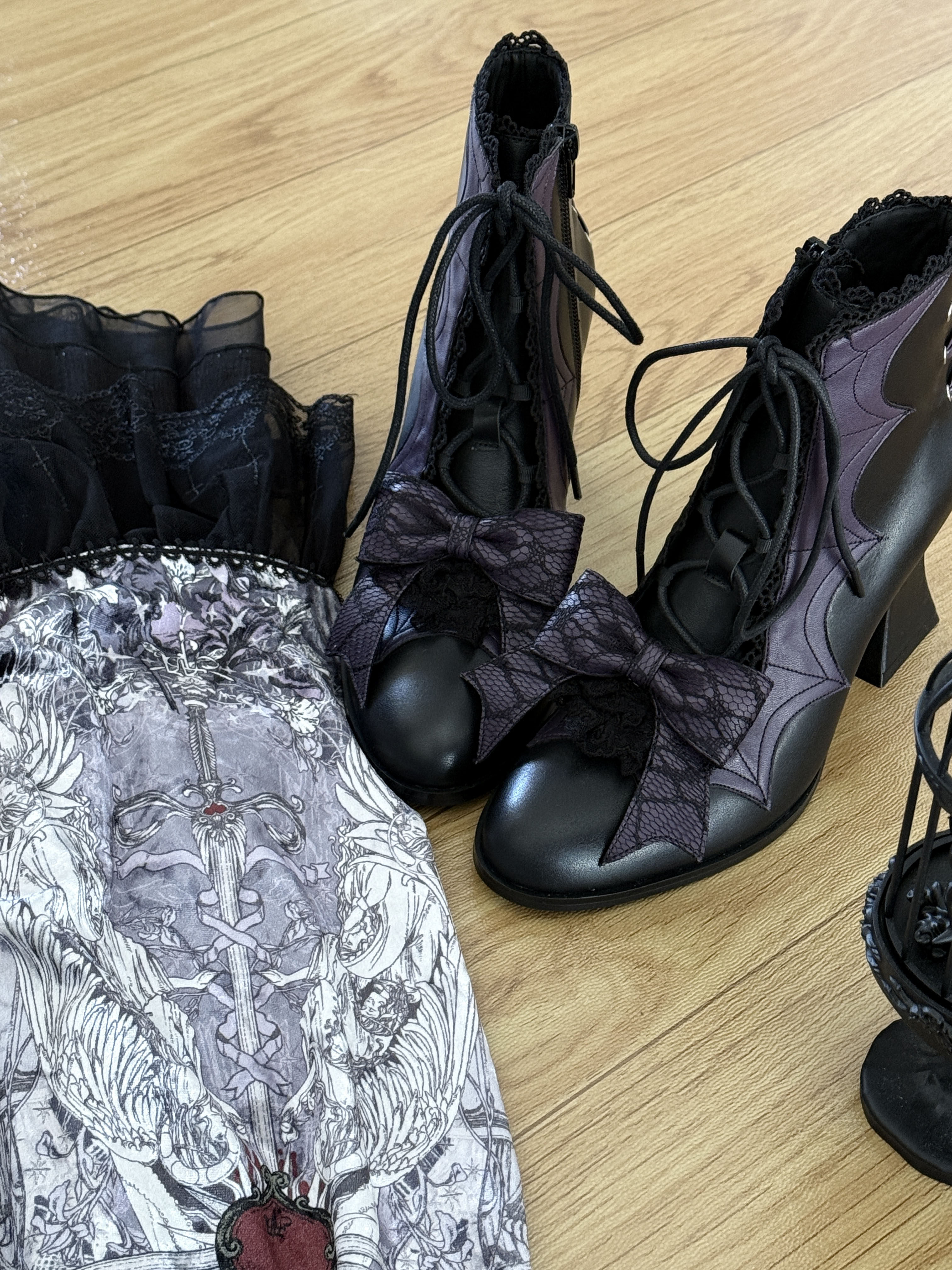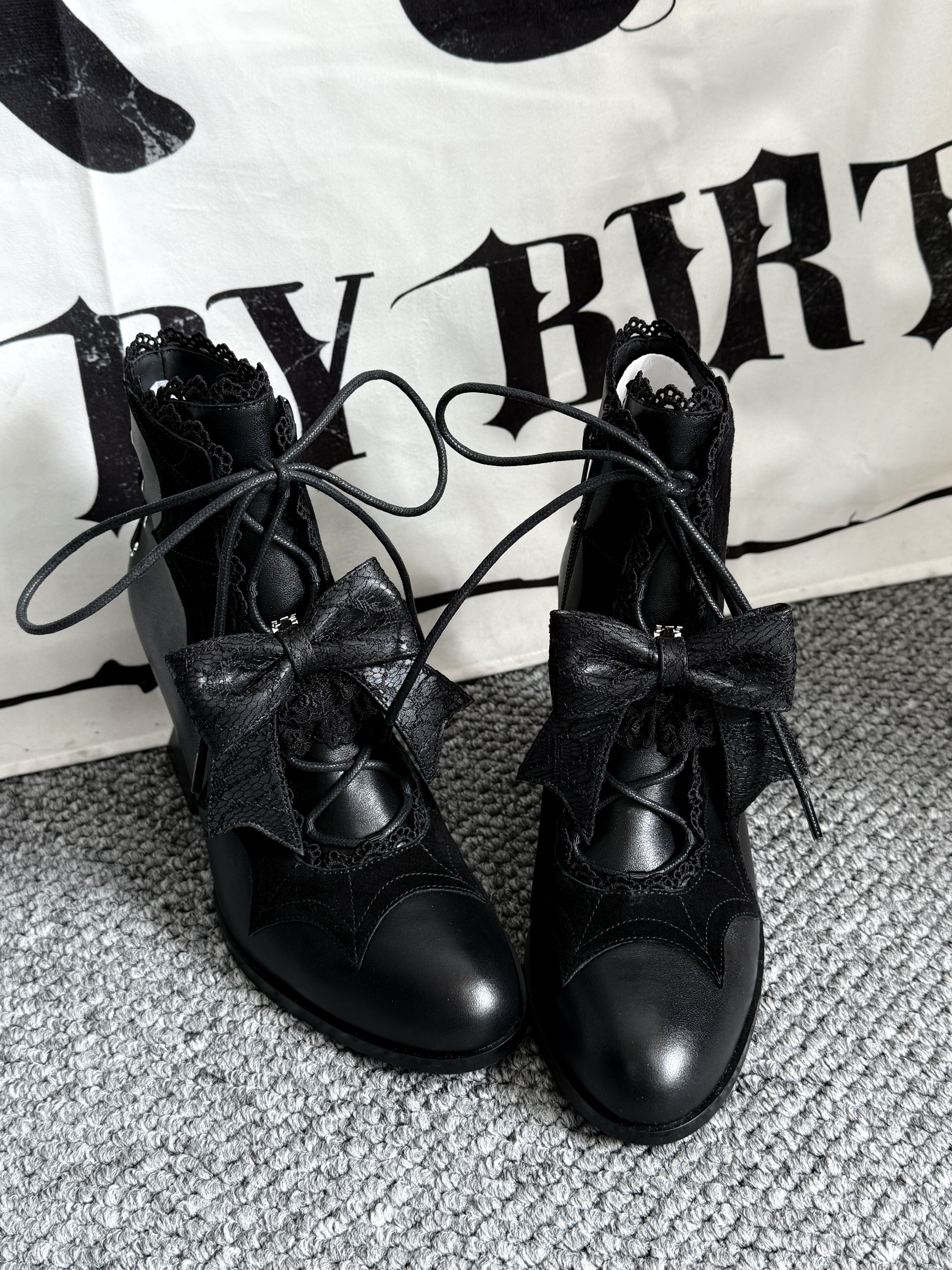 Lace Bow Purple Spider Web Ankle Boots NA8528