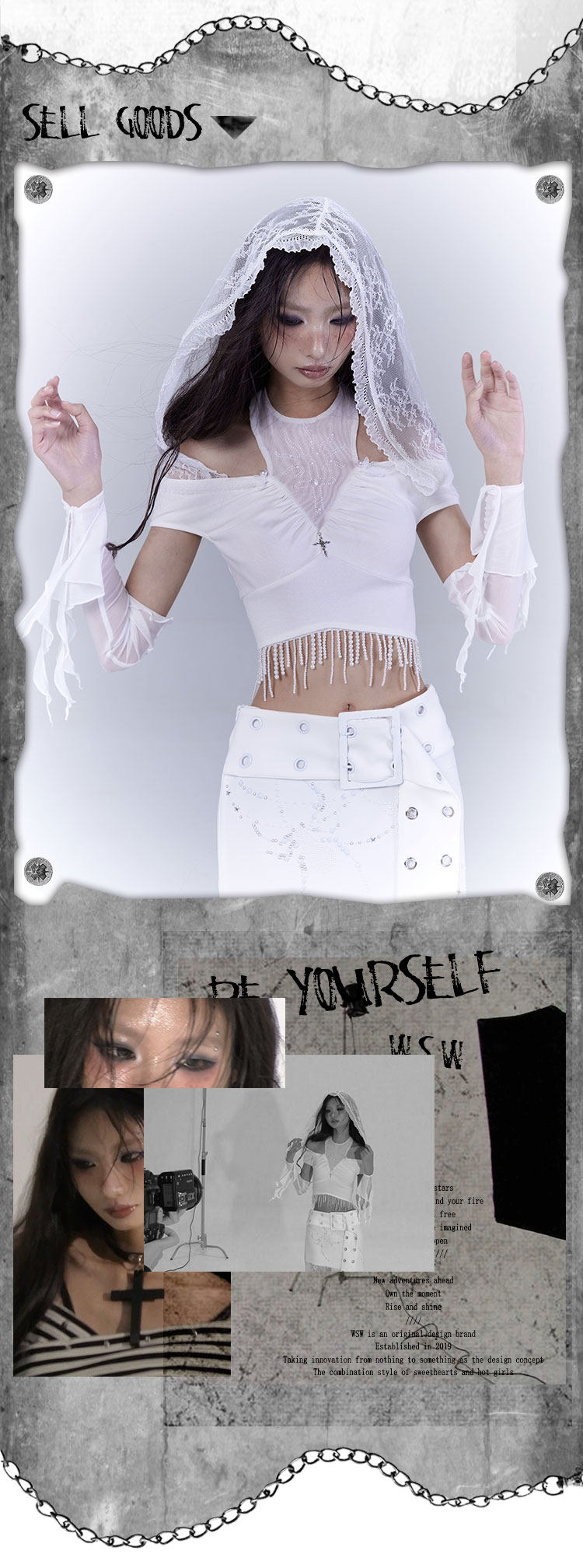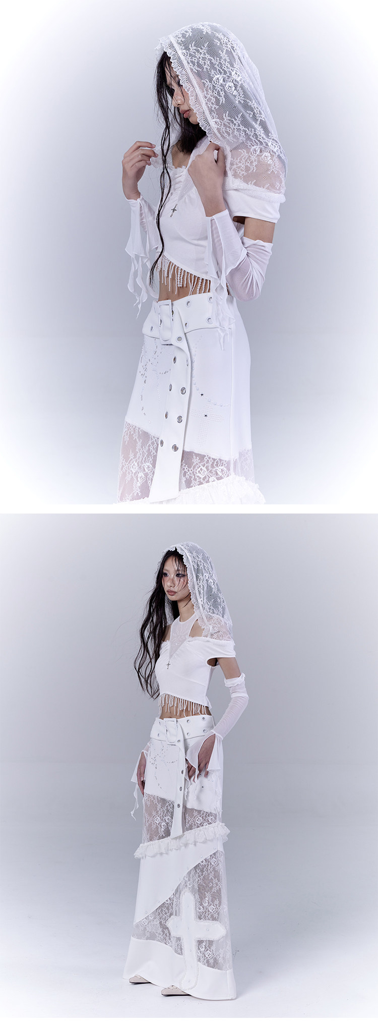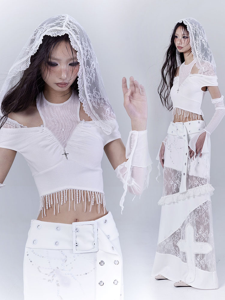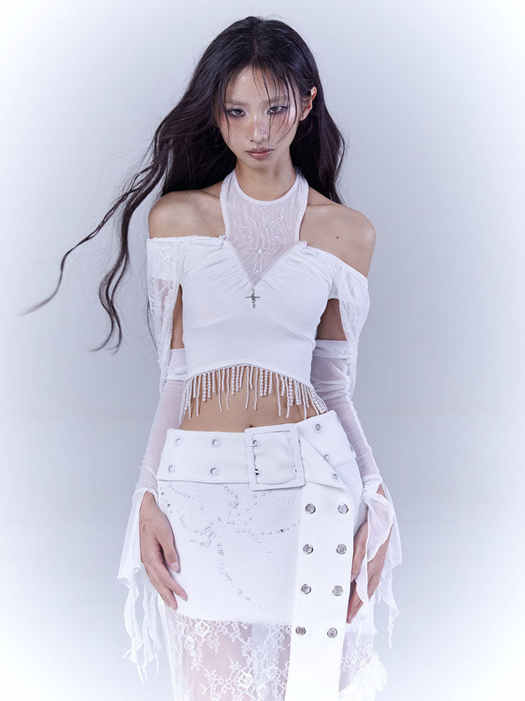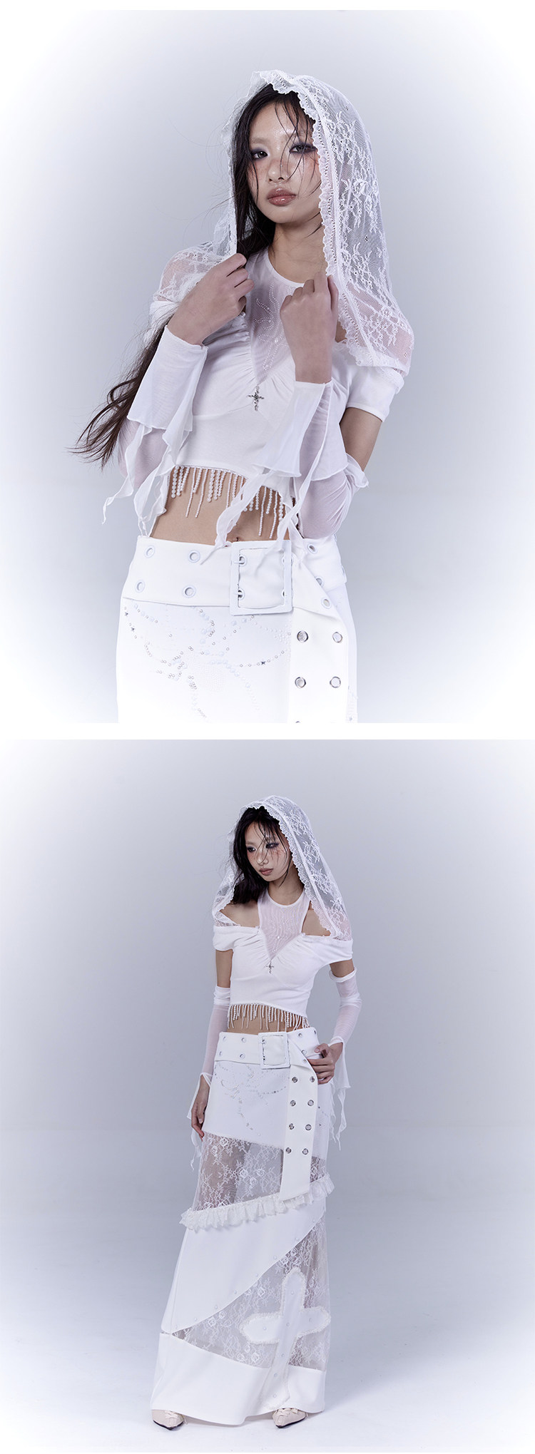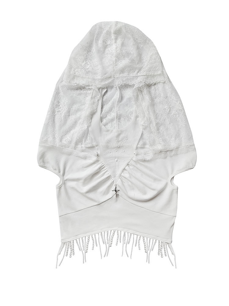 Off Shoulder Lace Pullover Hoodie & Arm Cover Set NA8535