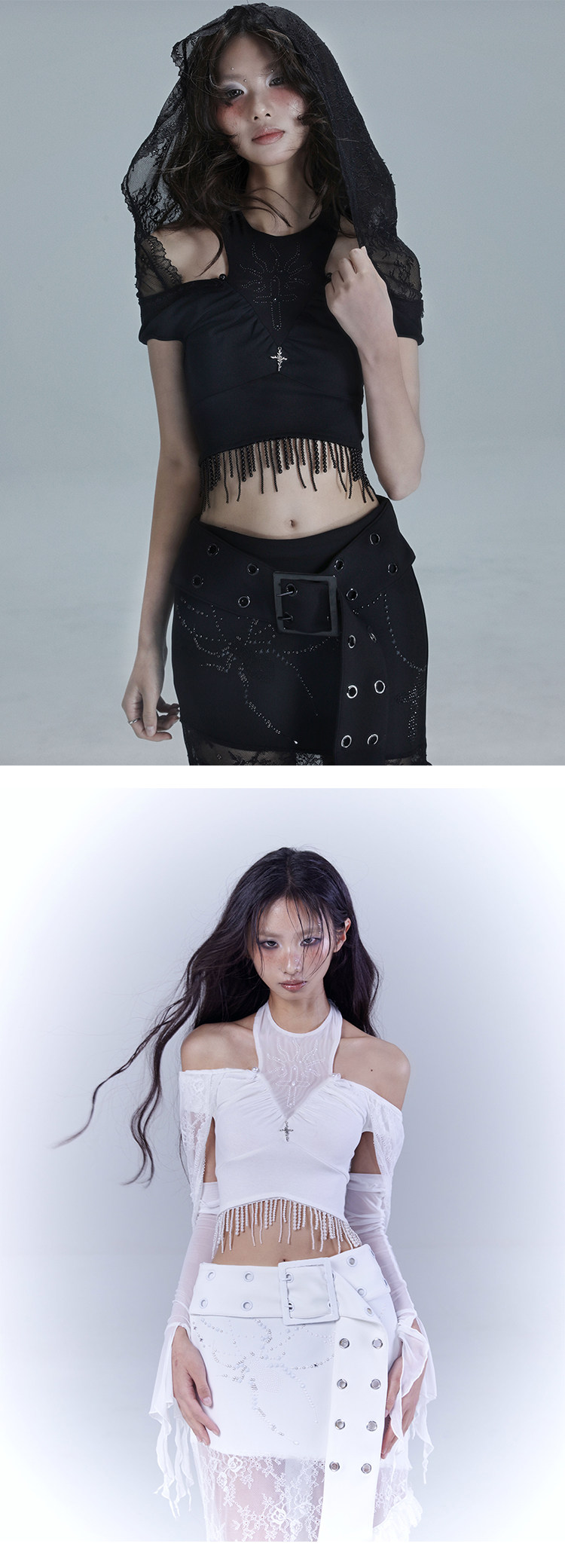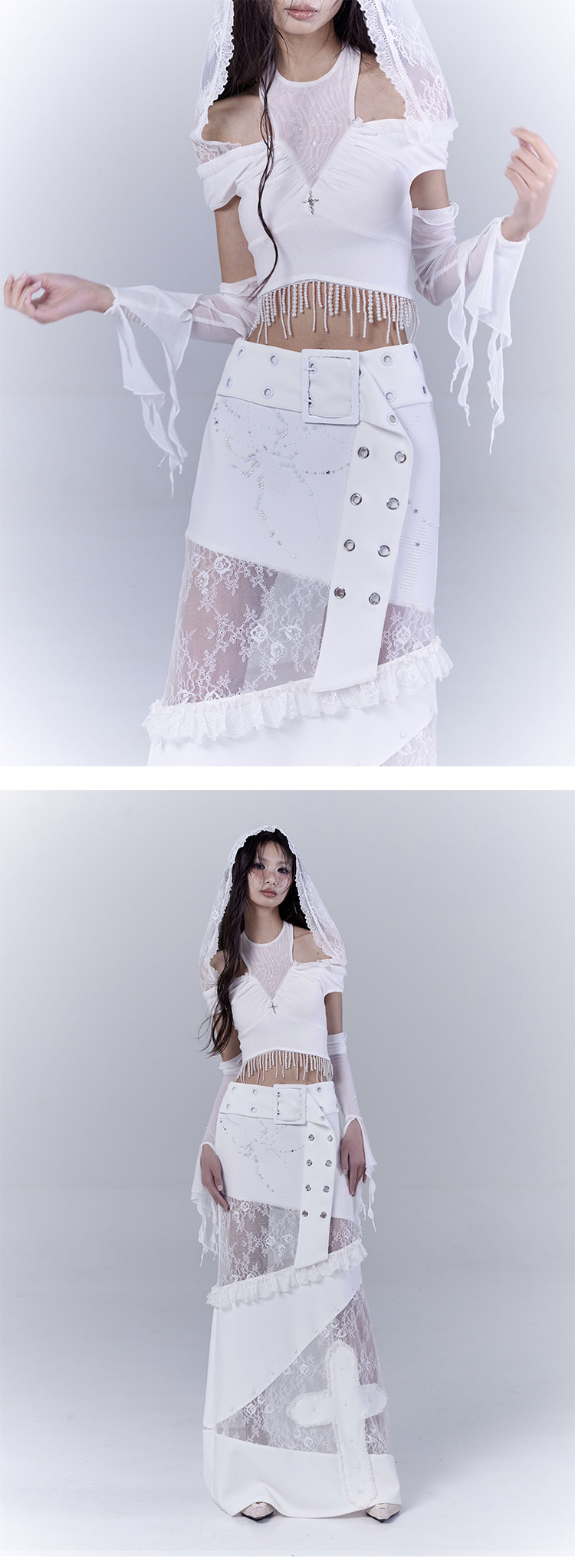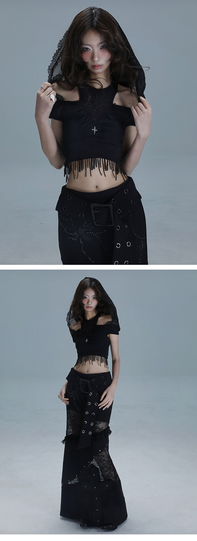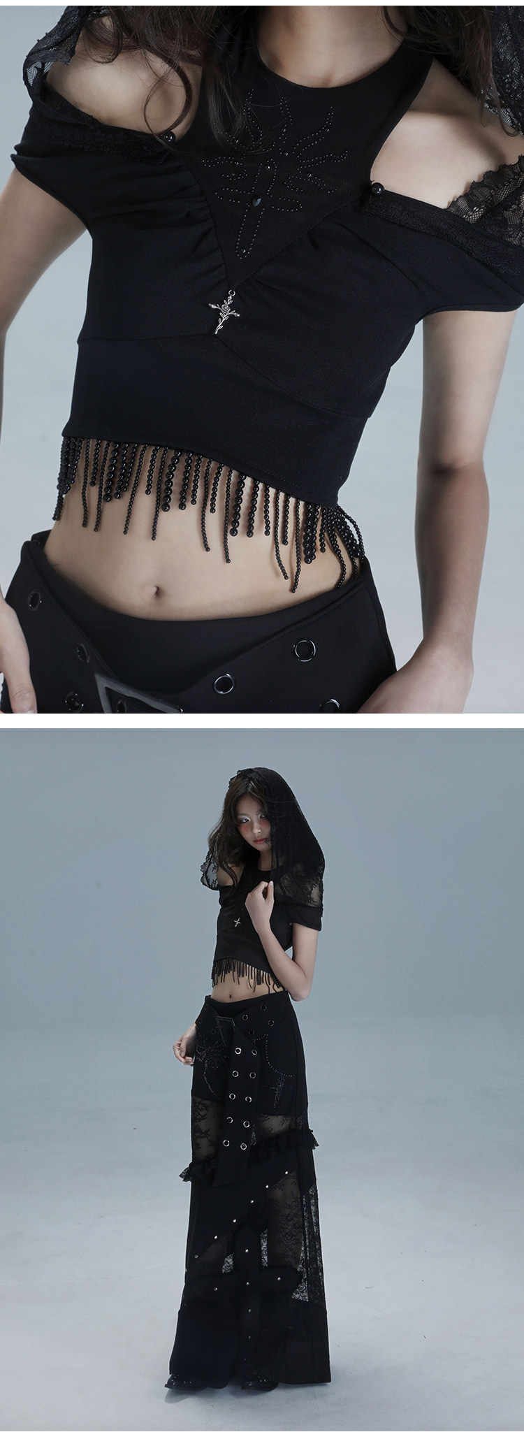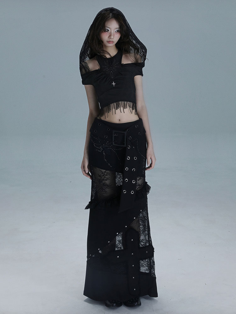 Off Shoulder Lace Pullover Hoodie & Arm Cover Set NA8535