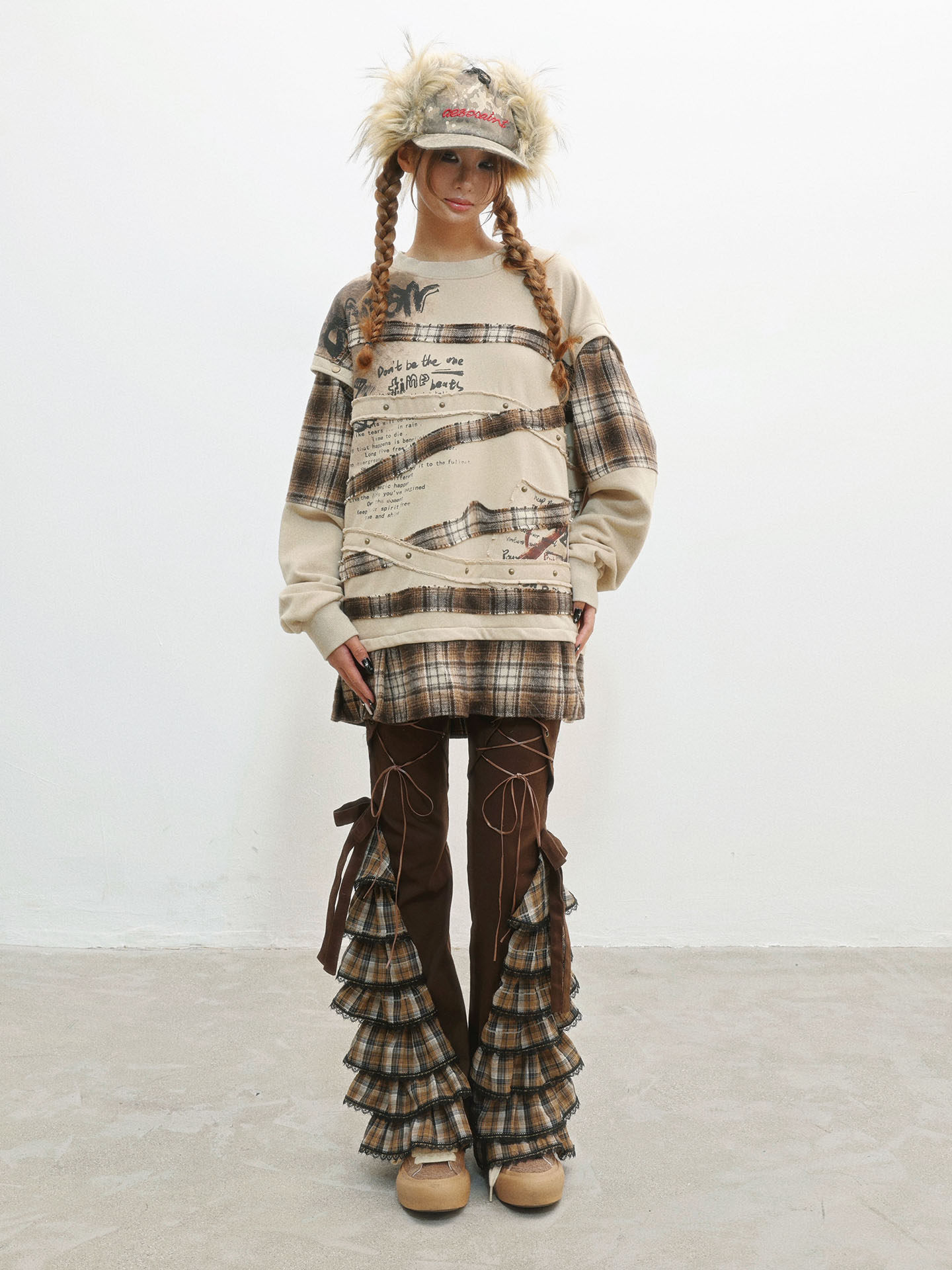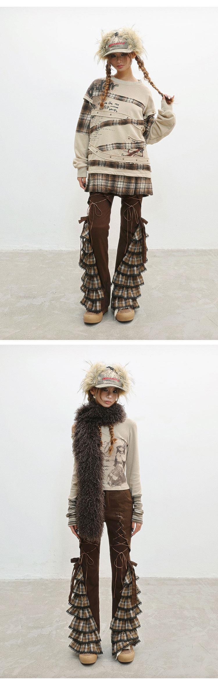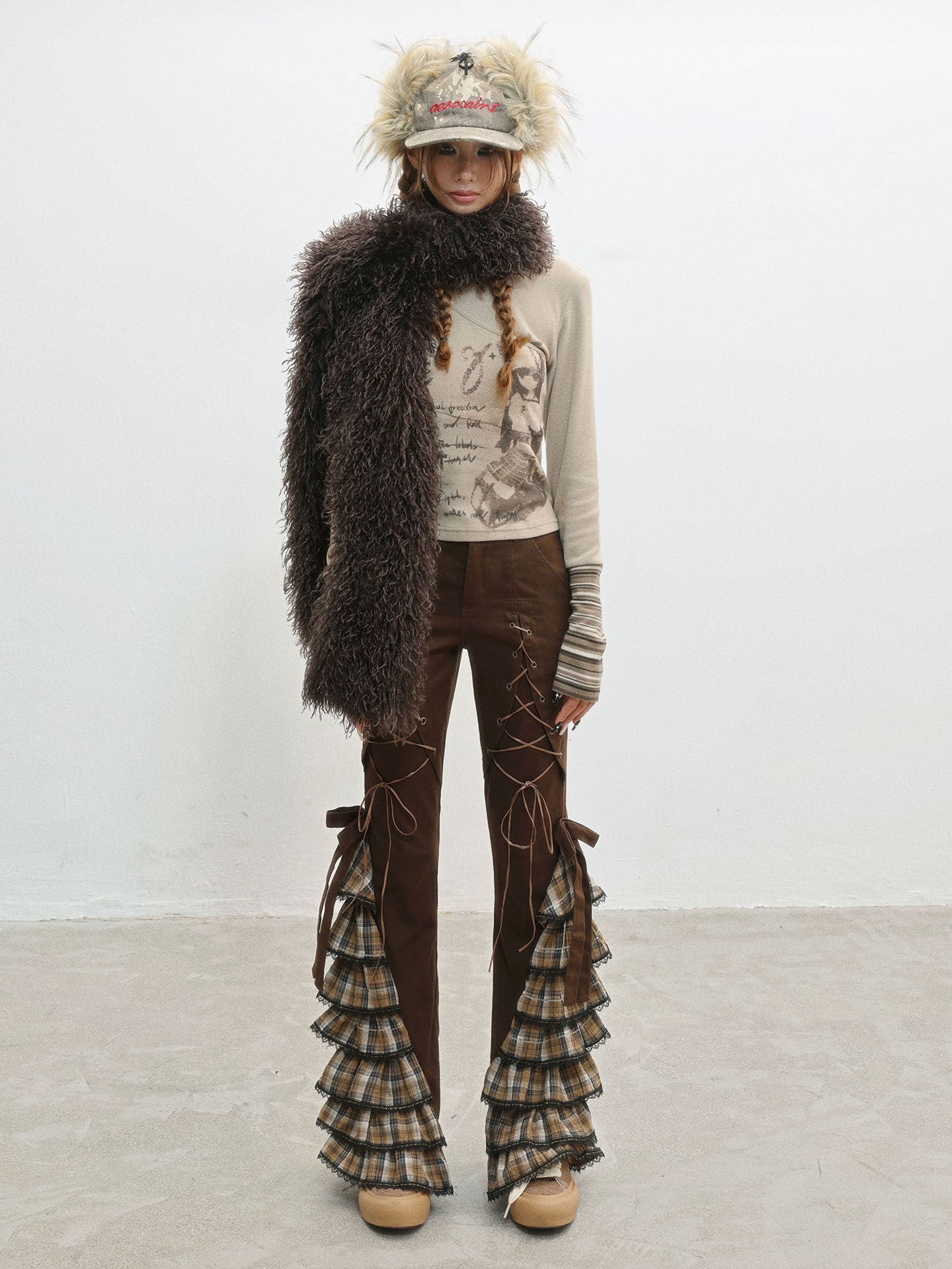 Plaid Lace-Up Ruffle Slimming Pants NA8559