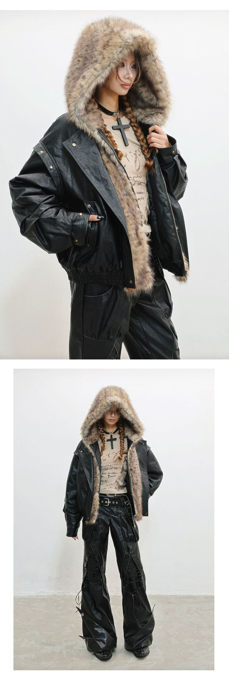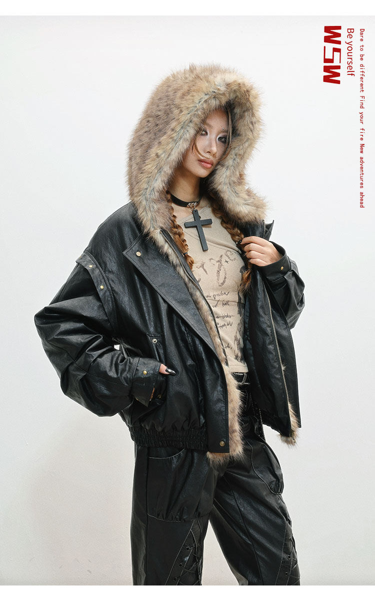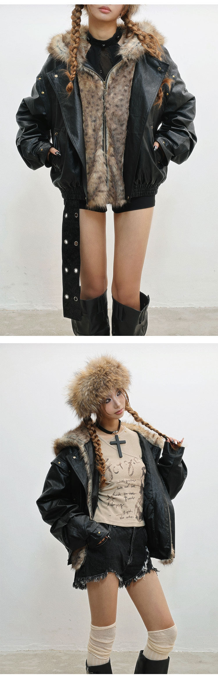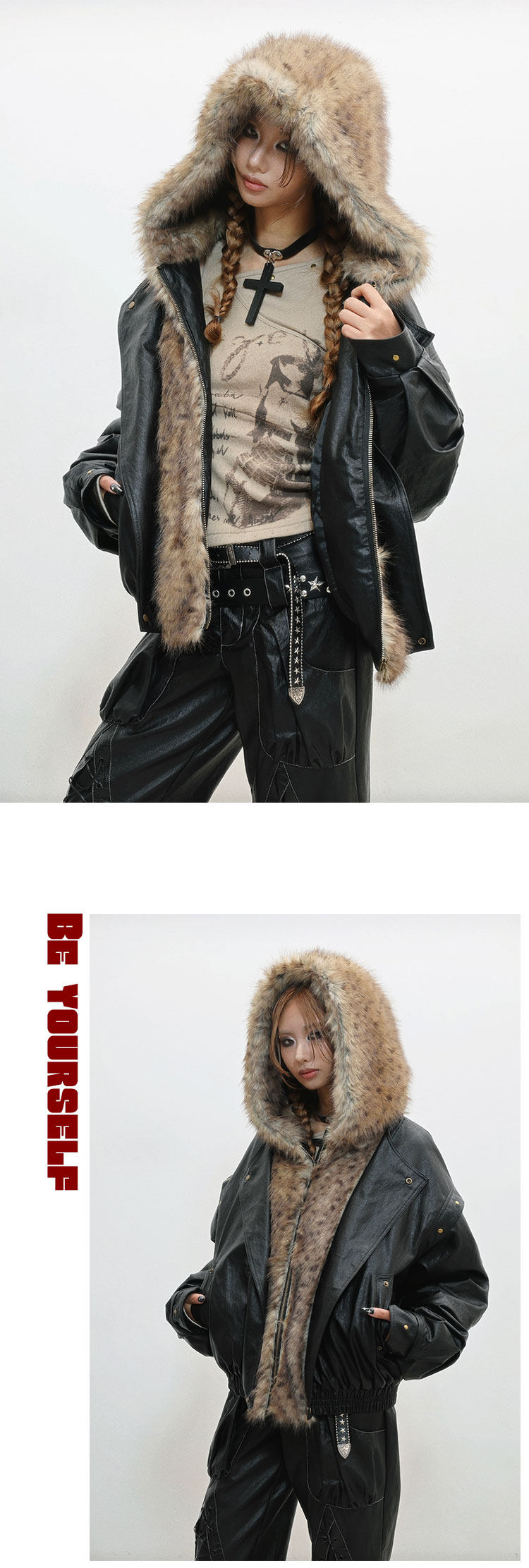 Fur Patchwork Thick PU Leather Jacket NA8562