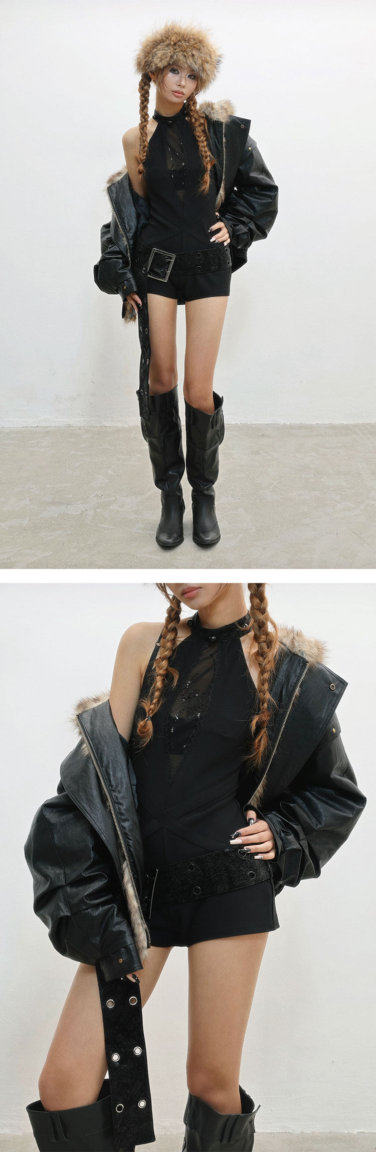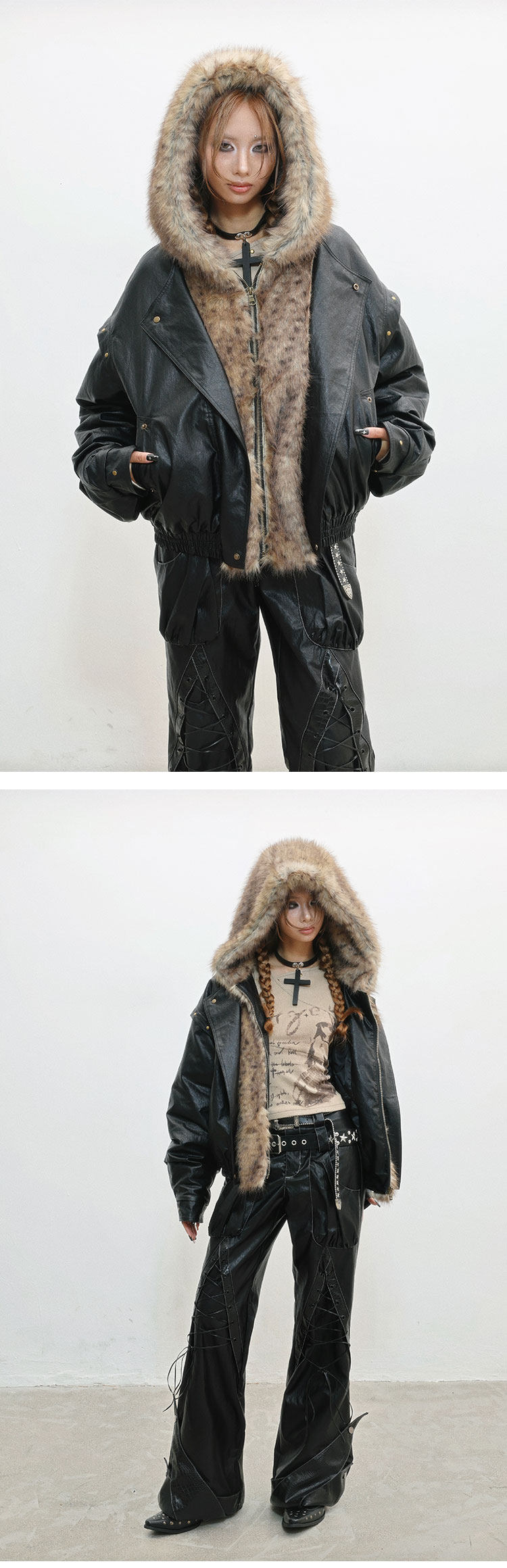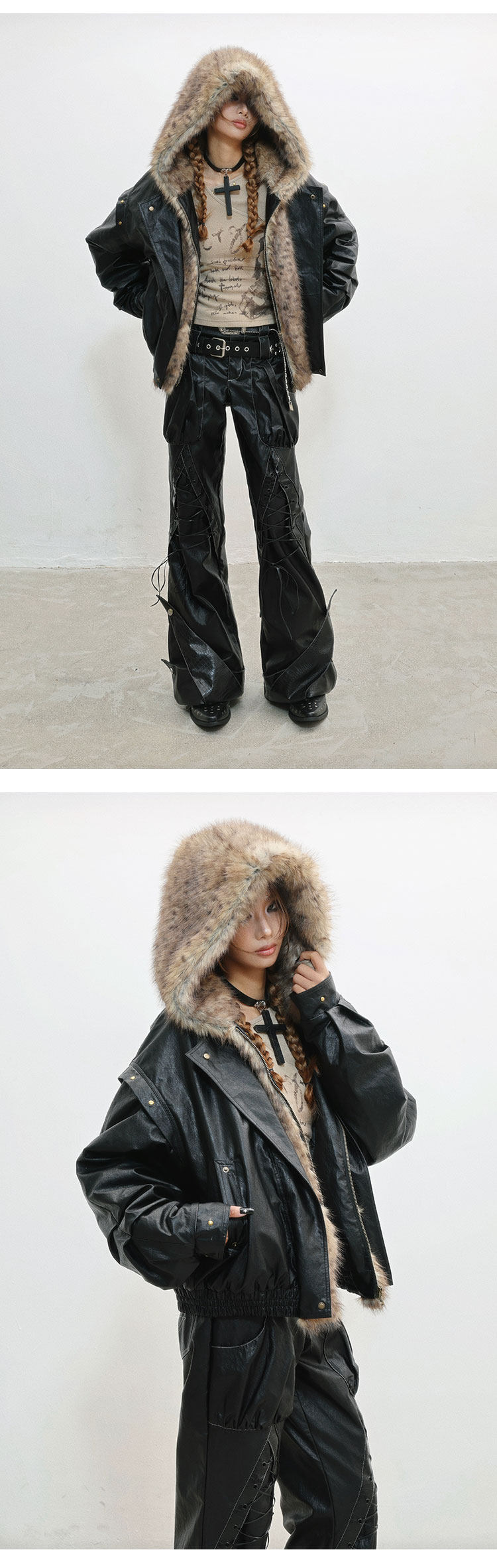 Fur Patchwork Thick PU Leather Jacket NA8562