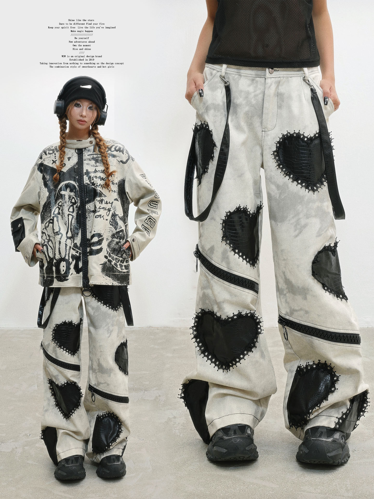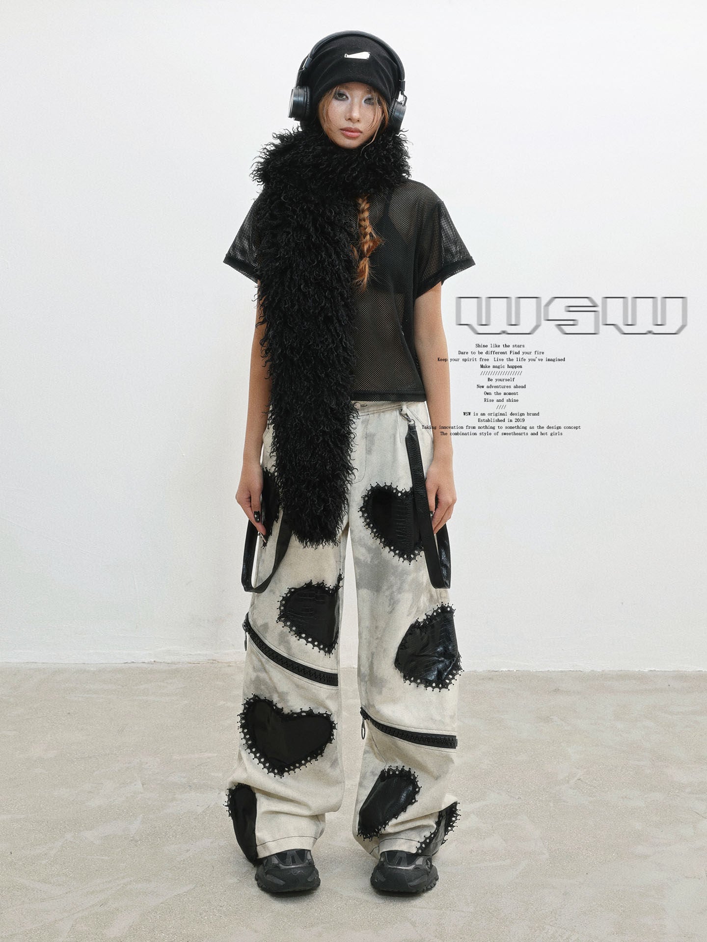 Heavy Craft Damage Wide Leg Dark Denim Jeans NA8563