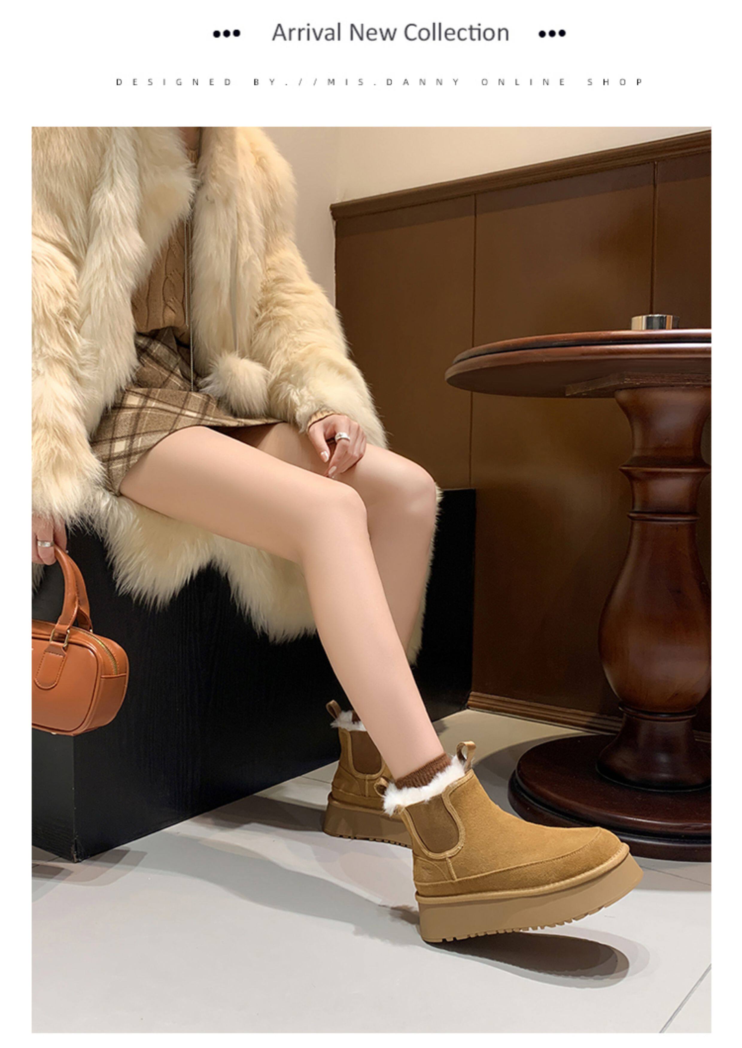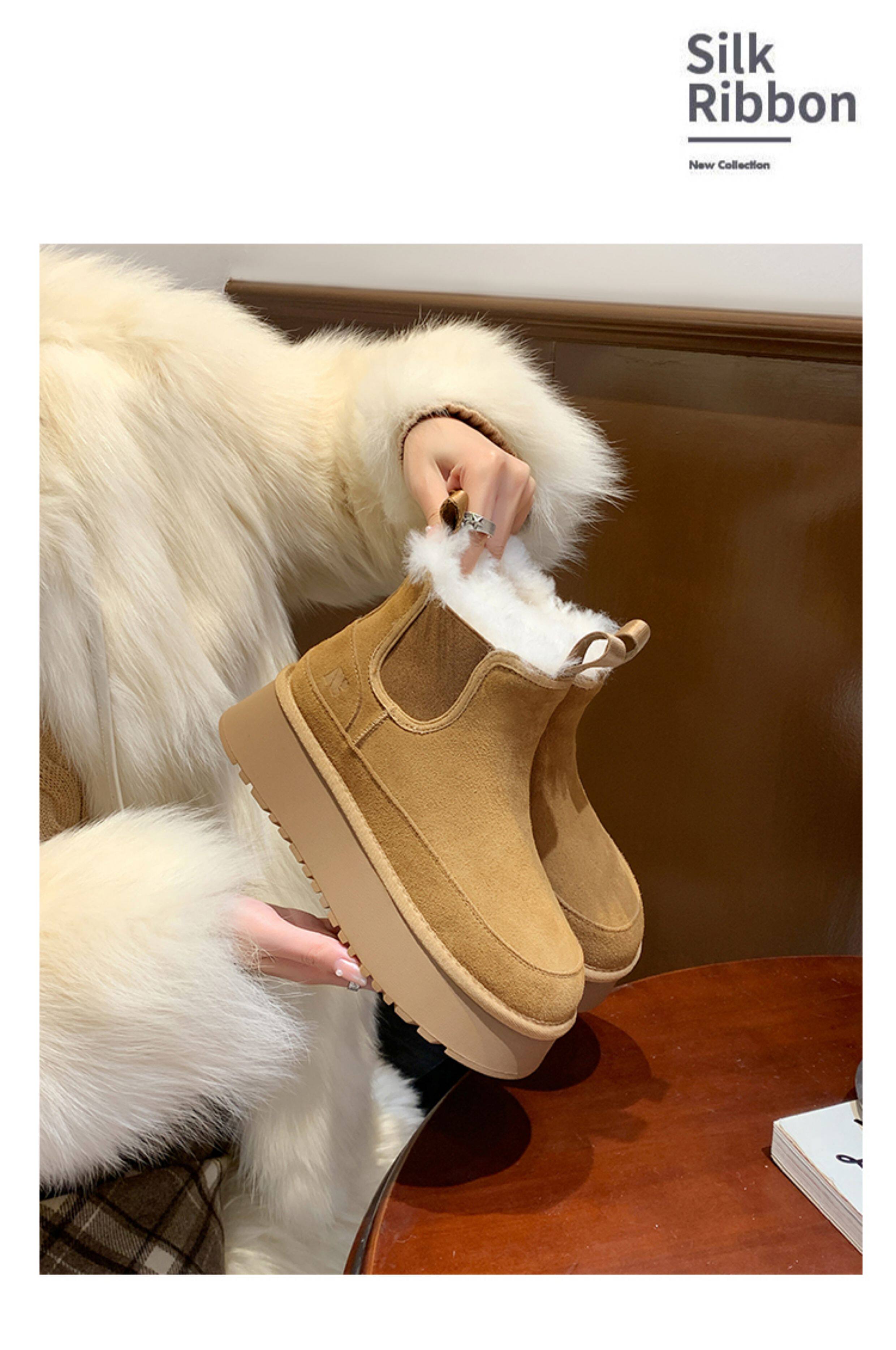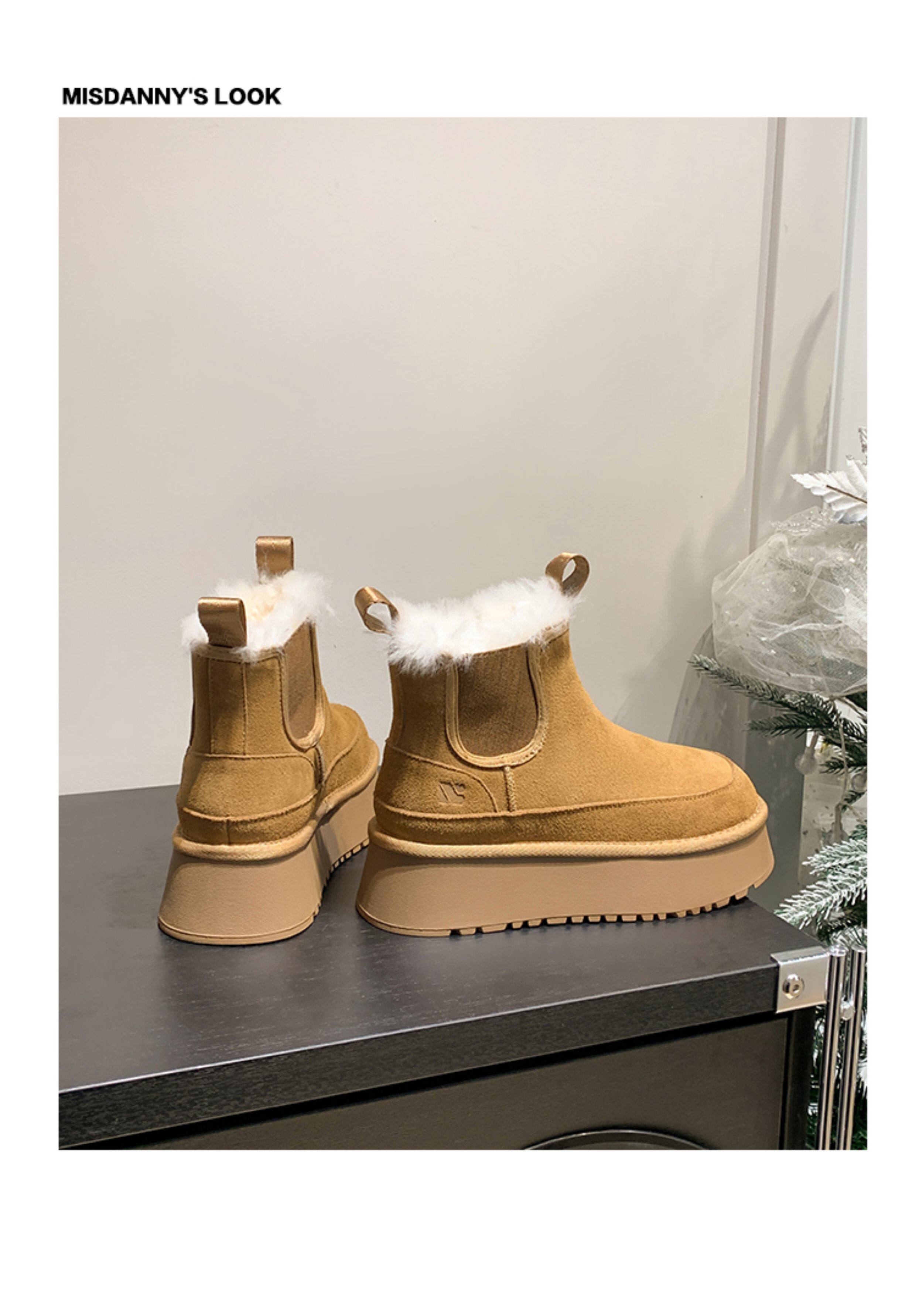 Fake Fur Lined Platform Chelsea Boots NA8660