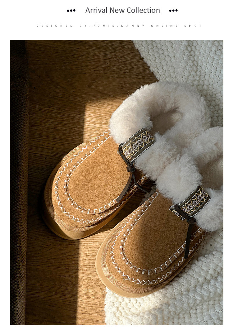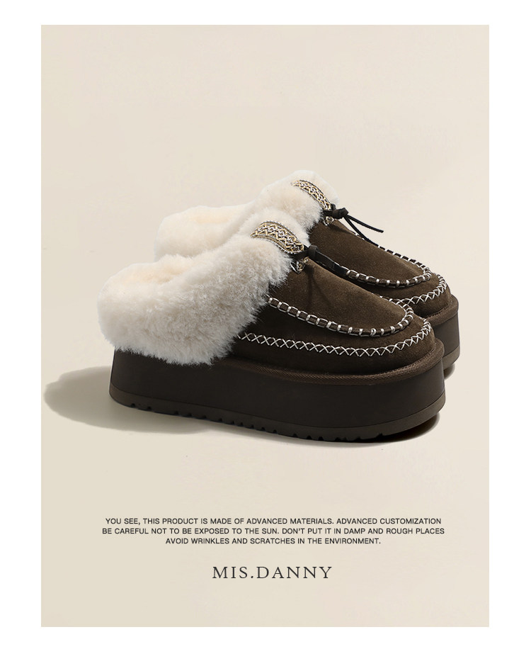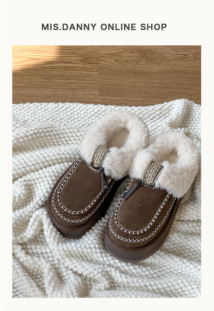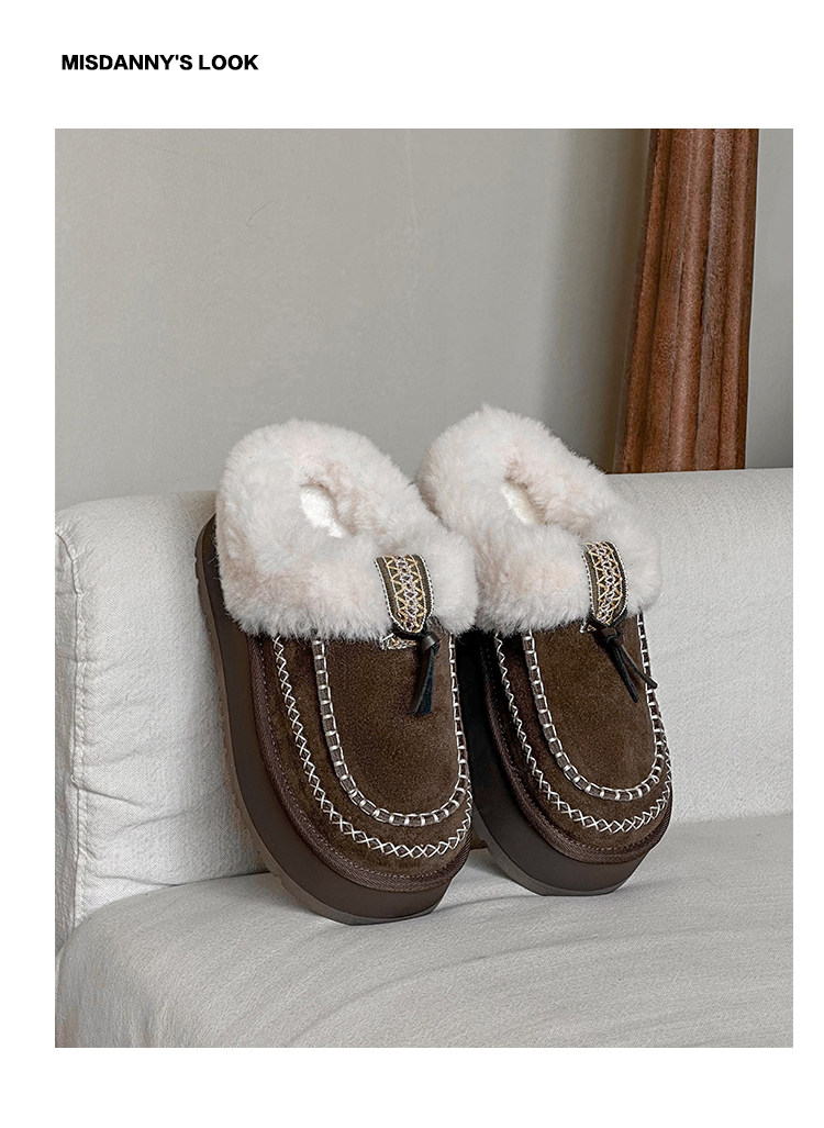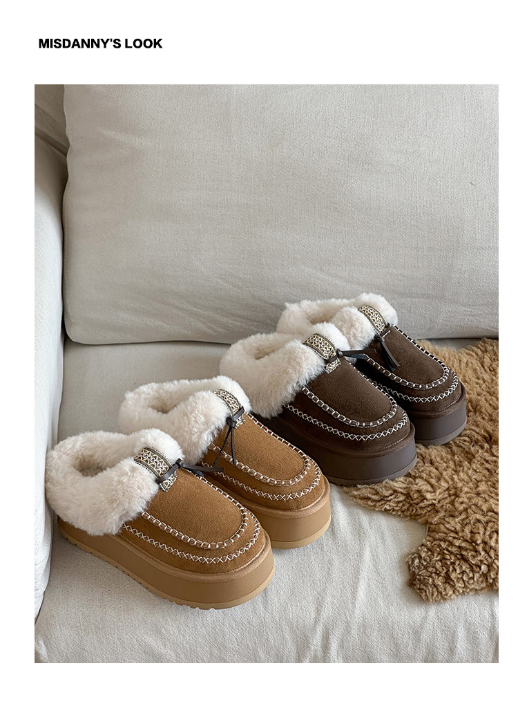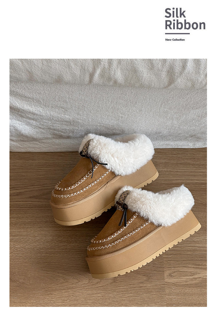 Fake Fur Lined Stitch Detail Platform Mules NA8669