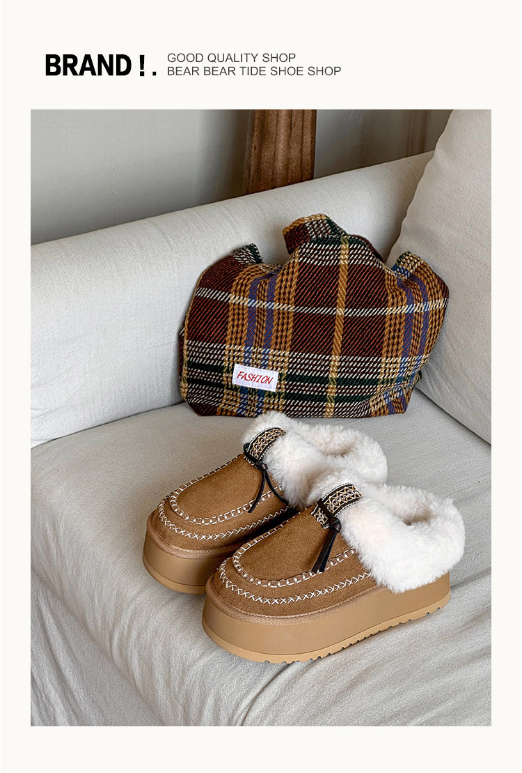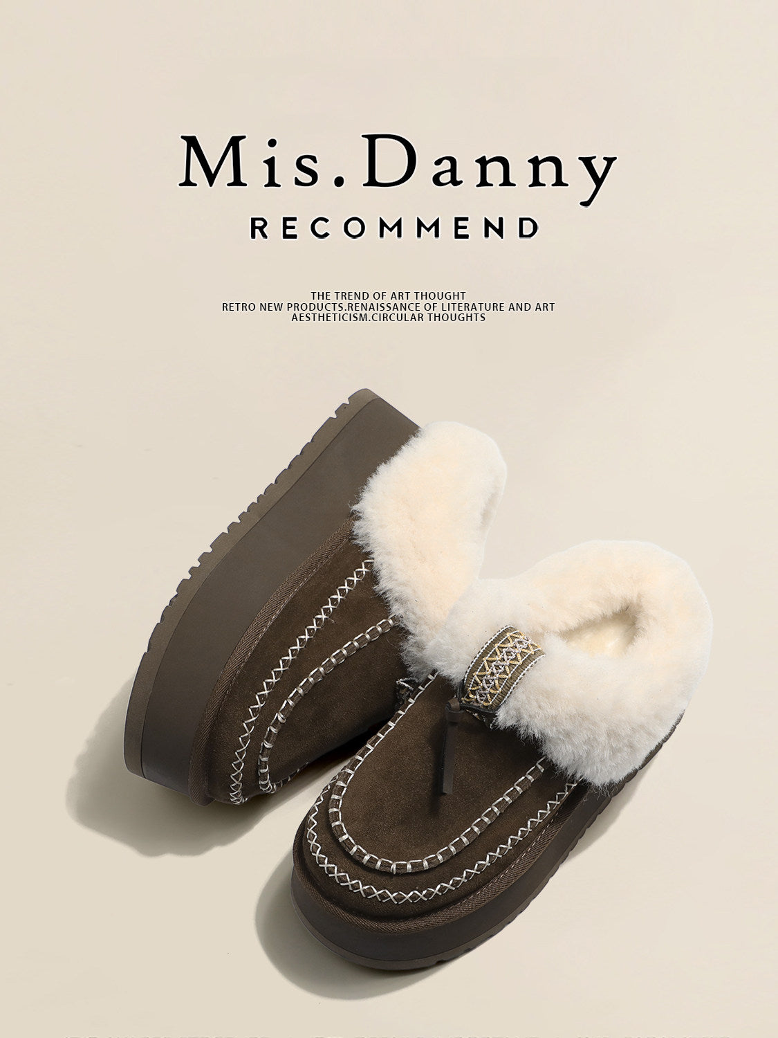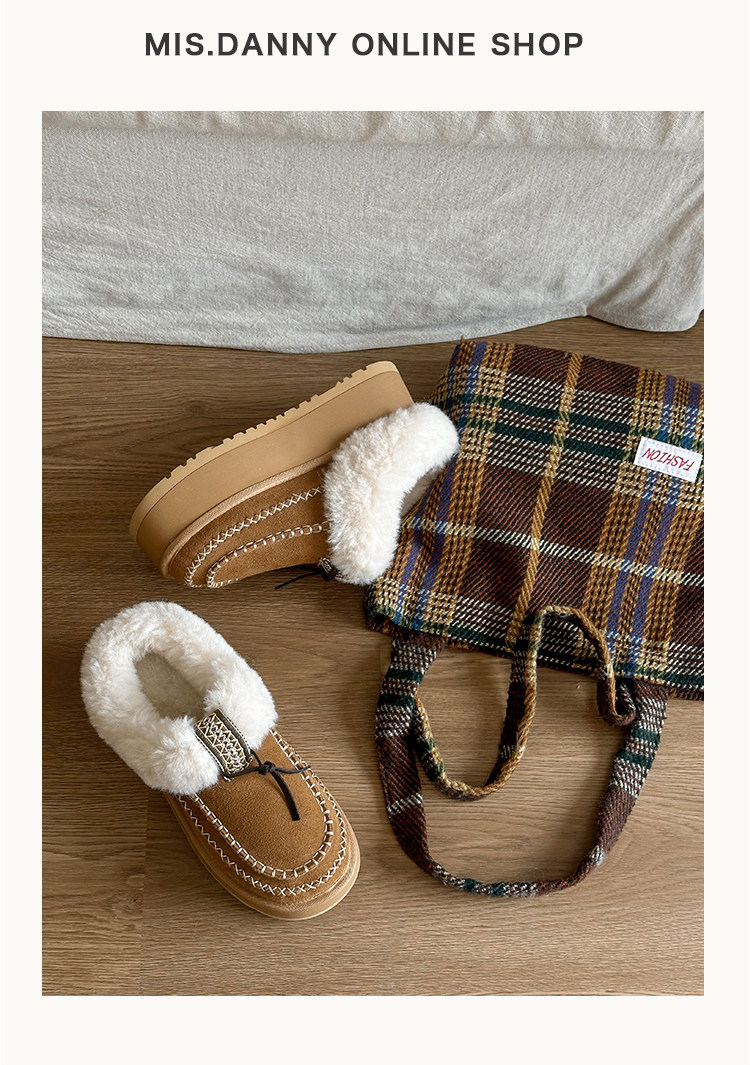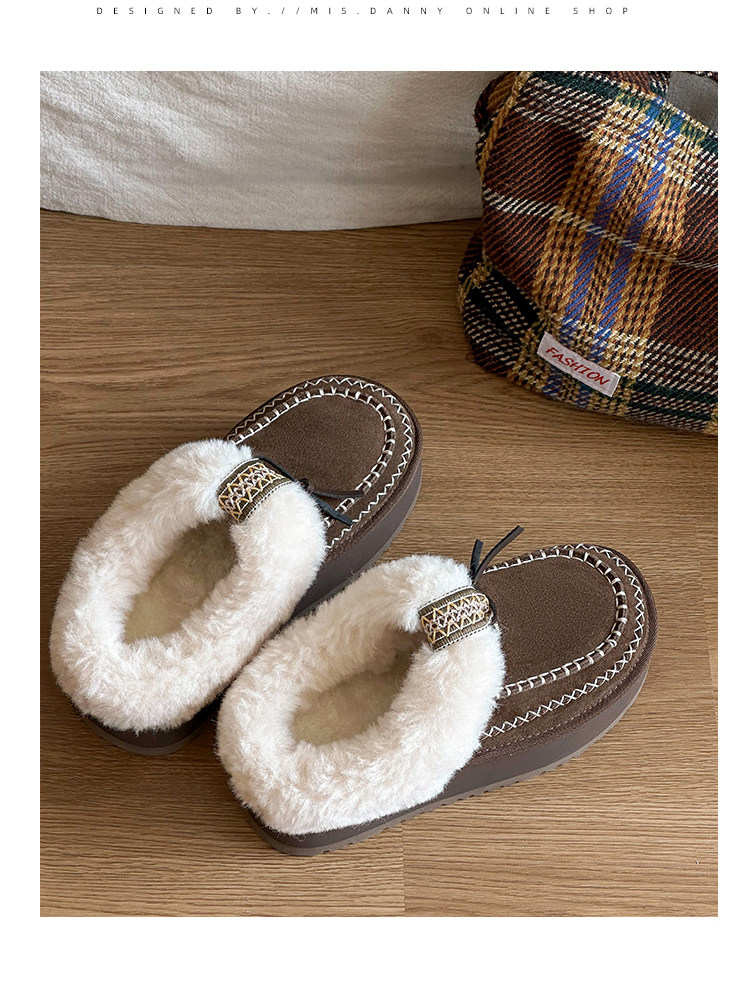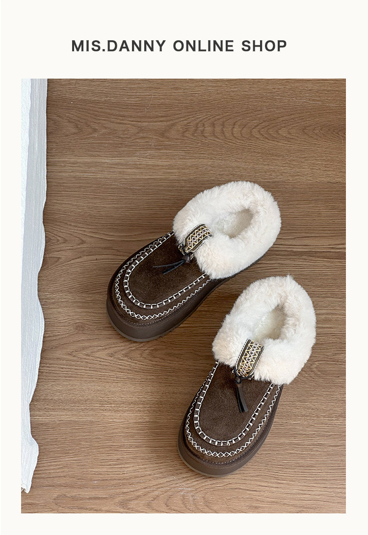 Fake Fur Lined Stitch Detail Platform Mules NA8669