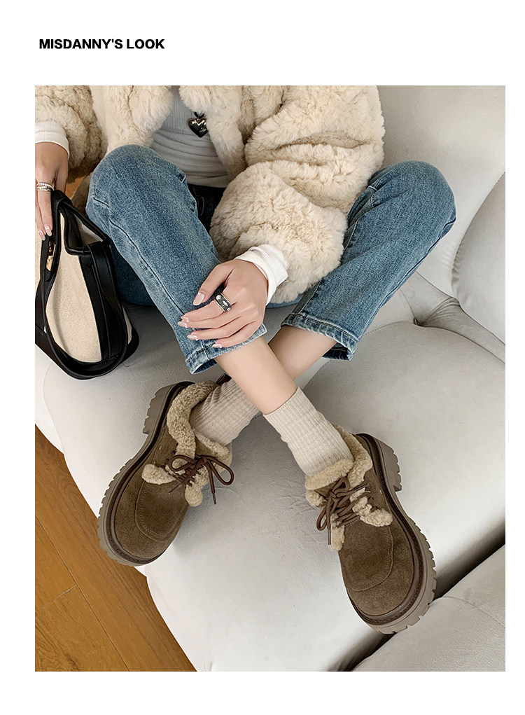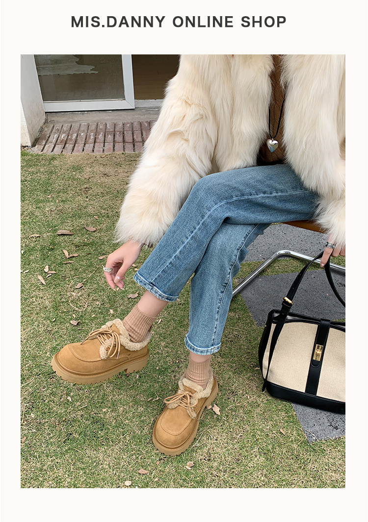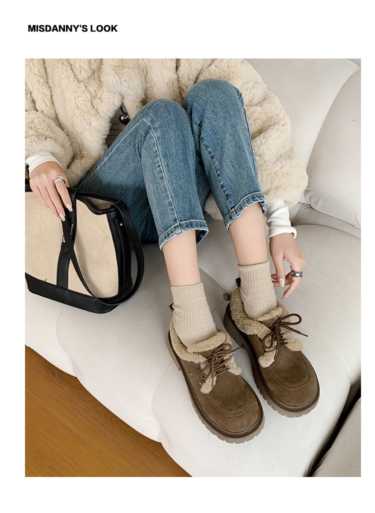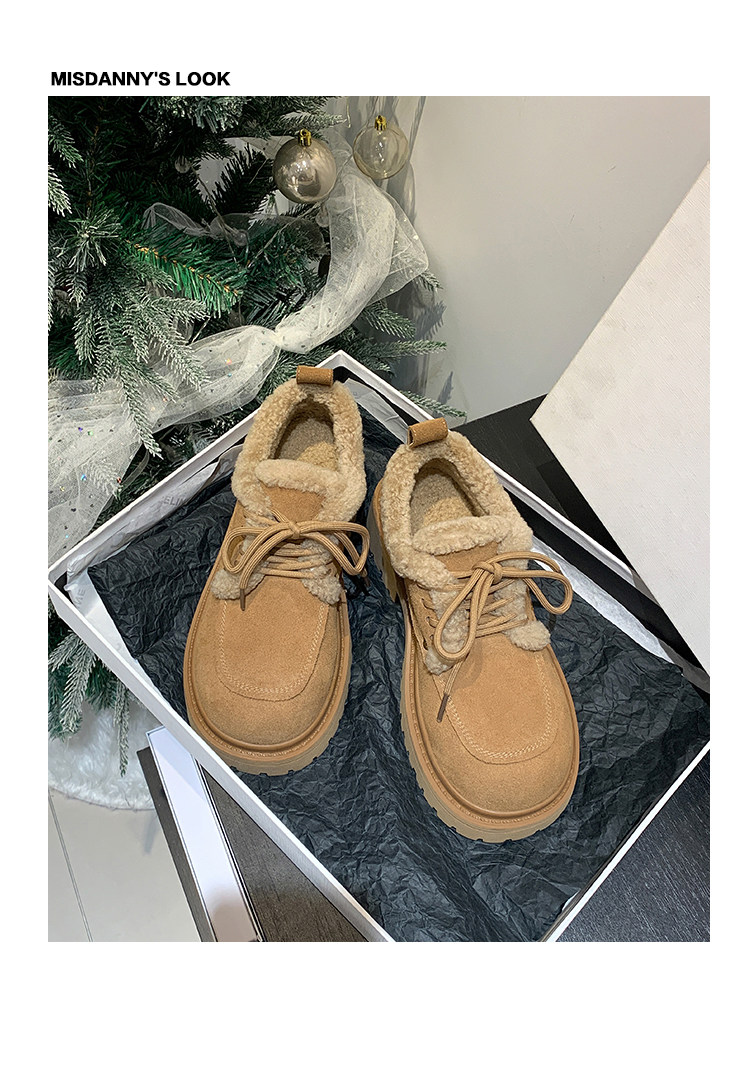 Fake Fur Lined Lace-Up Platform Shoes NA8671