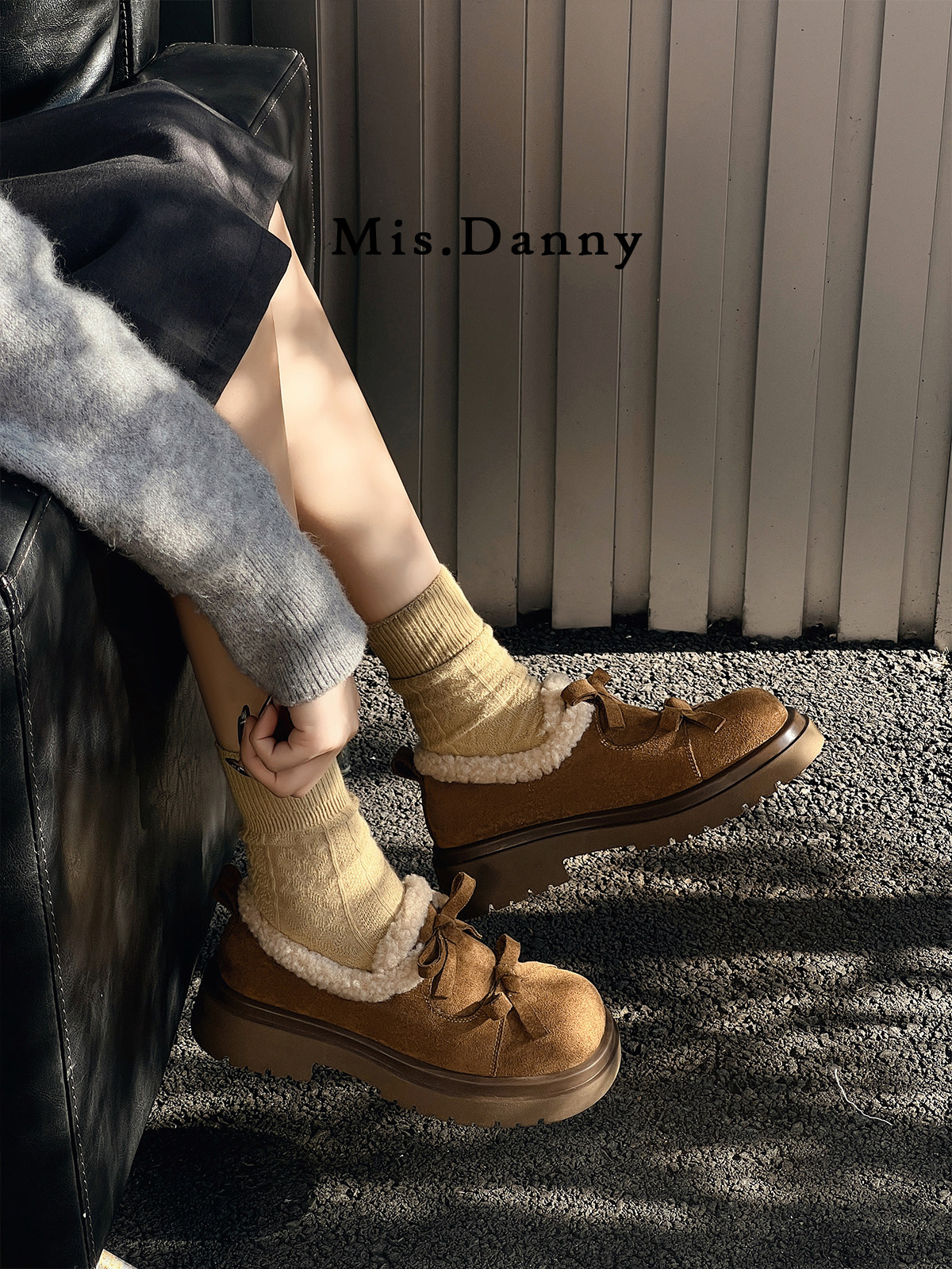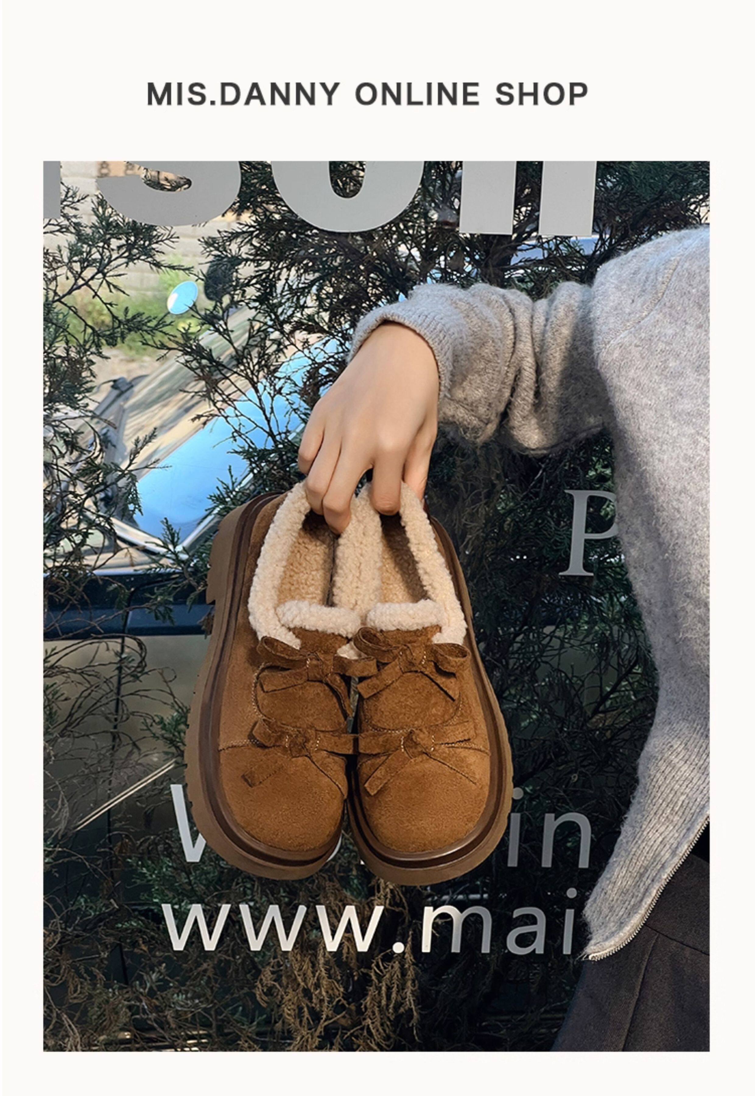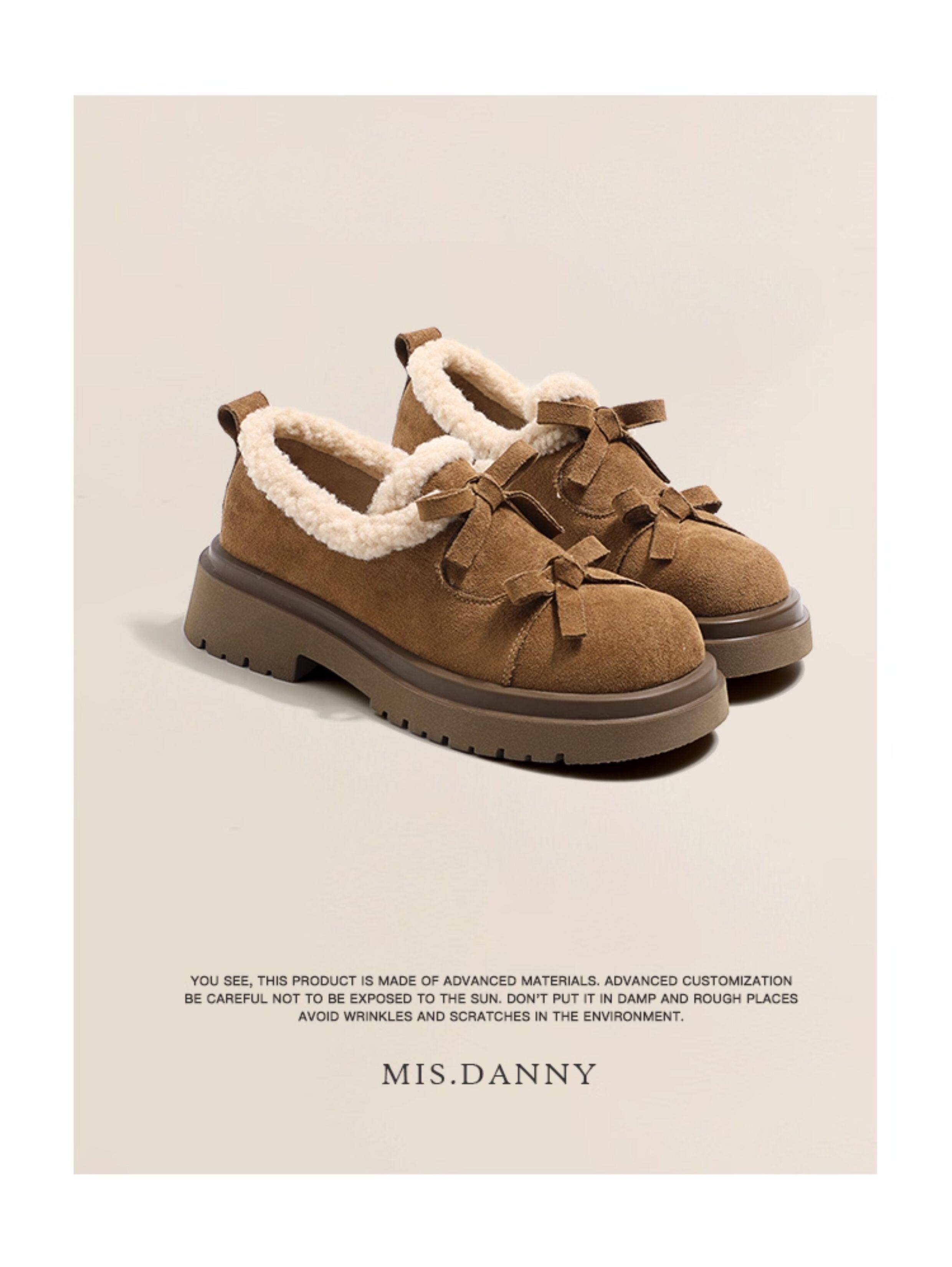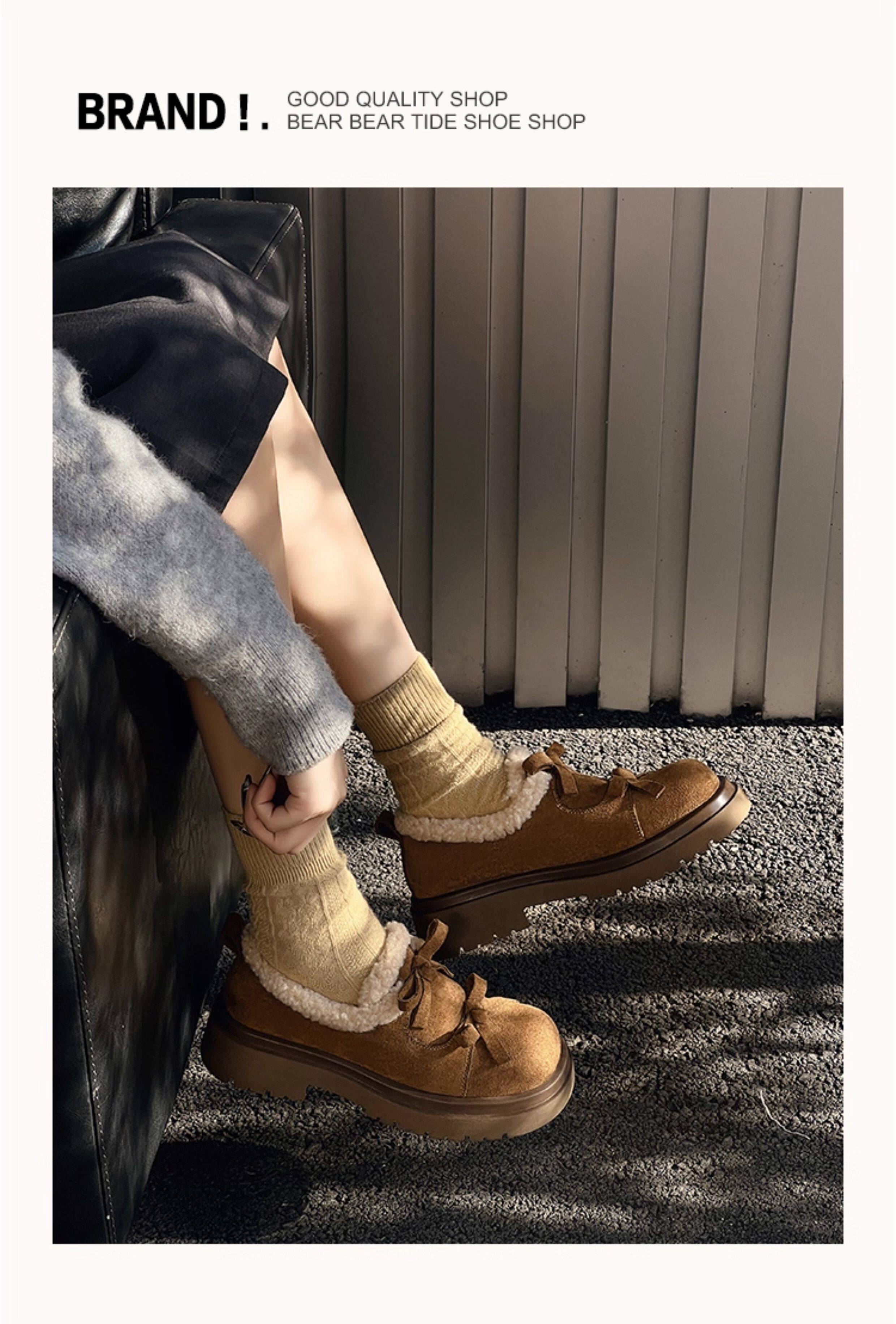 Suede Leather Fleece Lining Platform Loafers NA8753