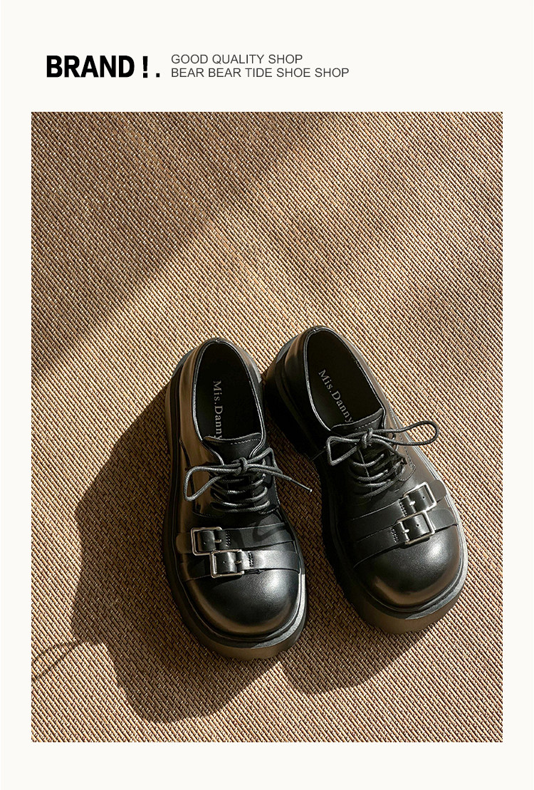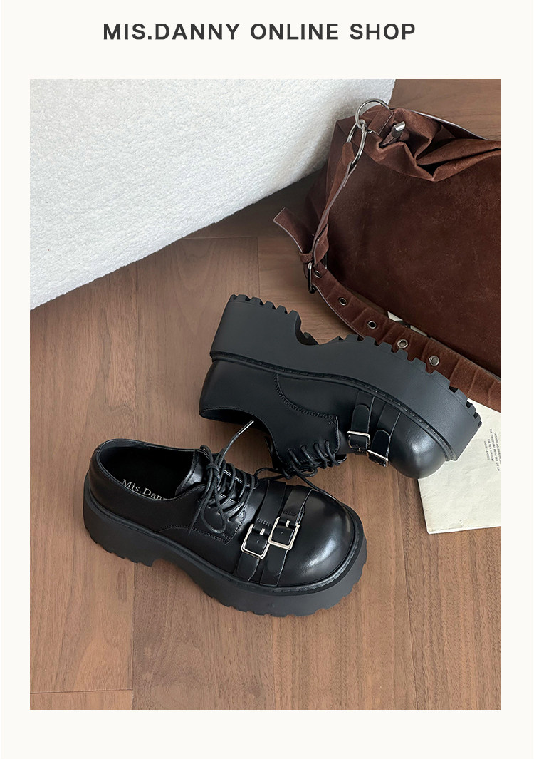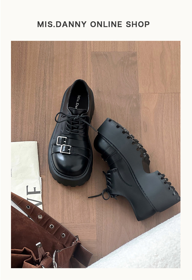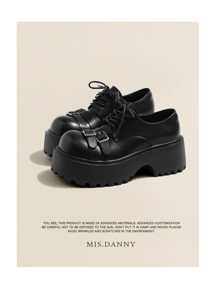 Metal Buckle Platform Round Toe Lace-Up Heeled Shoes NA8760