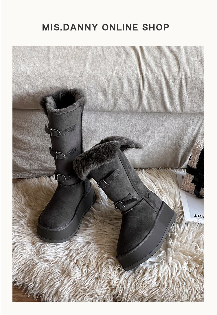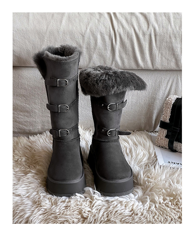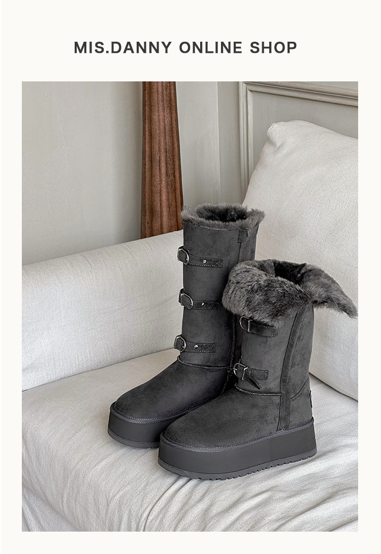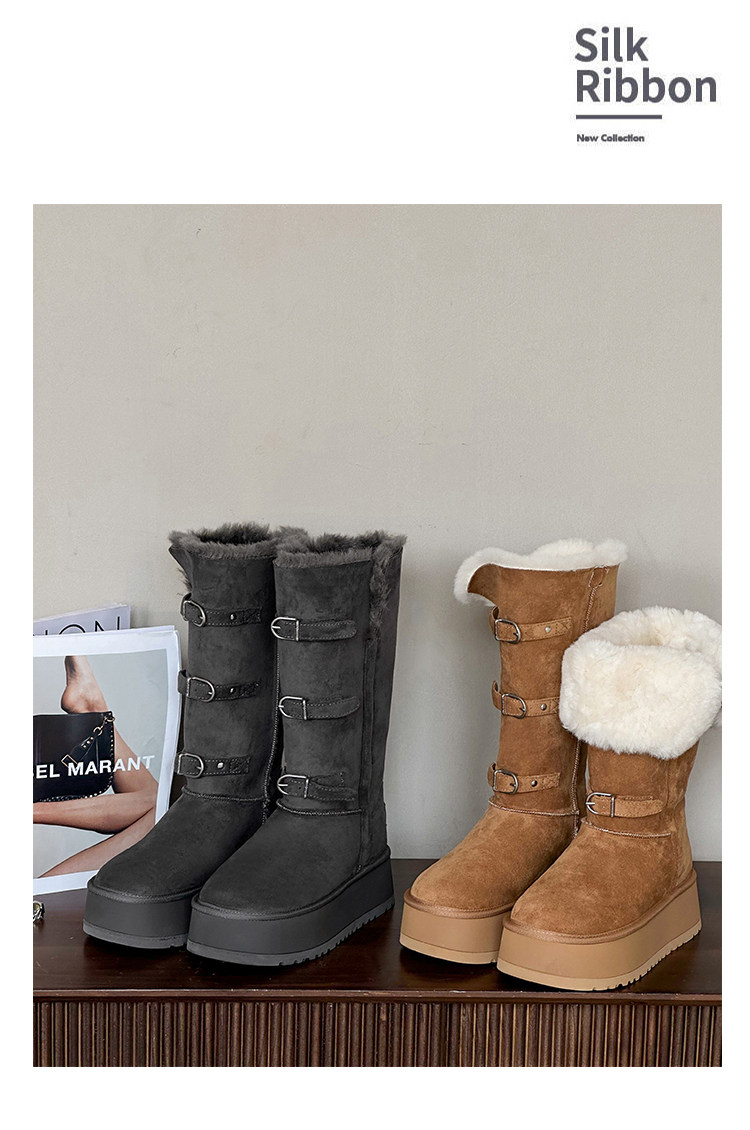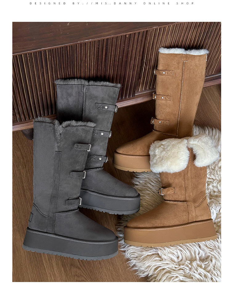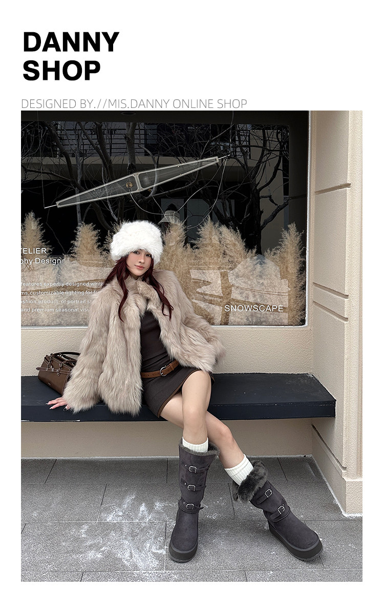 Fur Trim Metal Buckle Platform Knee-High Boots NA8762