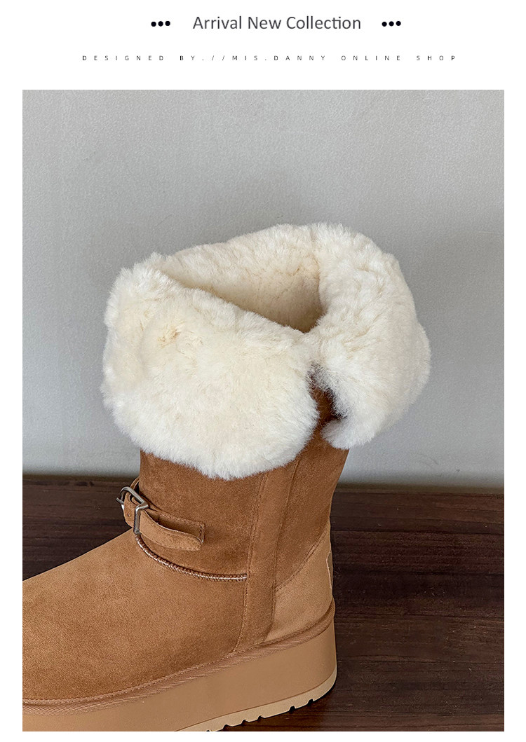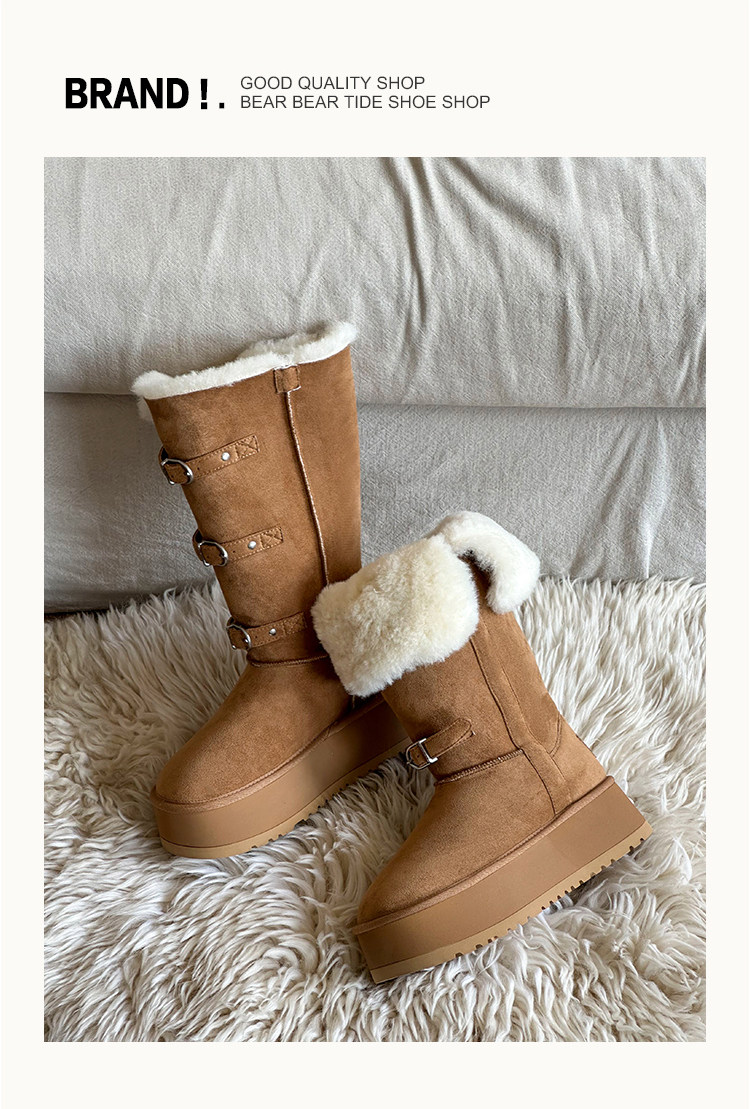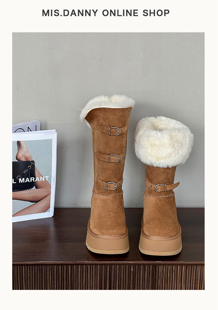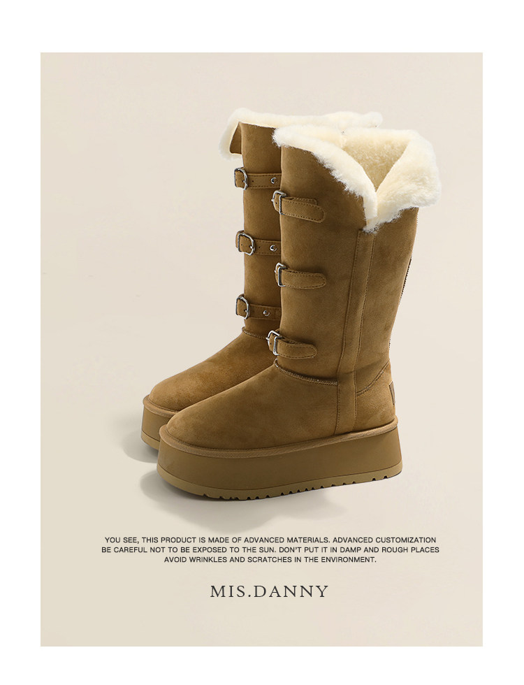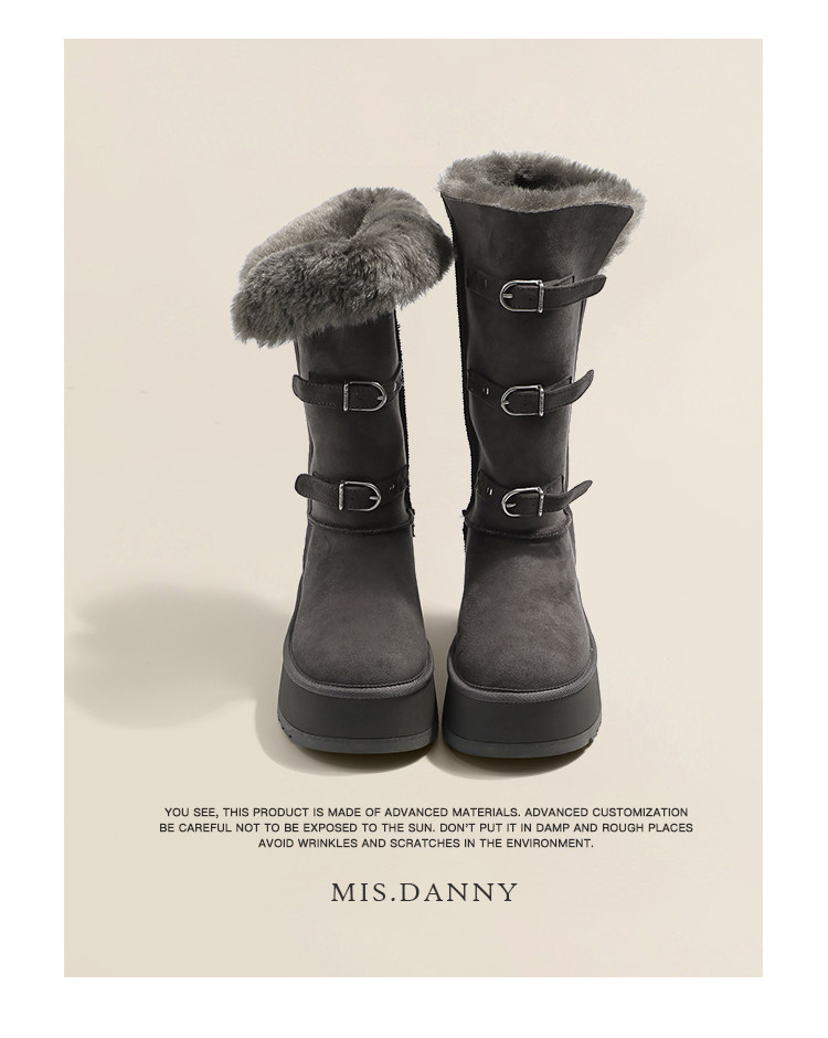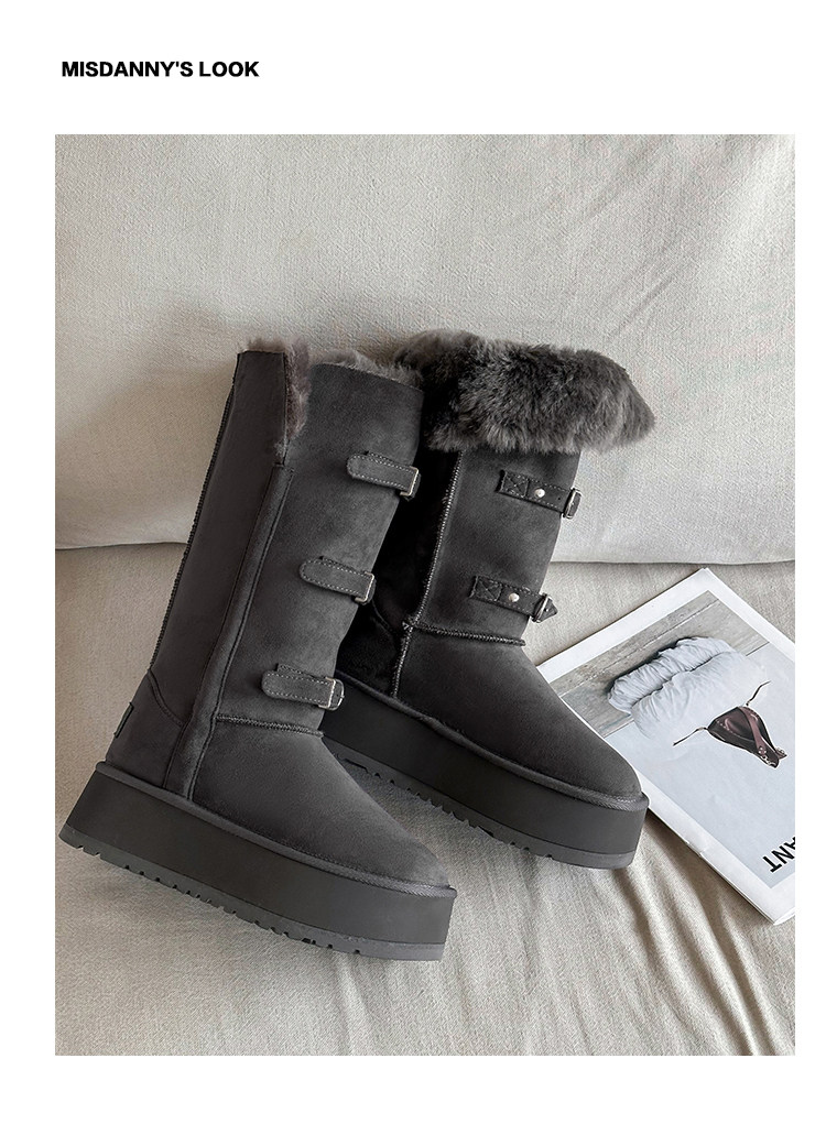 Fur Trim Metal Buckle Platform Knee-High Boots NA8762