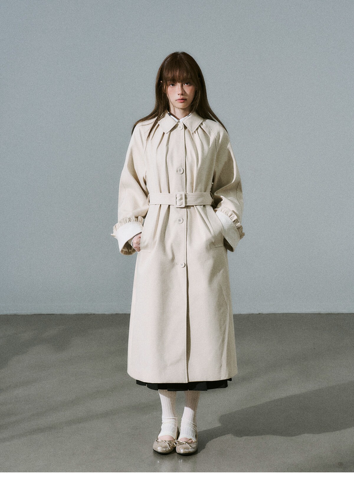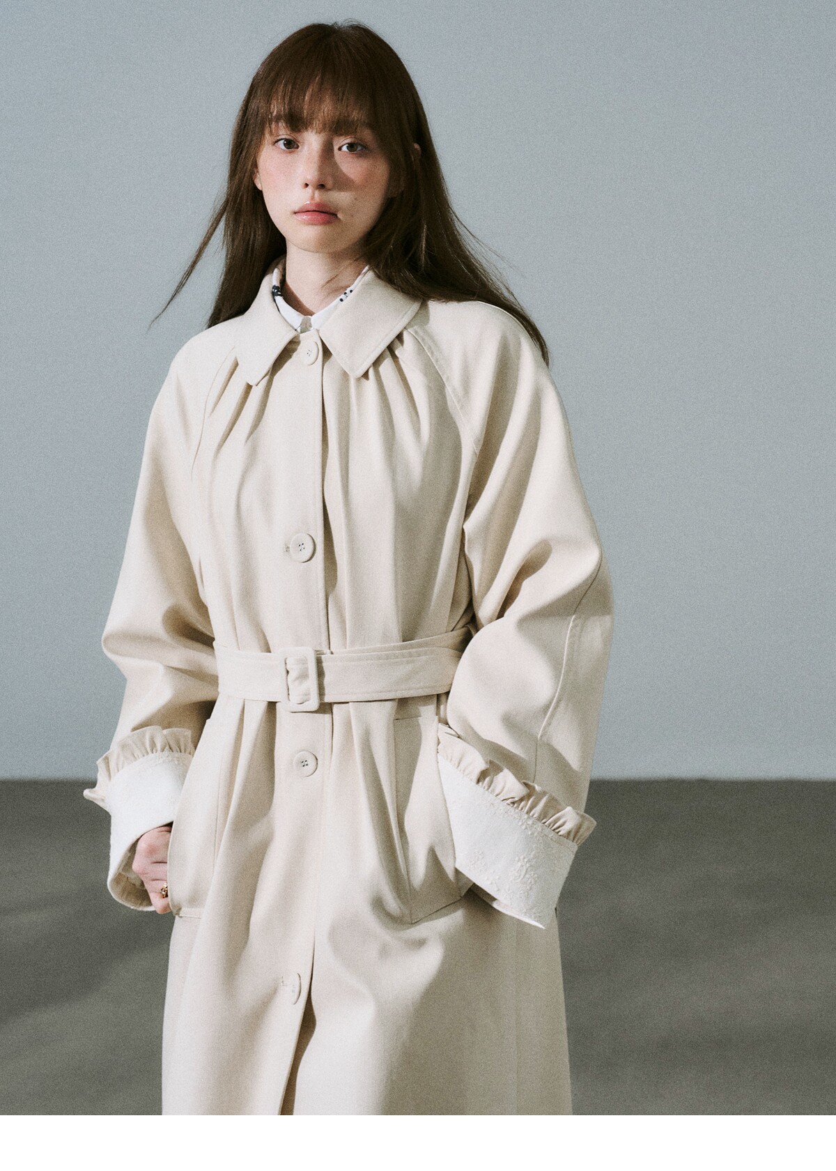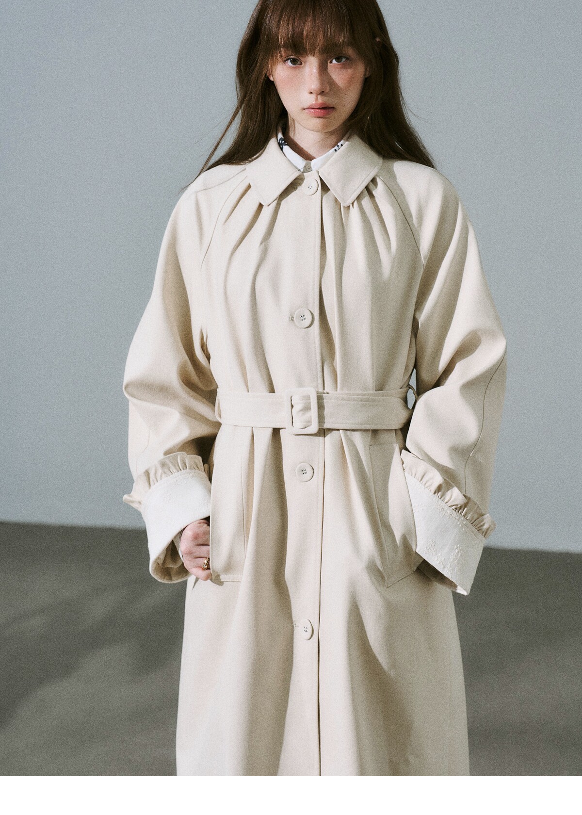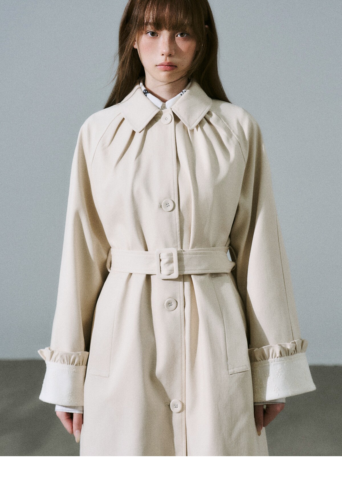 Lyocell Cotton Flower Bud Patchwork Ruffle Coat NA8795