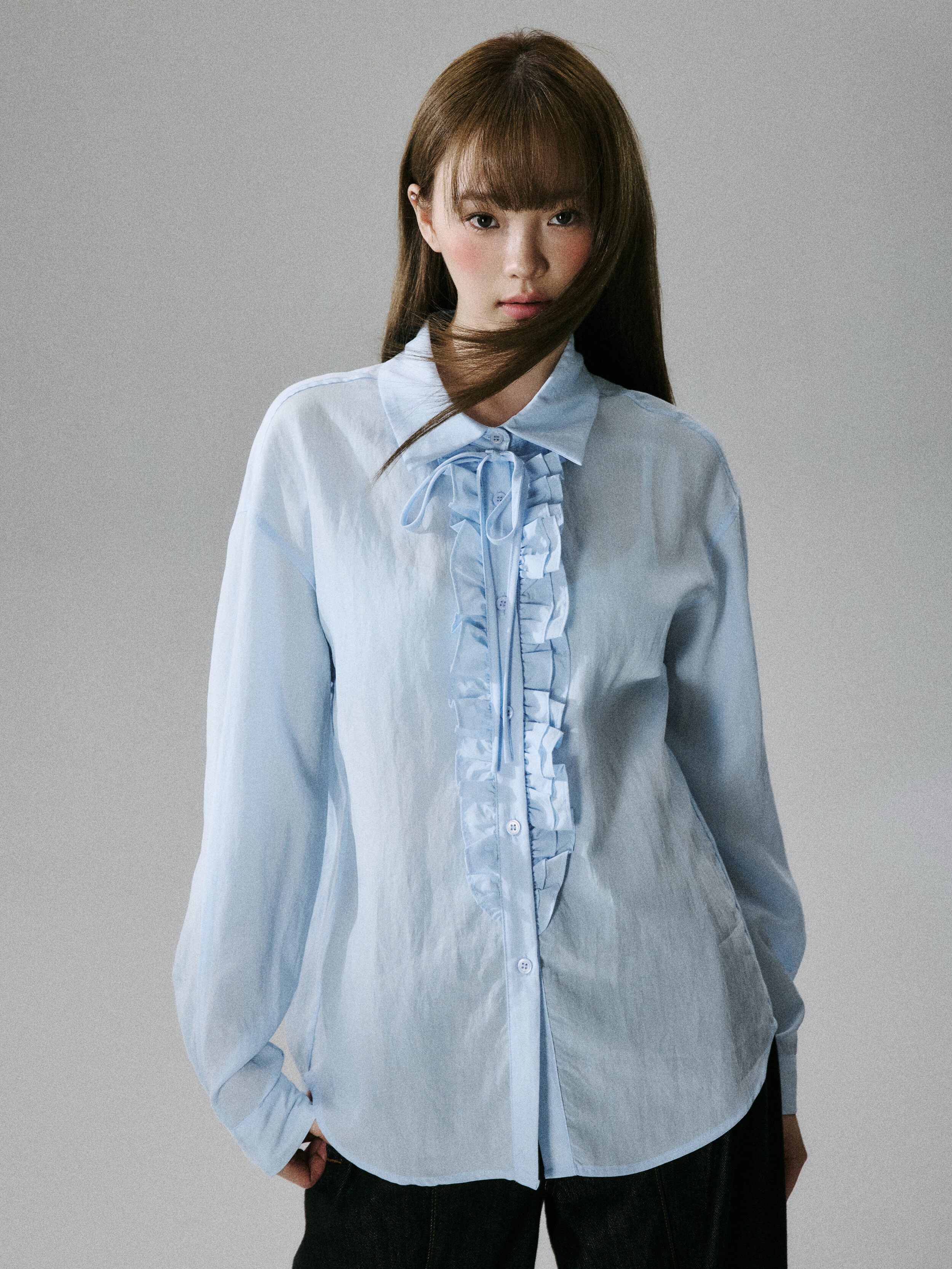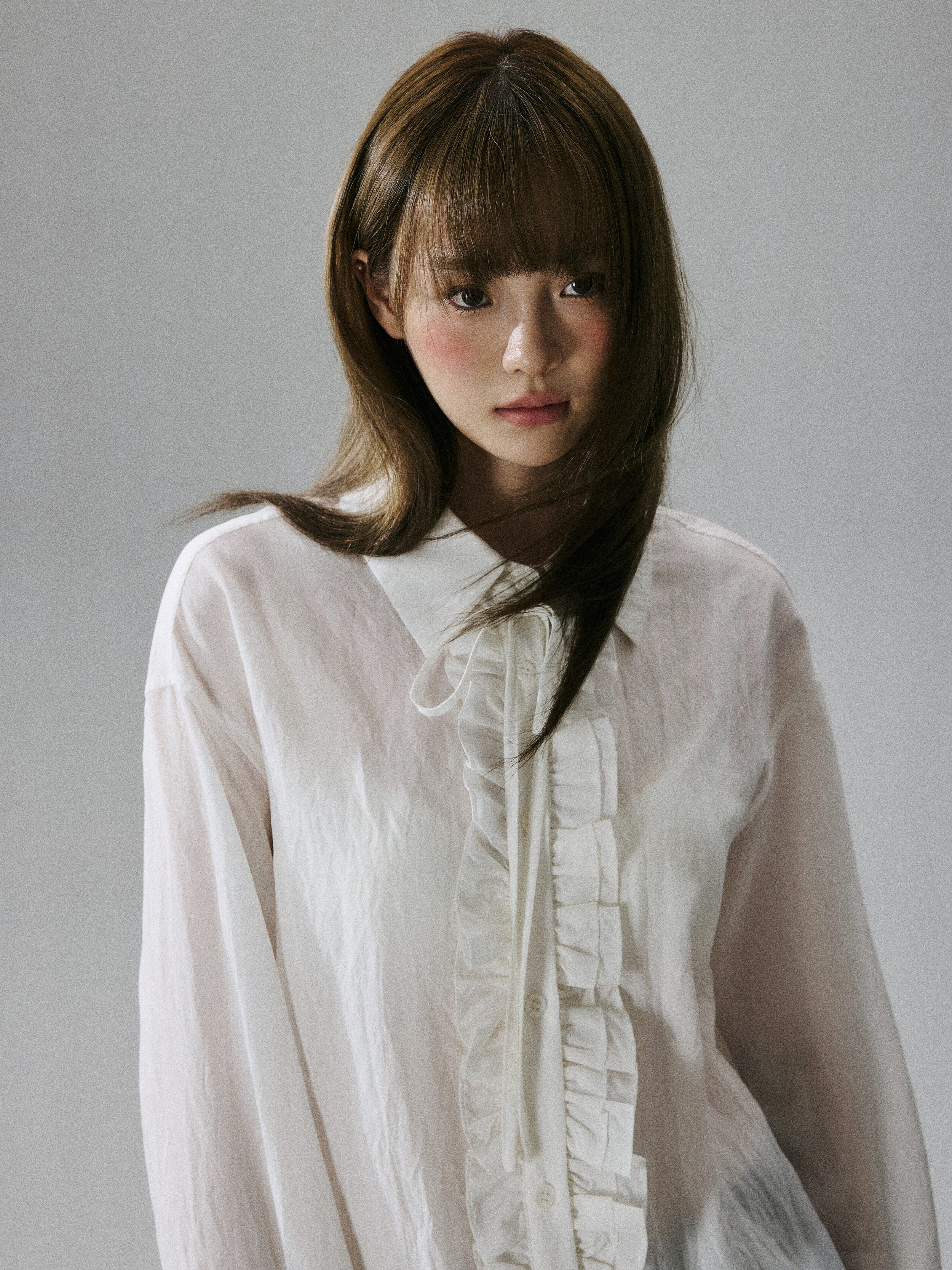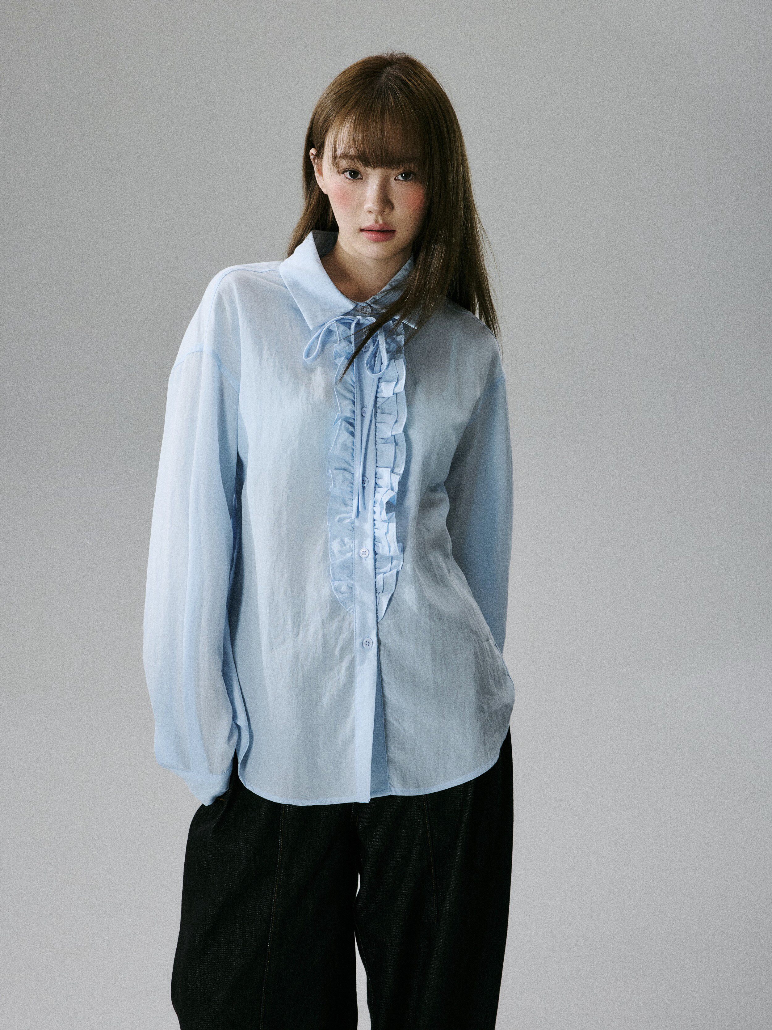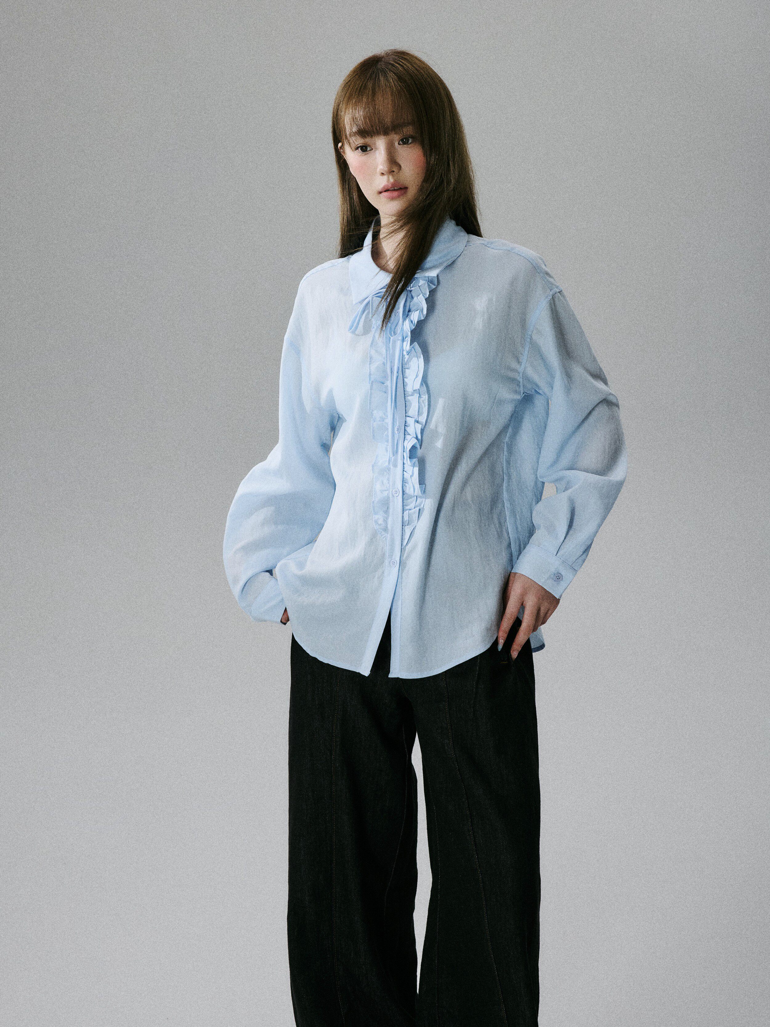 Wrinkled Lyocell Asymmetrical Bow Strap Sunscreen Long Sleeve Shirt NA8805