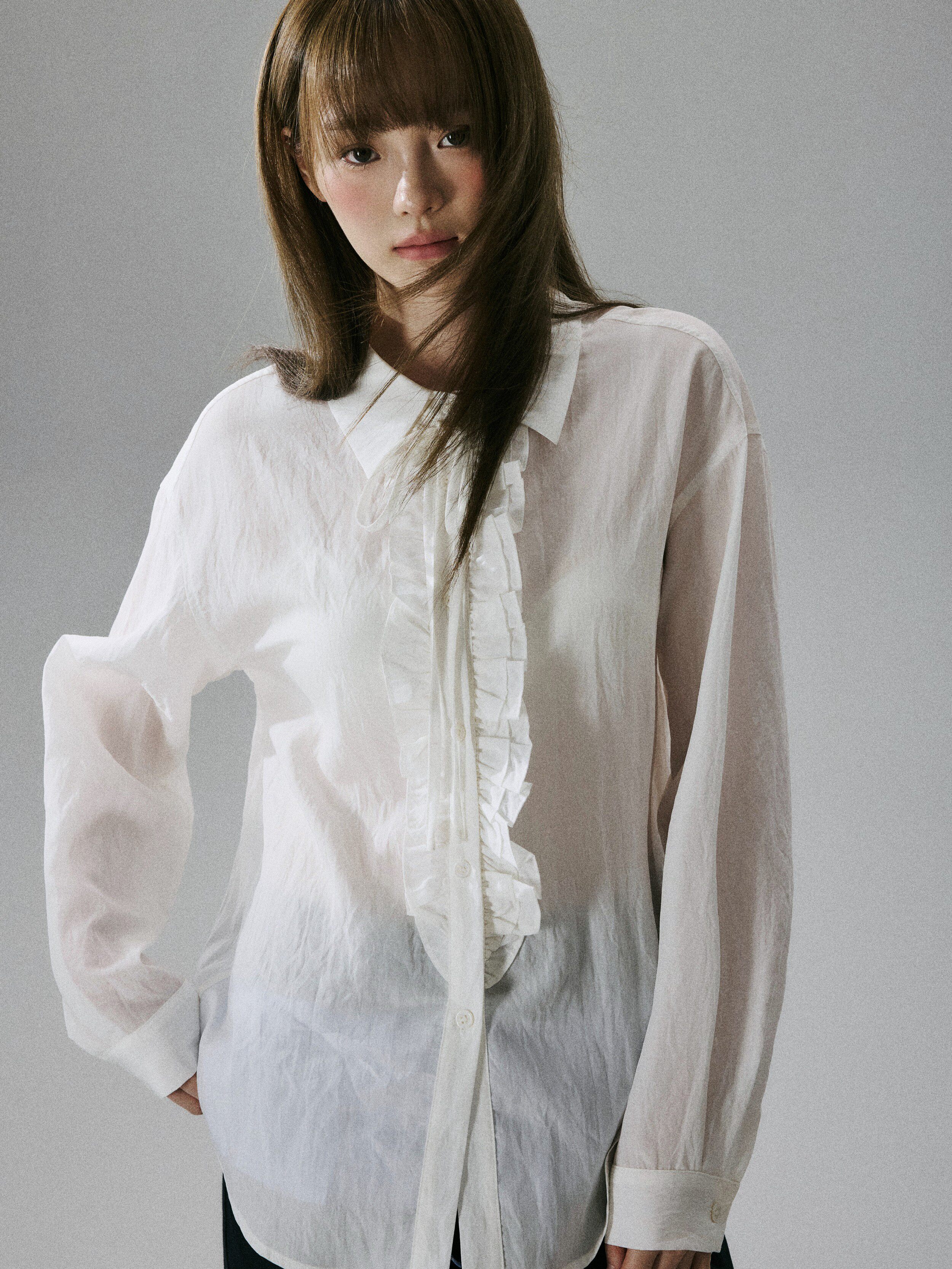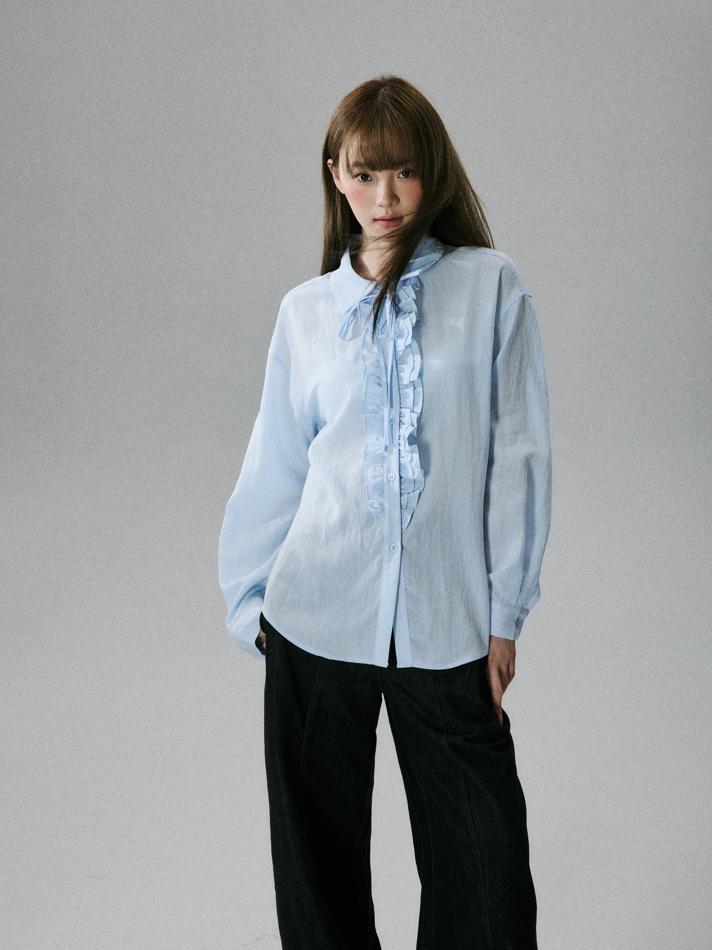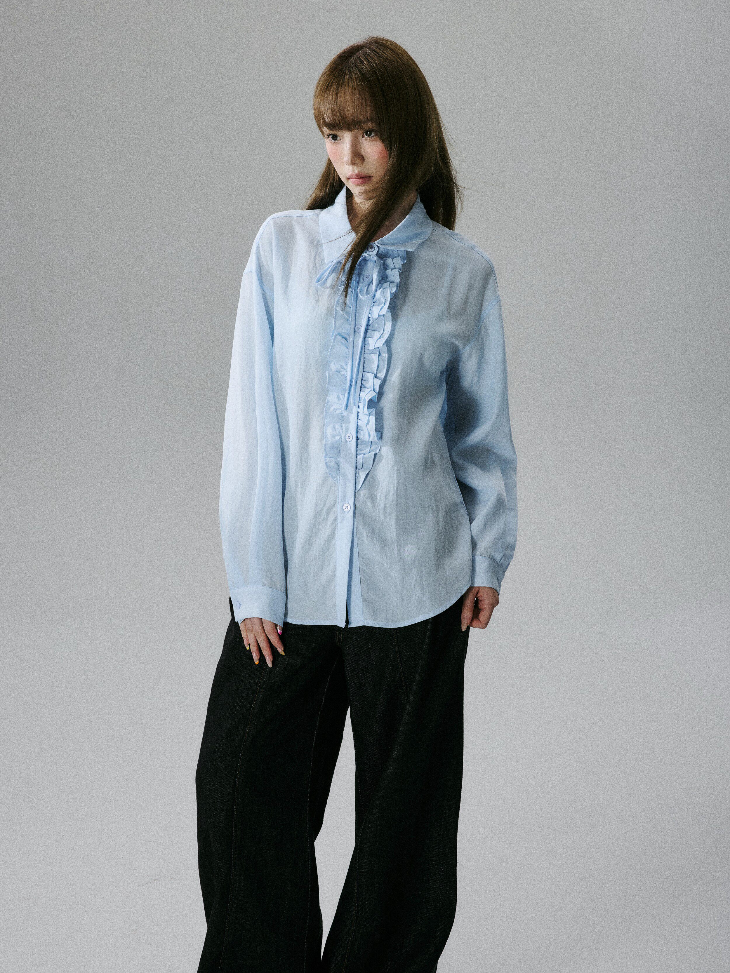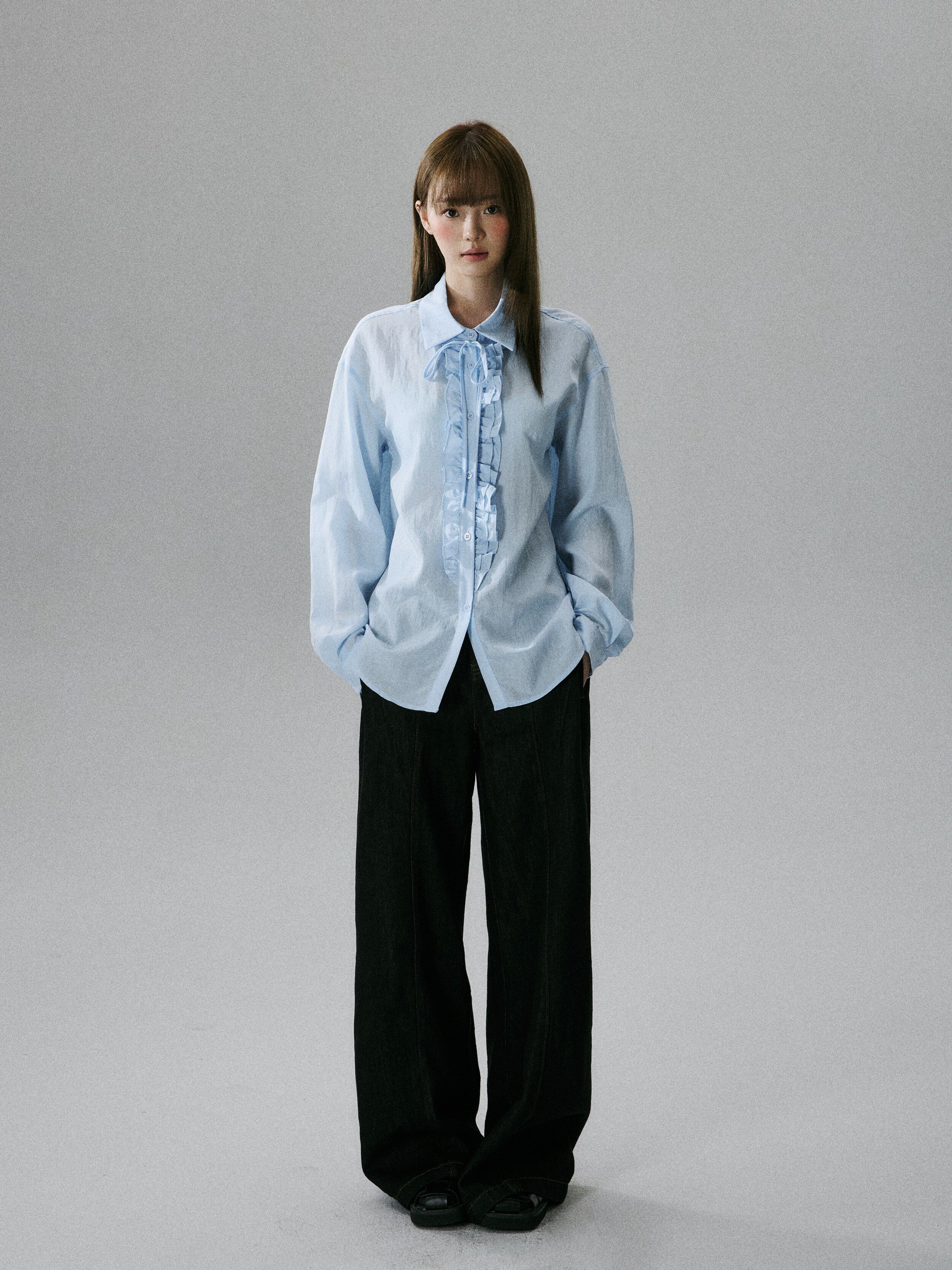 Wrinkled Lyocell Asymmetrical Bow Strap Sunscreen Long Sleeve Shirt NA8805