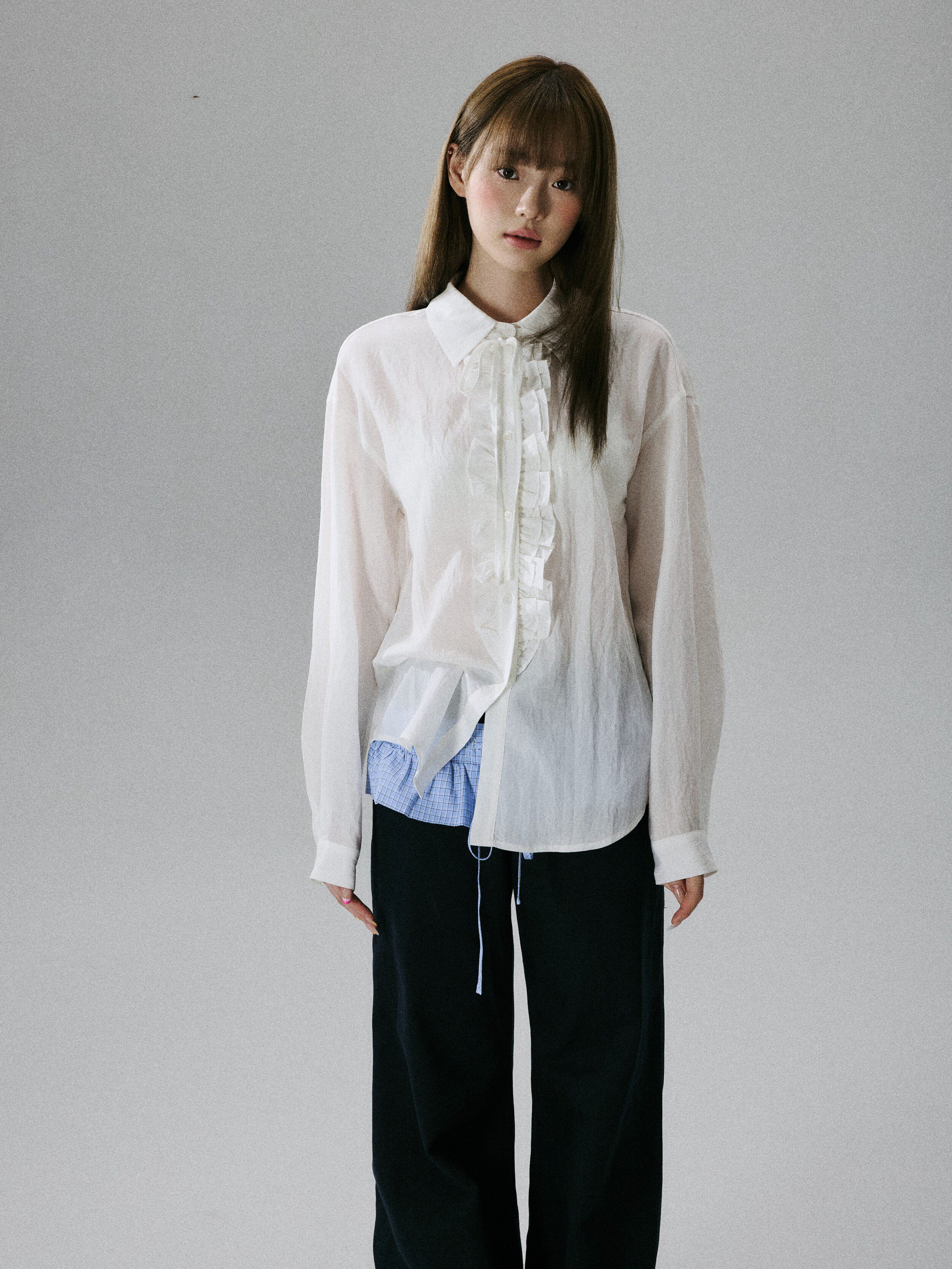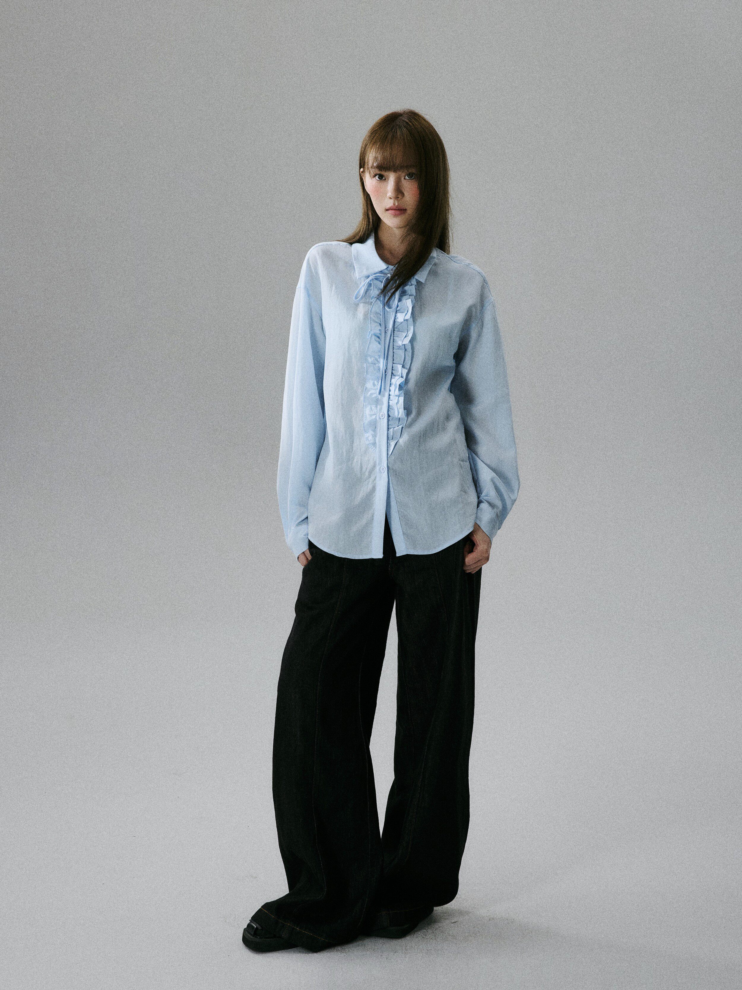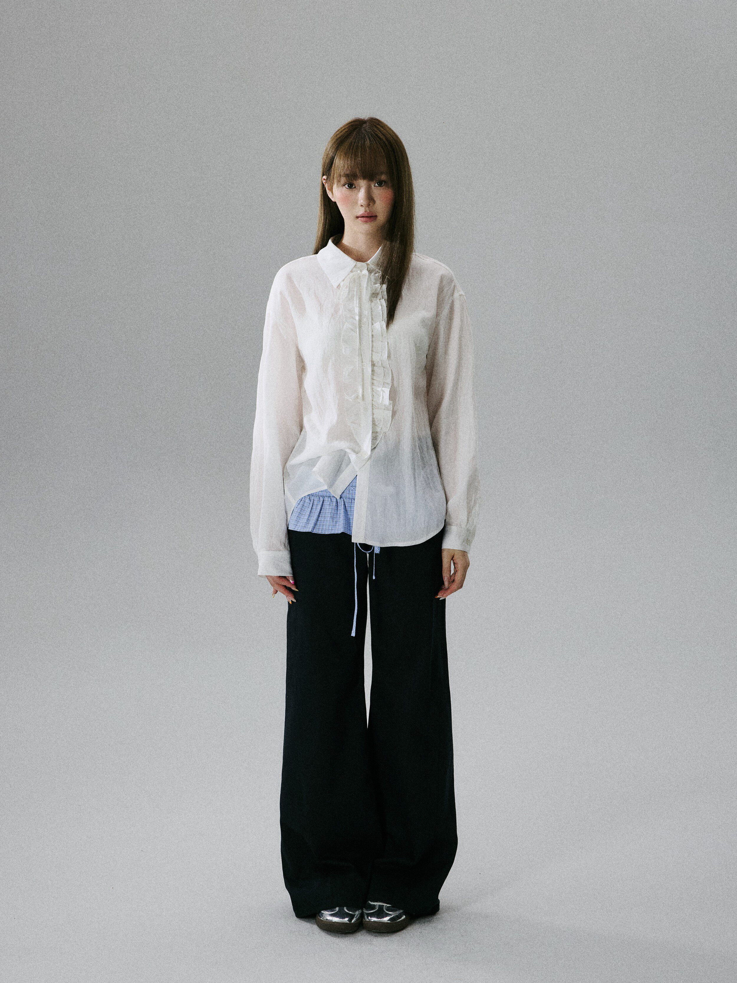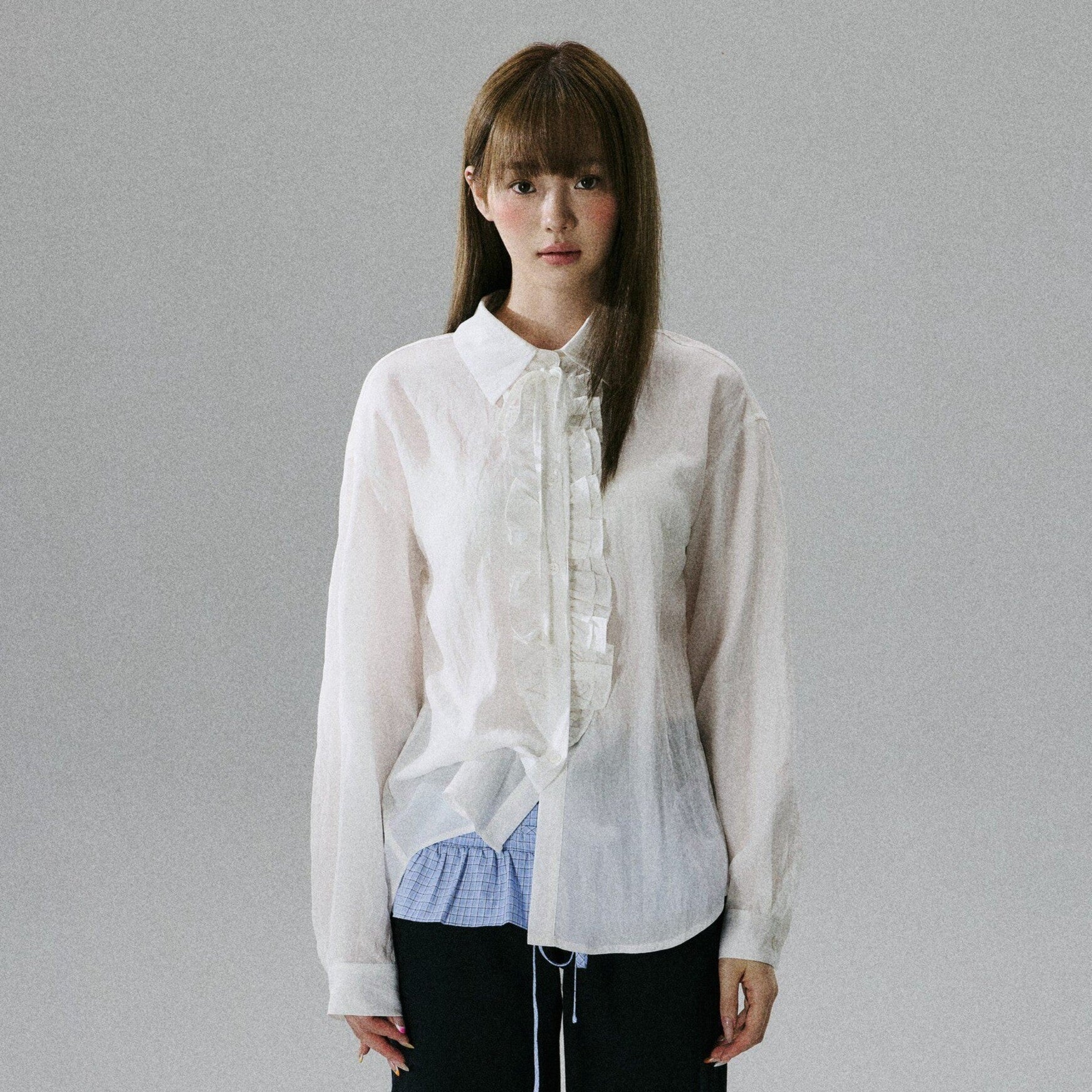 Wrinkled Lyocell Asymmetrical Bow Strap Sunscreen Long Sleeve Shirt NA8805