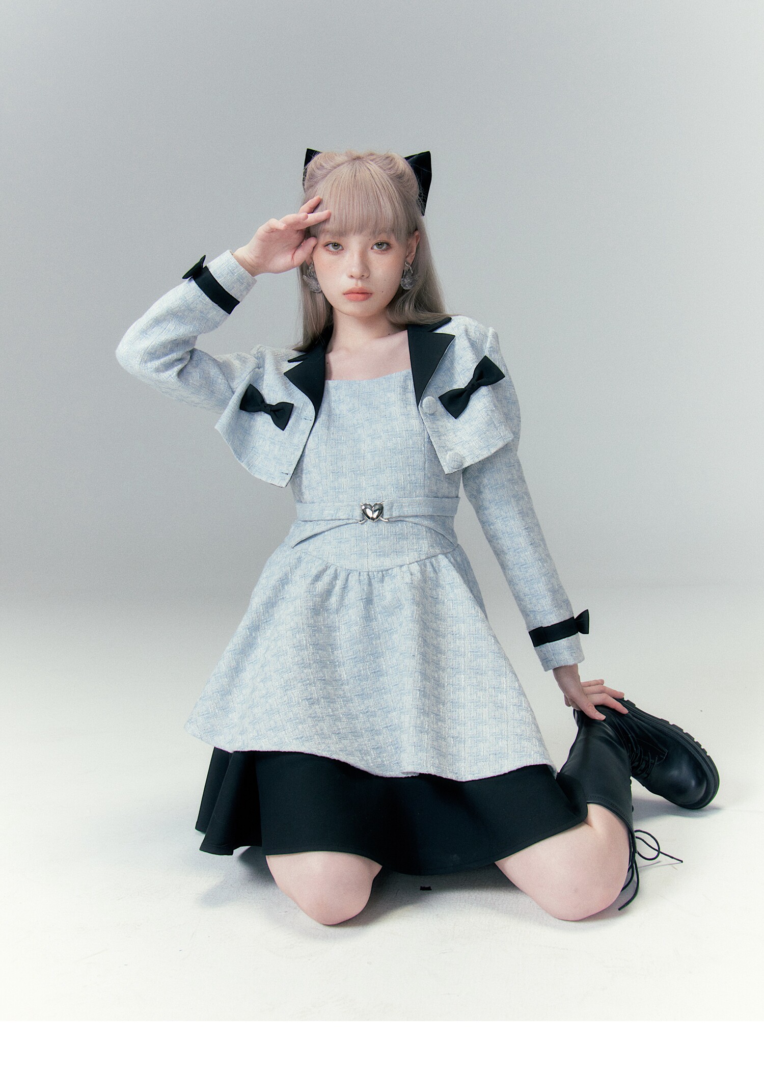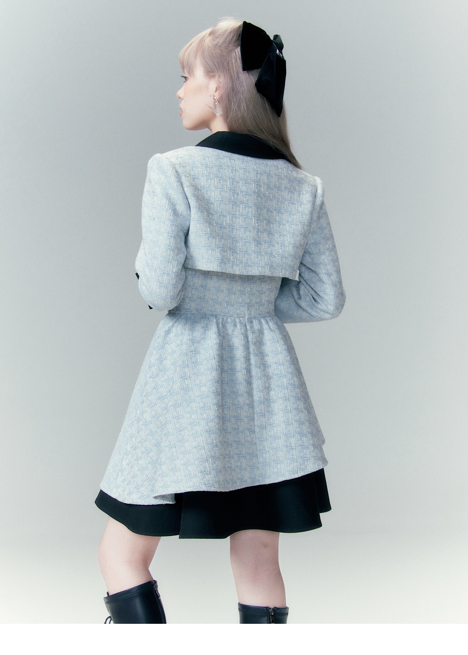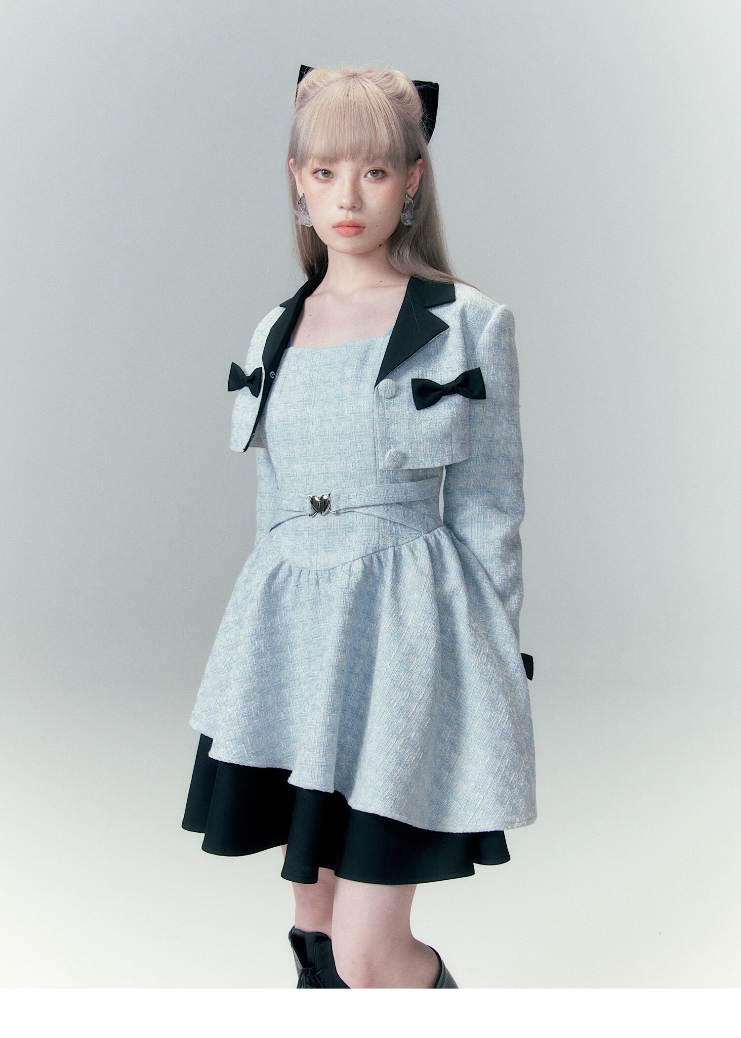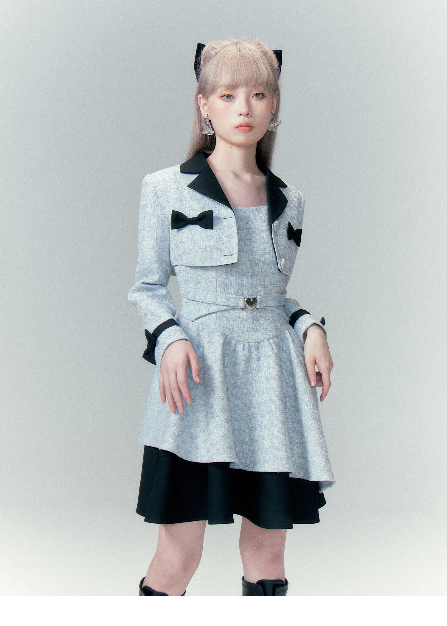 Bow Accent Cropped Jacket & Flared Dress Setup NA8808