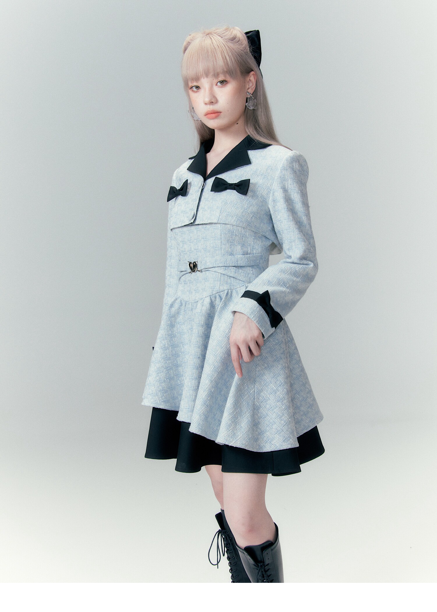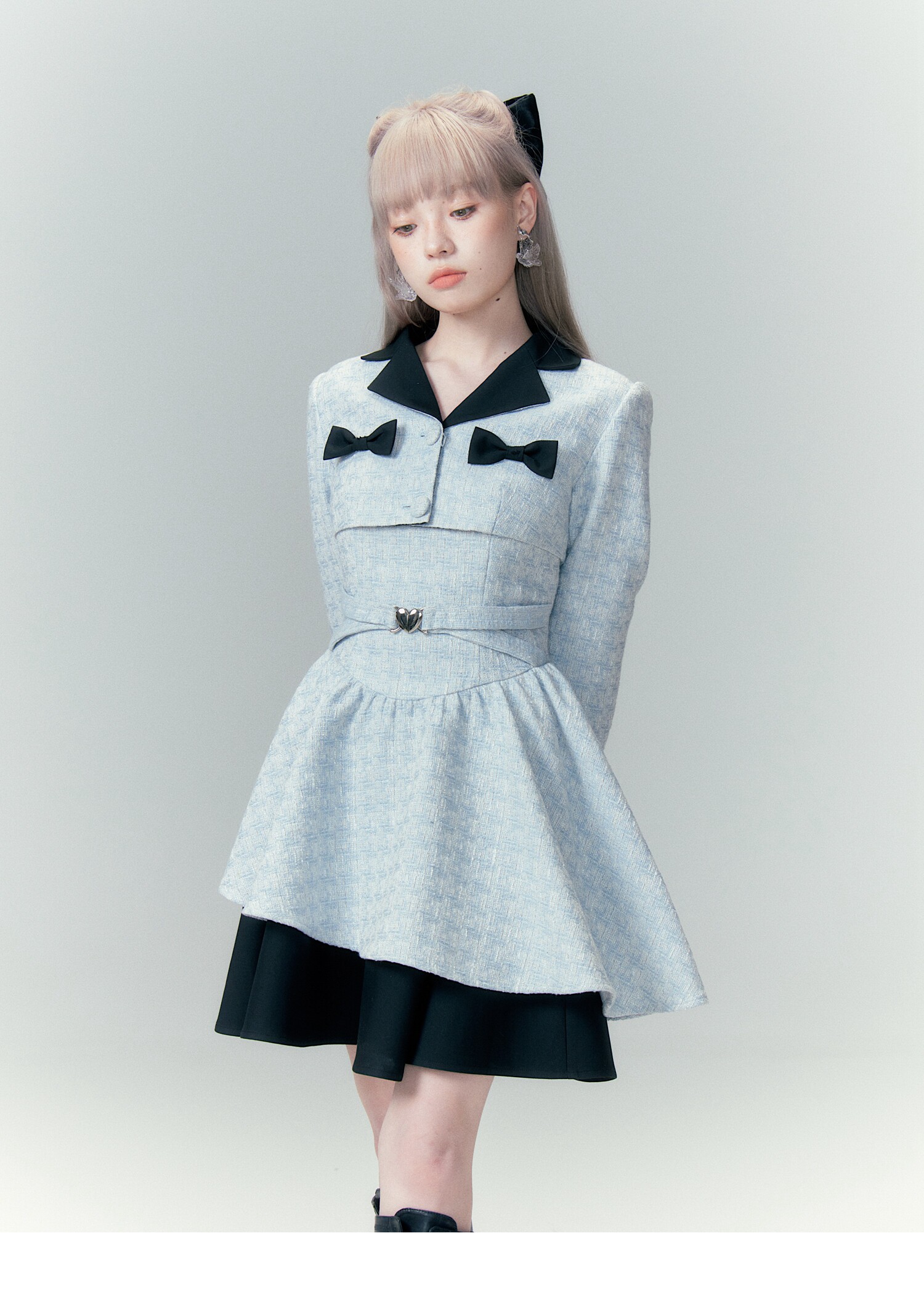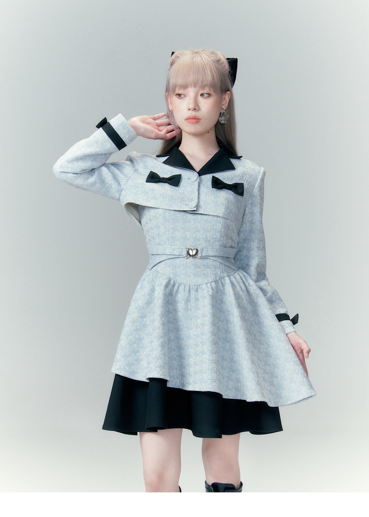 Bow Accent Cropped Jacket & Flared Dress Setup NA8808