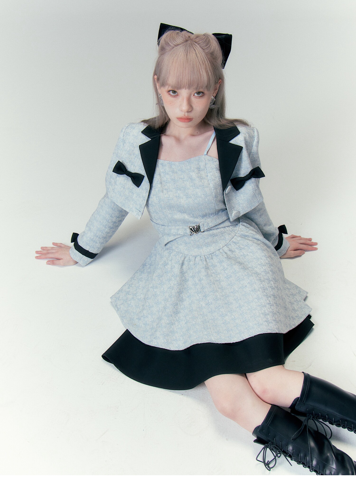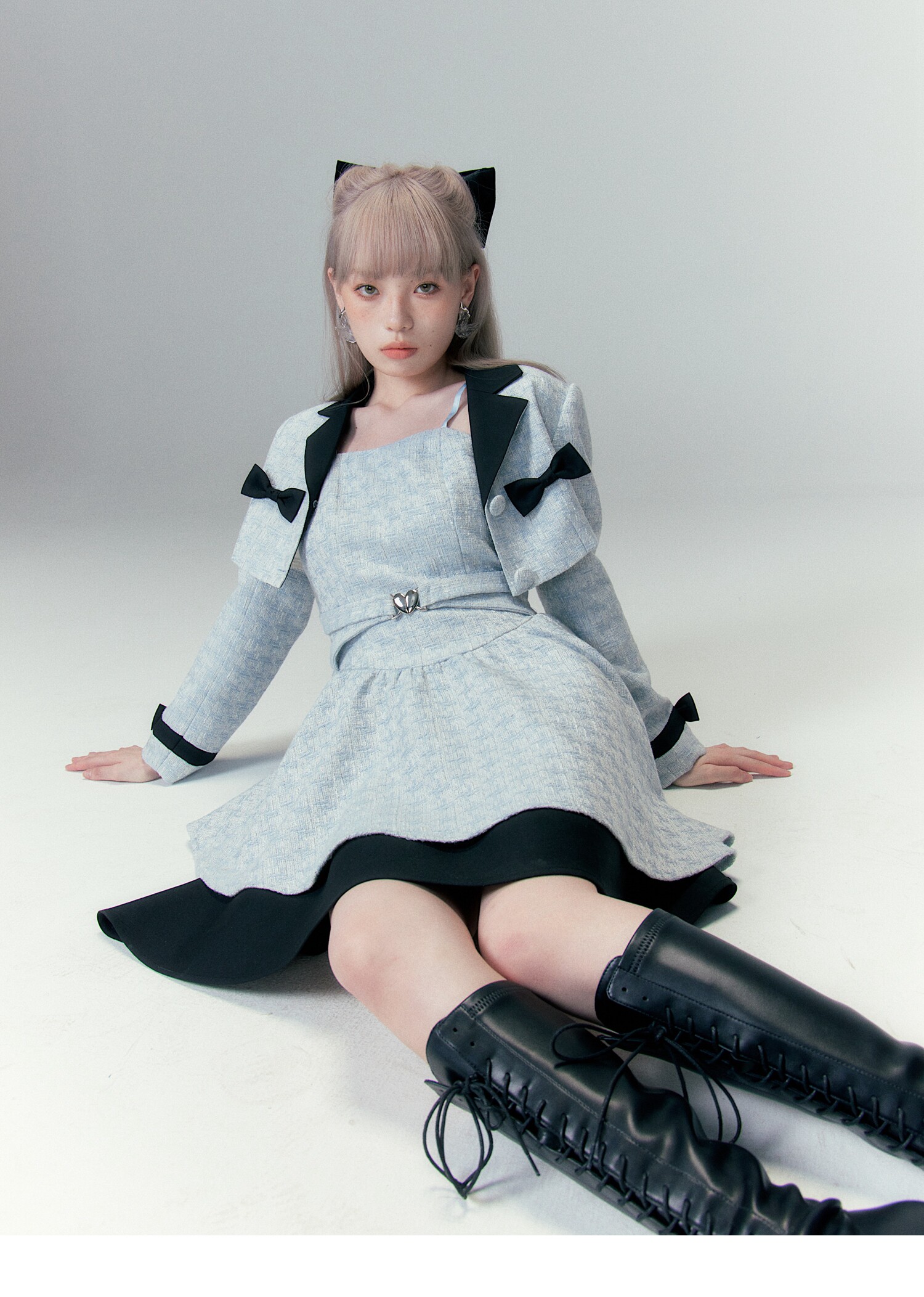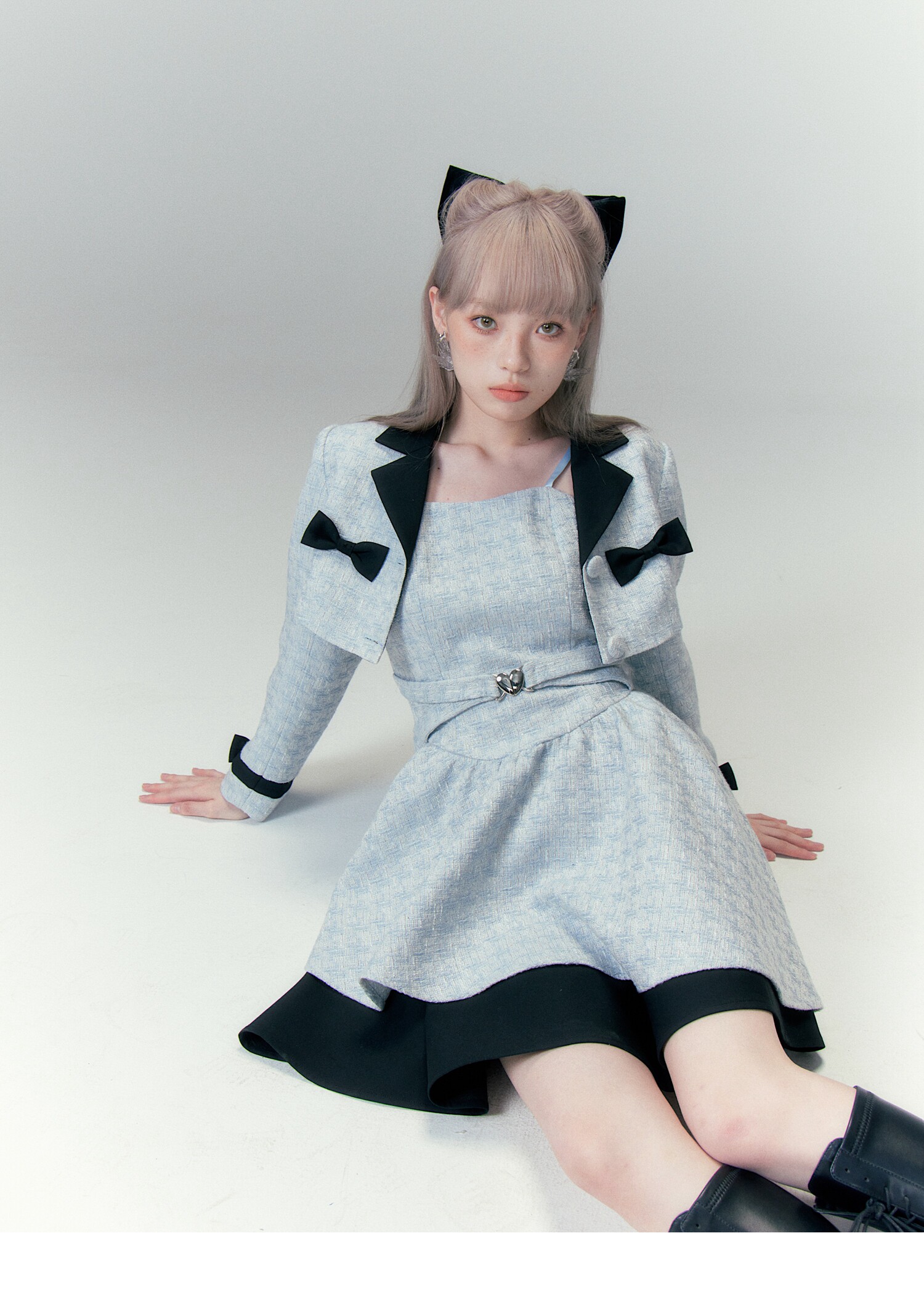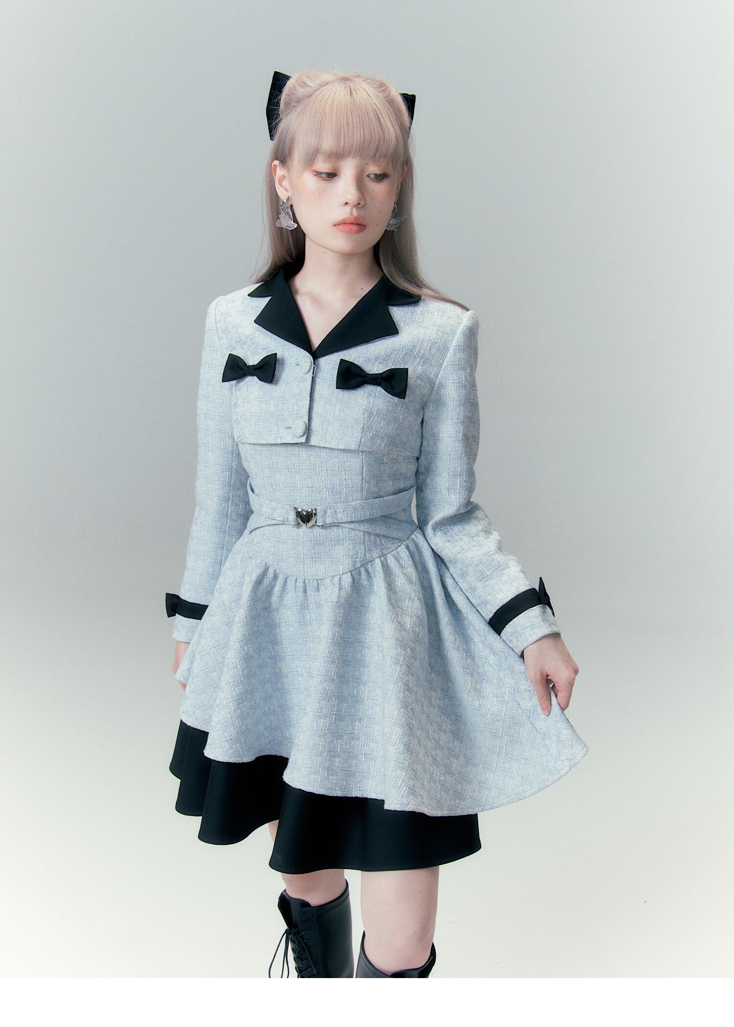 Bow Accent Cropped Jacket & Flared Dress Setup NA8808