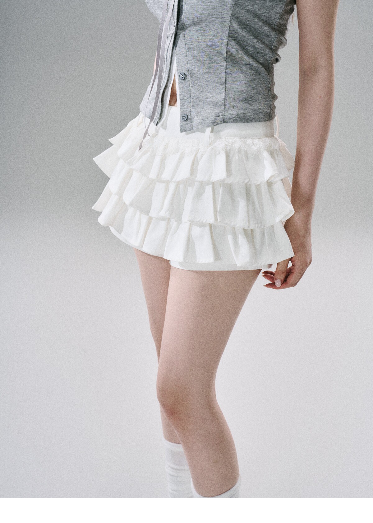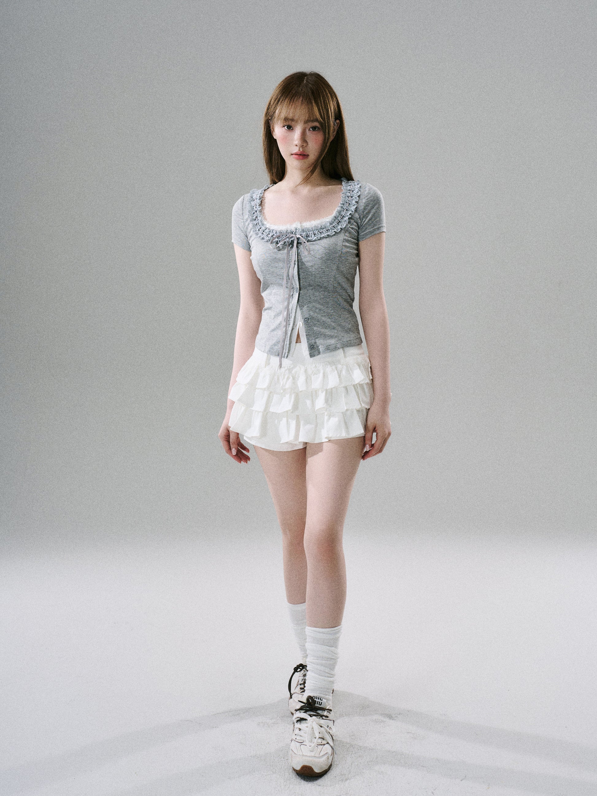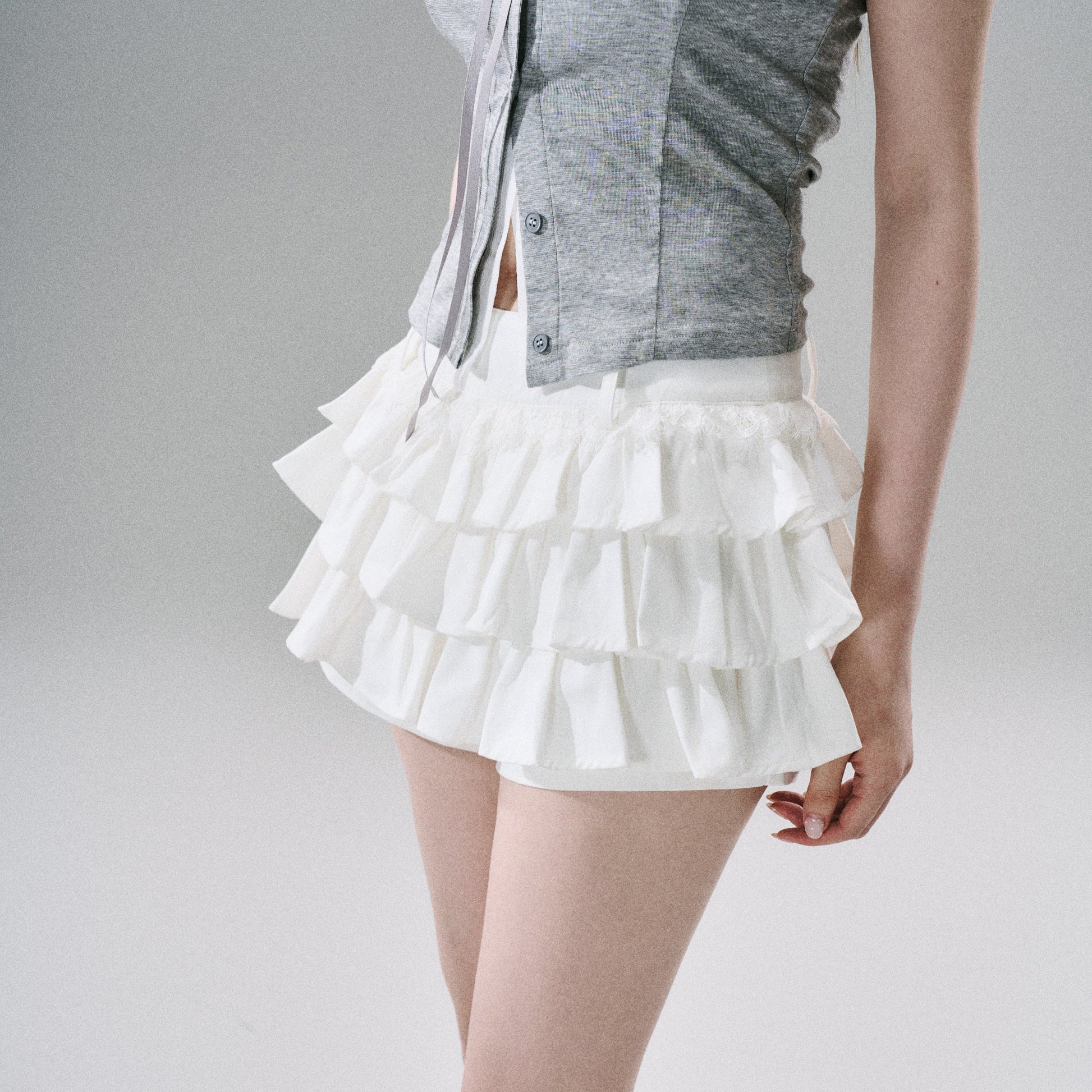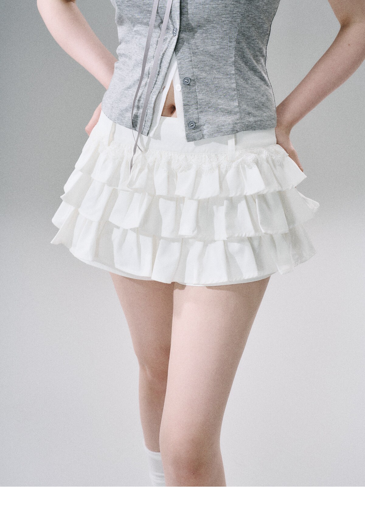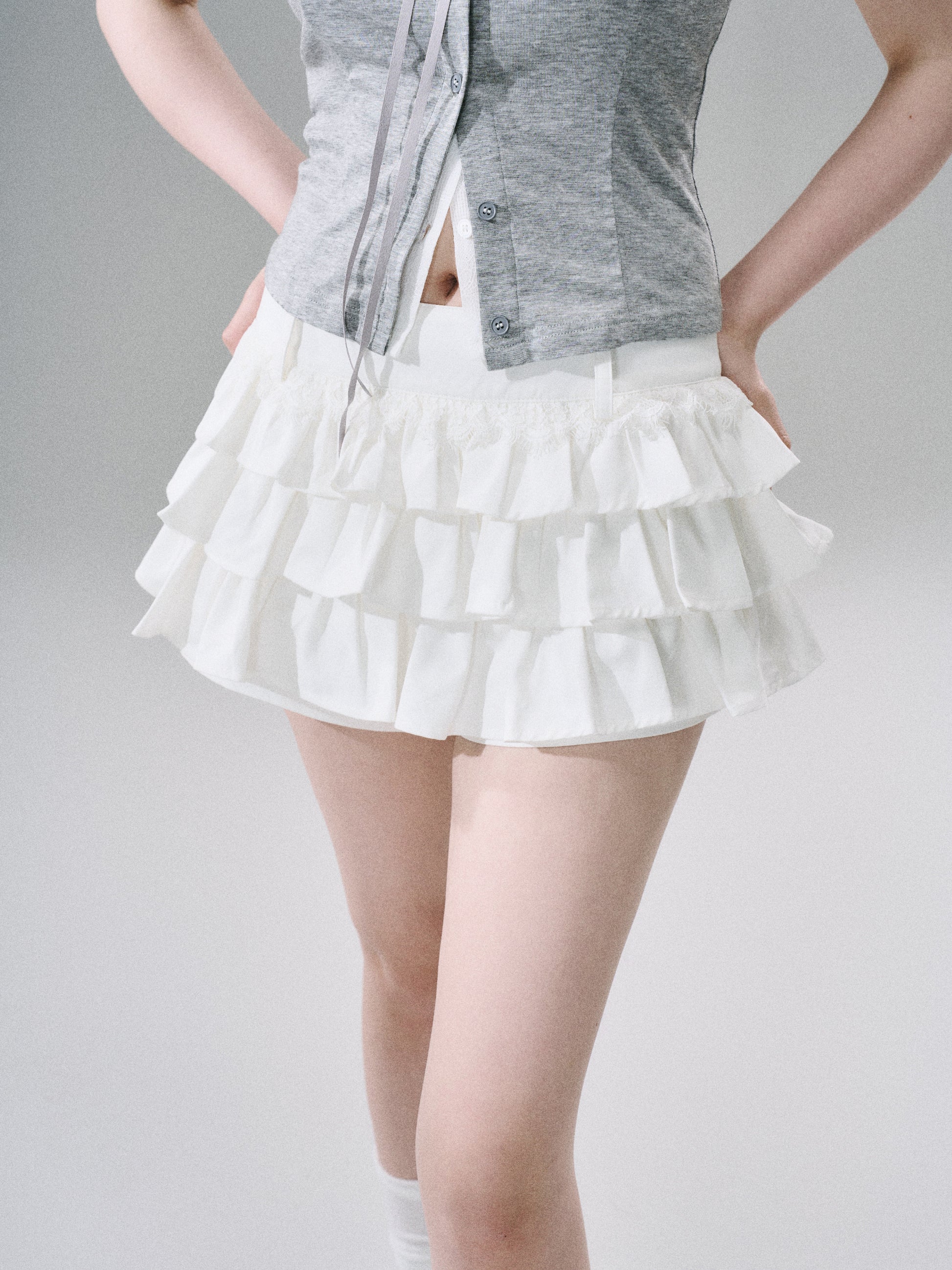 Sweet Girly Lace Ruffle Cargo Skirt NA8816