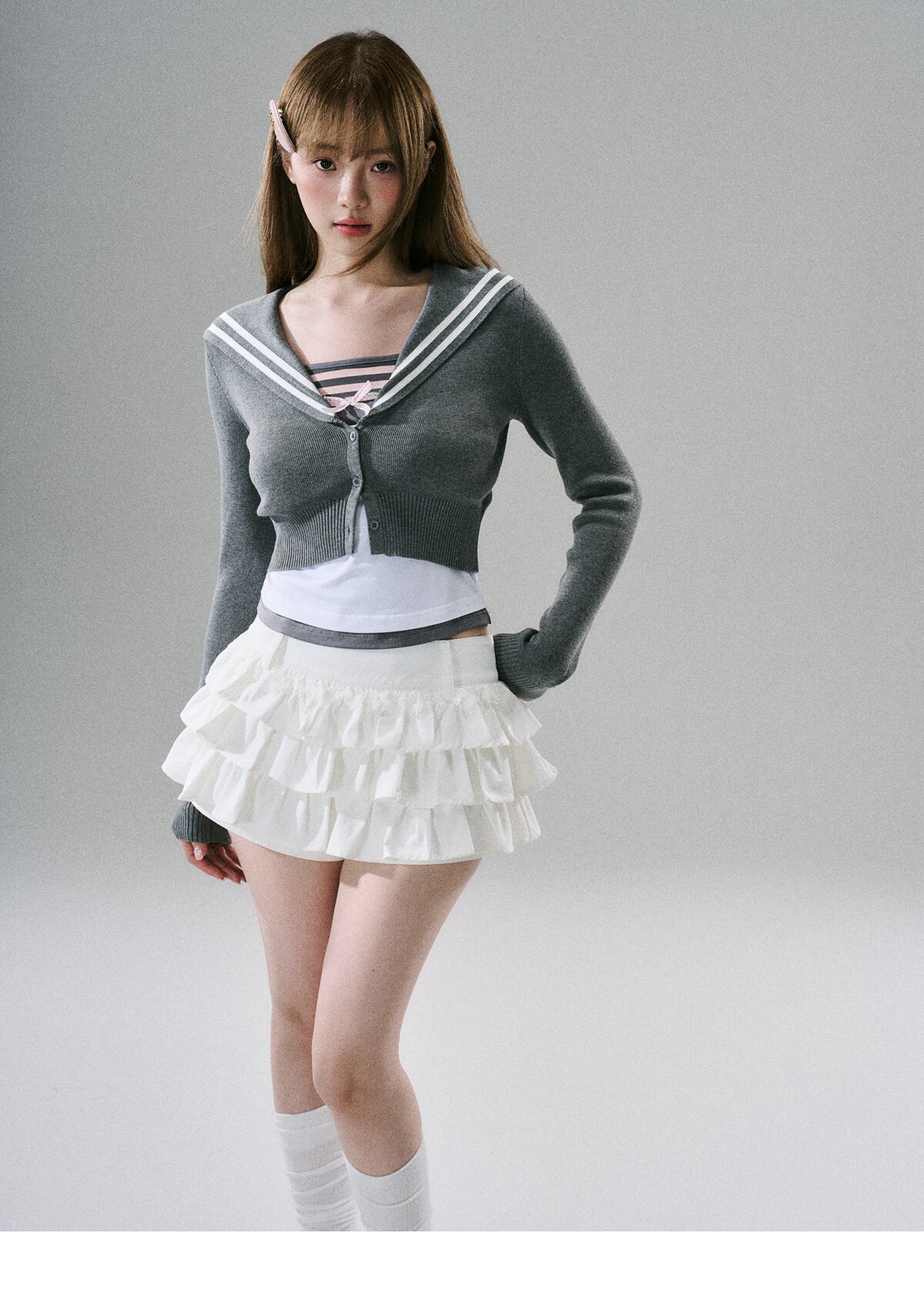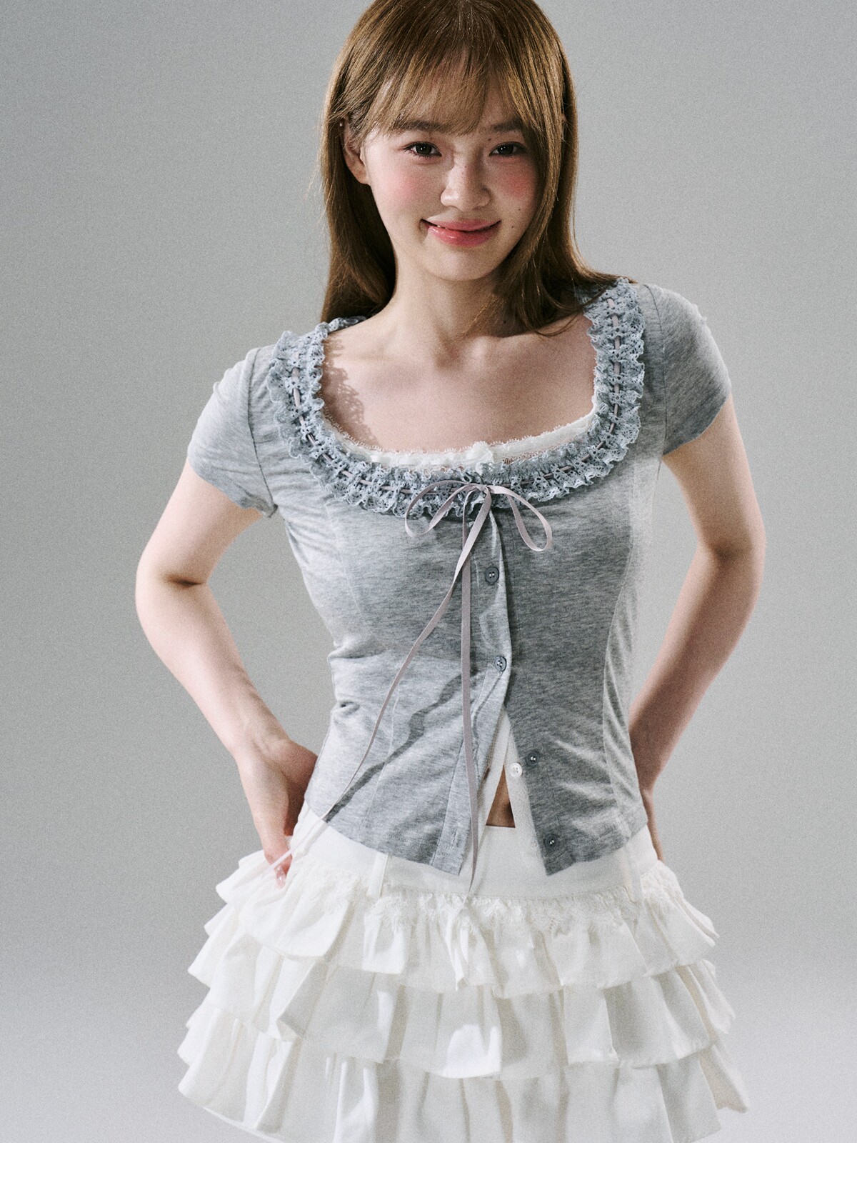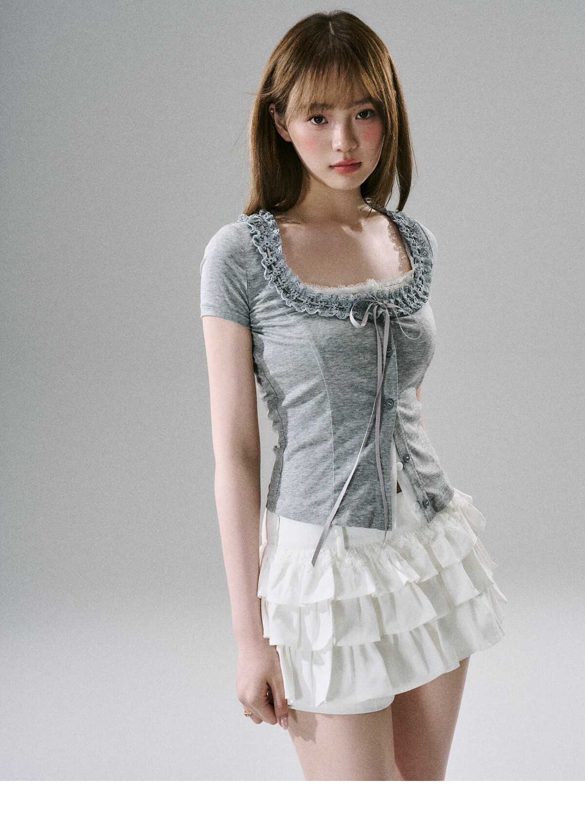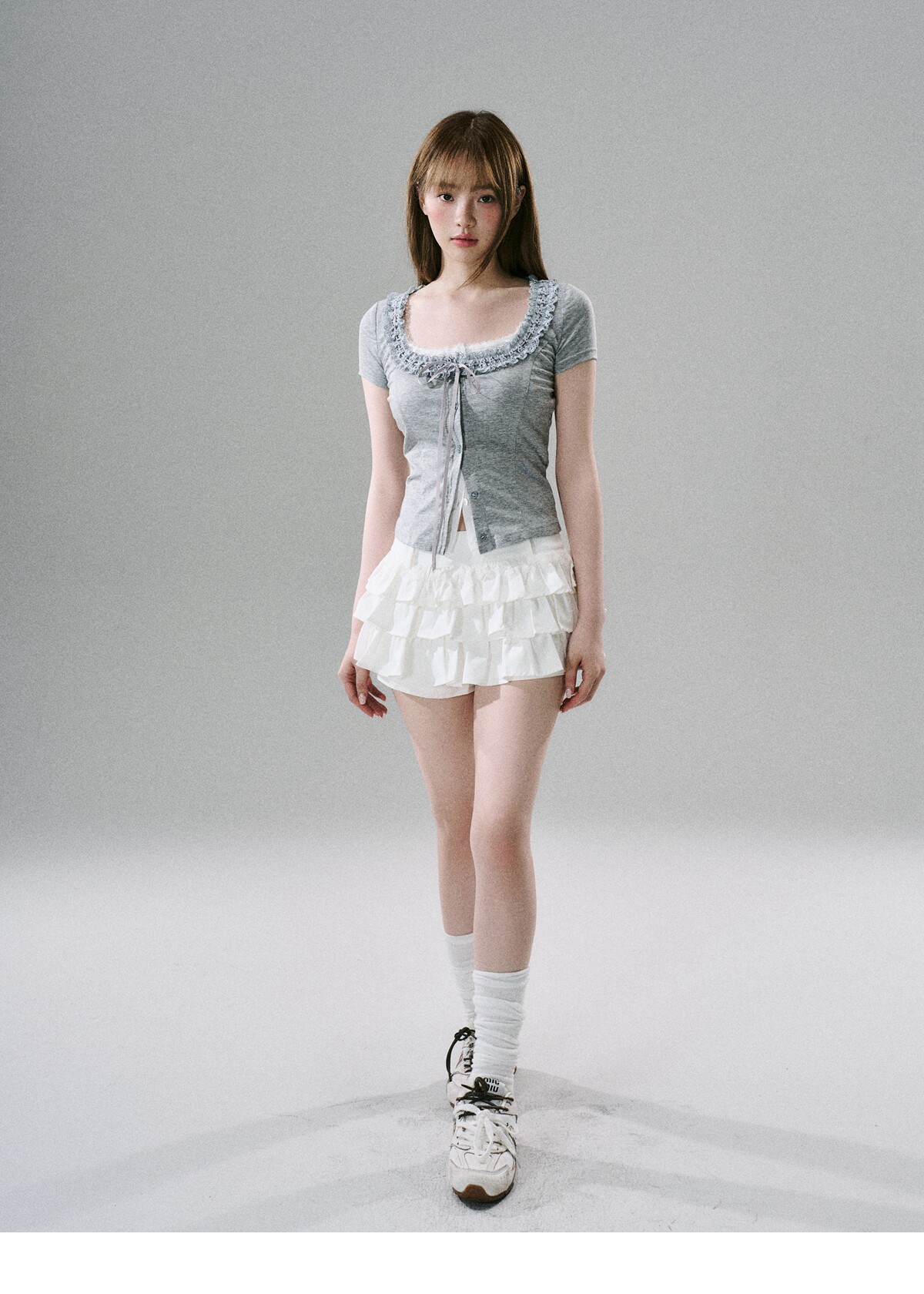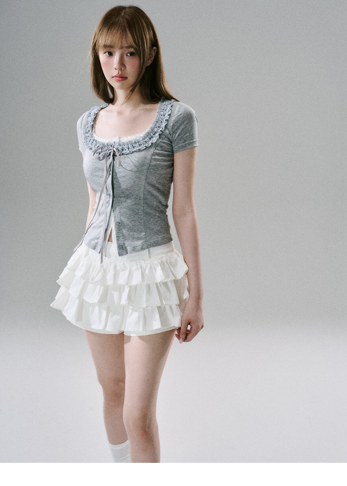 Sweet Girly Lace Ruffle Cargo Skirt NA8816