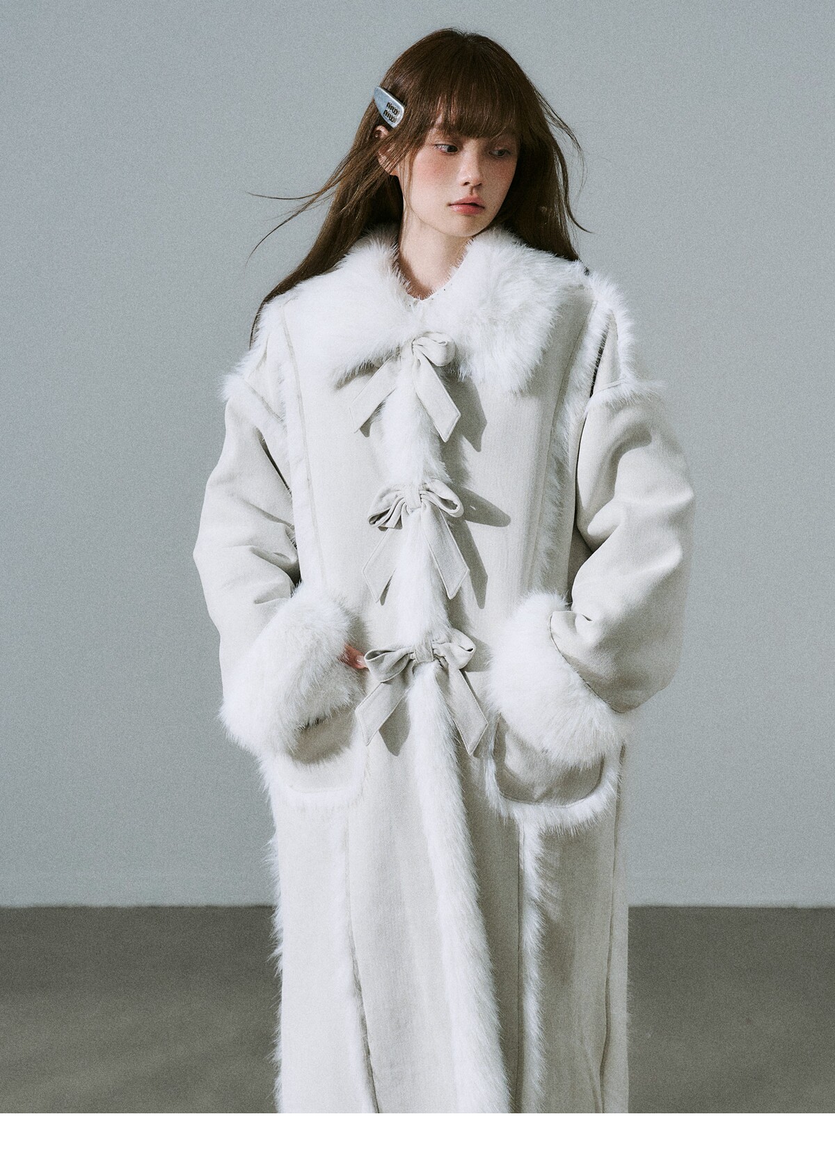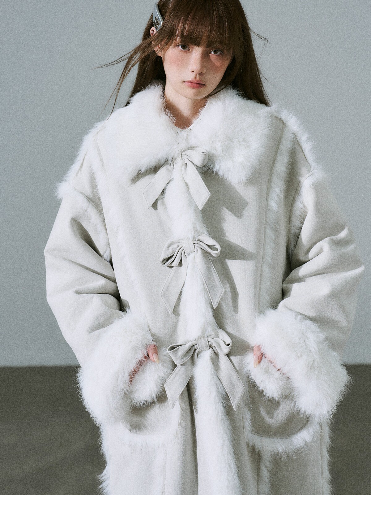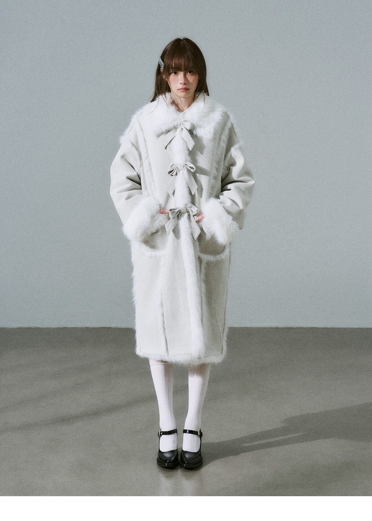 Bow Detail Fake Fur Trimmed Coat NA8825
